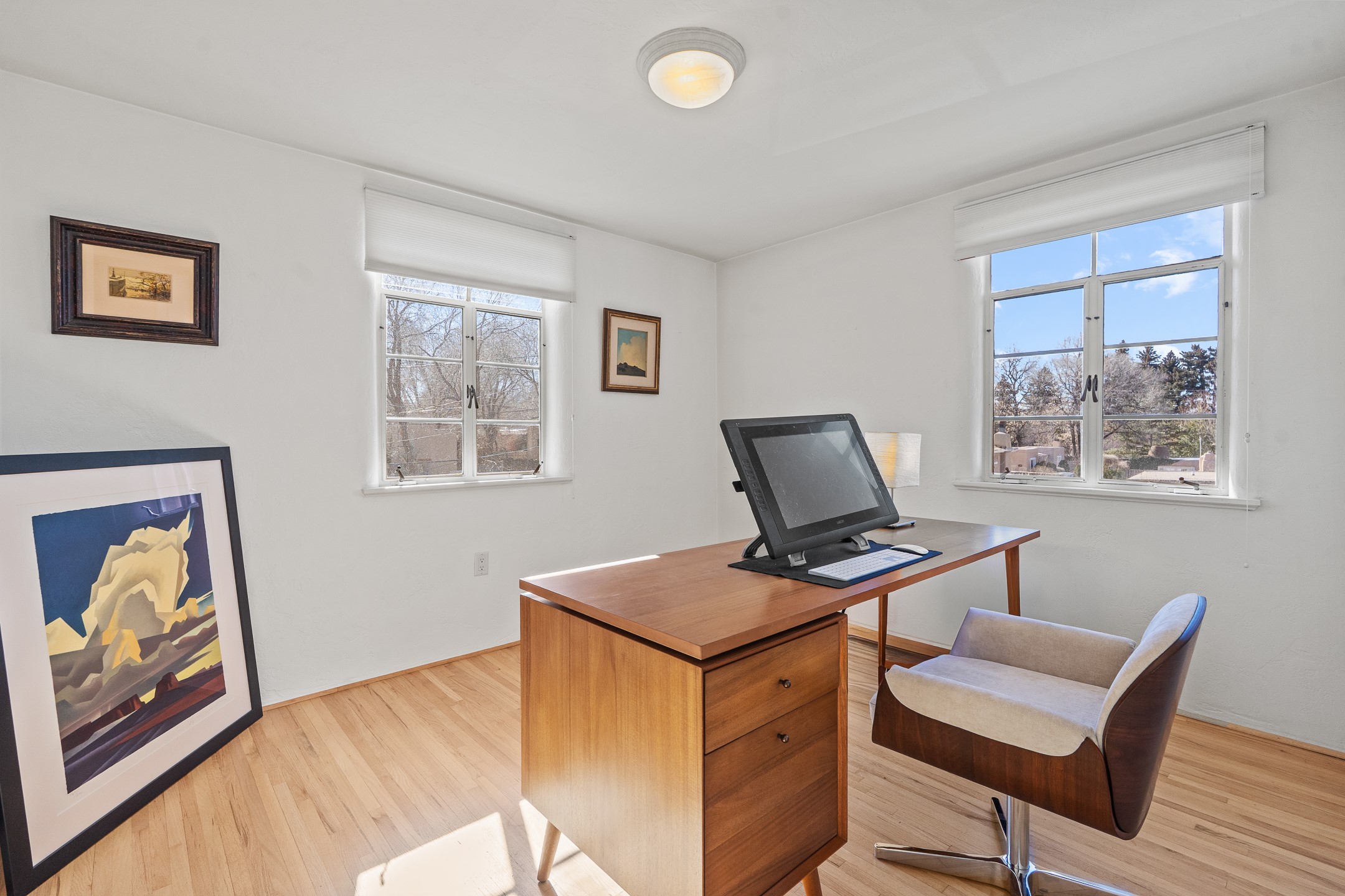 Nestled behind a white picket fence on Garcia Street, Casa Barbara is one of those charming Historic Eastside properties that exudes the essence of "old Santa Fe." This 1951 territorial-style garden-courtyard compound is listed on the NM historic preservation list, and it's exactly the kind of place Eastside buyers wait for.This extensively upgraded true two-bedroom unit boasts a prime location in the Historic Eastside, offering second-floor views of the lush landscaping and Sangre de Cristo Mountains. The interior features beautiful original red oak floors, a fully renovated bathroom, and an updated kitchen that combines charm with modern convenience. Outside, the meticulously maintained gardens provide a peaceful retreat among the apricot trees, aspens and lavender.Conveniently located within walking distance of Canyon Road, Acequia Madre, and the Plaza's galleries, museums, dining, and coffee shops, this unit also includes a covered carport, unit-owned storage, and on-site laundry facilities with the option to install in-unit laundry if desired. More new upgrades include updated bathroom and kitchen plumbing and restored original window hardware.The well-managed HOA has also made significant improvements to the property including new roofs on the condo, carport, and storage units, new gutters, and repairs to the front fence and sidewalk. With its move-in ready condition and potential as a primary residence or rental investment, this unit at Casa Barbara offers a unique opportunity to experience the charm of Santa Fe's Historic Eastside.