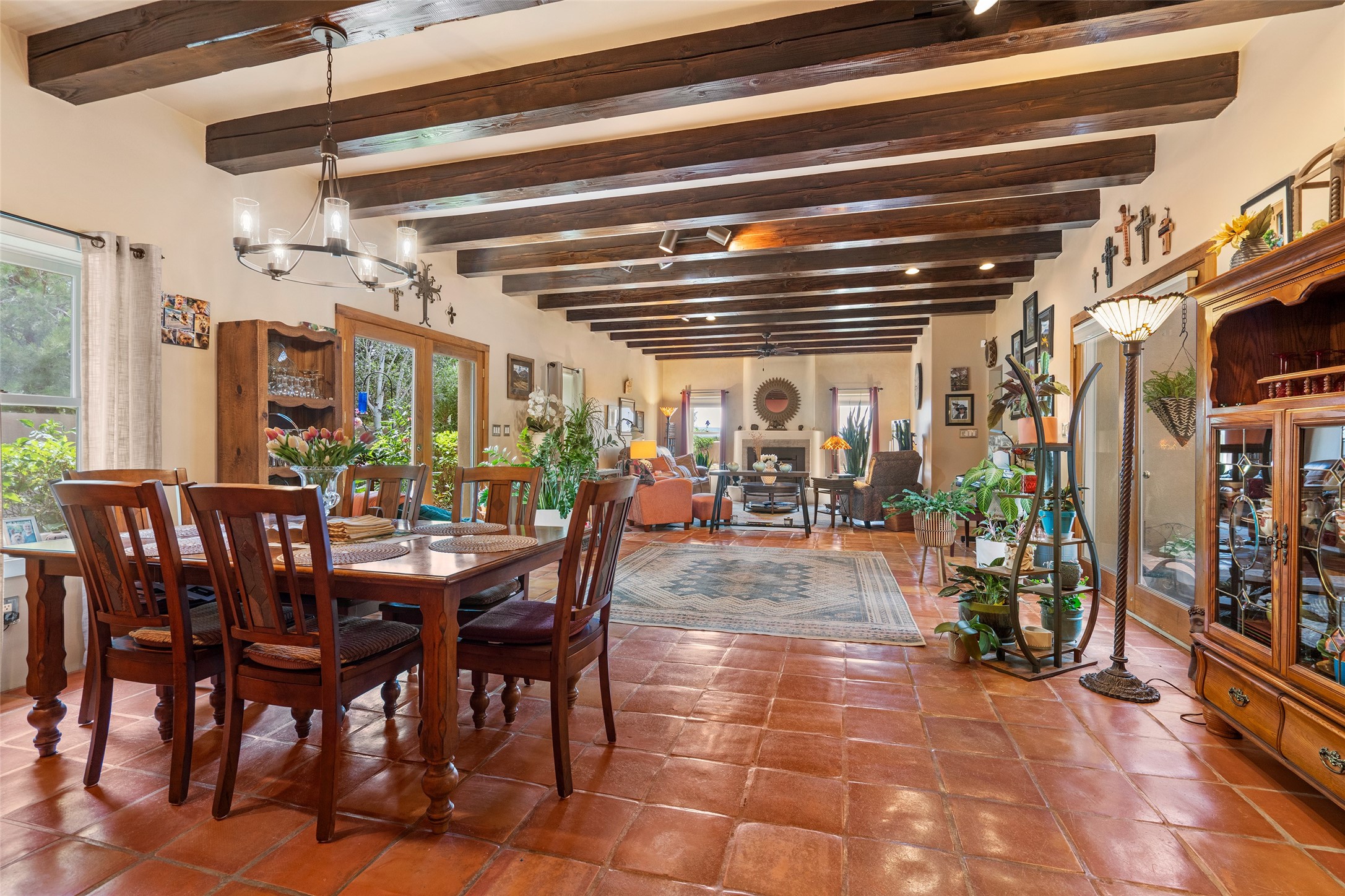42 Private Drive 1613B is located in the Mesa de Medanales Subdivision on a gentle mesa above the Chama River Valley. The setting offers open views in all directions, with primary views toward the Jemez Mountains and the Sangre de Cristo Mountains. Mature trees and established landscaping surround the home, reflecting years of careful gardening and creating privacy and shade that make the property comfortable year round. A motorized gate is located at the entrance to the property.The home is an adobe constructed, two bedroom, two bath pueblo style residence with exposed beams and Southwest finishes throughout. Very few homes in New Mexico are currently constructed using traditional adobe. Many long time adobe homeowners consistently describe these homes as having a solid, quiet feel that is noticeably different from modern construction. The kitchen includes stainless steel appliances. A separate office provides additional flexible space. Heating is provided by radiant in floor heat, with a wood burning insert in the living room.The west facing patio includes a shade ramada, brick flooring, and a wood burning kiva fireplace. Recent updates include a new roof, new stucco, a new well pump, and a recently serviced septic system.The property consists of five acres and includes a three car garage. The location offers a short drive to Abiquiu and an easy commute to Espaola, Los Alamos, or Santa Fe.Additional Photos available upon request.