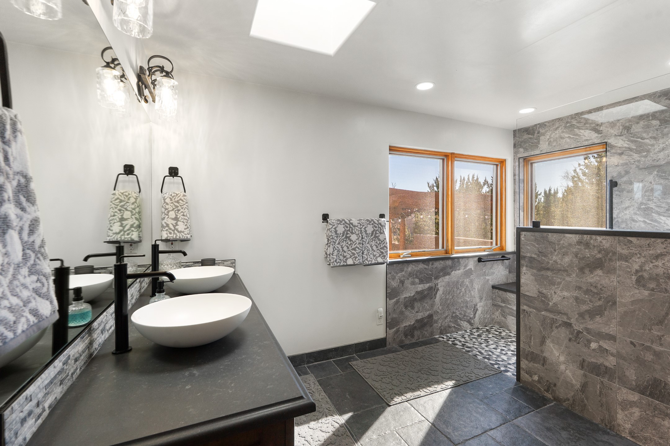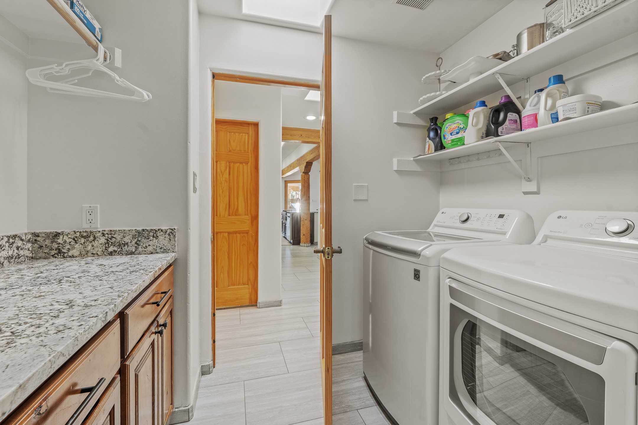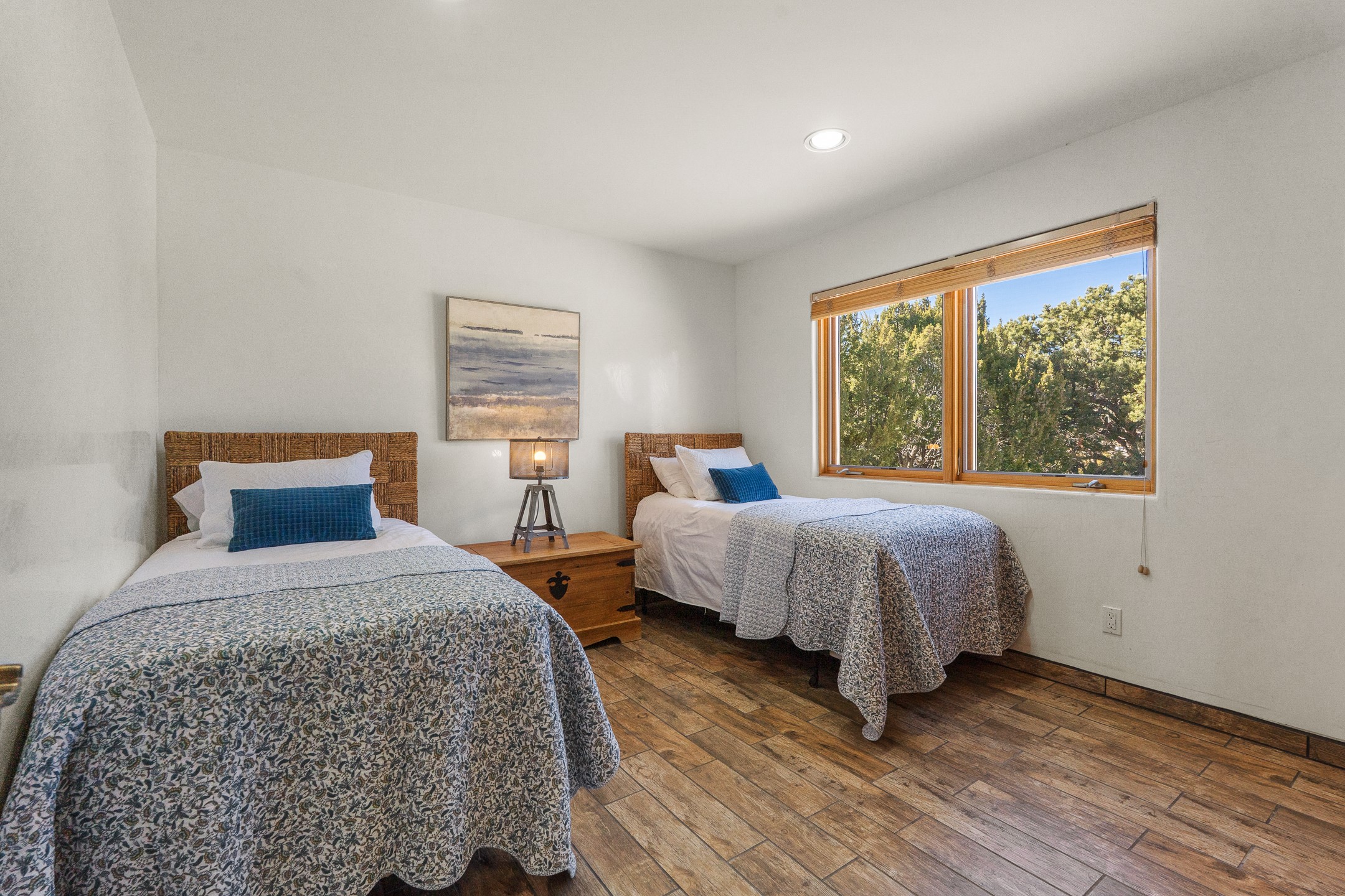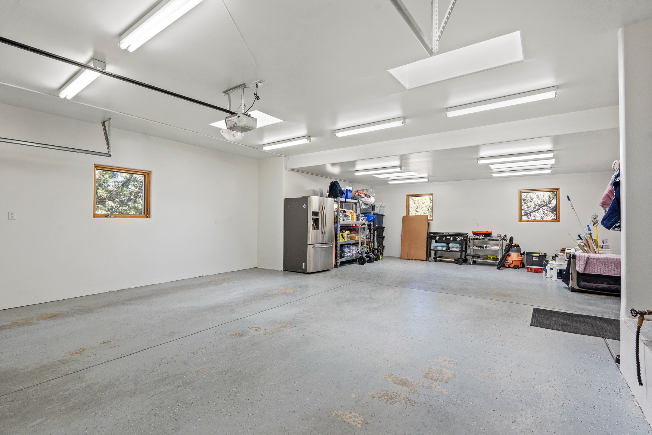 A rare opportunity in Rancho Viejo! This beautifully renovated single-level 4-bedroom, 3-bathroom home was built in 2002 and sits on 1.2 acres with sweeping views of the Sangre de Cristo foothills. Thoughtfully updated from top to bottom, every surface has been touched with care and high-quality craftsmanship.The open-concept floor plan offers effortless flow and versatility. A spacious living room with beautiful viga ceilings and a wood-burning kiva fireplace provides the perfect setting for entertaining. The fully reimagined kitchen features stone countertops, brand-new stainless steel appliances, and two islands--each with bar seating--while the adjacent dining area connects seamlessly to a cozy den with a gas fireplace, creating a warm and inviting gathering space.Step into the backyard and discover a private oasis: a large koi pond with water feature, covered portal with built-in grill, and a separate pergola with a gas firepit--perfect for relaxing or stargazing. The Rancho Viejo trail system is directly accessible from the yard.The primary suite enjoys stunning foothill views, a gas fireplace, direct access to the backyard portal, and the soothing sound of the water feature. The spa-like primary bath includes double vanities, a large walk-in shower, natural light, and garden views. Two guest bedrooms share a full bath in the South wing, while a third guest suite--located privately at the North end--shares a full bath that also serves as the guest powder room. A flexible bonus room near the living area functions beautifully as an office, hobby room, or reading nook.The show-stopper garage can be a 2-car garage with a very large storage area/workshop or a 3-car garage with storage/workshop! On the market for the first time, this home was custom built in 2002 for the current owners, who have lovingly maintained and recently renovated it with exceptional care. This is a rare find and a true Rancho Viejo treasure.
