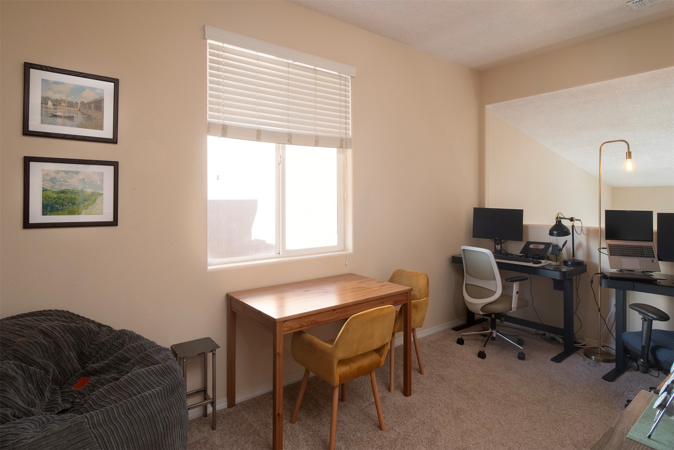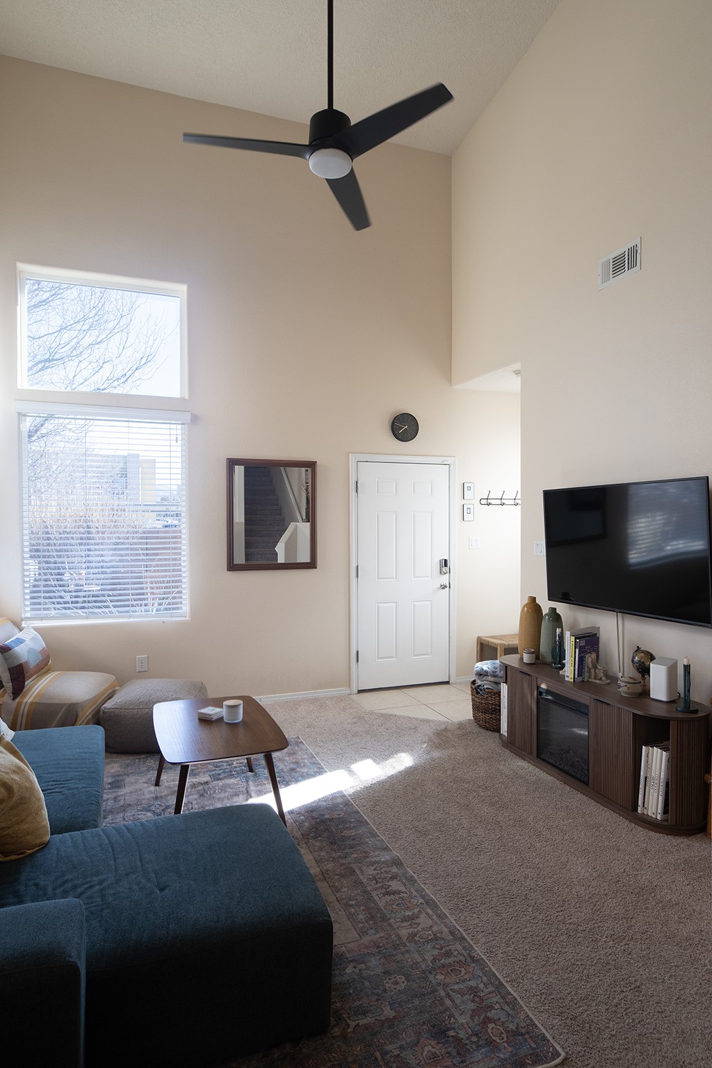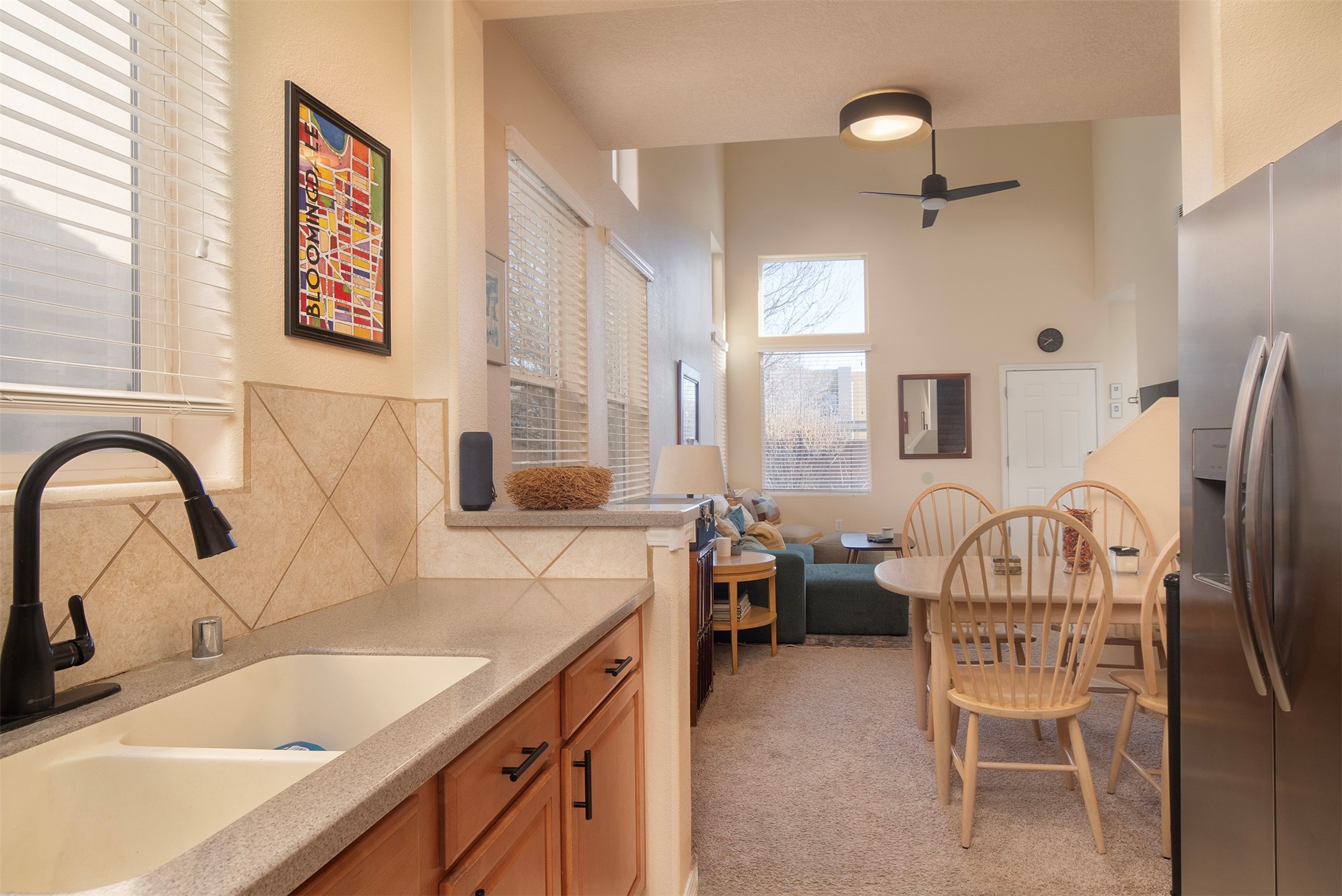 RANCHOS SANTOS MEDITERRANEAN MODERN. Modern Living in Ranchos Santos Condos of Santa Fe. Tucked away on a cul-de-sac, this Spanish Mediterranean style 2 Bed, 2 Bath, 2 Car garage condo has a convenient and beautiful lifestyle with nearby conveniences to grocery stores, restaurants, and shopping centers. This move-in ready two floor plan features with 18' ceilings in the Living Room that give an elevated and airy feel to the whole space. Great kitchen with modern appliances, wood cabinetry, matte black hardware, solid countertops. Open floor-plan with a first floor Bedroom Suite with private, enclosed patio, en-suite bath with separate shower, soaking tub and walk-in-closet. Upstairs is a second bedroom, full bath, laundry room and a fantastic open loft. The large loft space is ideal for home office, flex and remote workers space, - ideal for office, yoga workout area, or second living area. The garage offers great space for storage. Features include refrigerated air conditioning, 2 car direct entry garage, solid surface kitchen countertops, upgraded cabinets, Dish Washer, and Range, microwave, tile flooring, ceiling fan. Built in 2009 by Centex Homes.