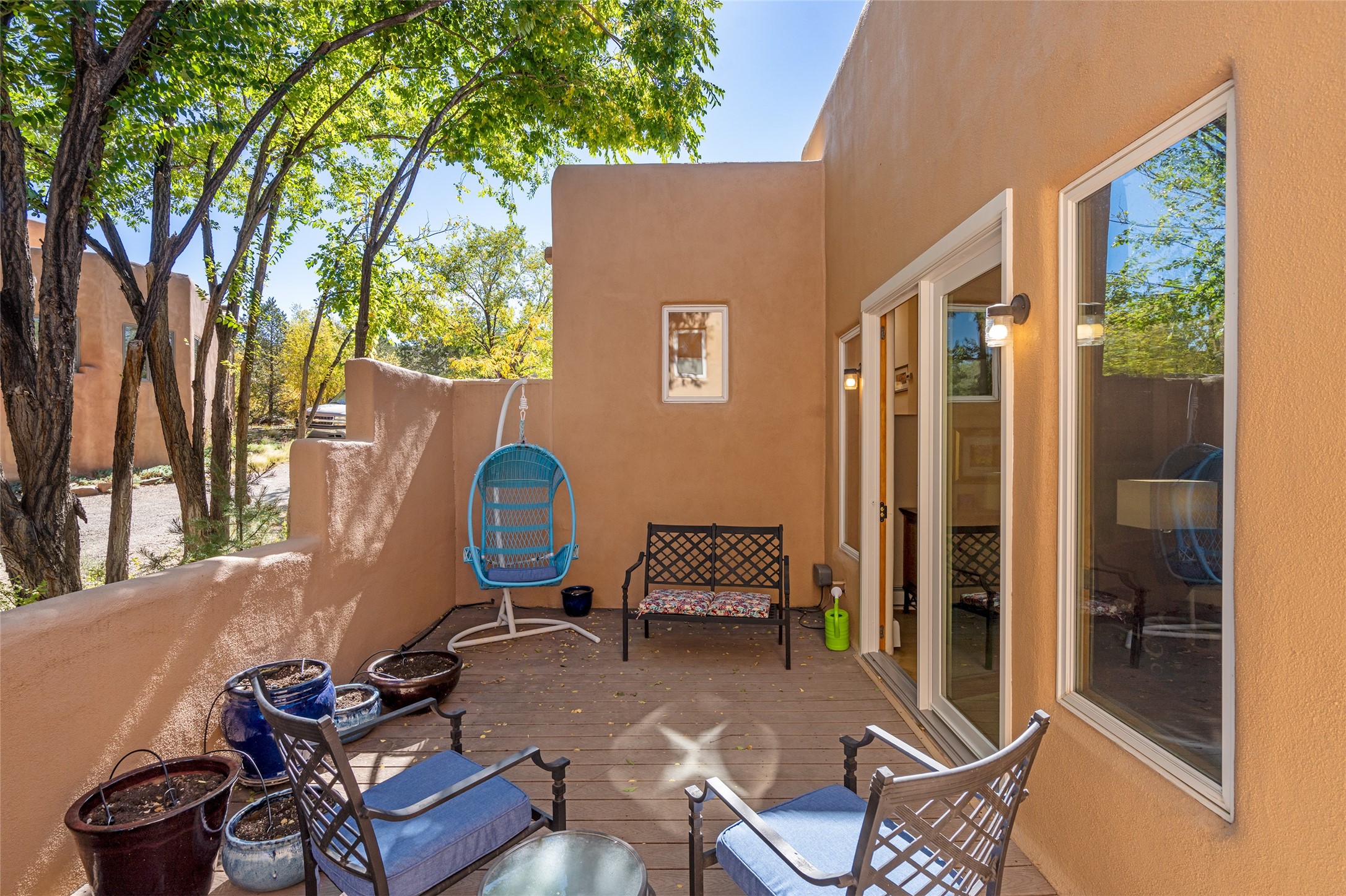 Immaculate Santa Fe Retreat in Estancia Primera! Nestled in the foothills just above the Santa Fe Plaza, this exceptional home offers the perfect blend of elegance, comfort, and location. Thoughtfully remodeled and meticulously maintained, this property is a true gem for those seeking refined Santa Fe living with modern luxury. At the heart of the home, the showstopping kitchen-- remodeled by Kitchens by Jeannine--is a chef's dream. Featuring premium cabinetry with abundant storage, high-end appliances including a Viking Range and Sub-Zero Refrigerator, and striking thick-slab Esprit de Santos granite countertops with elegant copper veining, this kitchen truly inspires. Light maple wood floors flow through the living spaces, where tall beamed ceilings, double patio doors, and a classic kiva fireplace create a warm and inviting ambiance. The elevated primary suite is a private haven, complete with its own fireplace and a beautifully remodeled bath. The oversized walk-in closet is a dream, offering generous storage and thoughtful design. Two additional bedrooms--one with its own cozy outdoor space and charming Santa Fe style bath--offer wonderful flexibility for guests or work-from-home living. Additional highlights include freshly repainted interiors, an immaculate garage with epoxy floors and new cabinetry, and a serene walking path just behind the home leading into downtown Santa Fe. Located in the sought-after Estancia Primera community, residents also enjoy access to a seasonal outdoor swimming pool and tennis courts. This immaculate foothills home combines Santa Fe charm, luxurious upgrades, and an unbeatable location--just minutes from world-class dining, galleries, and the historic Plaza.
