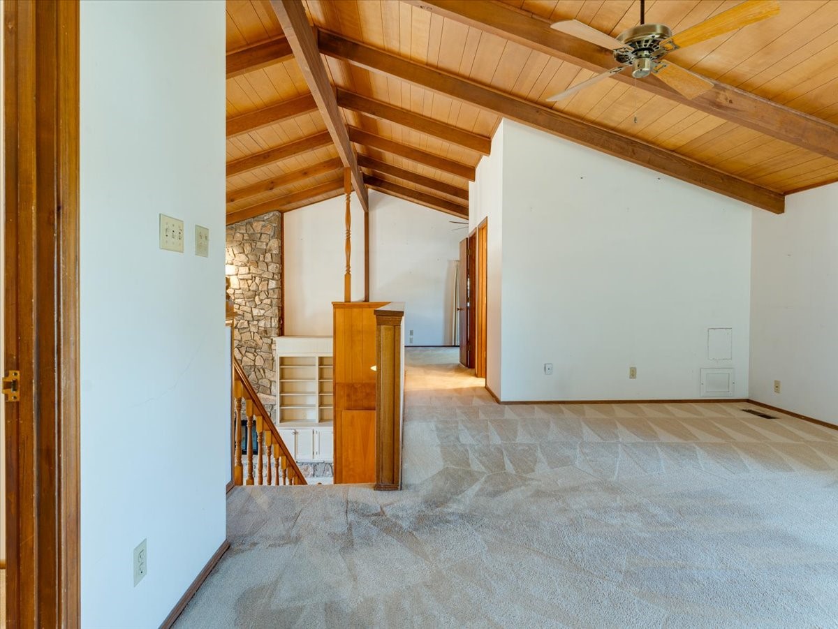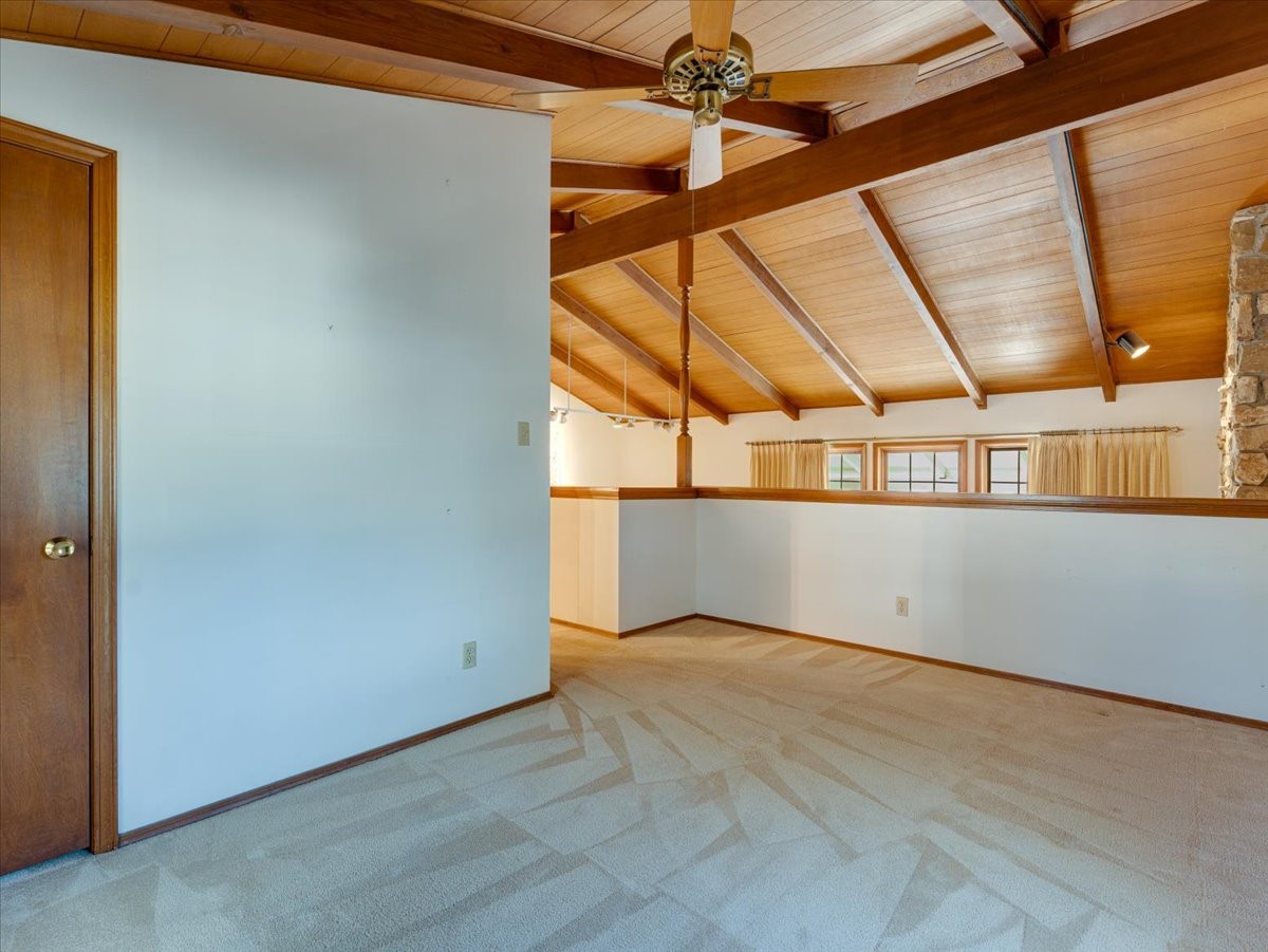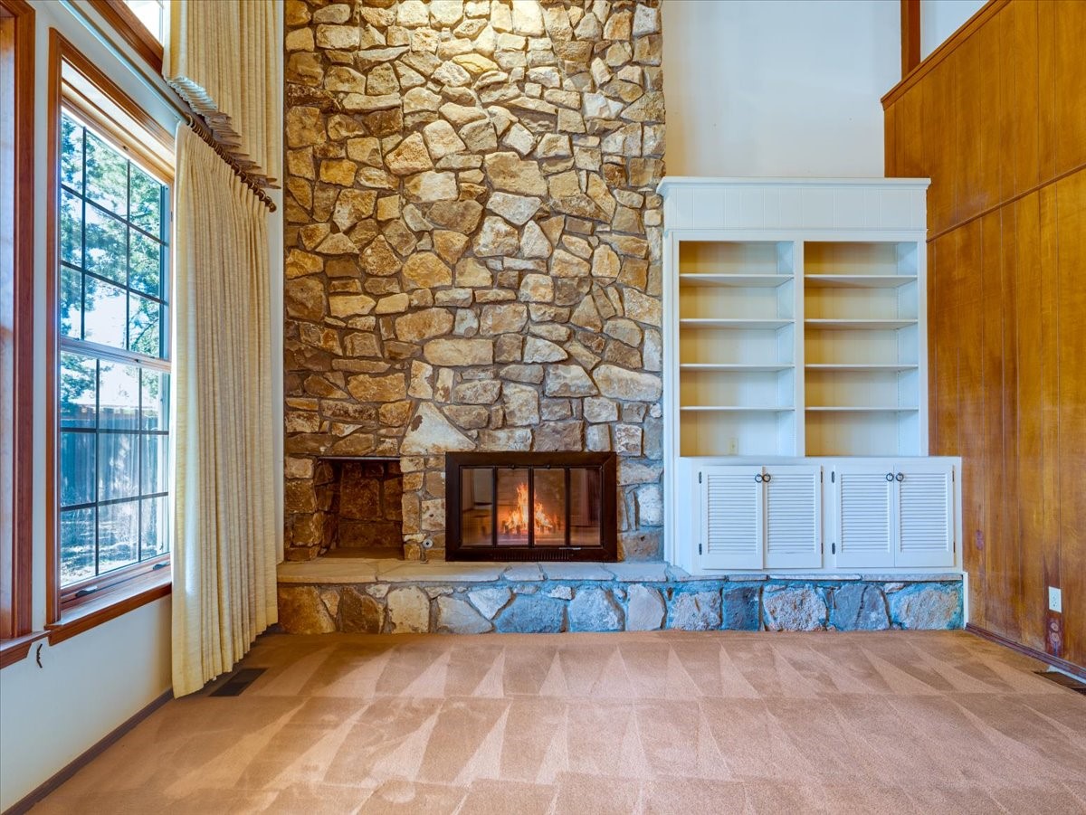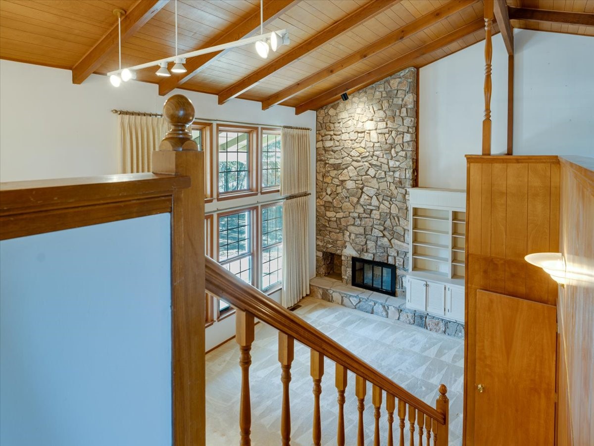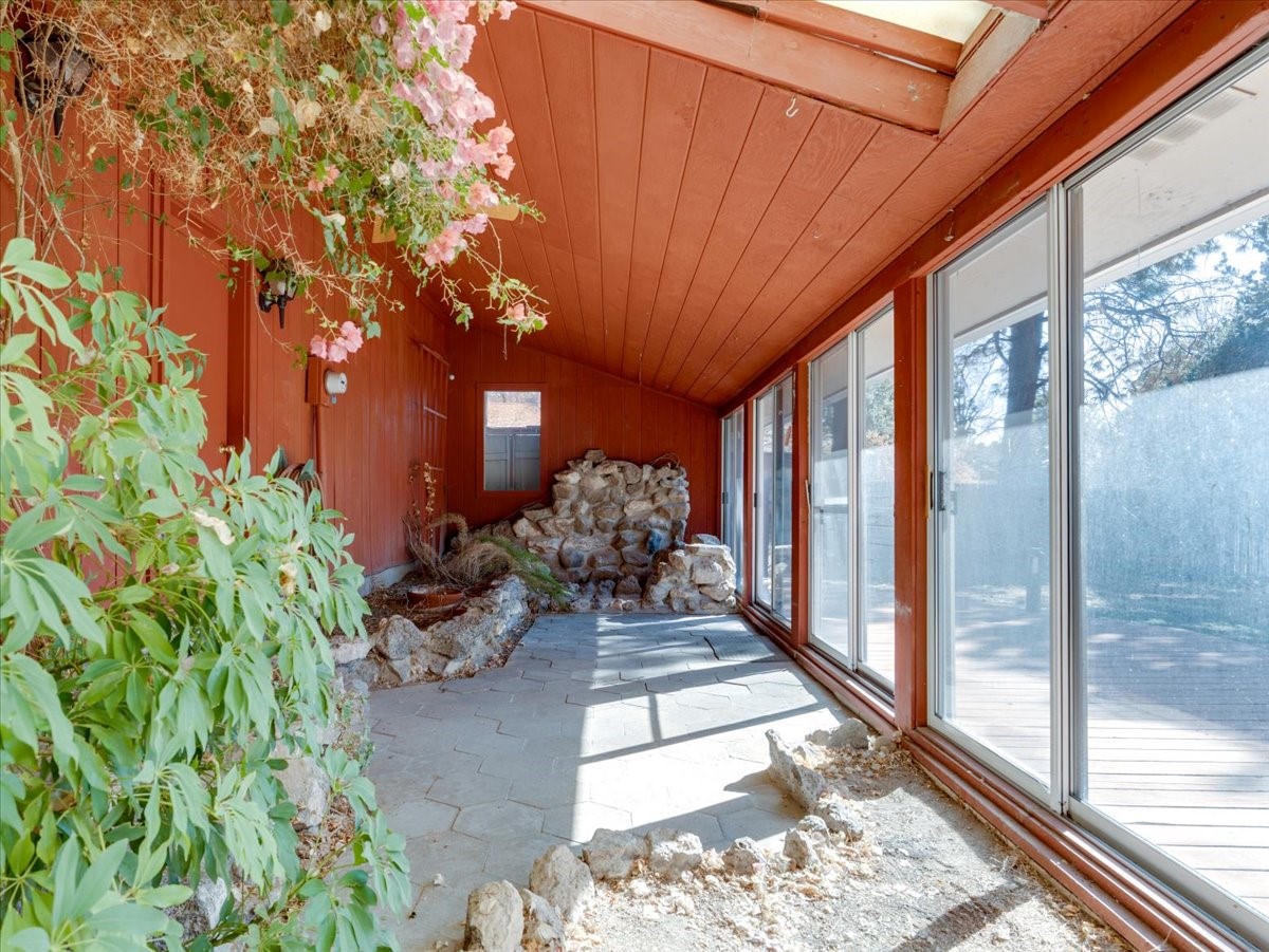 This beautiful two-story home offers 3 bedrooms and 2 bathrooms with a thoughtfully designed layout and striking architectural features. The main living area showcases soaring ceilings, beautiful oversized windows that flood the space with natural light, and a gorgeous rock fireplace that serves as a dramatic focal point. A wonderful sunroom features built-in planters and sliding glass doors that open to a very large backyard, creating the perfect indoor-outdoor living space for relaxing or entertaining. Upstairs, a spacious loft overlooks the living room and includes a full bathroom, making it an ideal third bedroom, home office, or flexible living area. Downstairs, two well-appointed bedrooms share a convenient Jack-and-Jill bathroom, perfect for family or guests. With its open feel, unique design, and warm, inviting character, this home is truly special. Square footage includes 362 sqft sunroom.