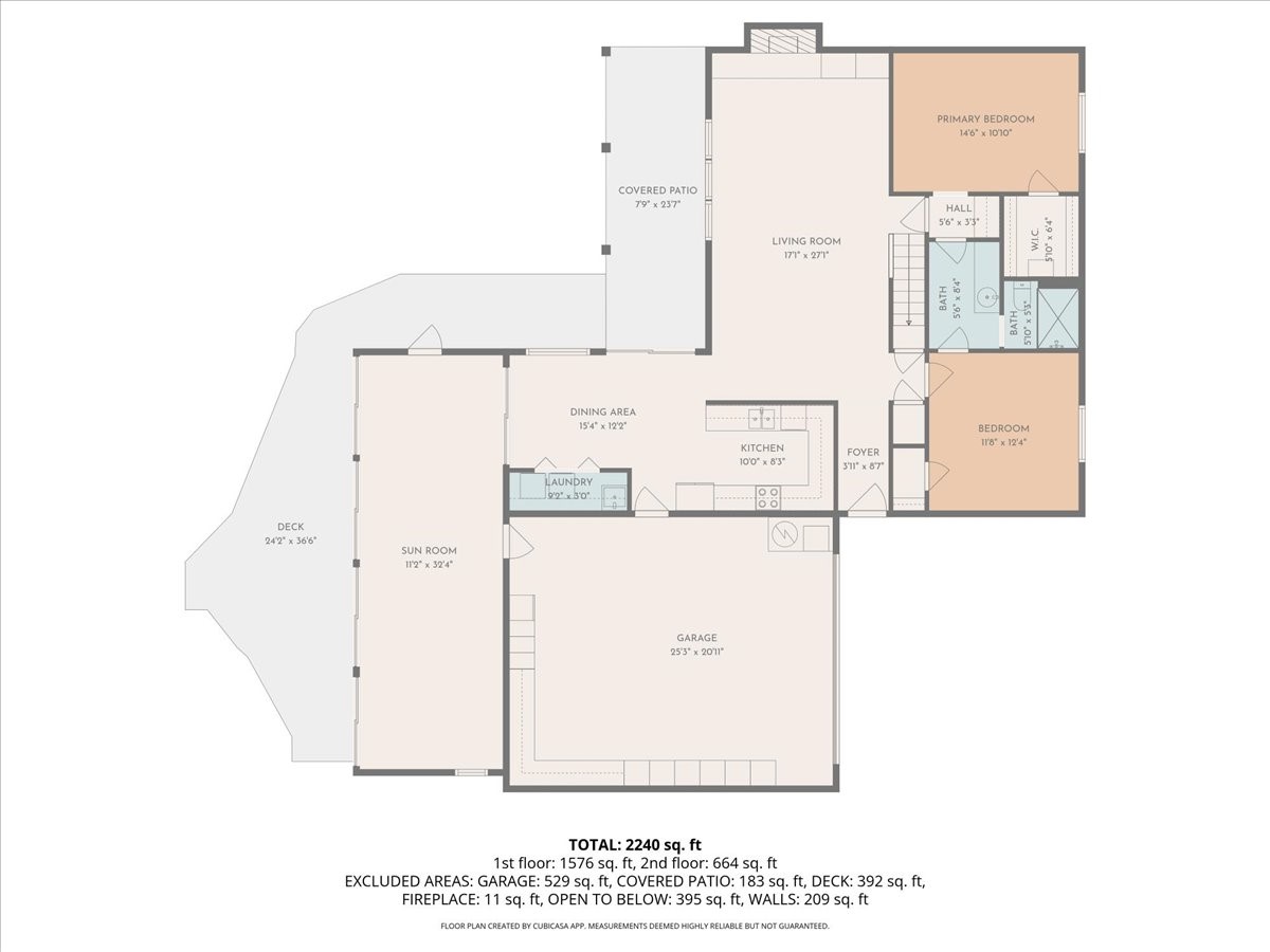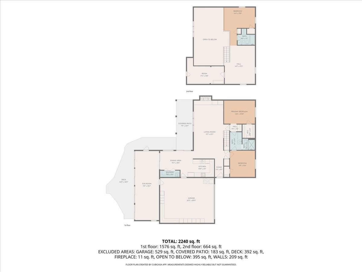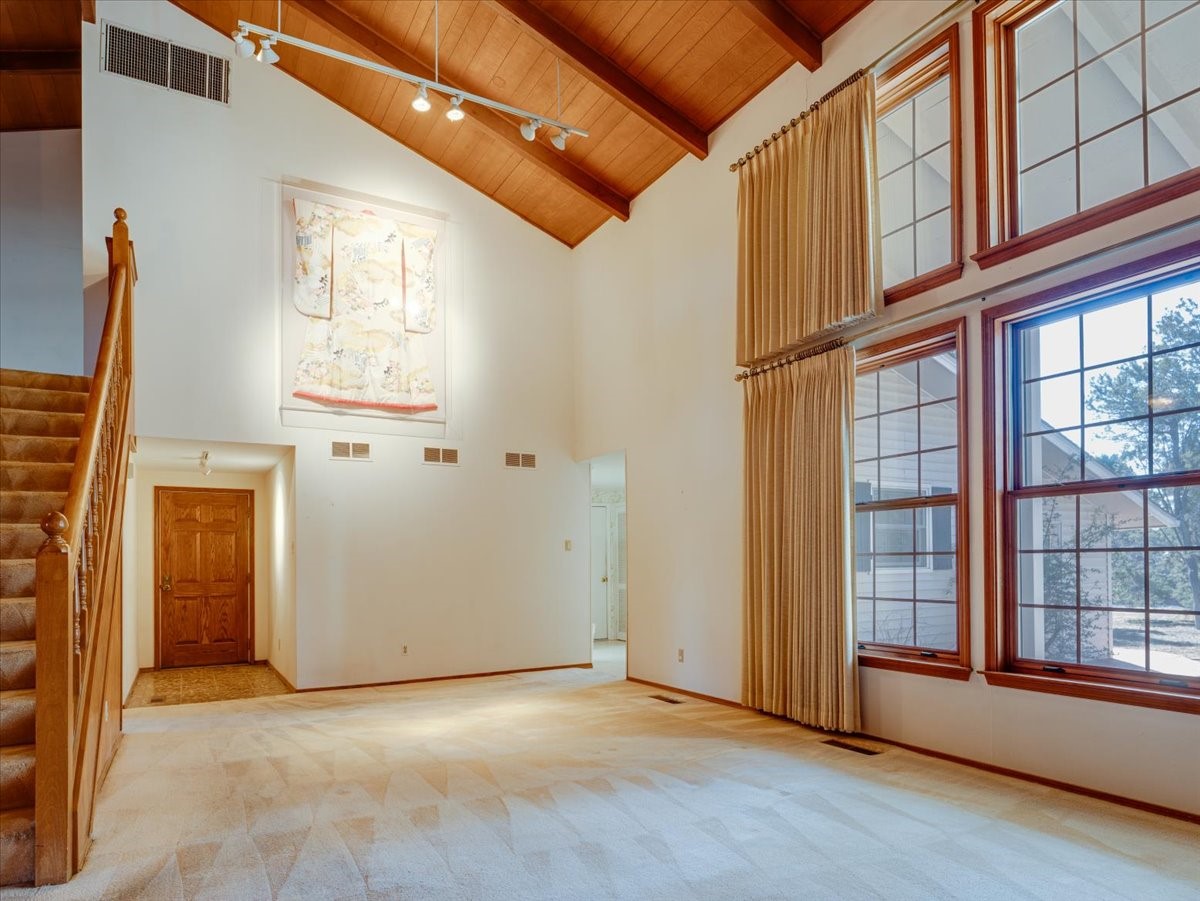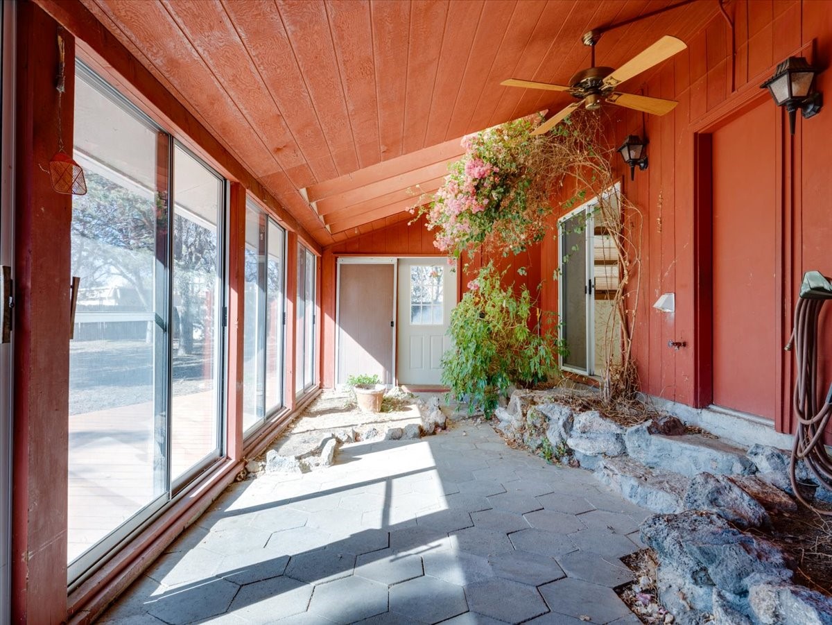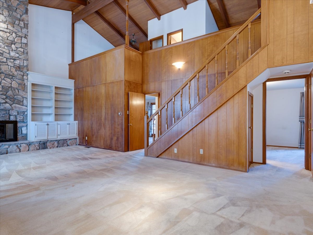 This beautiful two-story home offers 3 bedrooms and 2 bathrooms with a thoughtfully designed layout and striking architectural features. The main living area showcases soaring ceilings, beautiful oversized windows that flood the space with natural light, and a gorgeous rock fireplace that serves as a dramatic focal point. A wonderful sunroom features built-in planters and sliding glass doors that open to a very large backyard, creating the perfect indoor-outdoor living space for relaxing or entertaining. Upstairs, a spacious loft overlooks the living room and includes a full bathroom, making it an ideal third bedroom, home office, or flexible living area. Downstairs, two well-appointed bedrooms share a convenient Jack-and-Jill bathroom, perfect for family or guests. With its open feel, unique design, and warm, inviting character, this home is truly special. Square footage includes 362 sqft sunroom.