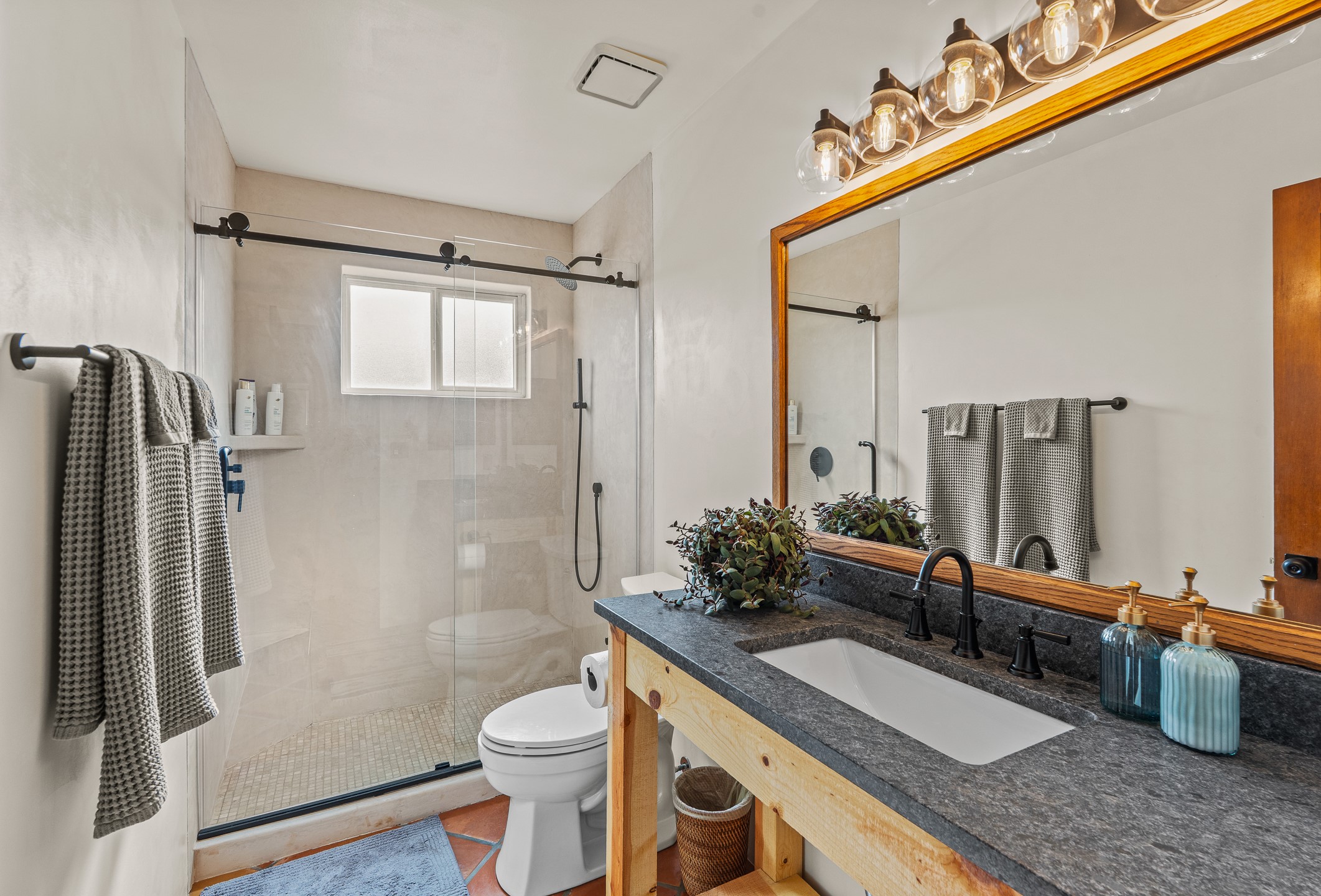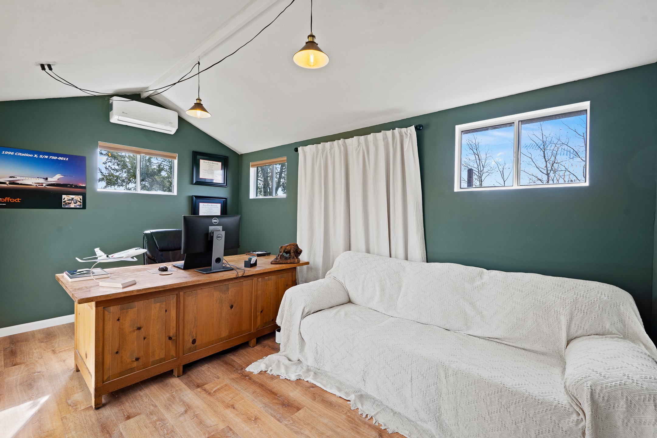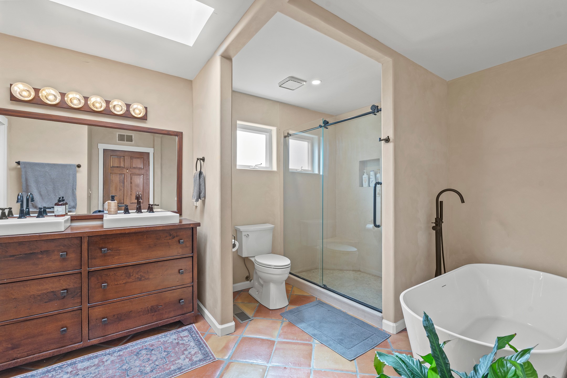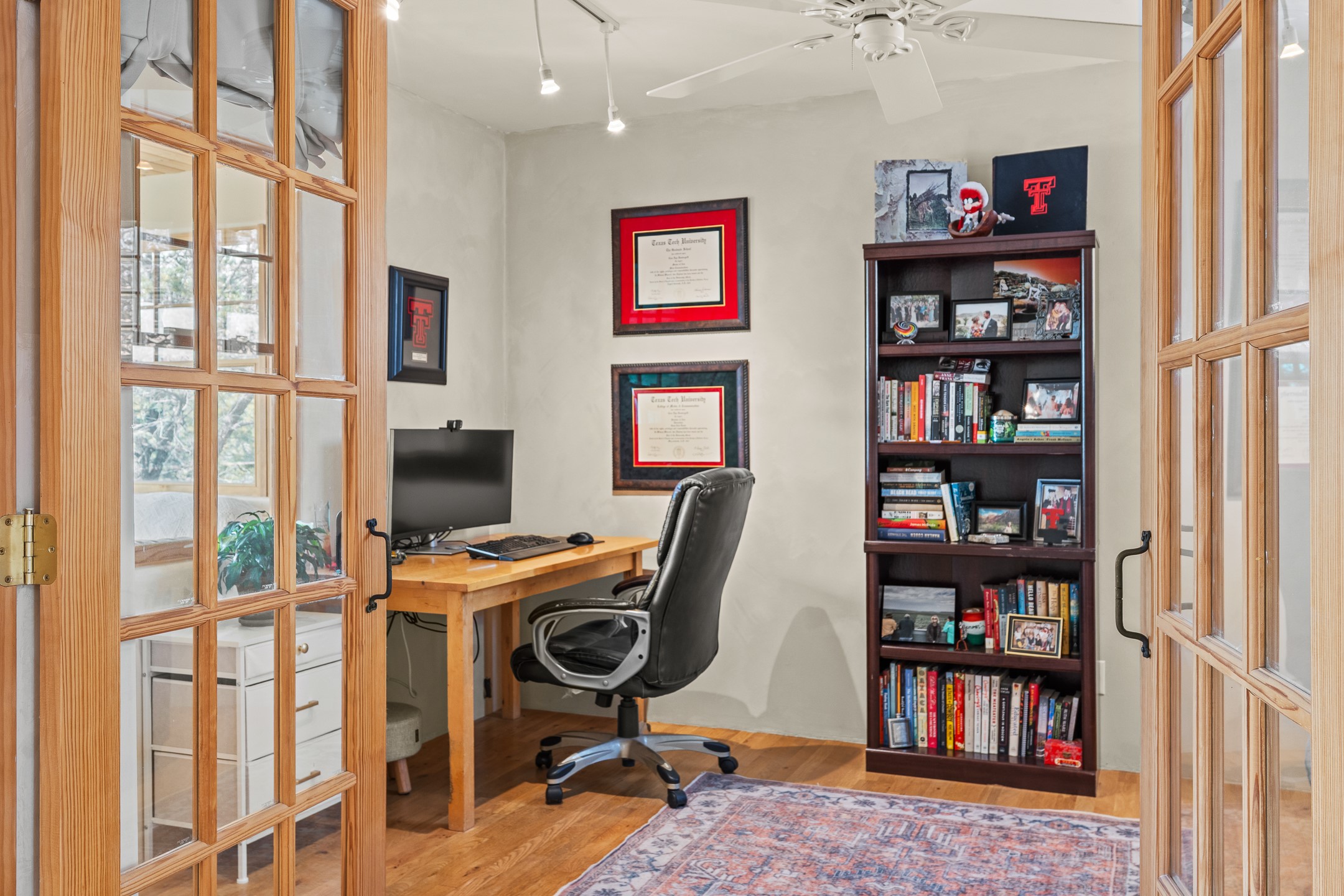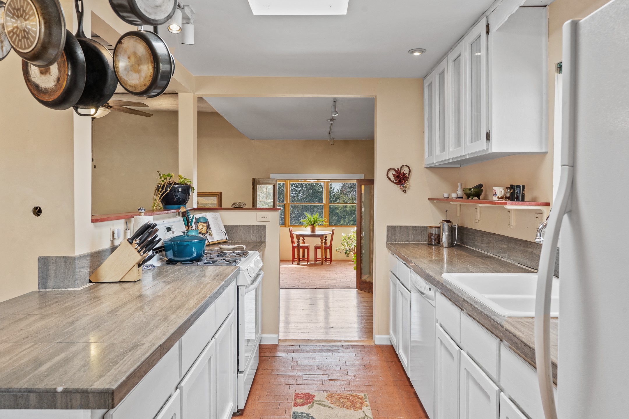 This beautifully renovated 2,025 sq. ft. home in Devargas Heights, just off Old Pecos Trail, is warm, inviting, and exceptionally versatile. Offering 2 bedrooms, 2 full baths, a dedicated office/bonus room within the main house, and a separate 140 sq. ft. detached studio currently used as an office, the layout supports today's flexible lifestyles with ease.The living room is filled with natural light, accented by classic vigas and a charming corner kiva fireplace. The kitchen features beautifully tiled countertops and white cabinetry, and the open-concept design seamlessly connects the kitchen, dining, and living areas. From the dining room, enjoy lovely views of Sun Mountain. An unexpected bonus is the approximately 300 sq. ft. west-facing secondary living area--bathed in light and perfect for relaxing, reading, or entertaining.The primary bath has been completely reimagined with double vanities, a glass-enclosed walk-in shower, and a sculptural vessel soaking tub. The guest bedroom and completely renovated guest bath are thoughtfully separated from the primary suite and reflect the same level of care and quality in the renovation. Outside, the large fenced backyard has beautifully manicured pions, an apricot tree, a large spruce tree and feels private and serene. A deep covered portal extends the living space outdoors, while a winding path leads to the detached studio, adding a touch of whimsy to this already special property.Located in the coveted Devargas Heights neighborhood and within the Wood Gormley school district, this renovated home offers comfort, flexibility, and exceptional value.