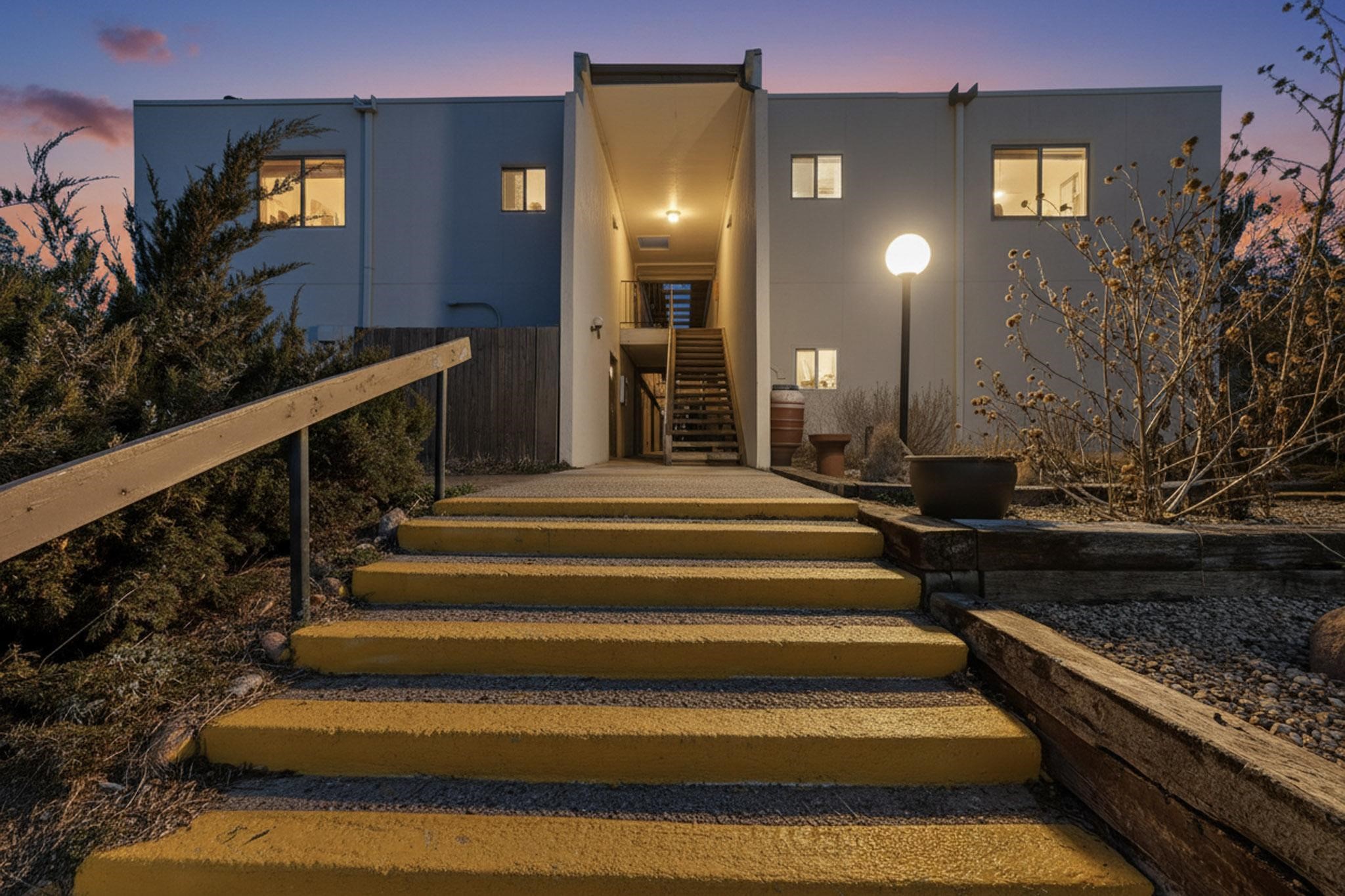 Live at the Los Arroyos Condos in the east area of town offers two bedrooms, a 1 3/4 bathrooms and it includes a large laundry and storage room with a stacked washer and dryer. The flooring is saltillo tile in all living areas and bedrooms (no carpet), the second bedroom has laminate wood flooring. This ground-floor condo overlooks the arroyo and trail! The Los Arroyos area is approximately 14 acres of trees, flowers, and shrubs. It's close to medical facilities, along with convenient shopping and a few minutes' drive to downtown. All utilities are included in the HOA fee except electric. The Los Arroyos Compound includes access to an array of amenities, including a clubhouse, an indoor pool, an exercise room, a dry sauna, outdoor space for social gatherings, and tennis courts.