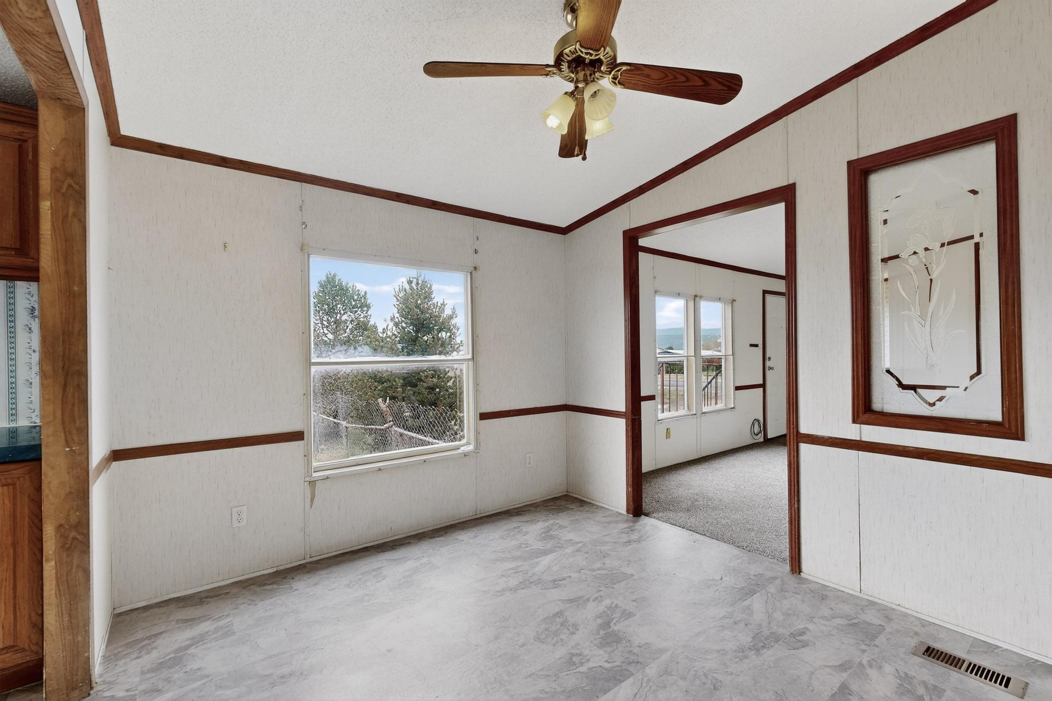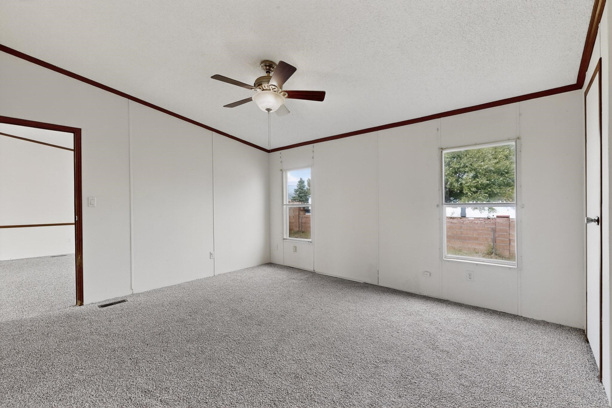 Well-maintained mobile home on a spacious lot in Las Vegas, NM, offering beautiful views of Hermit's Peak. The home has been freshly painted and features new carpet, giving it a clean and move-in-ready feel. Inside, you'll find a comfortable layout with plenty of natural light and potential to personalize. The generous lot provides room for outdoor living, gardening, or future improvements. Conveniently located near Storrie Lake State Park, you'll enjoy quick access to fishing, boating, and hiking. A great opportunity for a full-time residence, rental, or weekend getaway in northern New Mexico.