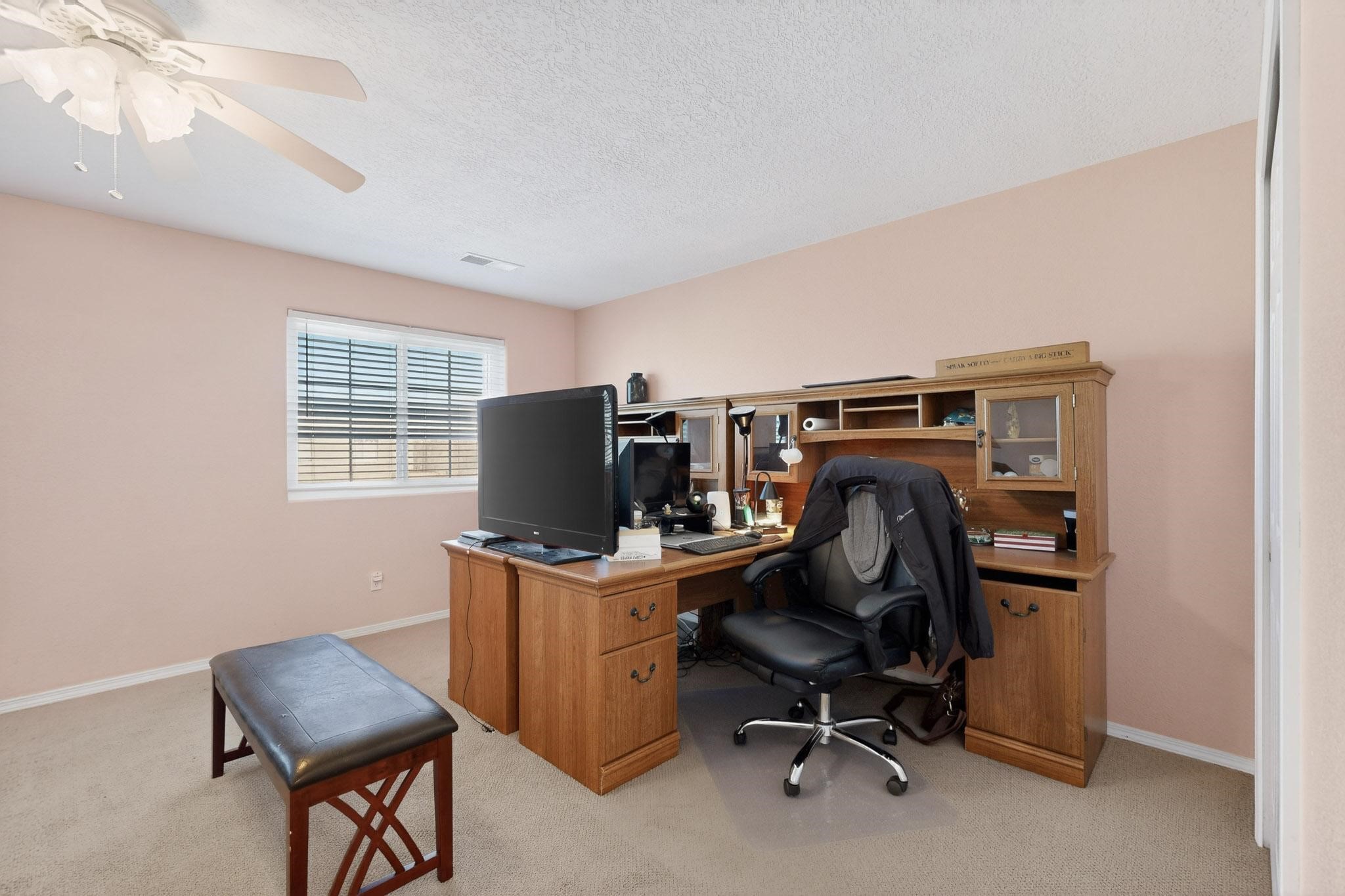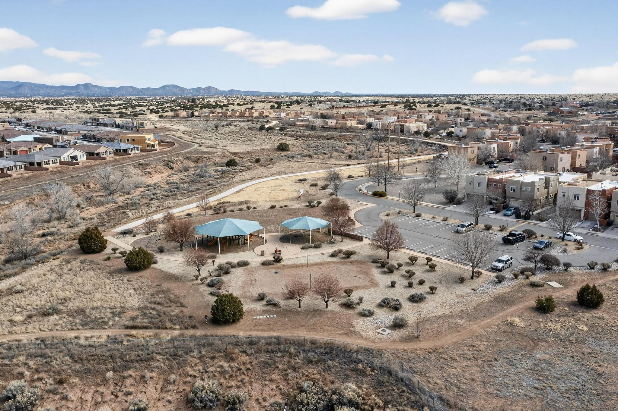 This beautiful home offers an exceptional living experience with spacious bedrooms designed to provide comfort and privacy for every member of the household. One of the standout features is the convenient bedroom and full bathroom situated on the main floor, making it ideal for guests, multi-generational living, or those who prefer single-level living without sacrificing space. The open kitchen is a true centerpiece of the home, featuring natural light , creating a warm and inviting atmosphere perfect for family gatherings, entertaining friends, or simply enjoying everyday meals.In addition to the kitchen, the home boasts two separate living areas, providing ample space for relaxation, entertainment, or quiet retreats.Whether you want to host a movie night, set up a home office, or create a play area for children, these versatile spaces can easily be adapted to suit your lifestyle needs.The backyard is thoughtfully designed with a low-maintenance, xeriscape landscape, which not only conserves water but also offers an easy-care outdoor living environment. This makes it perfect for those who enjoy spending time outside without the hassle of extensive yard work. The community itself enhances the overall living experience with three well-maintained parks, offering plenty of opportunities for outdoor activities, socializing with neighbors, and enjoying the beautiful Santa Fe weather. Recent upgrades to the home include brand-new windows that improve energy efficiency and add to the aesthetic appeal.The solar system installed on the property will be fully paid off at closing, providing significant energy savings and reducing your carbon footprint.Combining comfort, style, and modern efficiency, this home is situated in a highly desirable location that offers both tranquility and convenience. Whether you are looking for a family home or a peaceful retreat, this property delivers a perfect balance of functionality and charm, making it an excellent choice for your next move.