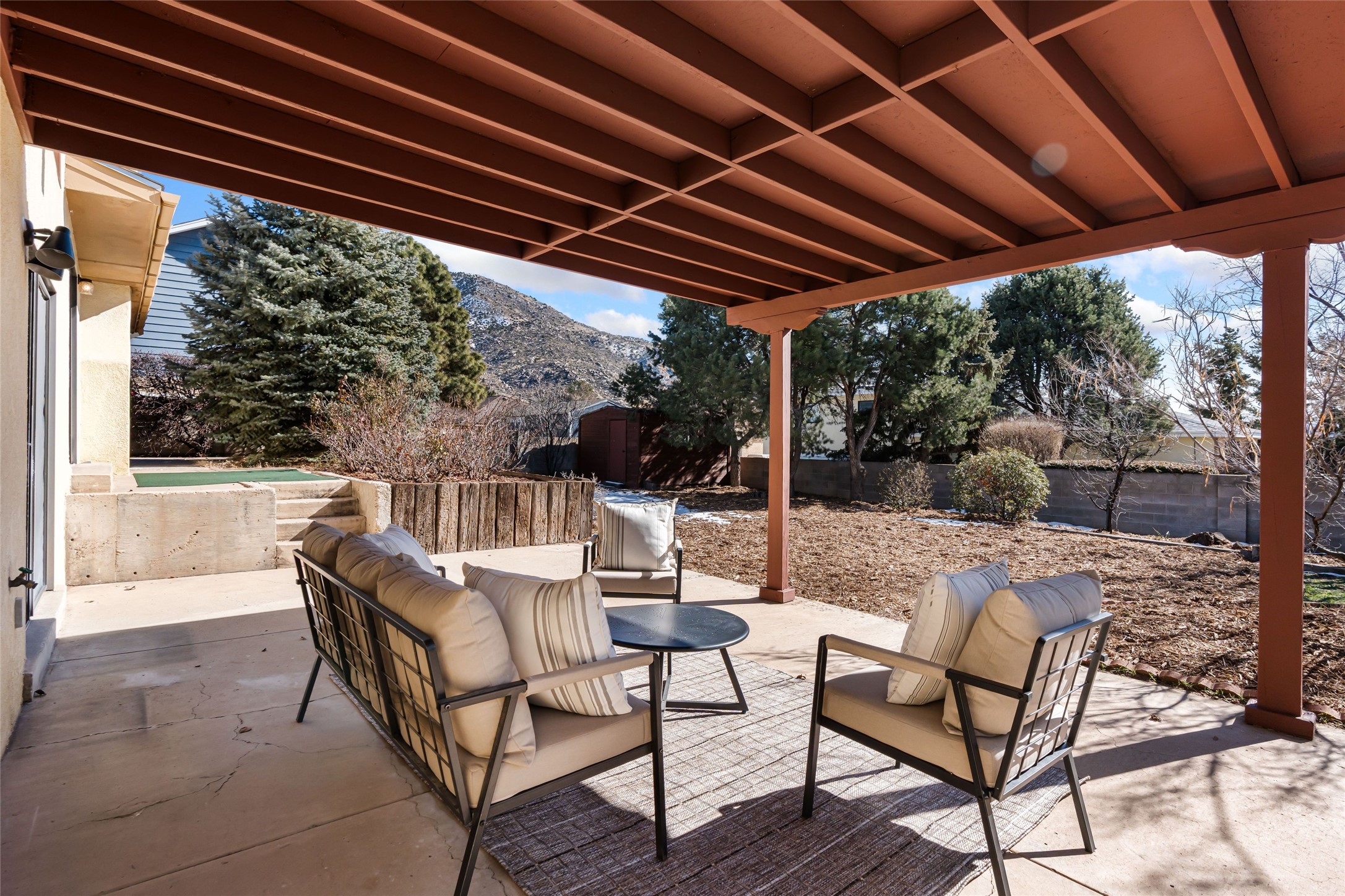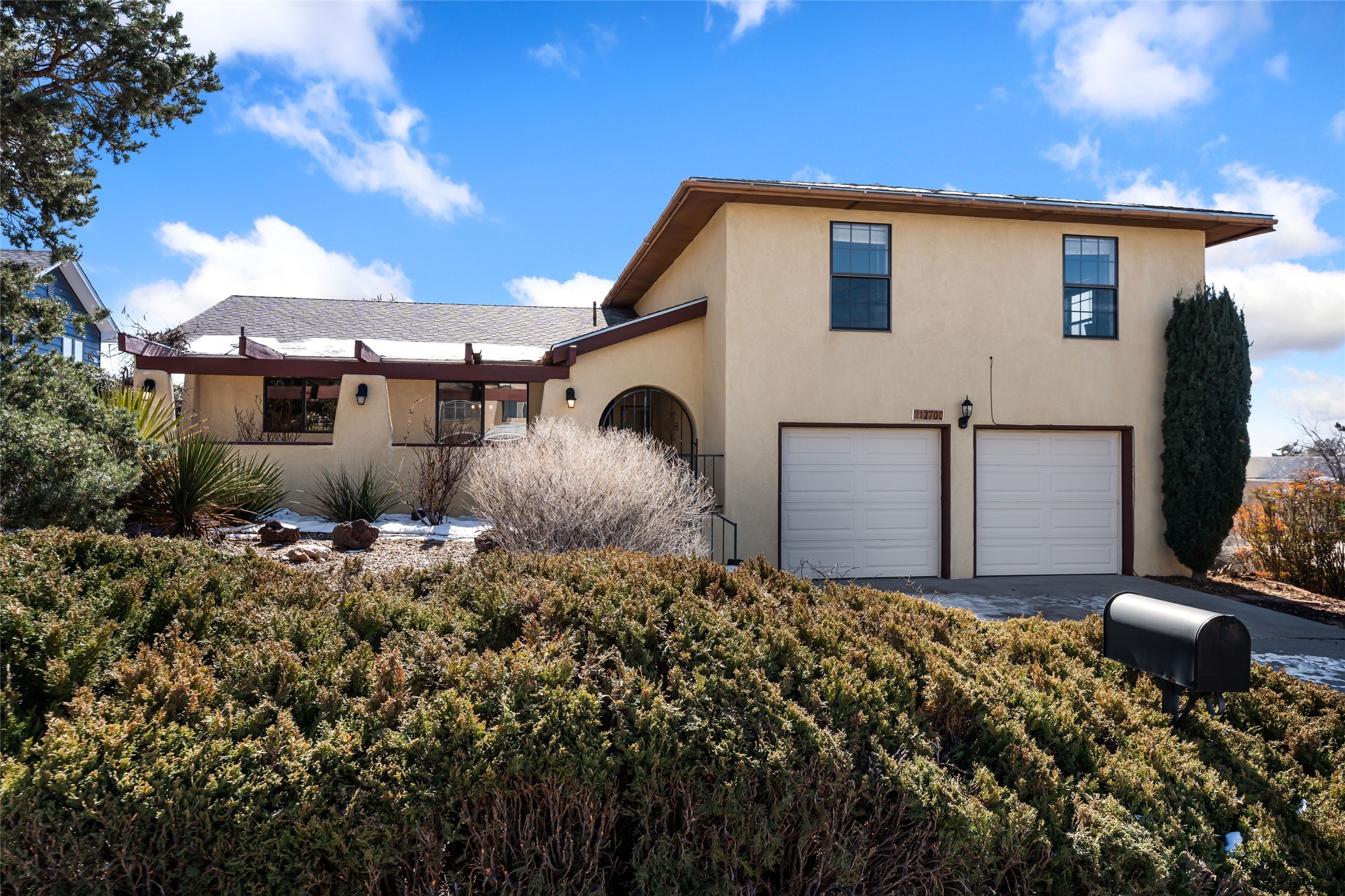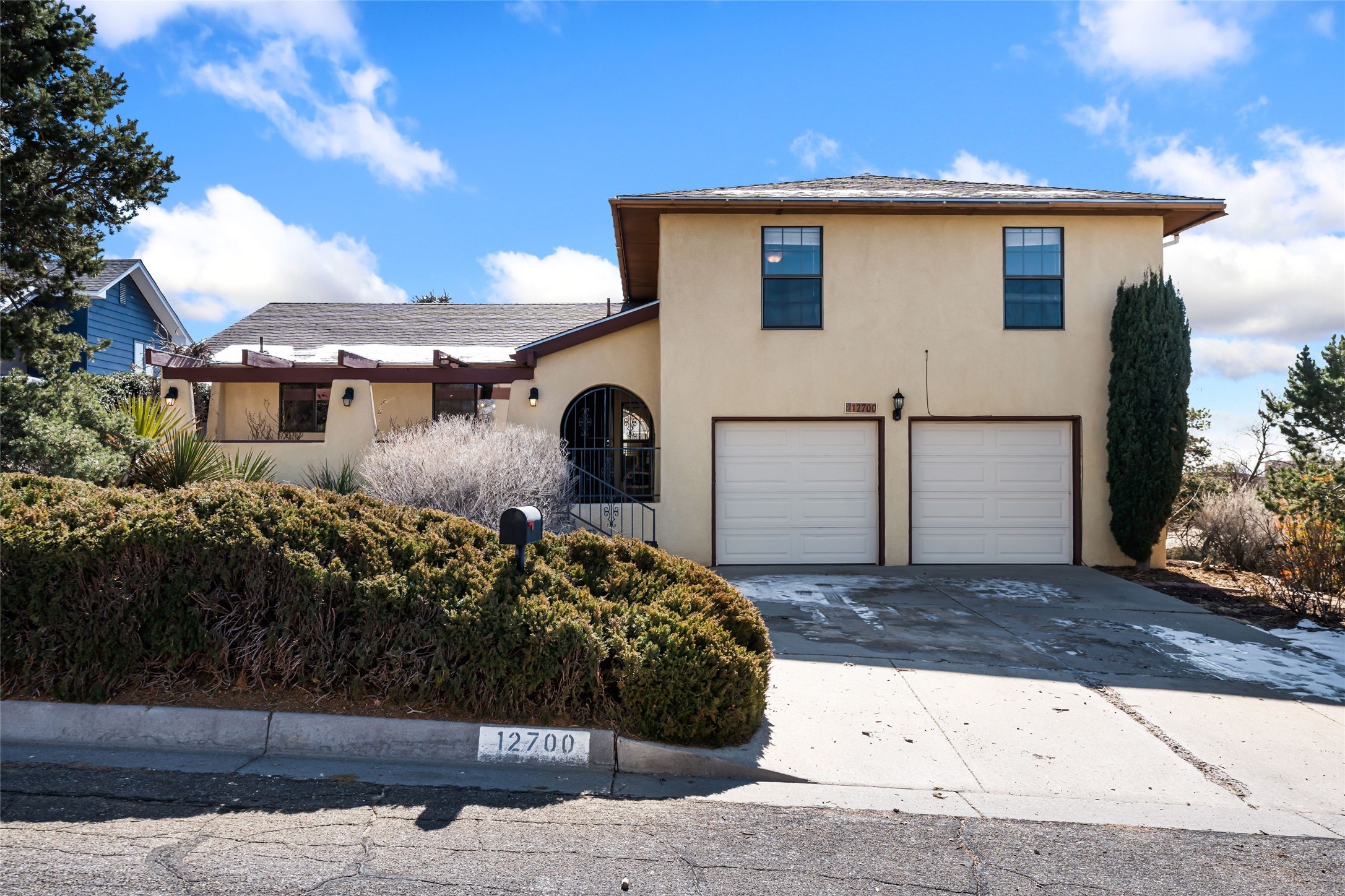 This lovely home in Glenwood Hills offers views of the Sandias, vistas of the mountains to the west, and city lights. The residence features a comfortable floor plan ~ a large living room with formal dining area and access to a patio and nice portal in the fenced backyard, an open light kitchen with new appliances and casual dining area, a big family room in the split-level downstairs with a powder room and also access to the portal and backyard, and three bedrooms with two bathrooms upstairs. The good-sized guest bedrooms have pretty mountain views, as does the primary suite balcony from which there are gorgeous picturesque sunsets and sparkling city lights. The finished garage has extra storage and a work area. A 14-month home warranty will be provided to the buyer. Conveniently located in the south foothills, this property will make a great home for the new owners to enjoy a wonderful Albuquerque lifestyle!
