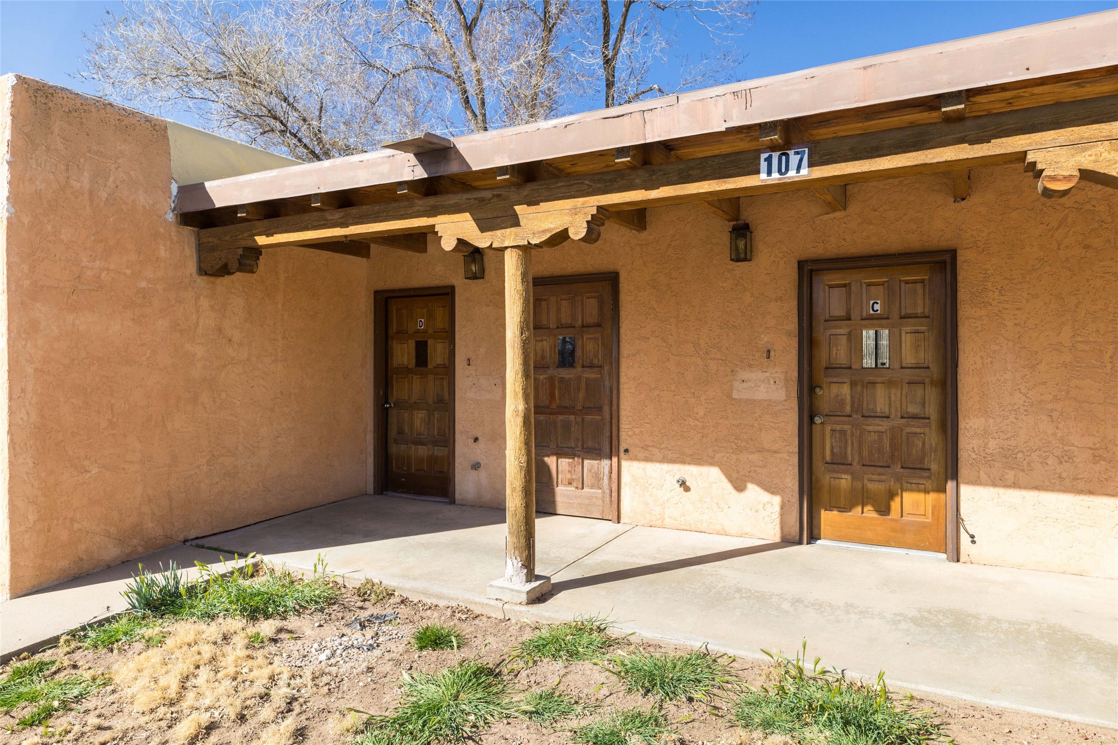 Experience the lifestyle of Downtown Santa Fe at Plaza Del Monte, a gated community located within one of the Southwest's most iconic destinations, just minutes from the historic Santa Fe Plaza. This rare offering presents a compelling opportunity for investors, second-home owners, and adventure travelers alike, with the added benefit of allowable short-term rentals. The community offers a unique and peaceful setting with nearby access to open space, hiking and biking trails, and outdoor recreation, while remaining close to Santa Fe's celebrated galleries, restaurants, and cultural landmarks. A rare chance to own in a community that blends lifestyle, location, and strong investment potential. This versatile duplex floor plan offers a 2-bedroom, 1-bath unit (917 SF) and a 1-bedroom , 1-bath unit (739 SF), both with two covered parking spaces per unit. Each residence features a traditional kiva fireplace and one features wood-beamed ceilings, adding warmth and classic Santa Fe charm to the living spaces. If you're not ready to update, the units can be enjoyed as they are. Take your time and update and add personal touches when the moment is right.