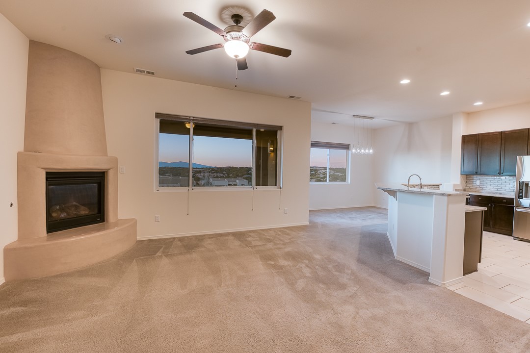 Nestled within the highly sought-after and prestigious Tessera subdivision, this exceptional 3-bedroom, 2-bath residence captures what Santa Fe living is all about, space, serenity, and absolutely breathtaking views. Perfectly positioned on a magnificent lot, this property enjoys nearly 360-degree vistas, offering endless skies and sweeping northern views that will stop you in your tracks.The open-concept design creates a seamless flow between the living and dining areas, where large picture windows frame the spectacular landscape like living artwork. The expansive north-facing views are also enjoyed from the covered back patio, an ideal setting for morning coffee, sunset unwinding, and year-round entertaining. The finished landscaping enhances the natural beauty of the setting, blending effortlessly with the surrounding scenery.Lovingly cared for and meticulously maintained, this home reflects true pride of ownership. Every space feels intentional, welcoming, and ready for its next chapter. With its thoughtful layout, stunning setting, and premier Tessera location, this property offers a rare opportunity to experience elevated Santa Fe living at its finest. All information is believed to be accurate, however, if any info is of material interest to the buyer such as size of home and or property size, the buyer is advised to independently verify.