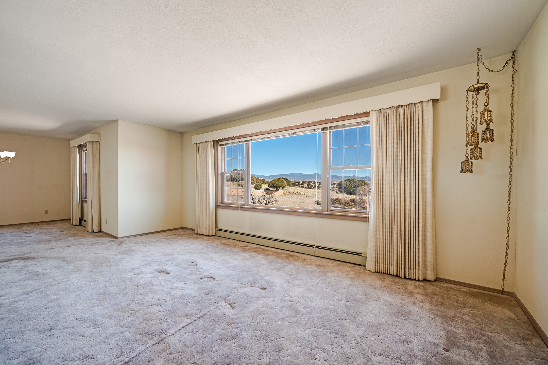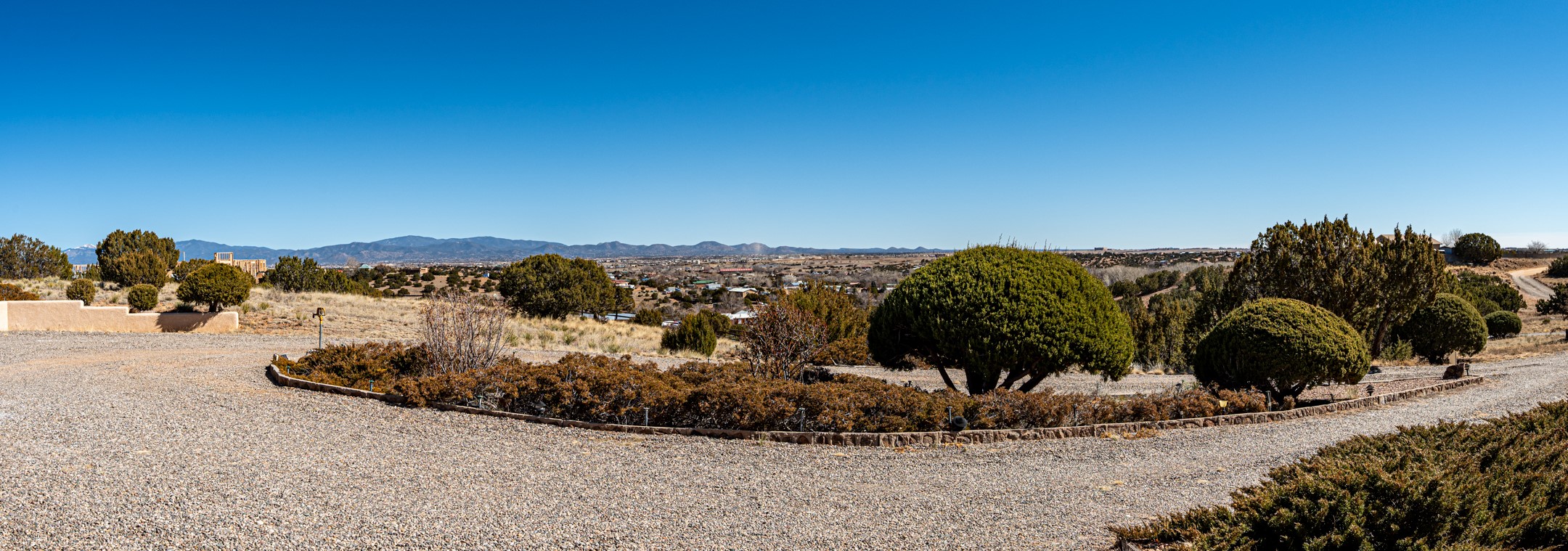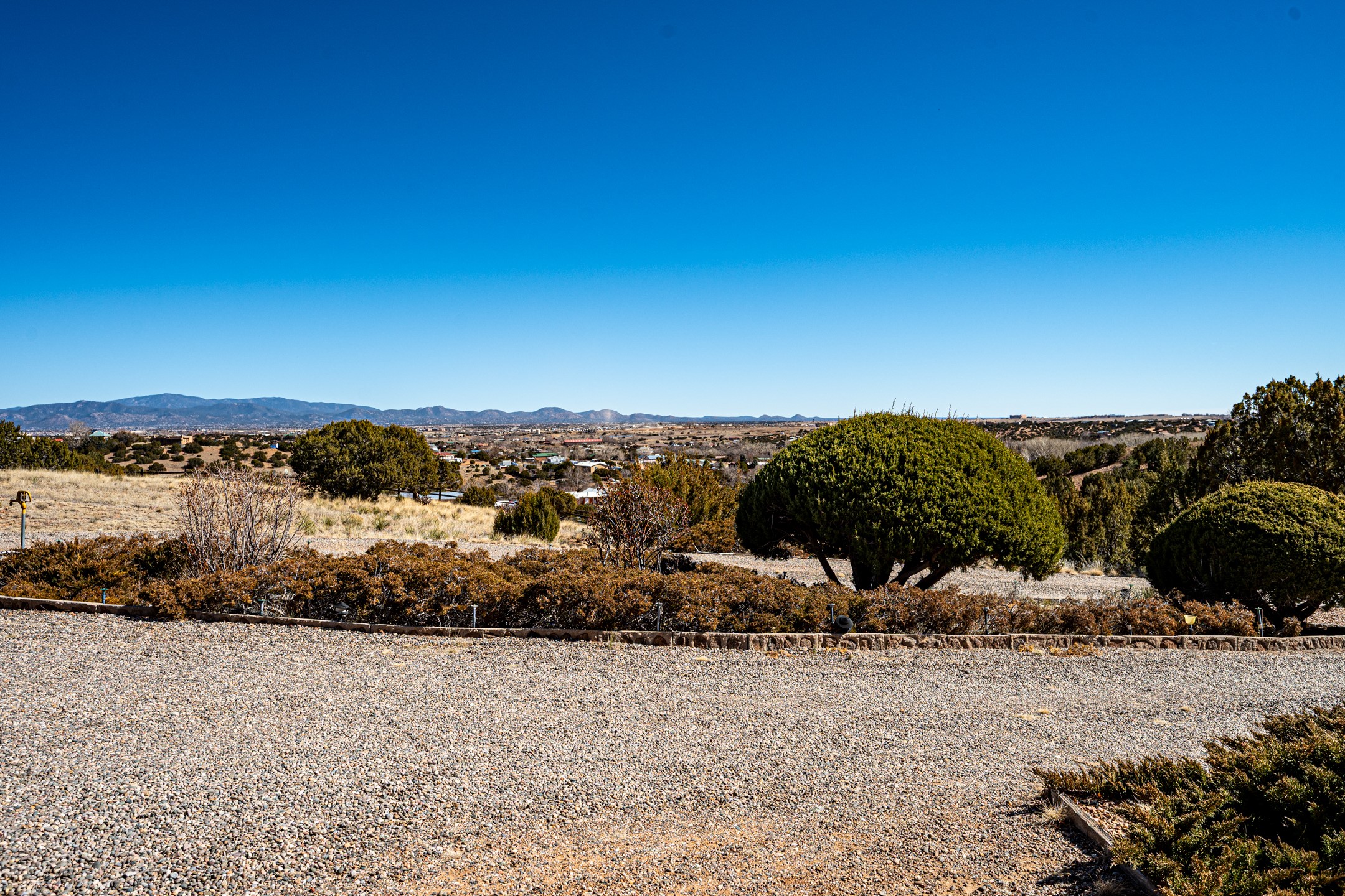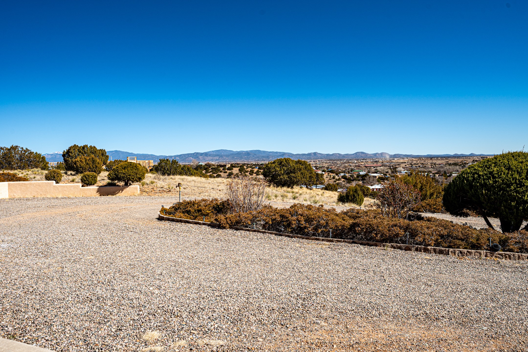 Astounding Sangre Views abound from this hilltop perch! This single level one owner home is sited on 5 acres and features 2 fireplaces, 3 bedrooms, spacious floorplan, separate laundry room with adjacent powder room, 3 garage bays and plenty of room to garden. There are mature apple trees and a fenced vegetable plot. The home offers a private well and natural gas. Ojo Springs and El Rancho de Los Golondrines are both just up the road and this country setting in the Village of La Cienega is less than 30 minutes to The Santa Fe Plaza!
