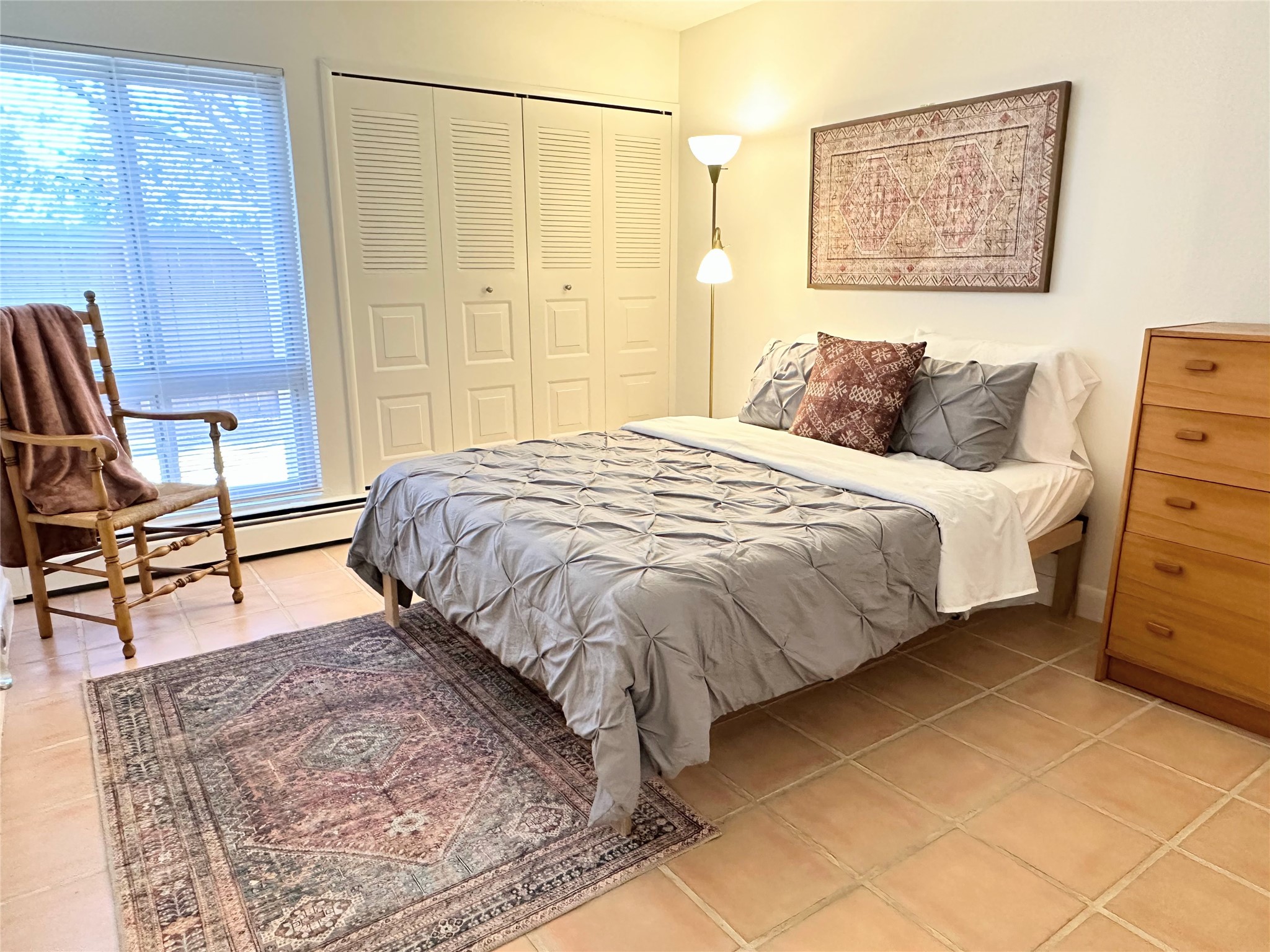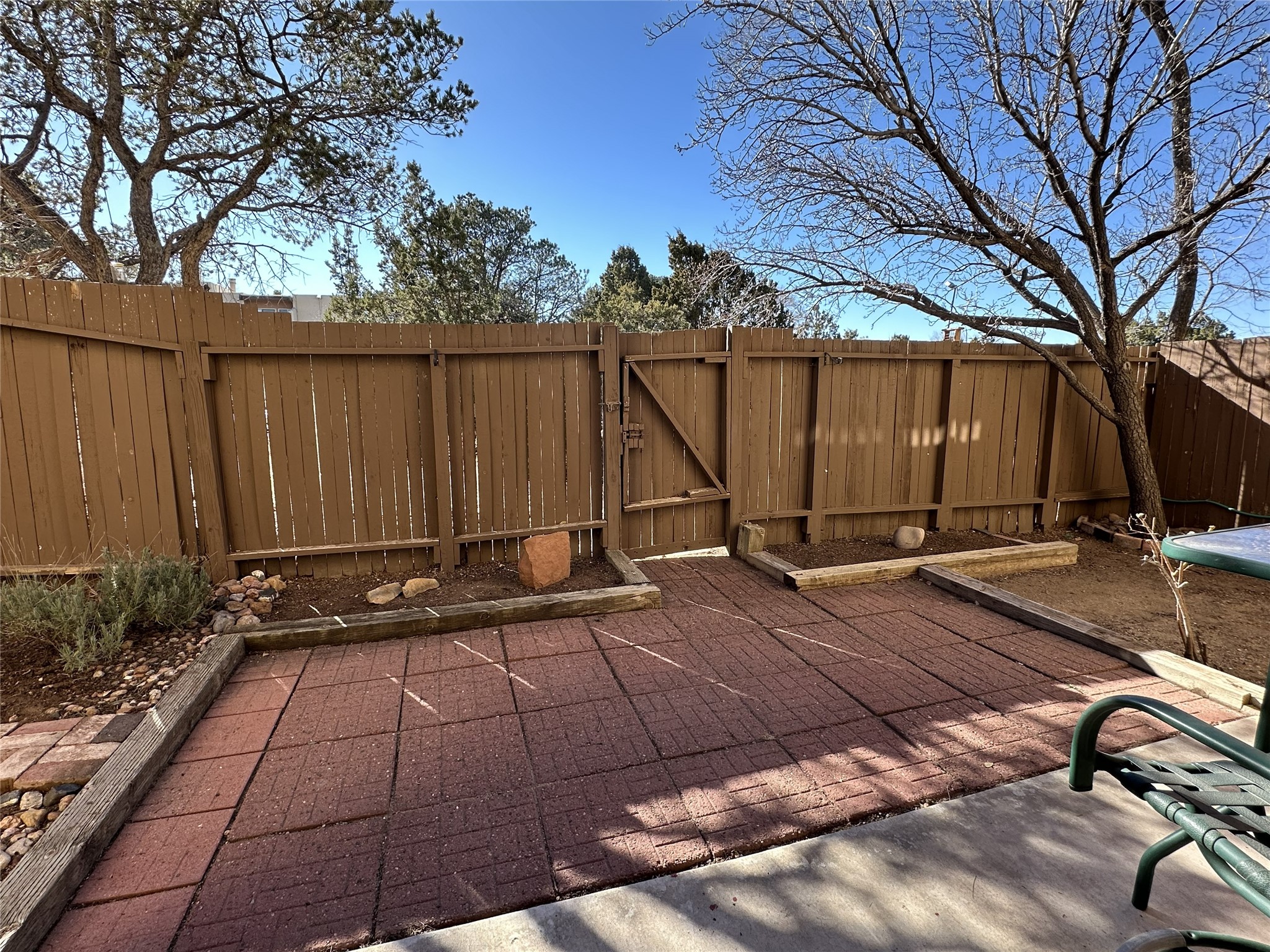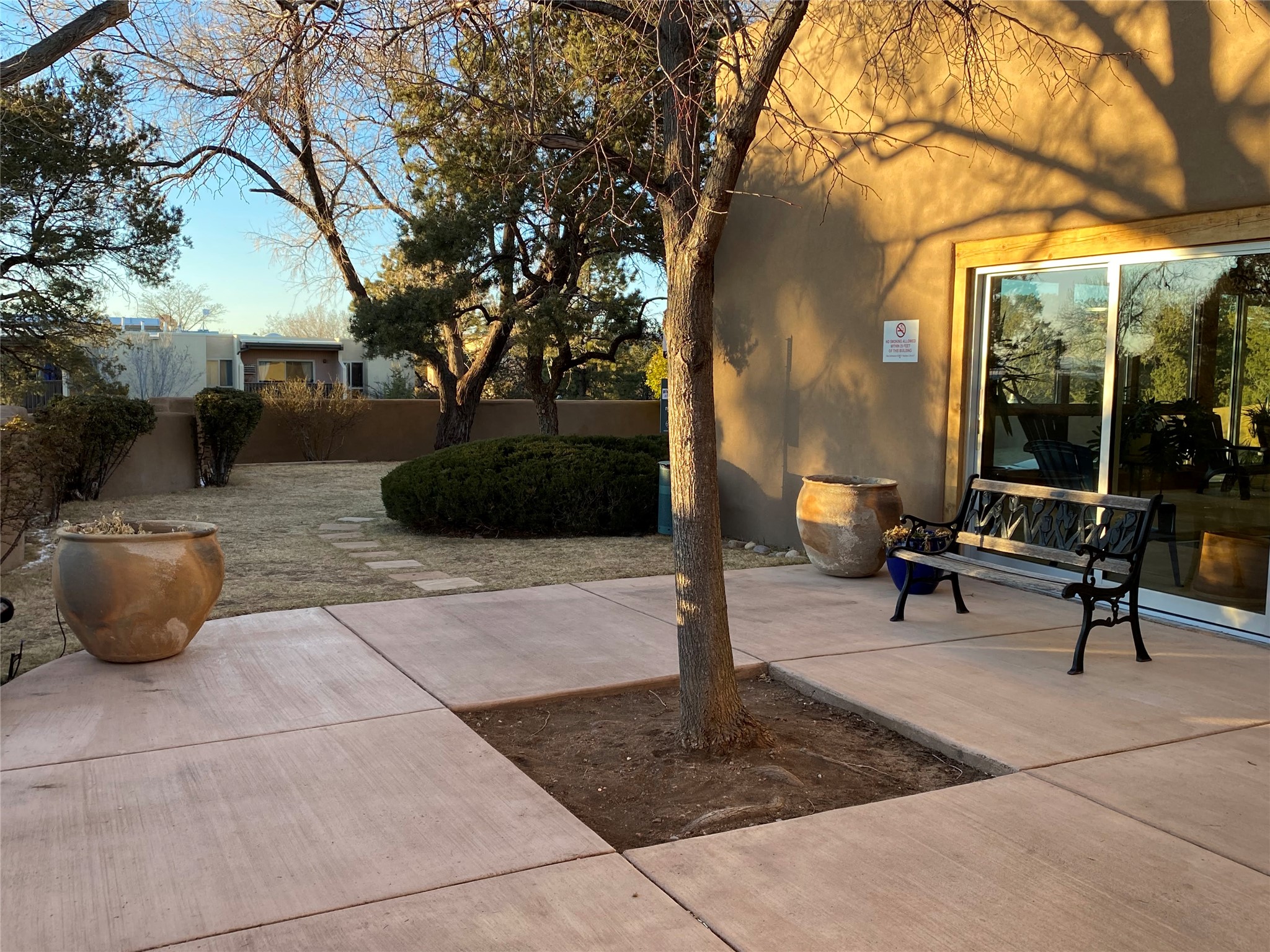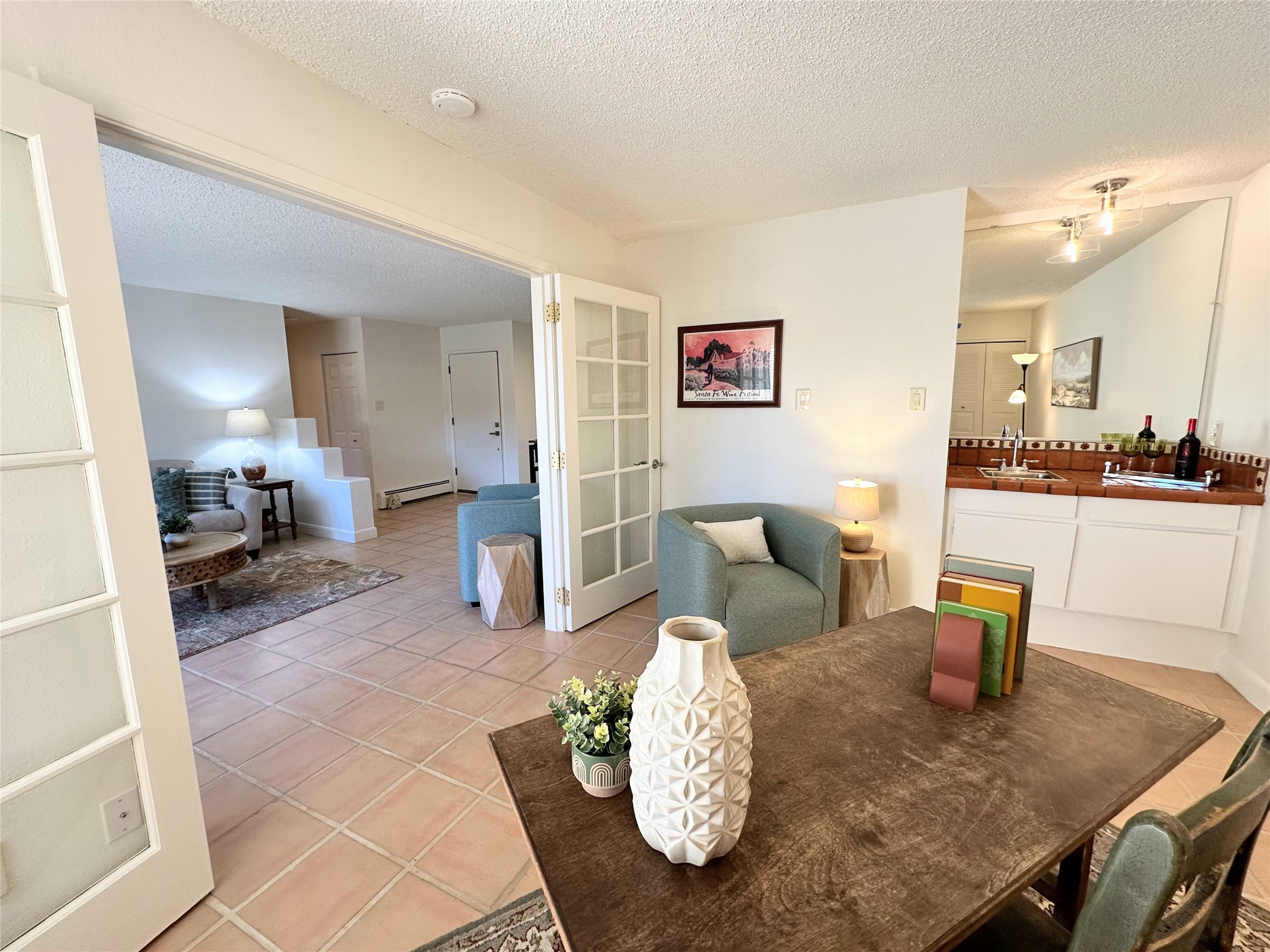 Welcome to desirable Los Arroyos Compound, 147 Calle Ojo Feliz, Unit E. Comfort and style come together in this thoughtfully updated downstairs condo with direct access to open space and walking trails.Recent updates include painting throughout, new lighting, new hardware on kitchen cabinetry, new kitchen faucet, disposal, new stainless appliances, and new stack washer dryer. Previous upgrades include tiles floors, kitchen countertops and tile backsplash, French doors, and bathroom vanity with granite top.Unique to this unit, the French doors in the second bedroom make the space highly versatile. They create an open, connected feel when desired while still providing privacy when closed. This allows the room to function comfortably as a bedroom or as a bright, inviting home office, study, or creative workspace. This style adds character no matter how the space is used.Enjoy the benefits of a centrally located community set on approximately 18 acres, featuring native landscaping, all designed to create a serene atmosphere with walking trails. Ideally situated near schools, shopping destinations, medical facilities, and Downtown Santa Fe. This move-in ready 2-bedroom, 1-bath home blends style with everyday convenience, ideal for a busy lifestyle, weekend getaway, or investment property.Community amenities include: an indoor heated year-round pool, sauna, weight room, hospitality room, tennis and basketball courts, and walking trails. One reserved off-street parking space, with additional guest parking available.Condo fee: $385/monthly, includes baseboard hot water heat, water, sewer, refuse, building and grounds maintenance, and insurance.