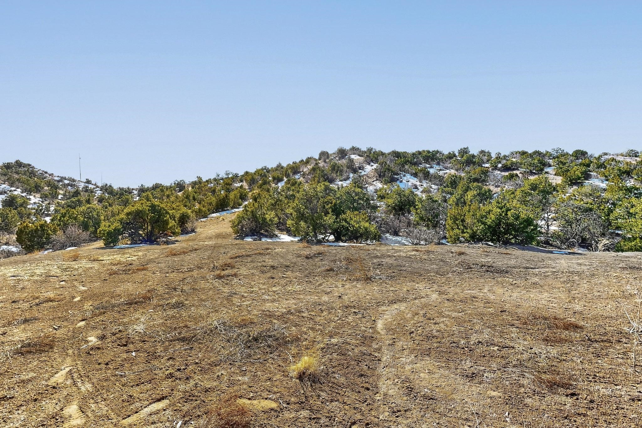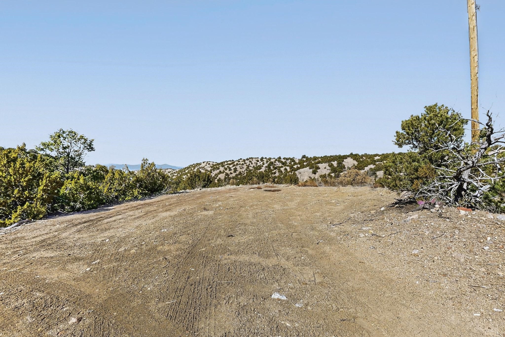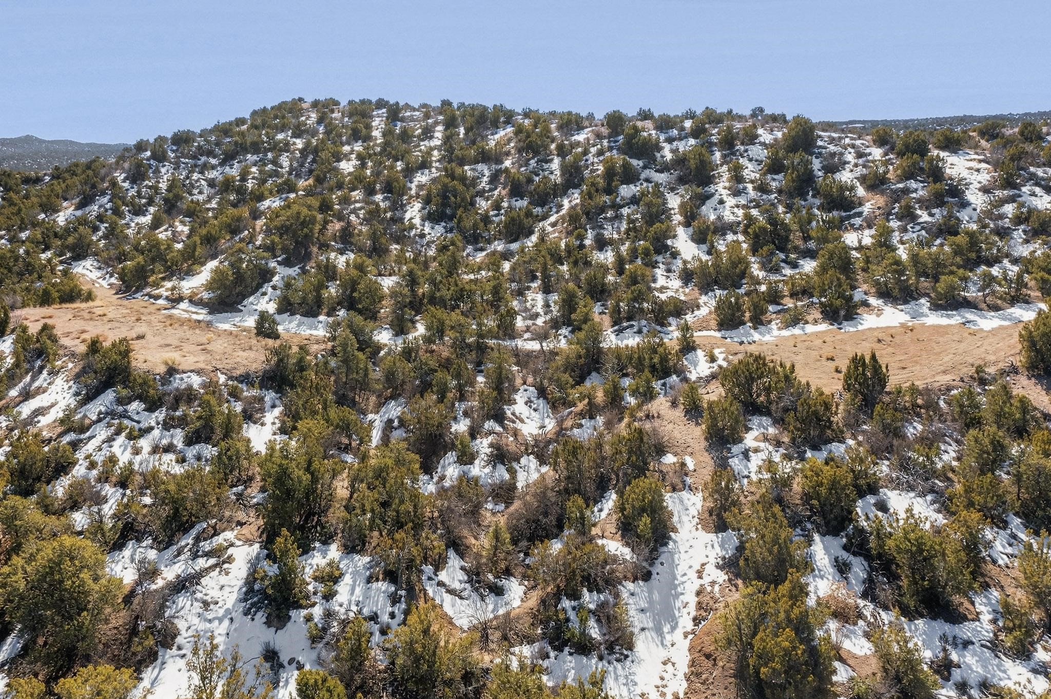 Easy build 15 acre lot with an expansive view through the steep sided canyon to the Jemez mountains to the west. Easy access off State Rd 592 and just a couple of minutes from the village of Rio En Medio, which offers access to a trail head into the mountains of the National Forest and a nearby waterfall. 3 easy and flat building sites. Private well. Power available with PNM drop from on site power line. Minimal CC&Rs. All 5 lots can be purchased as a package. Paved road from Santa Fe to reach this sheltered and privately situated lot. Two minutes drive to fine dining at the Four Seasons Encantado Resort. The Tesuque Village Market is 5 minutes and Santa Fe itself another 10.