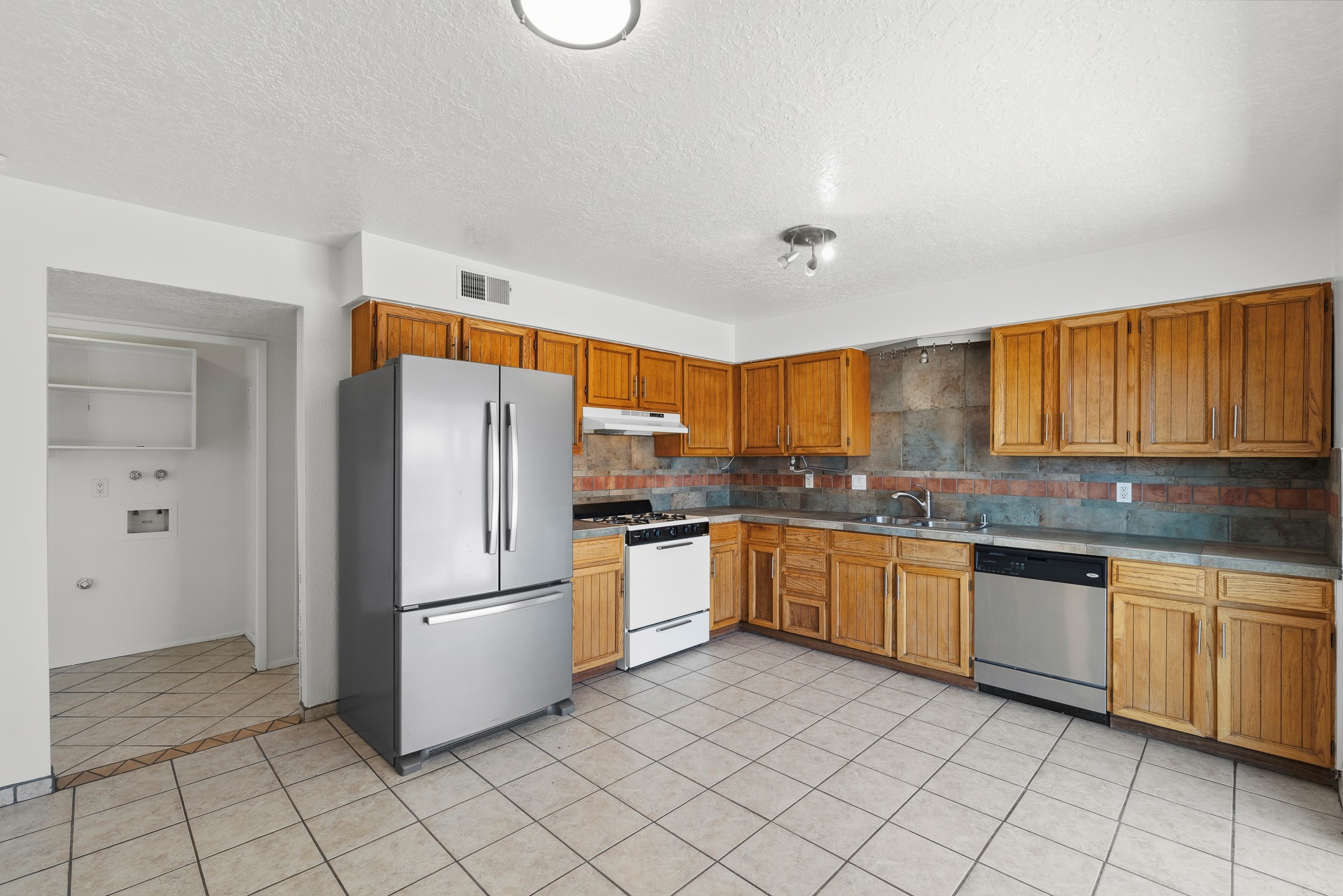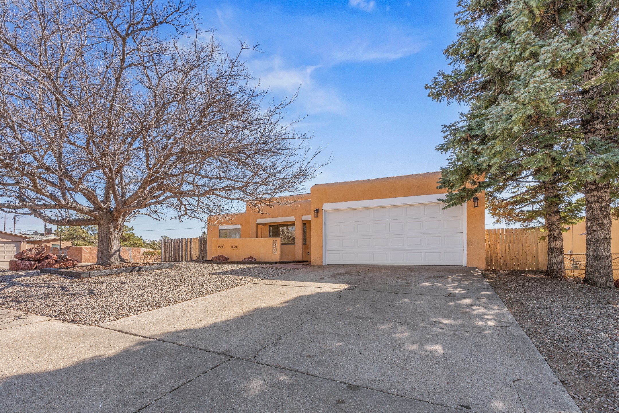 Welcome to 2477 Camino Capitan in the desirable La Paz II East community, centrally located just off Rodeo Road for easy access to shopping, dining, schools, and all that Santa Fe has to offer. This freshly painted 4-bedroom, 2-bath home offers a well-designed floor plan with excellent separation between the primary suite and guest bedrooms, providing both privacy and flexibility. The spacious living room features tall ceilings that create an open, airy feel, while tile flooring throughout ensures easy maintenance and a clean, cohesive look. The large eat-in kitchen offers plenty of space for gathering and includes a sliding glass door that opens to a covered portal and the expansive, fully fenced backyard perfect for entertaining, gardening, pets, or simply enjoying the outdoors. Situated on a generous corner lot, the property provides added space and privacy. Complete with an insulated and heated 2-car garage and a functional, comfortable layout, this home is a wonderful opportunity in a convenient, central location.
