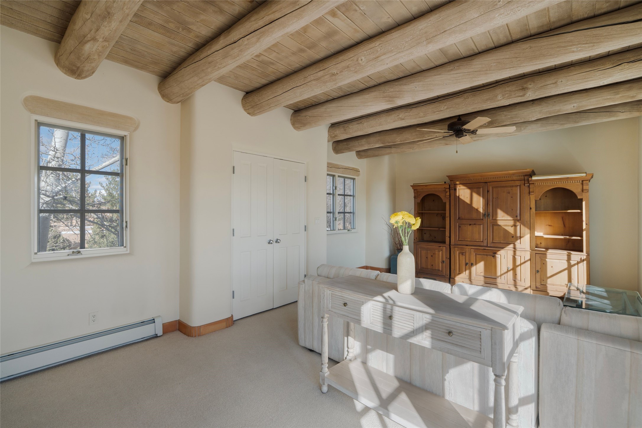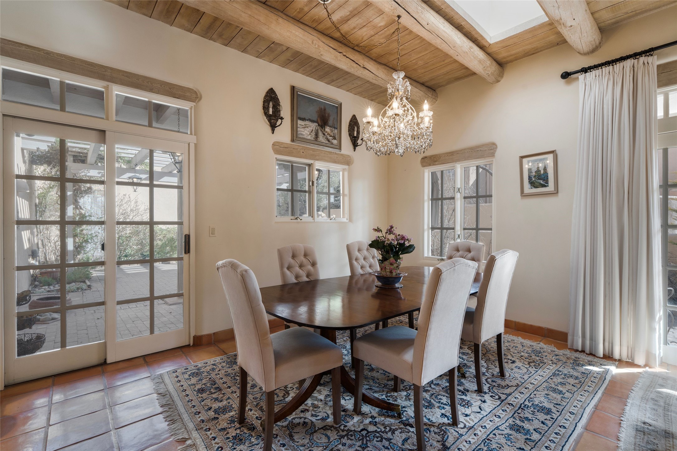 Ideal Pinon D home in Santa Fe's premier golf course community, Quail Run. Bathed in natural light, this inviting home offers a well-designed floor plan that balances comfort and functionality. Thoughtfully designed outdoor spaces provide the perfect setting for relaxing, entertaining or enjoying peaceful surroundings. Nestled in the heart of the community, serenity and quiet abound. The ground level offers most of the home's living with a layout that feels open and spacious. Retreat upstairs to a large space that can be used as a guest room or sizable den. Be sure to venture outside as the views from this second level are beautiful. As one of the only second levels in the area, it feels like you are above it all. Home ownership at Quail Run includes all of its fabulous amenities such as state of the art indoor pool and spa, multiple workout areas, 24 hour hosted security, pickleball and tennis courts, engaging 9 hole golf course, delightful 1 3/4 mile walking path and much more, come and see!