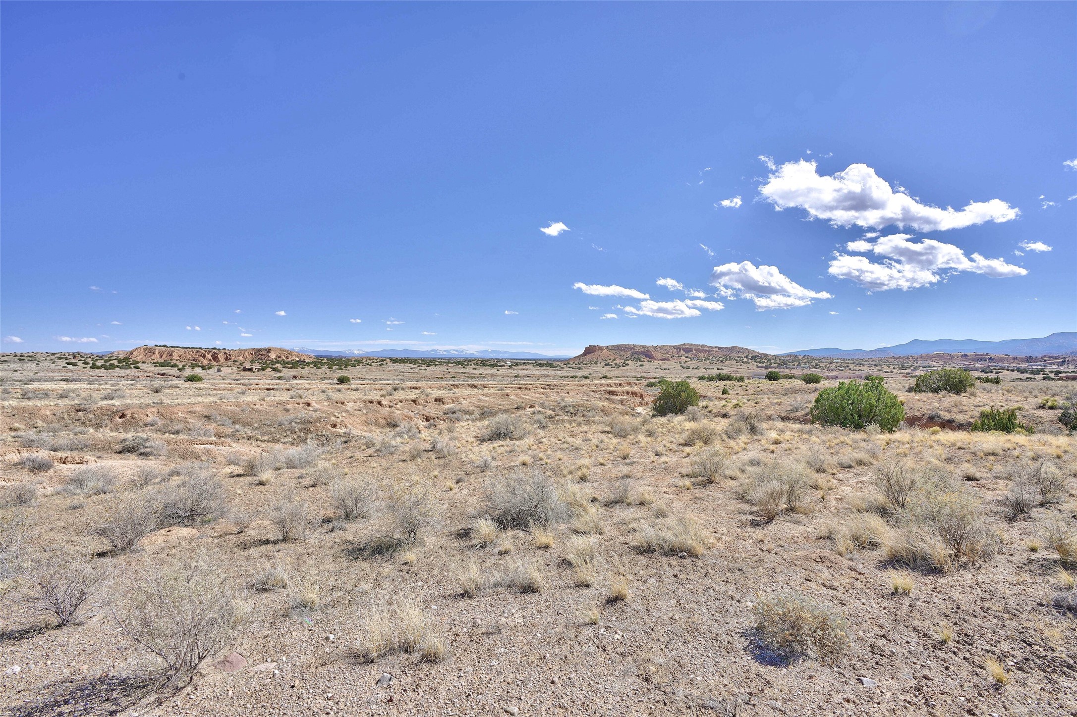 Lot 1-E-1 is a 10 acre parcel located off State Highway 554 in Abiquiu, NM. The property backs up to the Carson National Forest and offers open views of the Sangre de Cristo Mountains and the Jemez Mountains. Underground electricity is in place and the property has access to a shared well. A septic system will be required. Buyer to verify the location and availability of all utilities. The property is located within a gated subdivision with a motorized entrance and is a short distance from Abiquiu, Abiquiu Lake, and other nearby recreational areas.