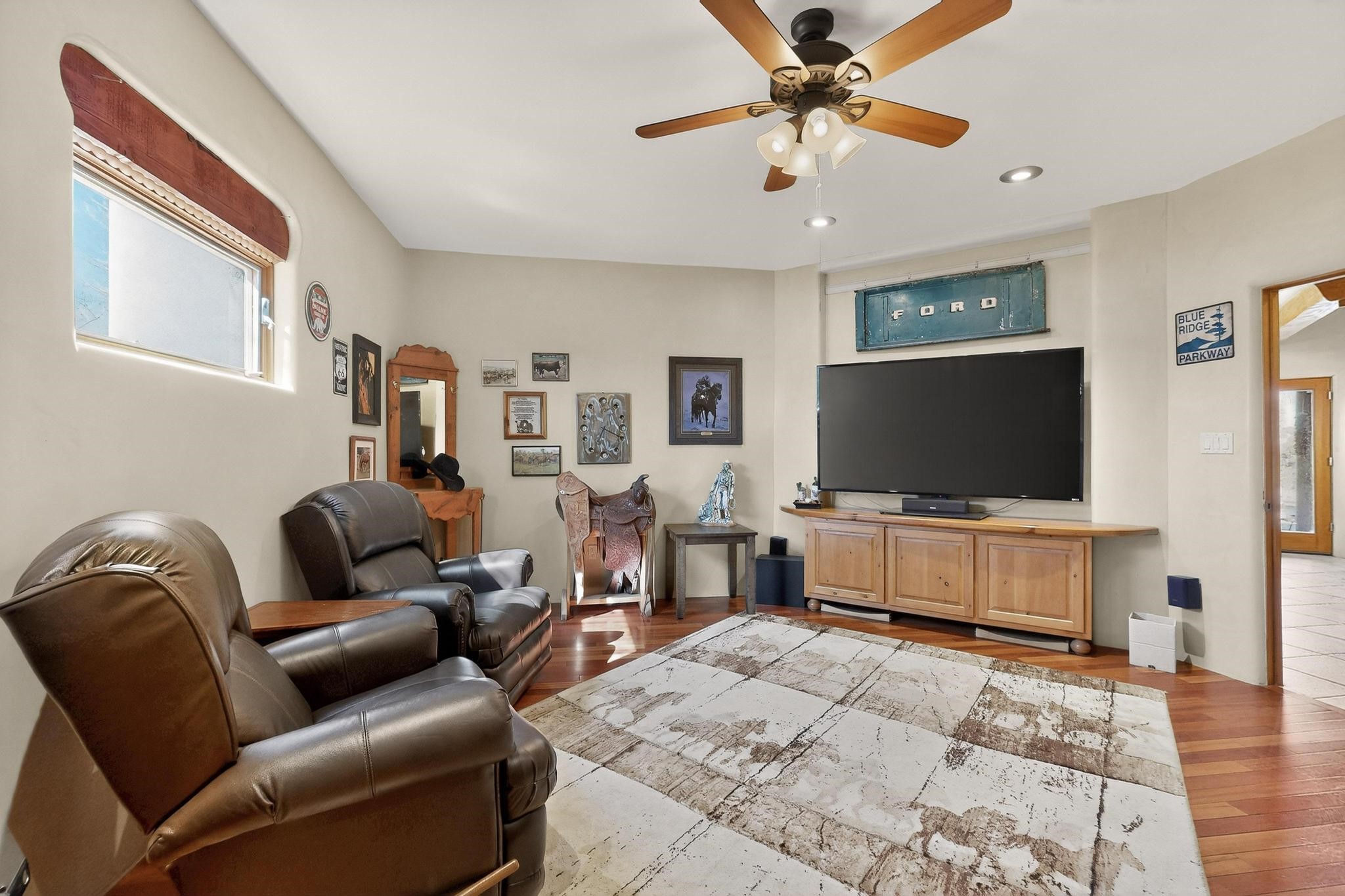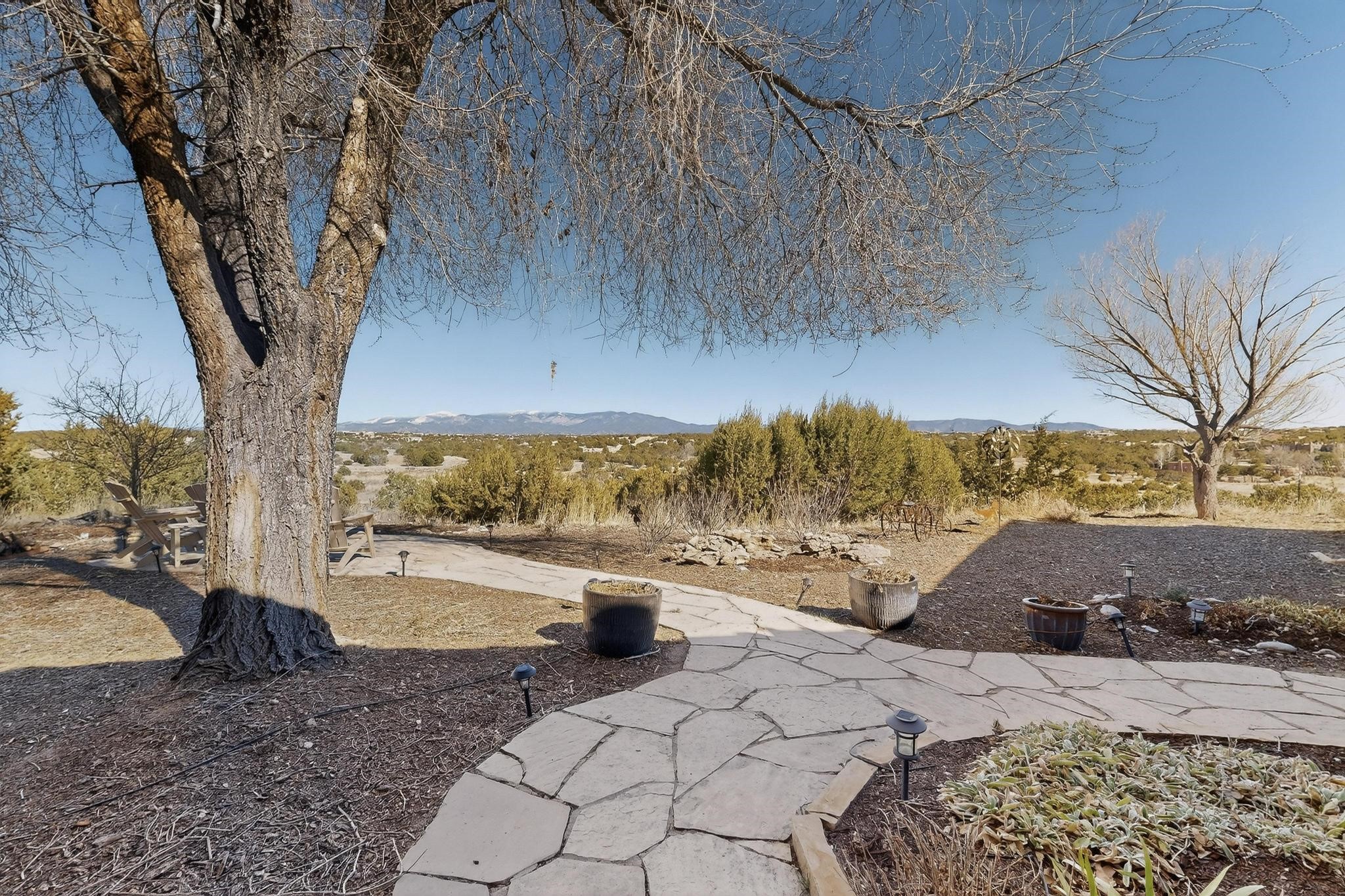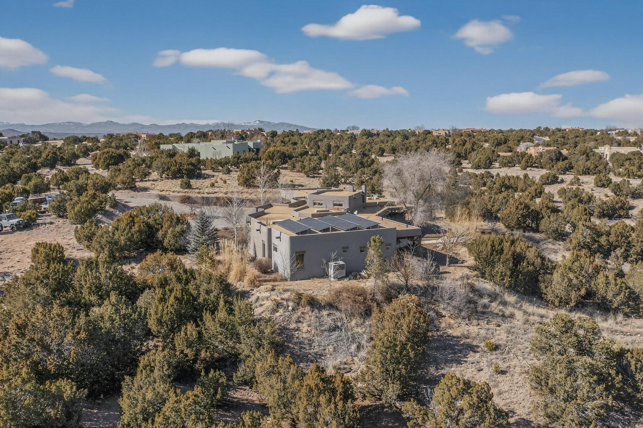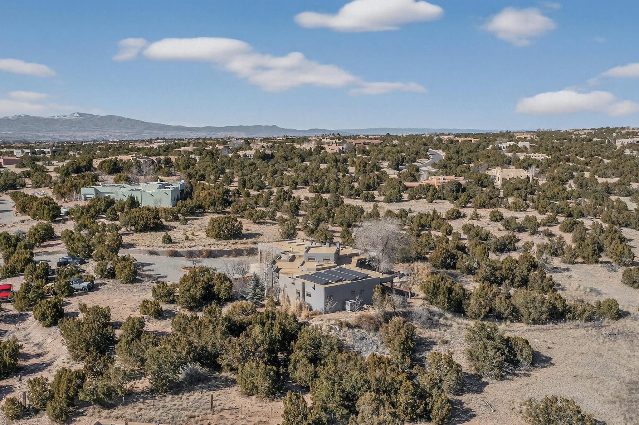 Welcome to 20 Vista Calabasas where Santa Fe style and luxury meet! This incredible home sitting on 5.5 acres of serene high desert landscape, offers 3491 square feet of elegance. Walk into the stunning front door to a grand great room with high ceilings and a direct view of mountain vistas. Continue down the hall enjoying exposed vigas, wood ceilings, diamond finished plaster walls, and tile and wood flooring throughout the home. You'll love preparing meals in the beautiful and large chefs kitchen, equipped with stunning granite countertops and an incredible Wolf range/oven that will make cooking a dream! This 4 bedroom home is cleverly designed with the primary suite on the other side of the home from the other bedrooms with a bonus/possible additional 5th bedroom. In the primary suite you will be charmed by a beautiful diamond finish plaster wood burning fireplace and a private patio door allowing for ample light and views of the Sangre de Cristo mountains. The primary bath has incredible finishes including a large free soaking tub, a large walk in steam shower, and beautiful and large granite countertops. The primary closet is cedar lined with ample space for all your belongings. This home is an entertainers delight! The large living room opens out onto a massive outdoor patio with wide open space stretching far into the distance with stunning views in all directions. This is the perfect place to hold all your upcoming summer gatherings on the cool Santa Fe evenings or wake up and enjoy the peaceful sound of the birds chirping while watching the sun rise in the distance. This home will not disappoint! Schedule your private showing today!