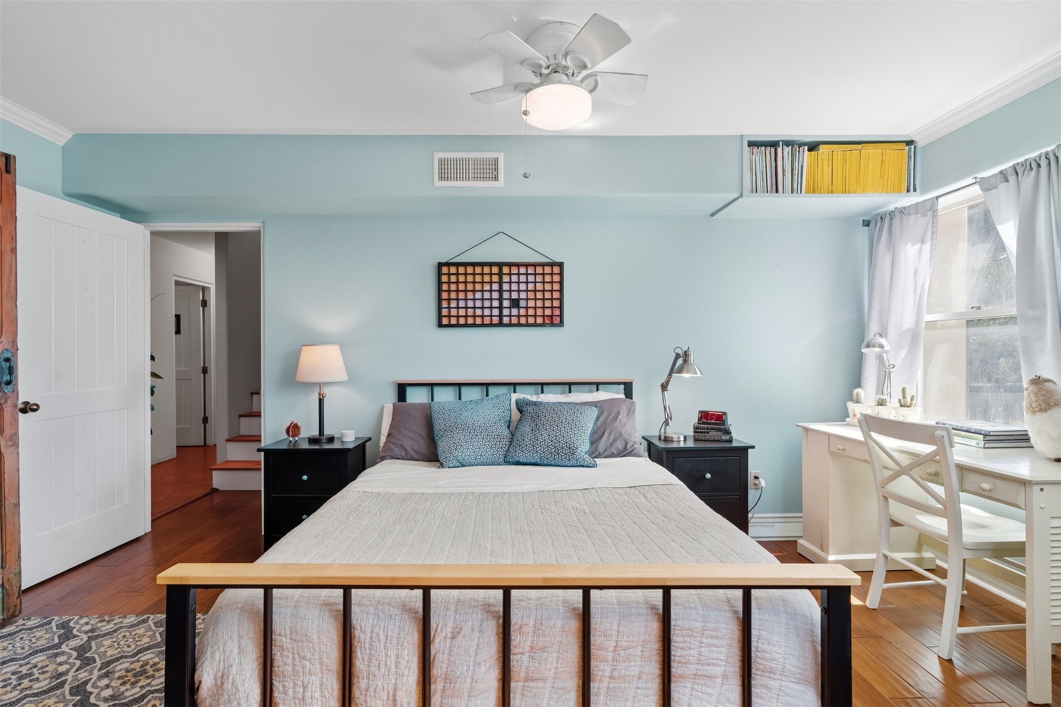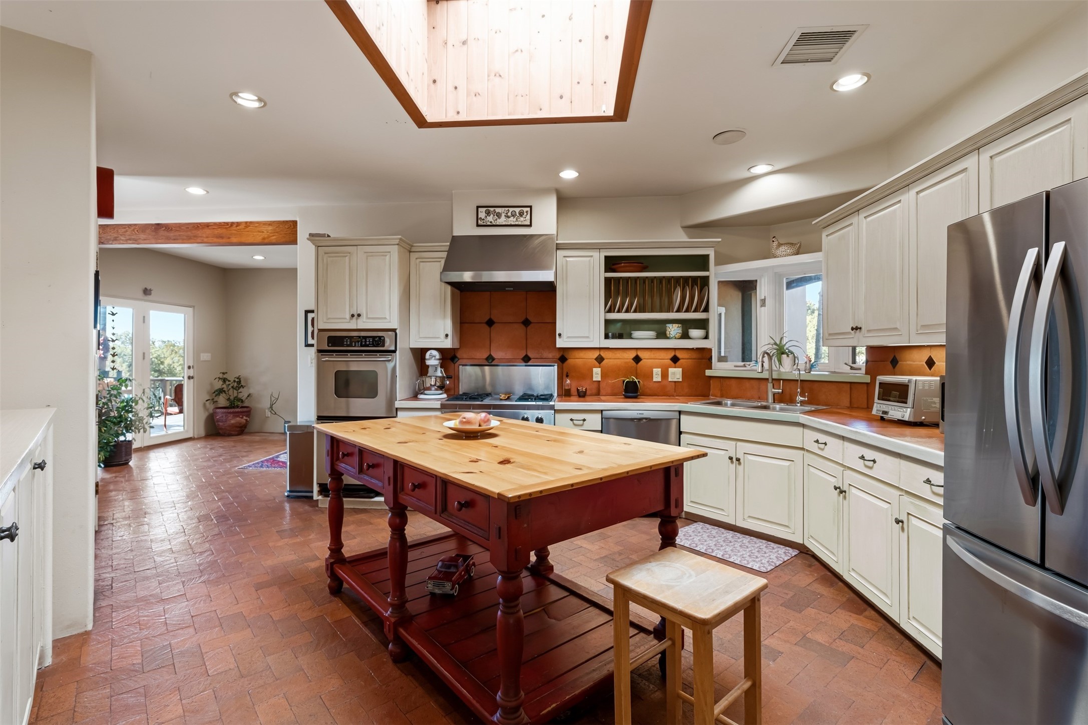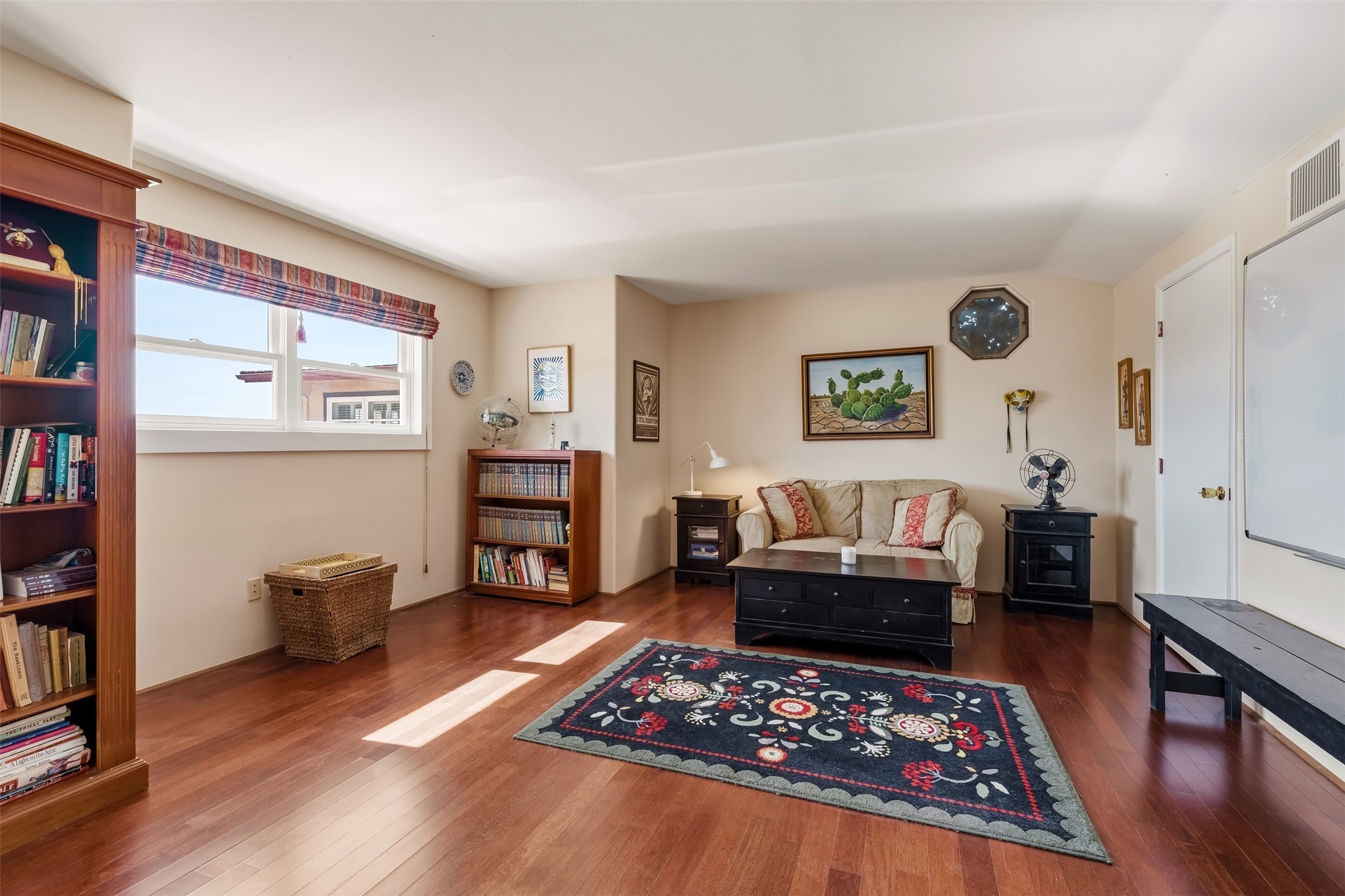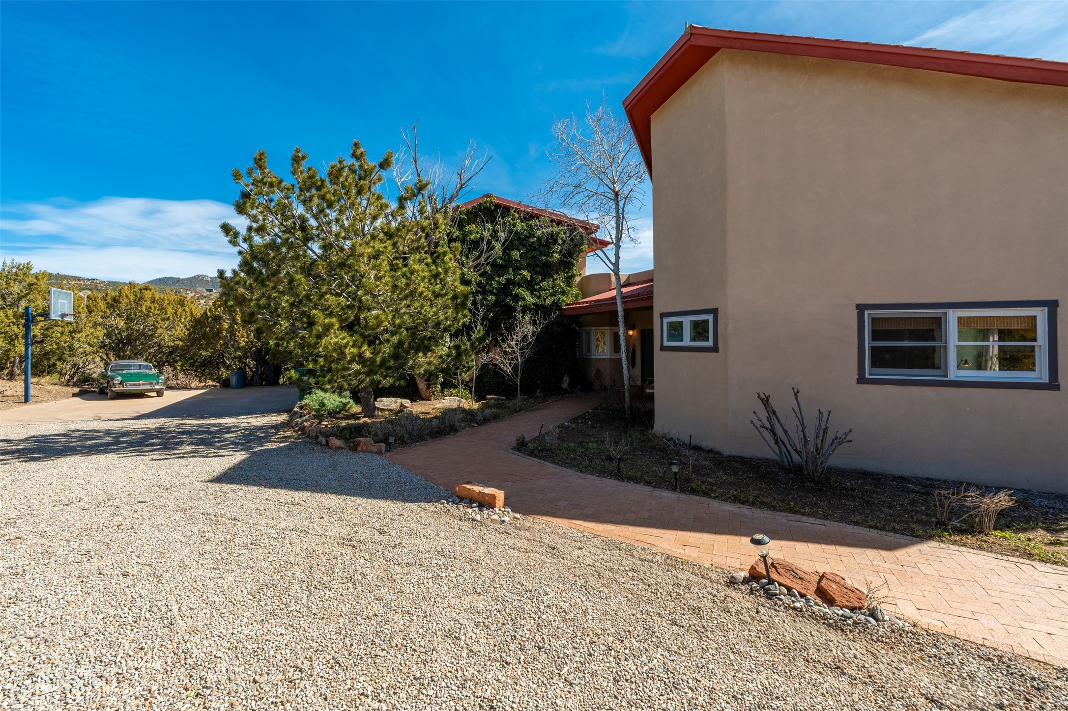 This beautiful custom home is nestled in the pinon foothills just 10 minutes from the Plaza and within close proximity to El Gancho Fitness Club surrounded by scenic open space. The home is embellished thought-out with craftsman features such as hand-painted doors and customtile treatments, and the layout offers two distinct bedroom wings, each with its own upstairs spaces, perfect for a media room, library, or gathering space or gallery. Natural light from panoramic windows fills the living room,where the kiva fireplace creates a cozy atmosphere. The property has multiple decks create lounging areas, for plenty of indoor and outdoor living. A bubbling hot tub built into one of the decks that makes for amazing stargazing! The primary bedroom has a 17-foot ceiling and resort-like touches and lighting. The home is located in the county so no millionaire tax. Ample storage fills the home throughout, and aprivate well serves all water and irrigation needs. Central air and Nest thermostats ensure comfort for the live/work needs. This property is a bird and wildlife paradise.