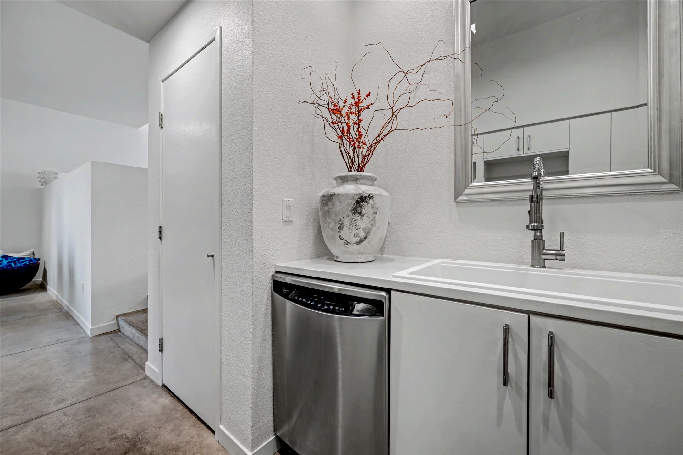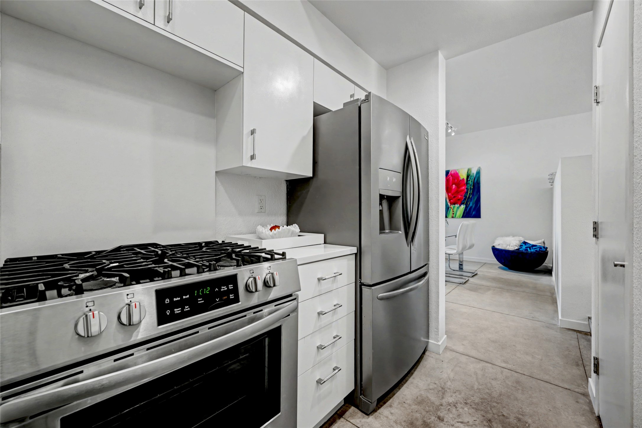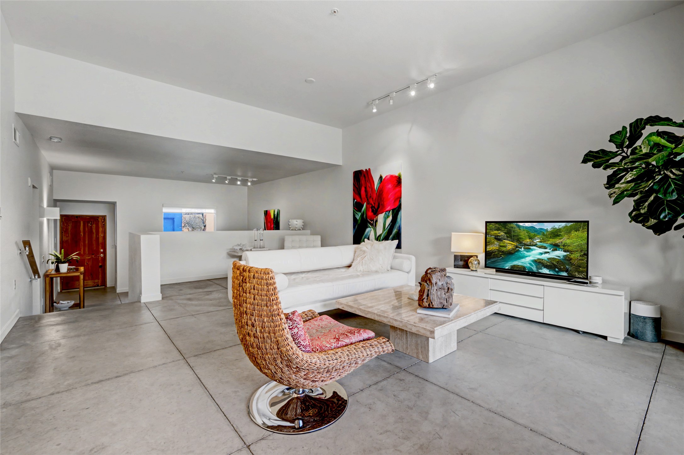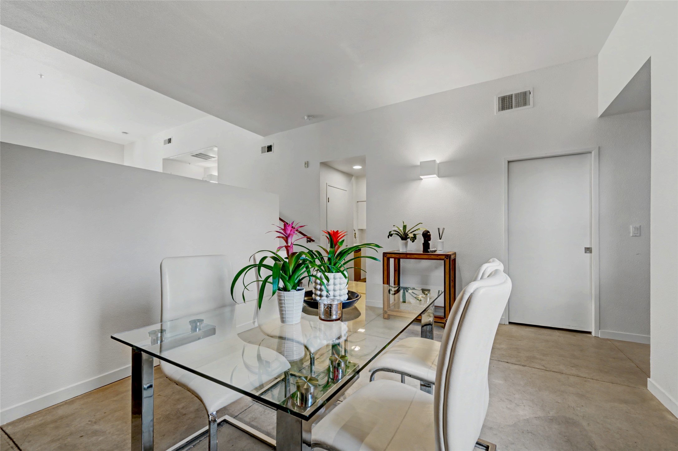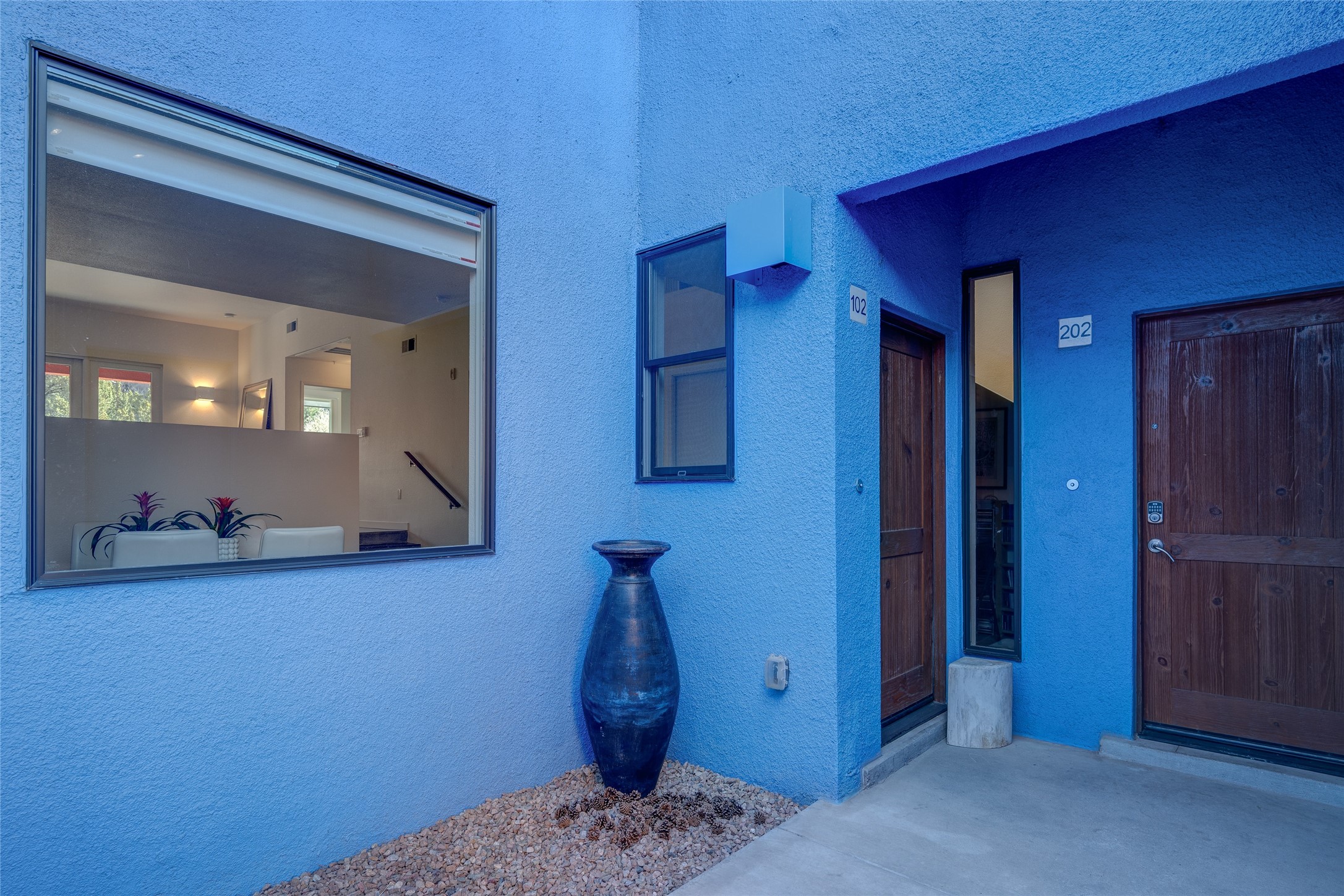 Situated within the architecturally celebrated Zocalo community, this refined ground-floor residence embodies the bold Mexican-modern aesthetic that defines one of Santa Fe's most distinctive neighborhoods. Clean lines, polished concrete floors, high ceilings, and walls of natural light create a sophisticated yet welcoming atmosphere.Morning sun pours into the living spaces, highlighting the home's open-concept design and seamless indoor-outdoor flow. The thoughtfully curated 1,039 square-foot floor plan offers effortless single-level living, enhanced by central air conditioning, travertine tile bathroom, quartz kitchen countertop, stainless steel appliances, laundry, and one-car garage with generous storage -- a rare and valuable amenity.Step outside to your private patio, an intimate setting for morning coffee or evening wine beneath the Santa Fe sky. Just beyond your door, scenic hiking trails connect you to nature, while a pedestrian and bike path provides easy access toward downtown.Zocalo residents enjoy resort-style amenities including a clubhouse, pool, spa, bbq grills, and two fitness facilities - all within a community known for its architectural integrity and strong sense of place.Ideally located near the Santa Fe Plaza, Los Alamos, Santa Fe Opera, premier shopping, and the Santa Fe Airport, this residence offers accessibility.For the discerning buyer seeking design, convenience, and a lock-and-leave lifestyle in one of Santa Fe's iconic communities, this is an exceptional opportunity.