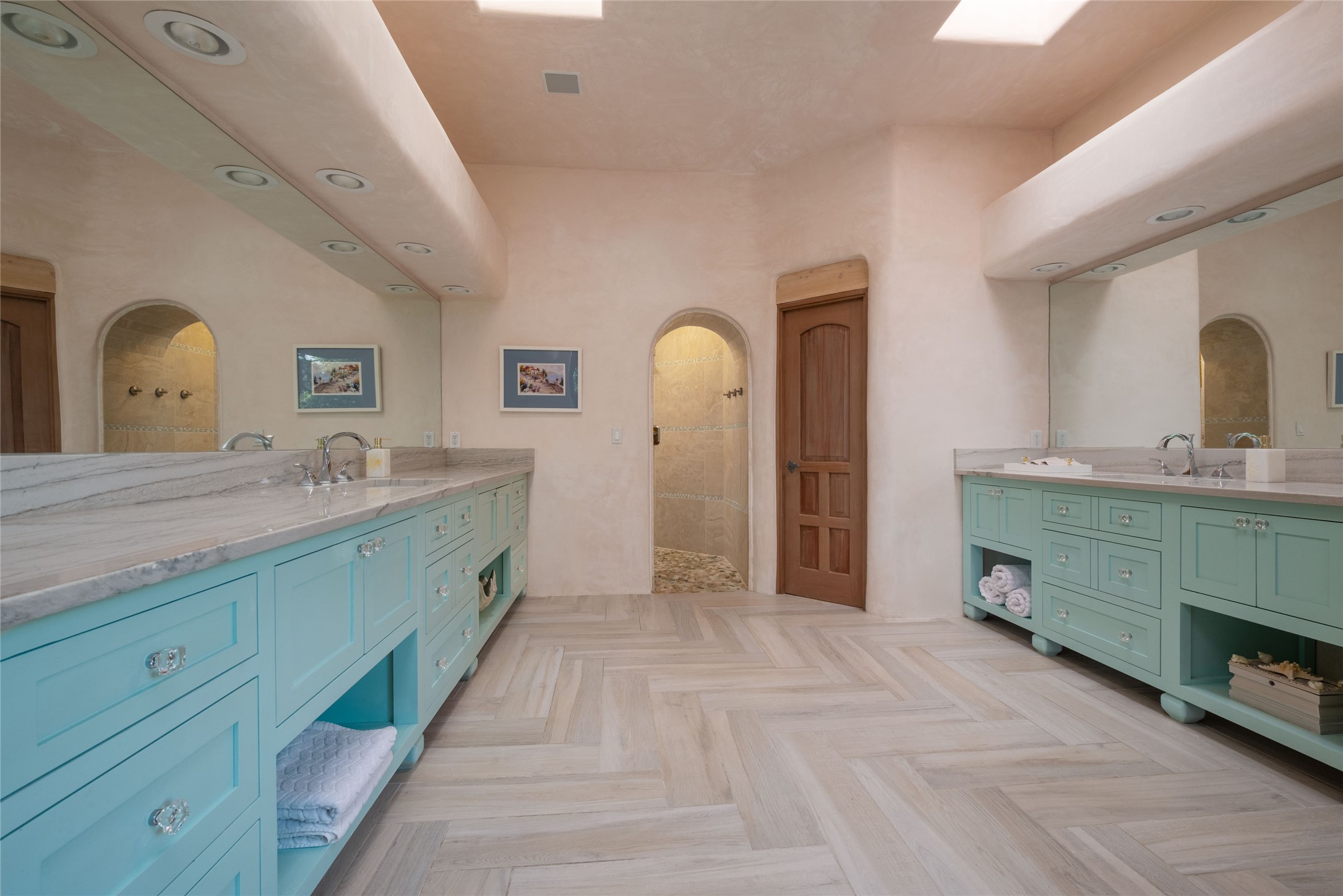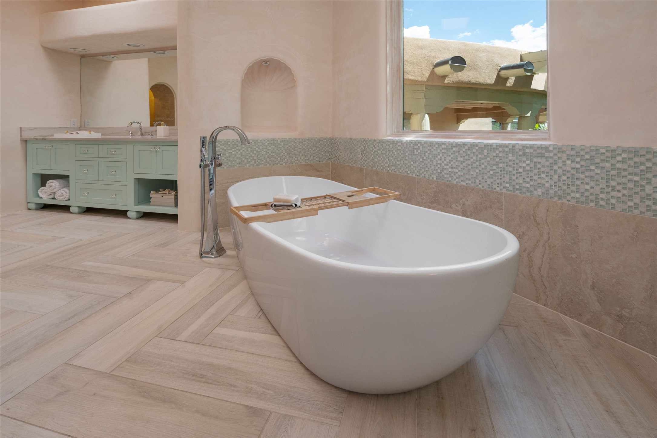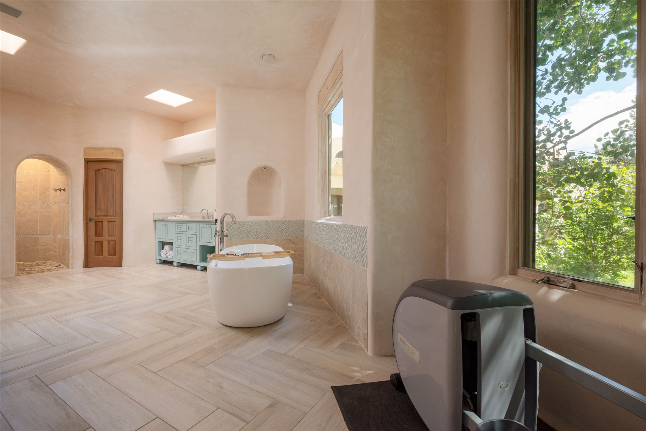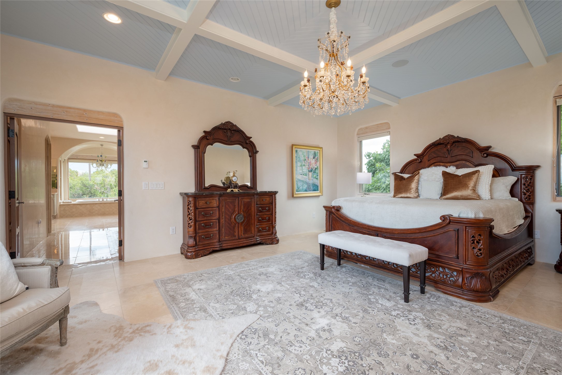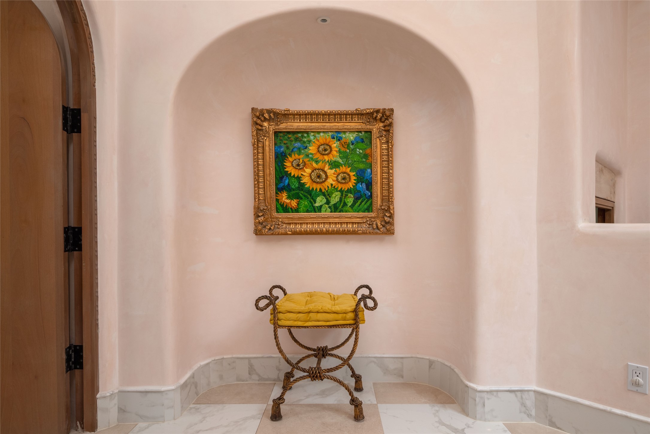 Grand Hacienda Winner and the unrivaled Belle of Tano Road redefines the essence of luxury living. Nestled behind exquisite handcrafted wrought iron gates, you are transported to a serene desert oasis, embraced by the splendor of nature, offering unparalleled privacy and sanctuary from the world. As you enter through handcrafted mahogany and wrought iron doors, the soaring ceilings and diamond plaster walls create an atmosphere of grandeur, while the Italian porcelain floors reflect a commitment to the highest standards of luxury and craftsmanship. Every detail has been meticulously curated for you. The great room, with its endless windows, invites you to bask in the breathtaking views of the sweeping mountains and the enchanting cityscape below, perfectly positioned above the exclusive enclave of Santa Fe. The sprawling estate houses two exquisite primary suites, each featuring spa-like bathrooms with soaking tubs, emperor showers, and ample space to have a powder room lounge, a meditation space, or a fitness area. Each of the four bedrooms is its own sanctuary, complete with fireplace and en-suite facilities, ensuring every guest feels like royalty and that their comfort and privacy are paramount. The gourmet kitchen is a culinary dream featuring custom cabinetry, Wolf range with double ovens and a warming drawer, Sub-Zero refrigerator, and a massive island seamlessly connecting to the outdoor cooking and dining spaces for effortless entertaining. Expansive grounds, nearly three lush acres, adorned with manicured lawns, vibrant rose gardens, and fruit trees, offer an idyllic setting for outdoor gatherings. These luxurious spaces provide not just comfort, but a lifestyle of sophistication. Immaculately maintained and thoughtfully expanded, this sprawling 6,700sq.ft estate is a testament to refined living. This is more than just a home - it is a lifestyle drenched in luxury and elegance. Design that speaks to the most discerning tastes and coveted desires. *Video*