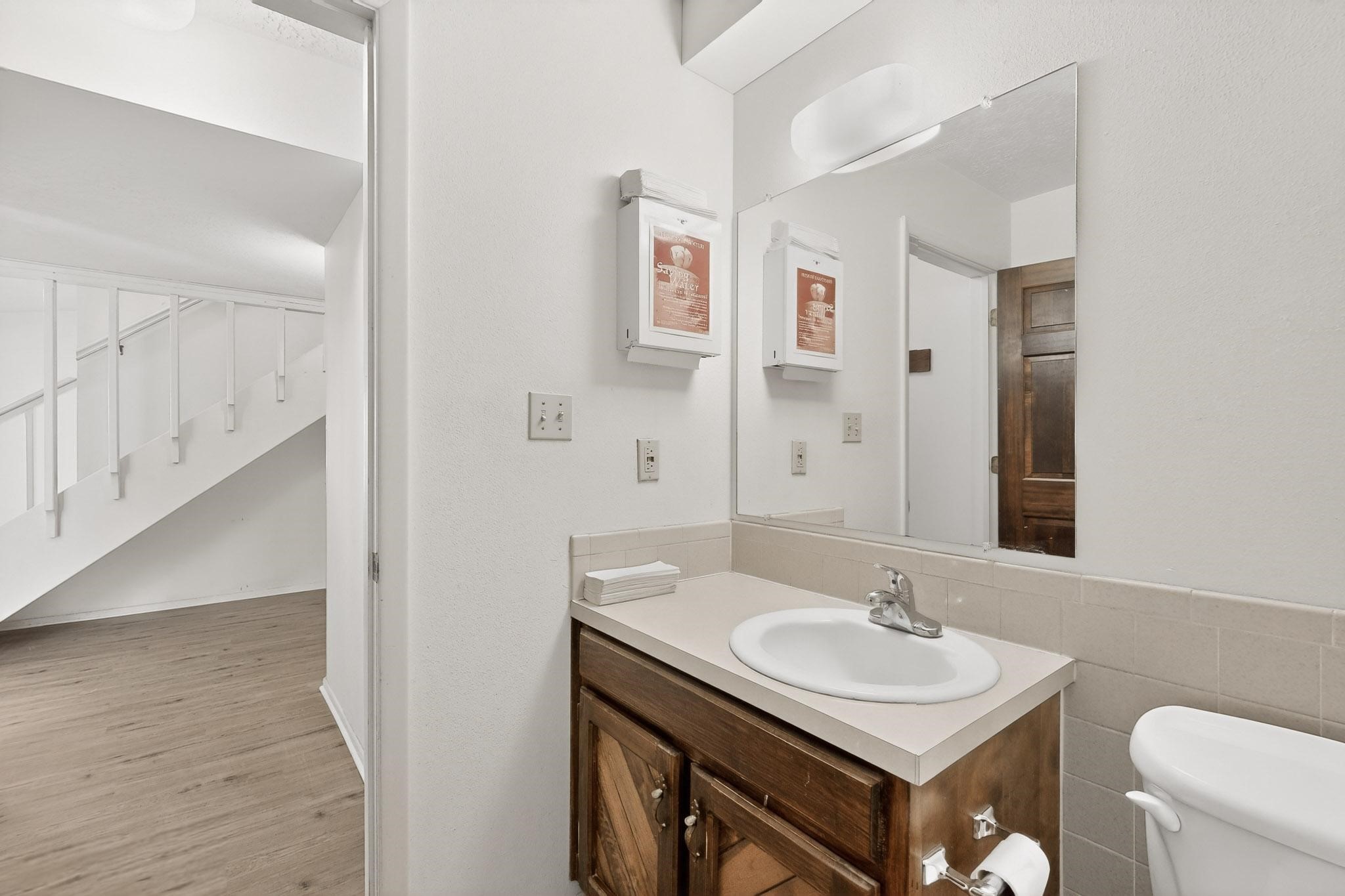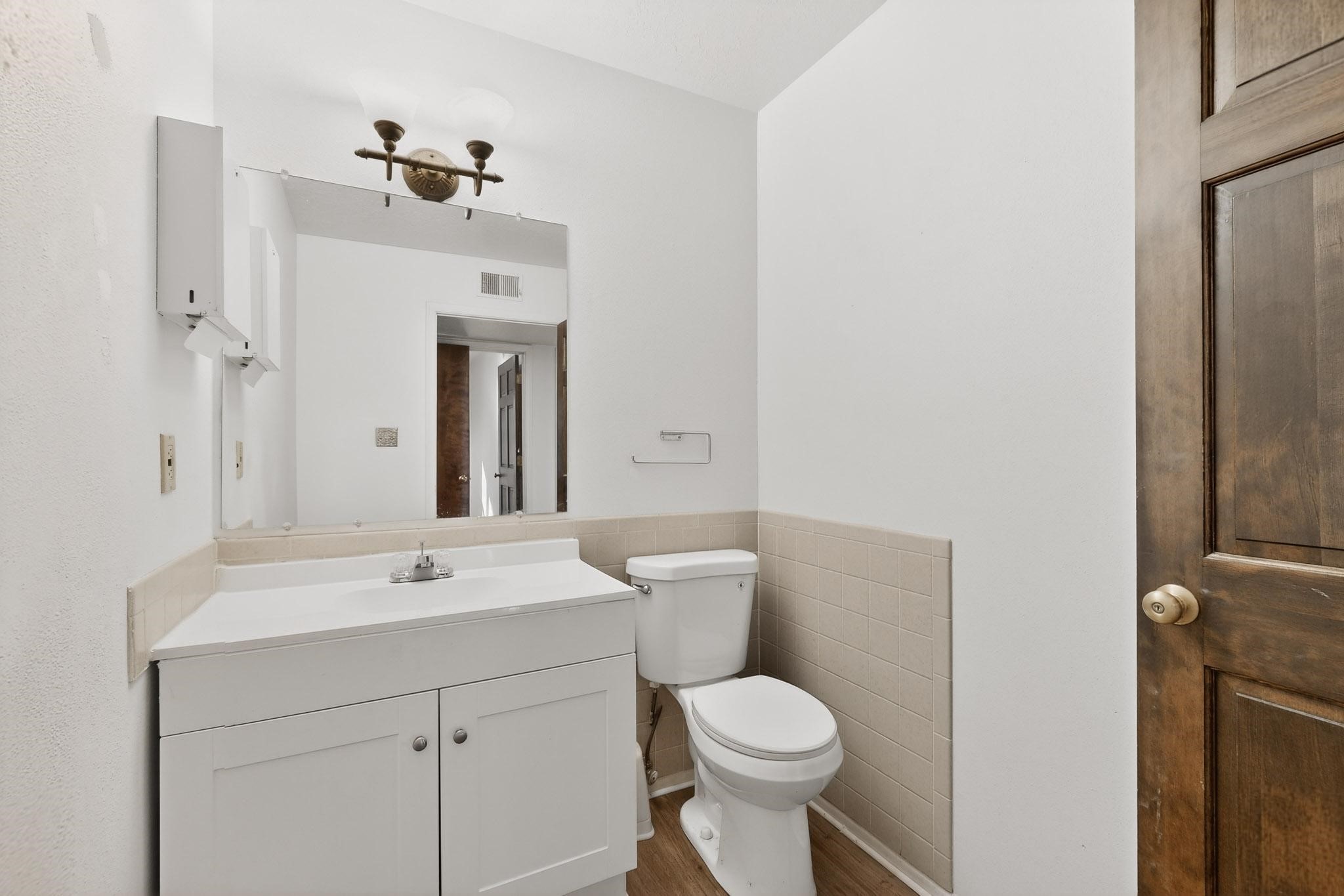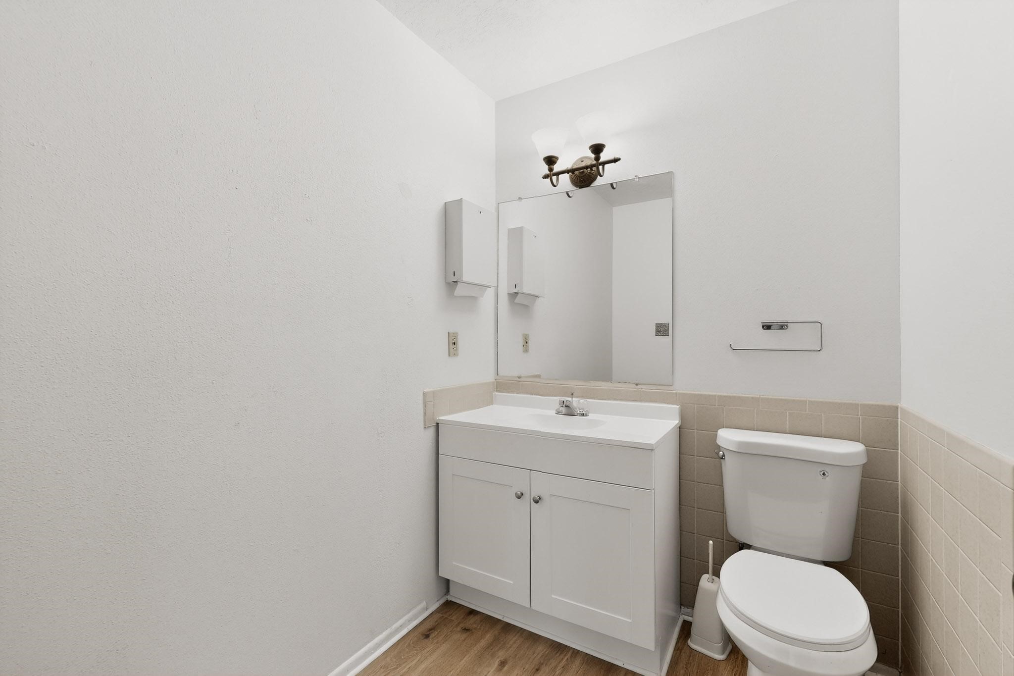 Excellent opportunity to purchase flexible office space in St. Francis Professional Center. Well located in the complex with great visibility, the space had been configured as two separate suites, which provided excellent flexibility. There are a total of 7 private offices, 2 bathrooms, 1 kitchenette, 2 large storage rooms, and 2 waiting areas. Great layout for wellness practitioners or professional offices (legal, accounting, etc). The section that was used as the larger suite has offices on two floors, a kitchenette, bathroom, waiting area and a very large multi-use space for storage, open concept workspace etc.