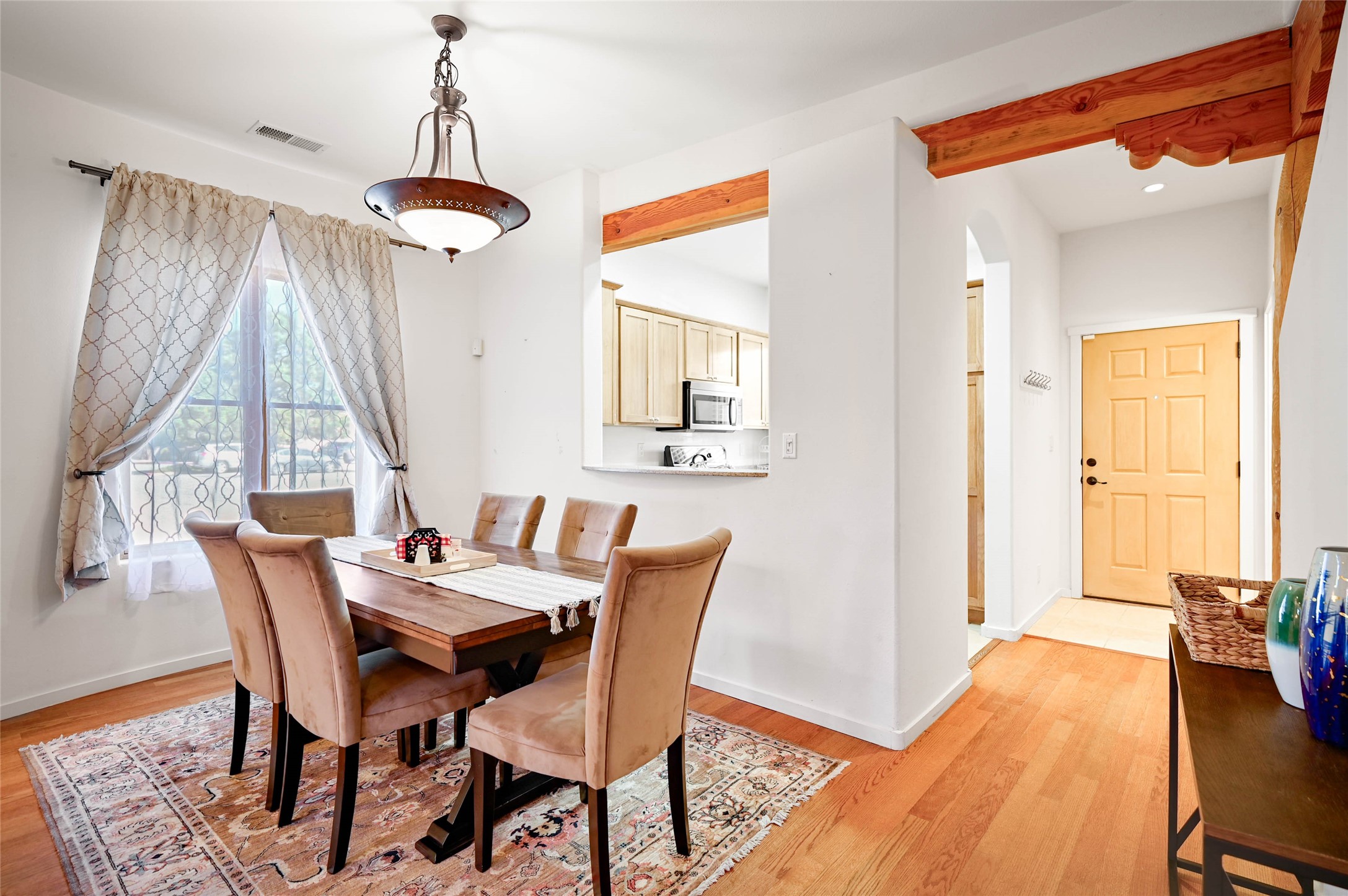 Centrally located condo! This fully furnished end unit features two bright bedrooms and a wonderful private patio. Unit #196 is being offered with all photographed items and would make a great investment property or ready to move in place to live. Tucked back near the amenities, the home has been carefully maintained and features thoughtful design touches including wood vigas, recessed nichos, and ample storage. The gated complex includes mature trees, grass, a community pool, clubhouse, and gym.