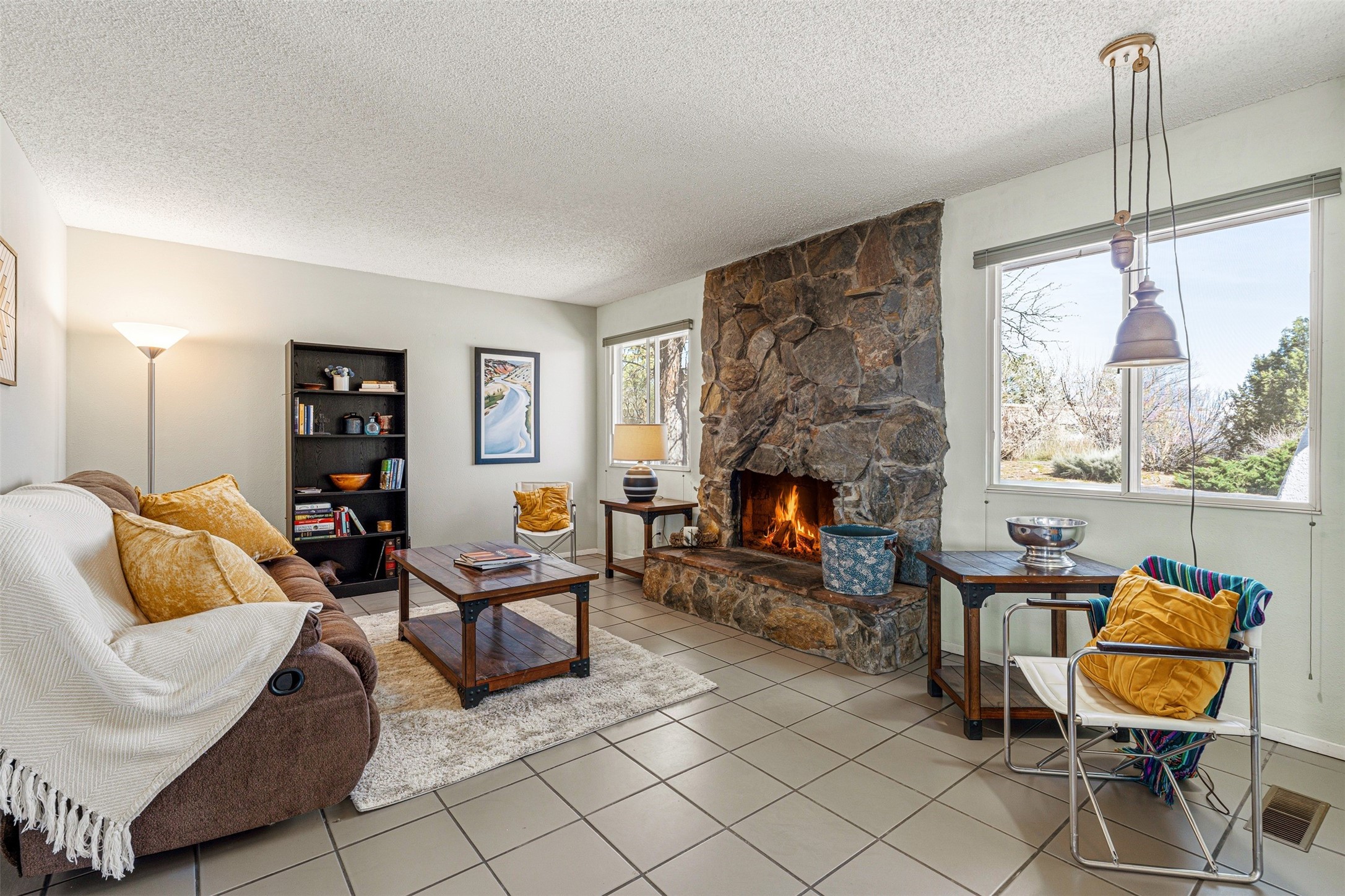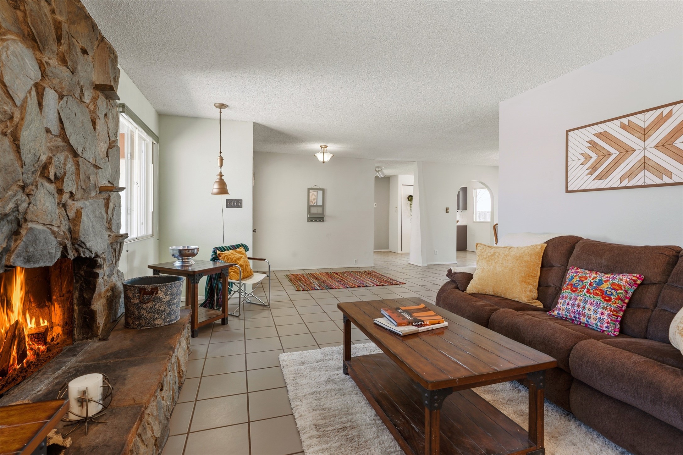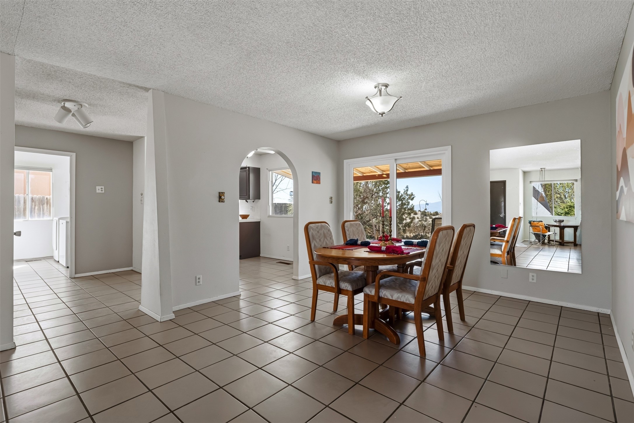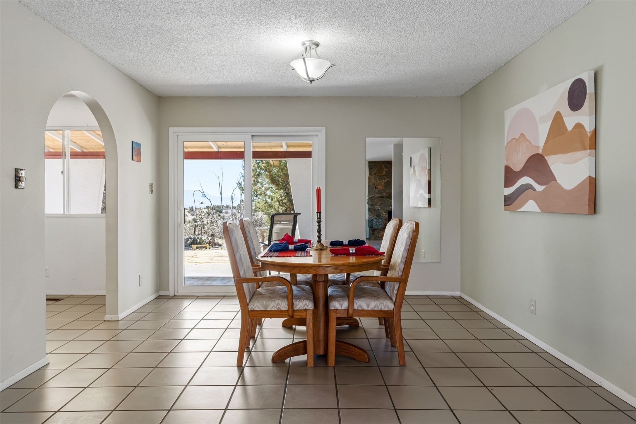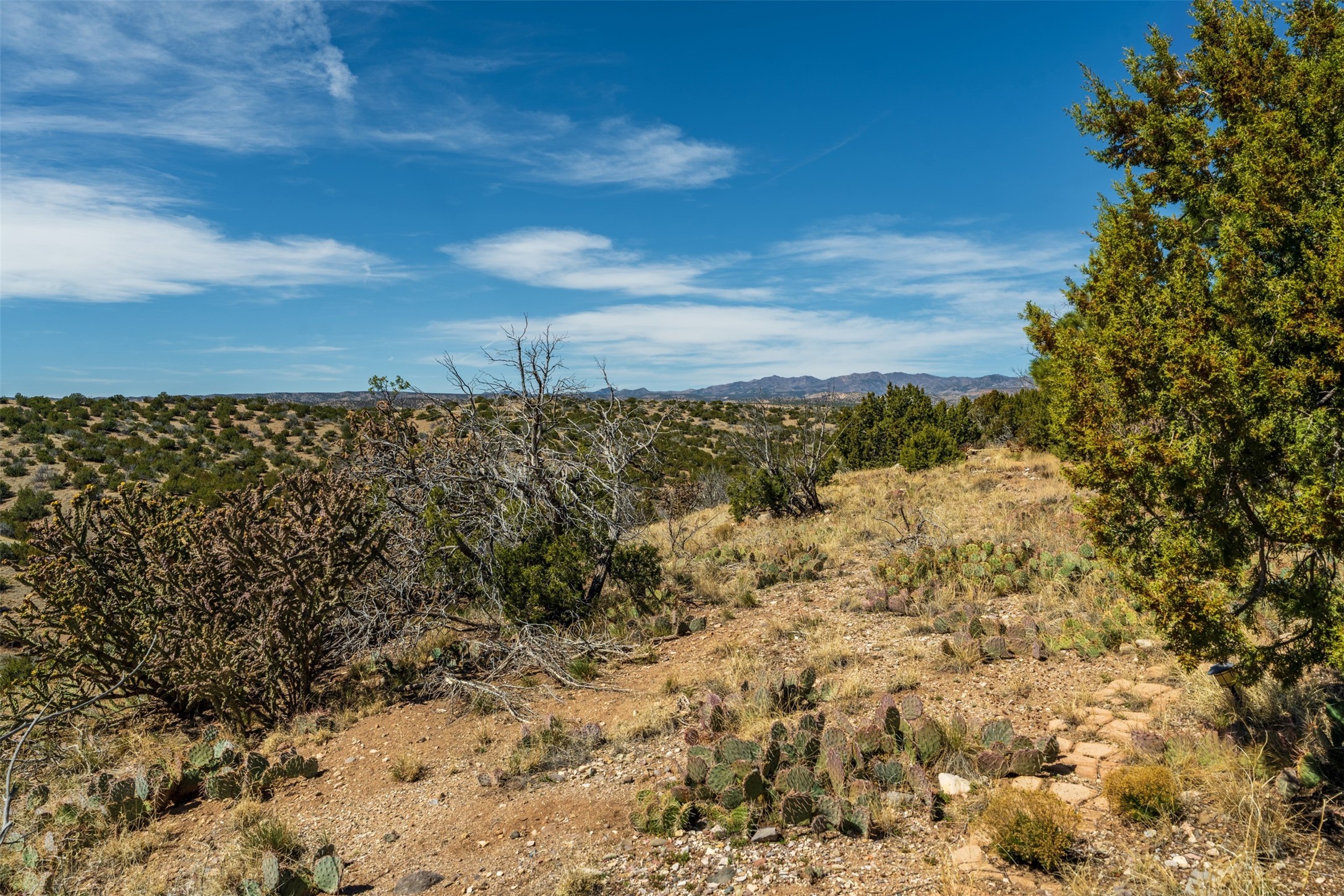 At 6445 Vooscane, the view is the headline. The backyard opens east toward the Sandia Mountains, where the landscape stretches across the Rio Grande valley in a wide, uninterrupted sweep of desert and sky. Morning light reaches the peaks first, and evenings bring the deep pink and purple hues the Sandias are known for.The move-in ready home offers approximately 1,250 square feet of comfortable, easy-to-maintain living space. Large windows frame the surrounding landscape, keeping the mountains present in everyday life. The scale is manageable yet comfortable, creating a home that feels easy to live in and connected to its remarkable natural setting.A covered rear portal provides a perfect place to take in the view--morning coffee, a quiet afternoon with a book, or dinner outside as the mountains shift color in the evening light. An adjacent hot tub, which conveys with the property, is the perfect place to unwind. Raised garden beds and a small gardening hutch add a practical outdoor touch.Cochiti Lake is a quiet, established community between Santa Fe and Albuquerque known for its open skies, dramatic scenery, and access to hiking, the lake, and nearby destinations like Tent Rocks and Bandelier National Monument.