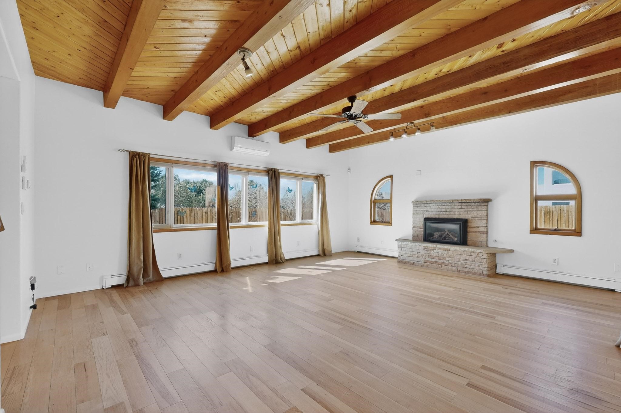Elegantly renovated and designed with both style and efficiency in mind, this beautifully updated Santa Fe residence offers refined living with a full suite of high-quality upgrades. The home has been thoughtfully improved with a newly refinished roof featuring durable Gaco sealant, fresh stucco exterior, upgraded heating and cooling systems, solar panels, and a new water heater--providing comfort, energy efficiency, and lasting peace of mind.Inside, the home showcases sophisticated finishes and inviting living spaces, including rich hardwood flooring, refinished cabinetry, and stunning quartz countertops. The fully remodeled bathrooms offer a spa-inspired feel, blending modern design with the timeless character that defines Santa Fe living. Every detail has been carefully curated to create a home that is both functional and visually striking. Enhancing the property's appeal is a detached studio complete with its own heating and cooling system--an exceptional bonus space ideal for a private office, art studio, guest suite, or creative retreat. This versatile addition adds both lifestyle flexibility and long-term value. Note: Pictures with furniture are virtually staged photos.