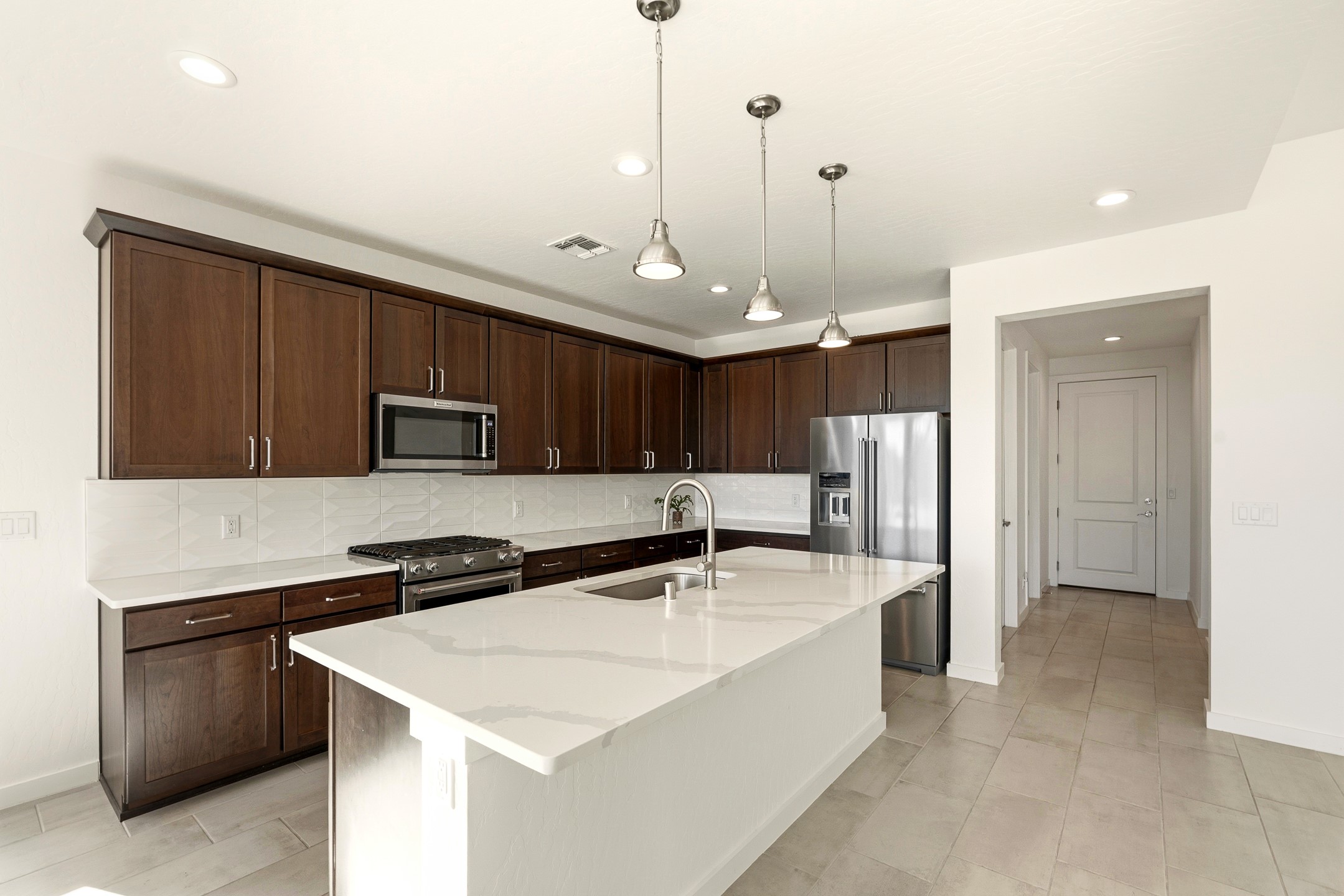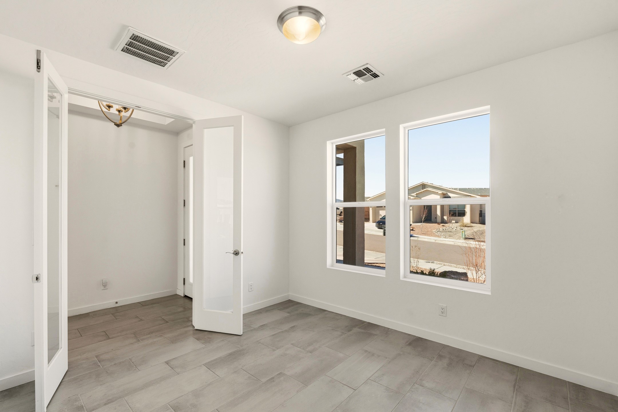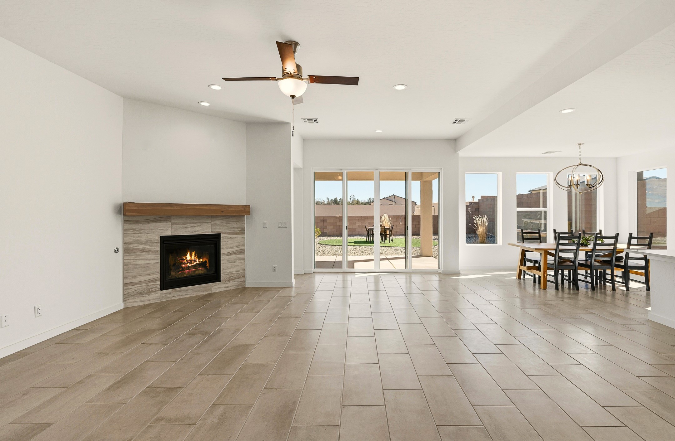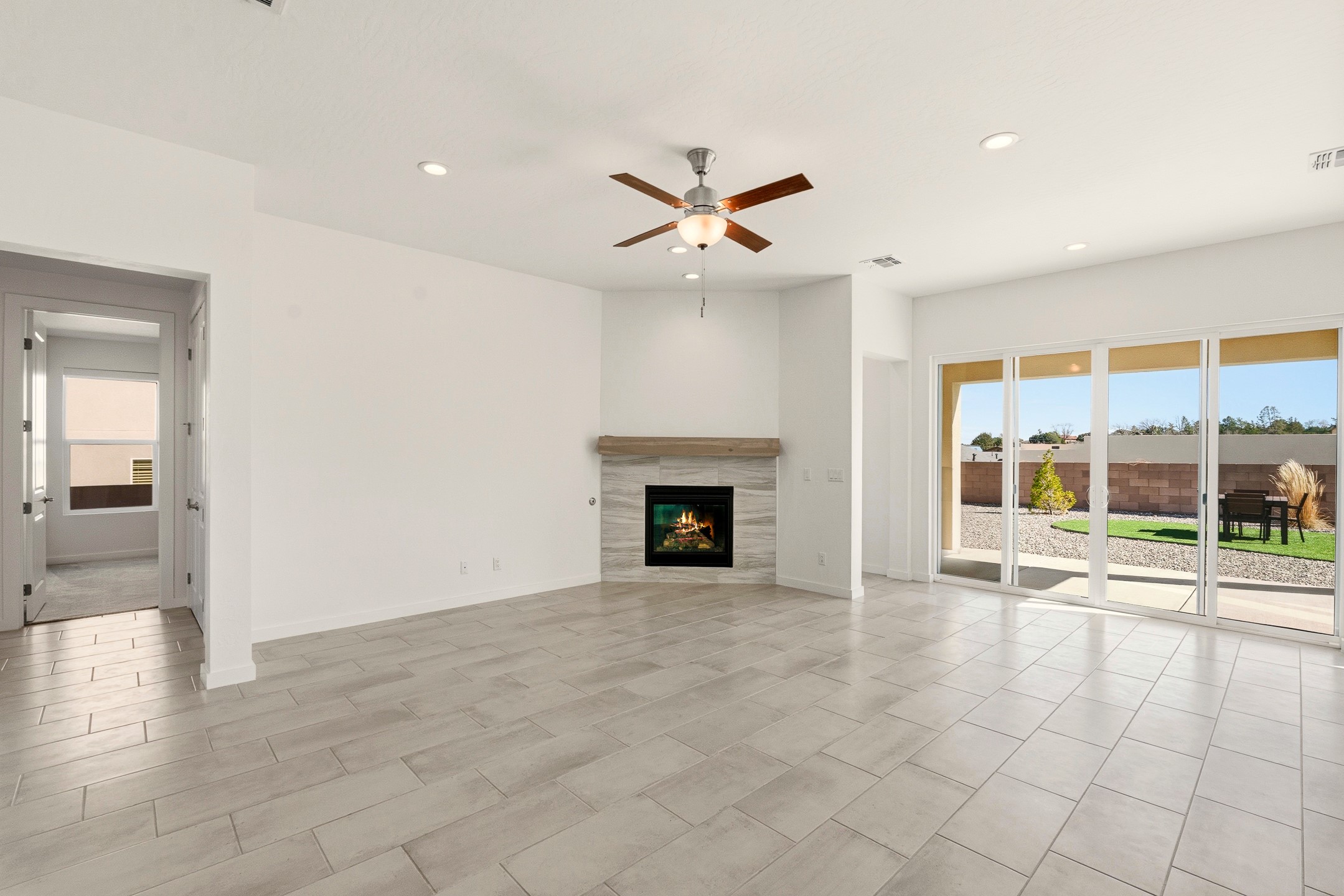 Imagine sitting in your backyard as the sun rises over the eastern horizon, the sky stretching wide above you and the quiet beauty of the landscape unfolding around you. Welcome to 142 Mirador Blvd. This beautifully designed 4-bedroom, single story home offers a bright, open layout with thoughtful finishes and inviting spaces both inside and out. The open-concept kitchen, living, and dining area is designed for comfortable everyday living and effortless entertaining. The kitchen features a large island, abundant cabinetry, beautiful Silestone® countertops, generous workspace, along with a spacious walk-in pantry providing excellent storage. Just off the kitchen you'll find a laundry room and a convenient half bath for guests. The living room is anchored by a gas fireplace, creating a warm and welcoming gathering space, while the large dining area is filled with natural light and offers plenty of room for hosting family and friends. A large sliding glass door leads to the landscaped backyard with a covered patio, perfect for outdoor dining, entertaining, and taking in the beautiful eastern views and incredible night skies. Upon entering the home, a versatile room to the left features glass French doors, making it an ideal home office, guest room, or fourth bedroom. Two additional bedrooms are located down the hallway and share a full bathroom with a double-sink vanity. The spacious primary suite offers a relaxing retreat with a large bathroom featuring a double vanity and oversized shower. The stunning primary walk-in closet is a standout feature, offering a sophisticated, boutique-style dressing experience designed for effortless organization and everyday luxury. Custom designed closet systems elevate storage in every bedroom with modern design and fully adjustable shelving for exceptional organization. The bedrooms feature Shaw luxury carpet, while the flooring throughout the main living areas and bathrooms is tile, creating a cohesive and durable finish. Additional features include 10' ceilings in the living room and primary bedroom, 9' ceilings in the kitchen and guest bedrooms, 8' doors throughout the home, a finished two-car garage, AC, and a landscaped front and back yard with drip irrigation. This home offers the perfect combination of comfort, functionality, and beautiful views, making it a wonderful place to call home. Schedule your showing today!