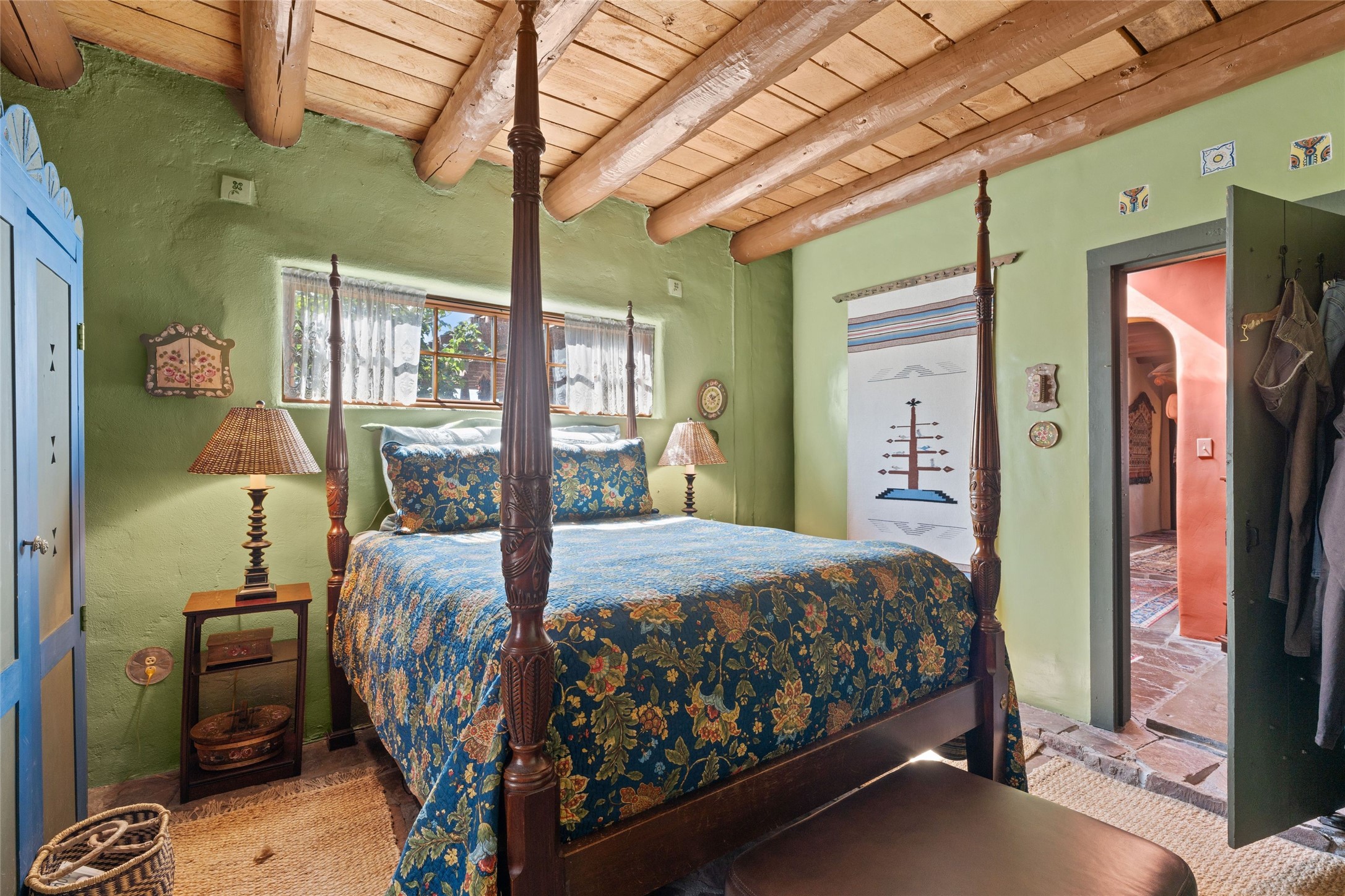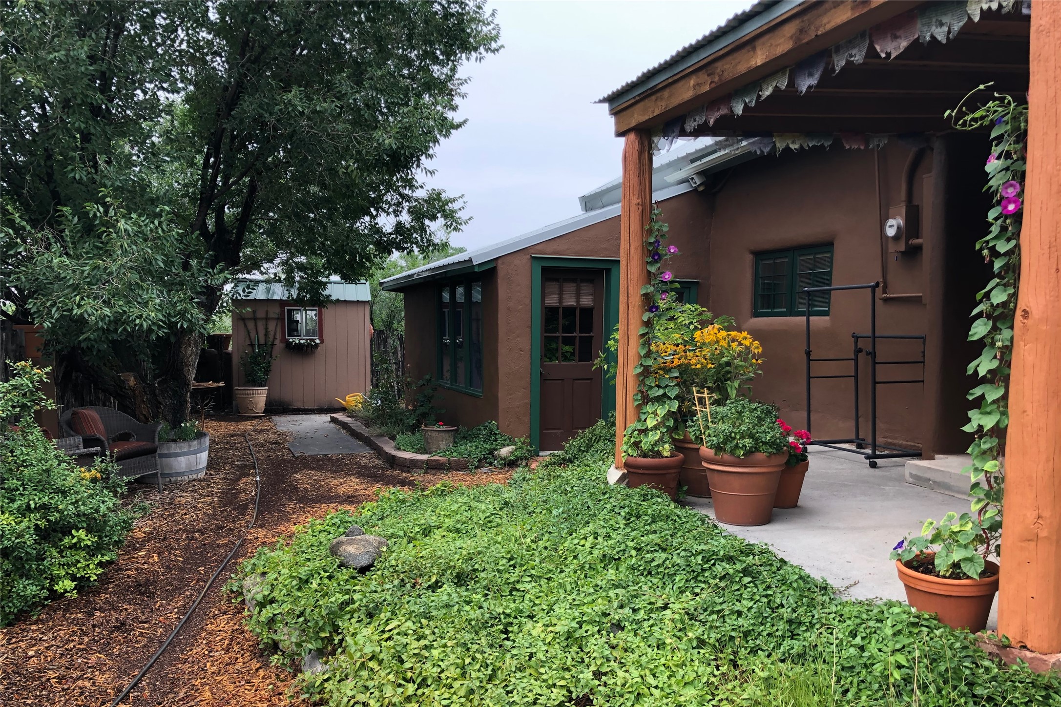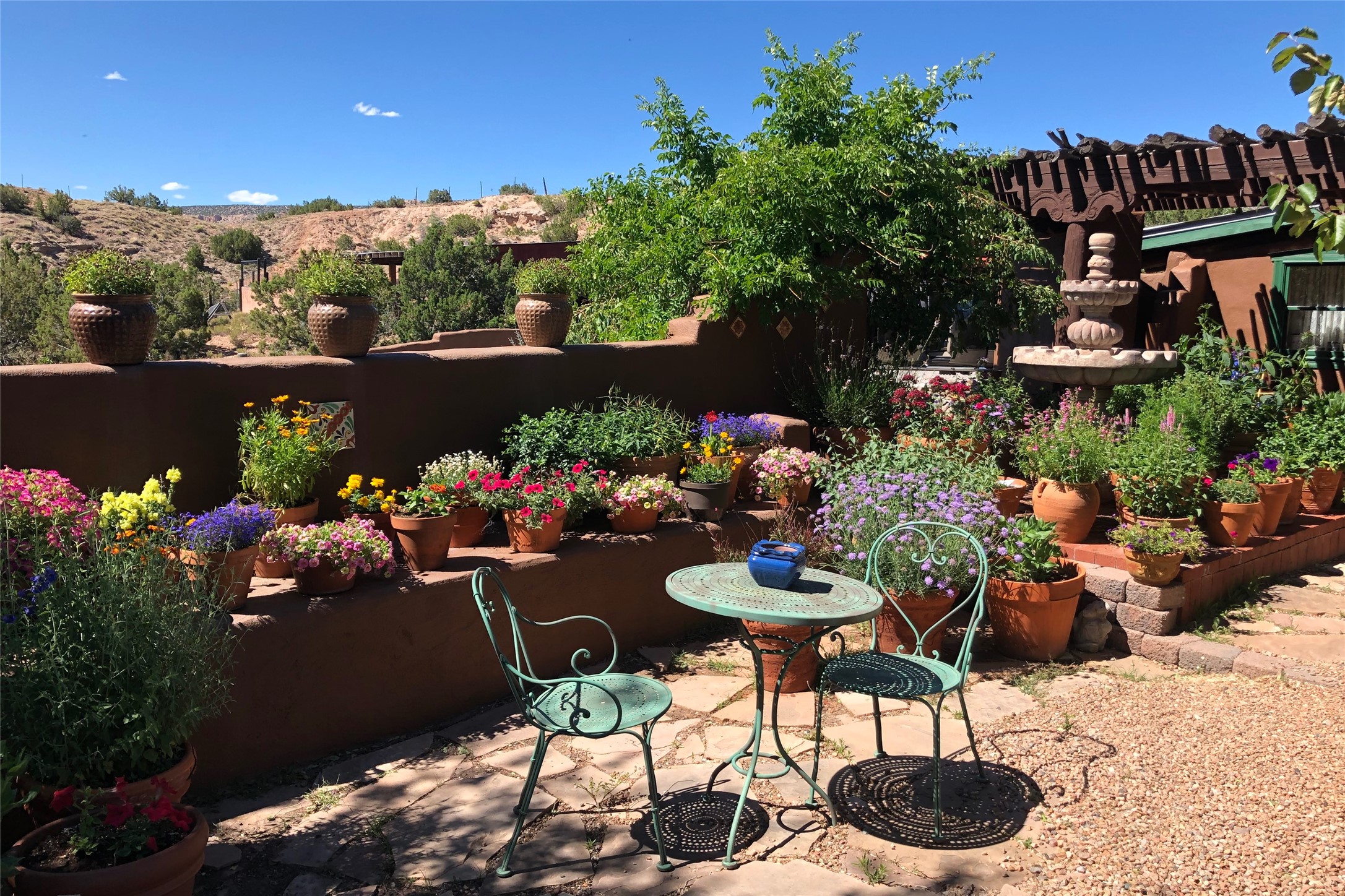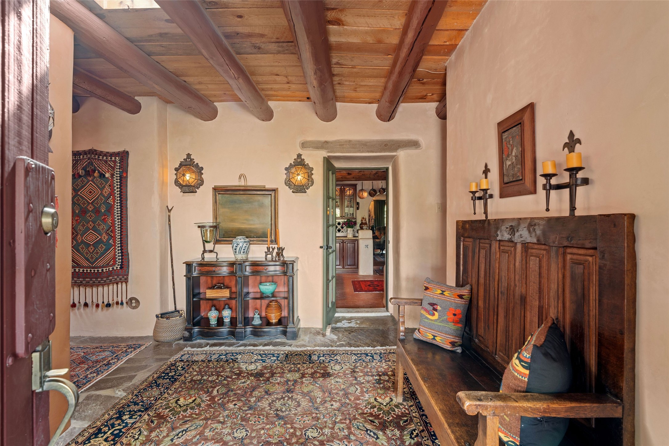 Rare opportunity to own your own private retreat and sanctuary on just under 7 acres in the historic village of Chimay. Nestled in the foothills of the Sangre de Cristo Mountains, within easy commuting distance to either Los Alamos or Santa Fe, this hilltop, gated hacienda is located on a tranquil tree-lined country road. The 3-bedroom, 2-bath property is surrounded by gardens, courtyards and a lovely orchard. Quality construction, utilities, and finishings throughout. Traditional Spanish and Pueblo design filled with vigas and beams, stone, tile and brick floors, 4 kiva fireplaces, nichos, bancos, and multiple portales. Two living areas provide room for both privacy and gatherings. Formal dining room for special occasion meals or cozy dinners at home. Chefs will enjoy the impressive kitchen with granite counters, wood and glass cabinets, and breakfast nook with banco. There is a studio/office with wine room in a detached building. Outdoor parties under the New Mexican sun and starlit nights? The extensive portal attached to the spacious shop building and adjacent firepit provide the perfect setting. Bonus features include a greenhouse for gardeners, carport, and new septic installed in 2025. Other features include combination subfloor and mini-split heating, top-quality Andersen windows throughout, Northern NM style peaked and silicon-sealed flat roofs, a community potable water system, and a brand new irrigation well. For those who are seeking a peaceful country home with authentic New Mexico character, this is a rare find. Chimay is a special place, known for the National Historic Landmark Santuario de Chimay, numerous weaving shops, and the famous Rancho de Chimay restaurant.