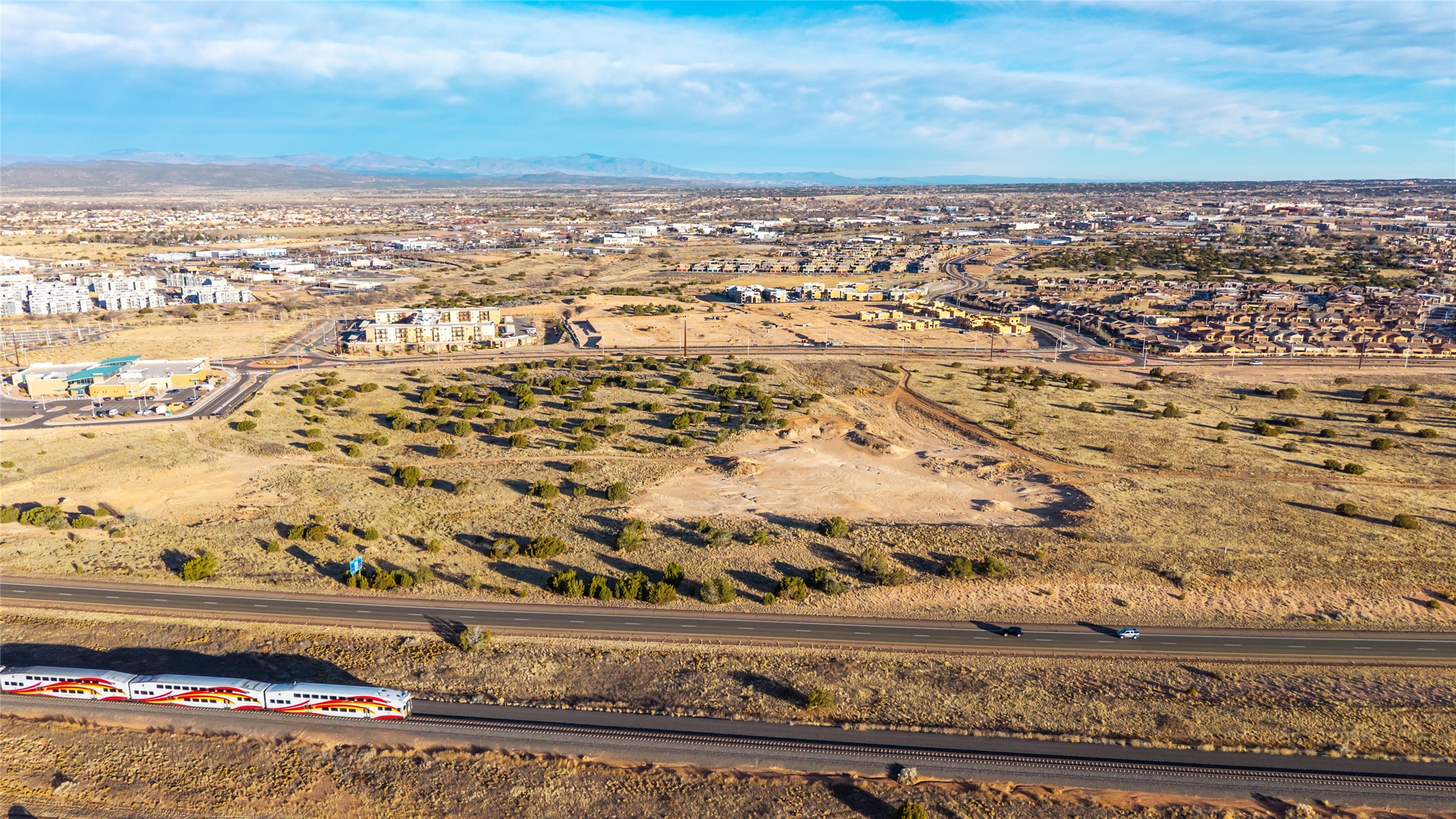 Commercial development parcel available for sale in Las Soleras, a master-planned mixed-use community located in one of Santa Fe's fastest growing commercial corridors. The sites are positioned near Beckner Road, Cerrillos Road, and State Road 599, with convenient access to Interstate 25, providing excellent connectivity throughout Santa Fe and northern New Mexico. The properties are located near major regional anchors including Christus St. Vincent Regional Medical Center, the VA Medical Center, Super Walmart, and Santa Fe Place Mall, placing them within Santa Fe's primary retail, healthcare, and service district. Parcel is zoned C-2 Commercial, allowing a wide range of uses including retail, office, medical, financial, multifamily residential, educational, recreational, and religious facilities, among others. The sites feature gently rolling terrain suitable for a variety of development concepts. City water, sewer, and electricity are available along Beckner Road, making these parcels ready for near-term development. Parcels 20, 25, and 26 are offered together in bulk price, and each parcel is also available for purchase individually. Las Soleras offers developers the opportunity to build in a growing area of Santa Fe supported by strong healthcare, retail, and residential demand with excellent regional access.