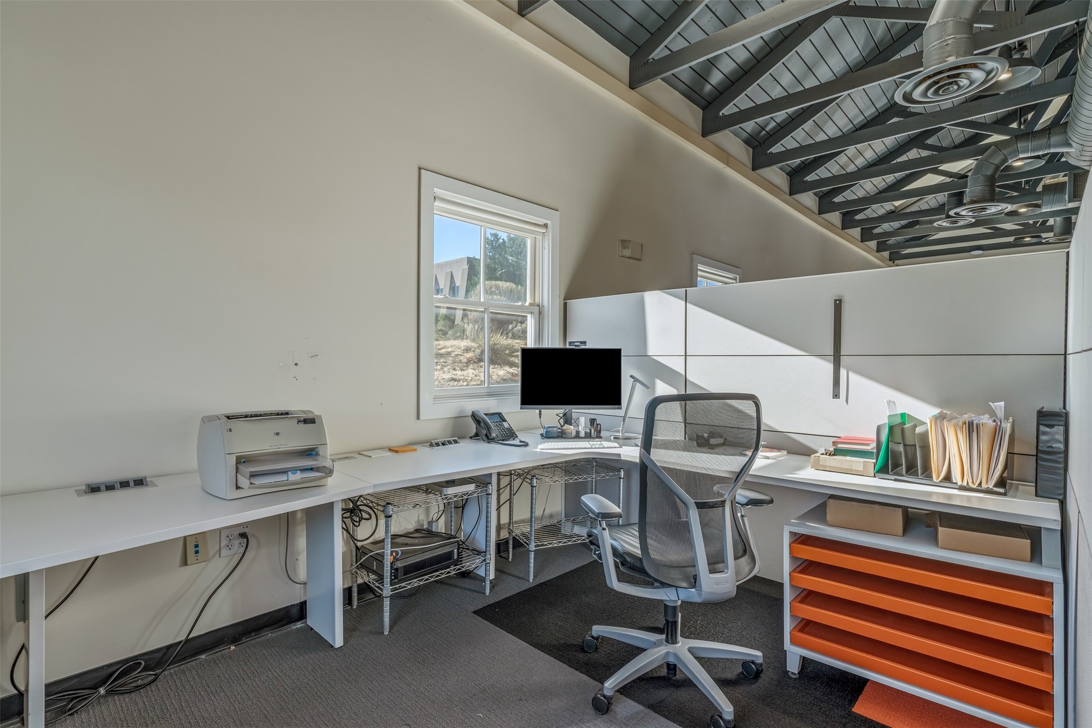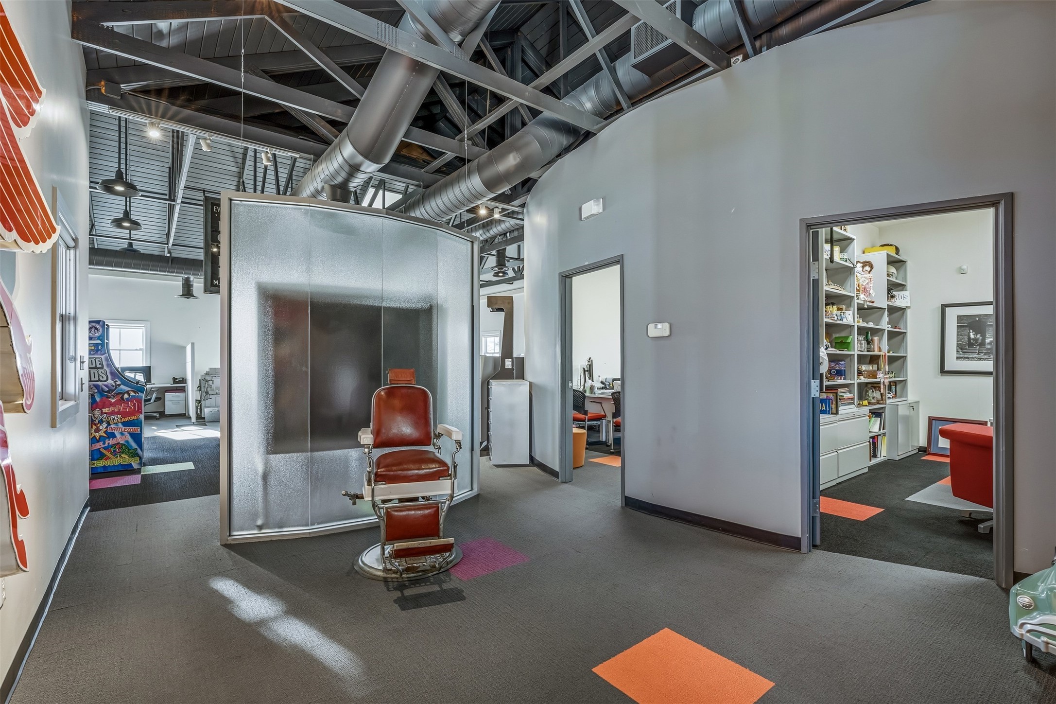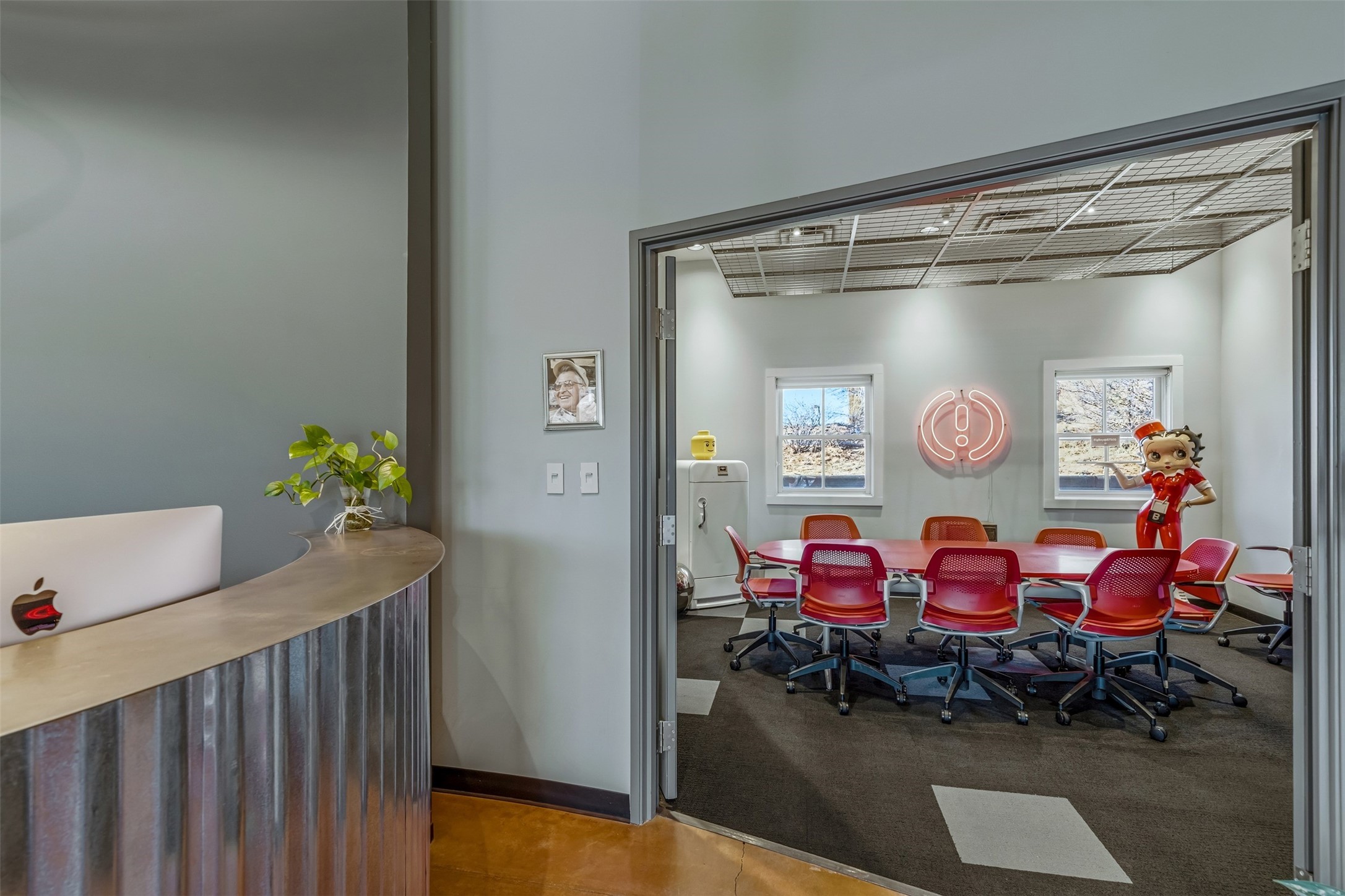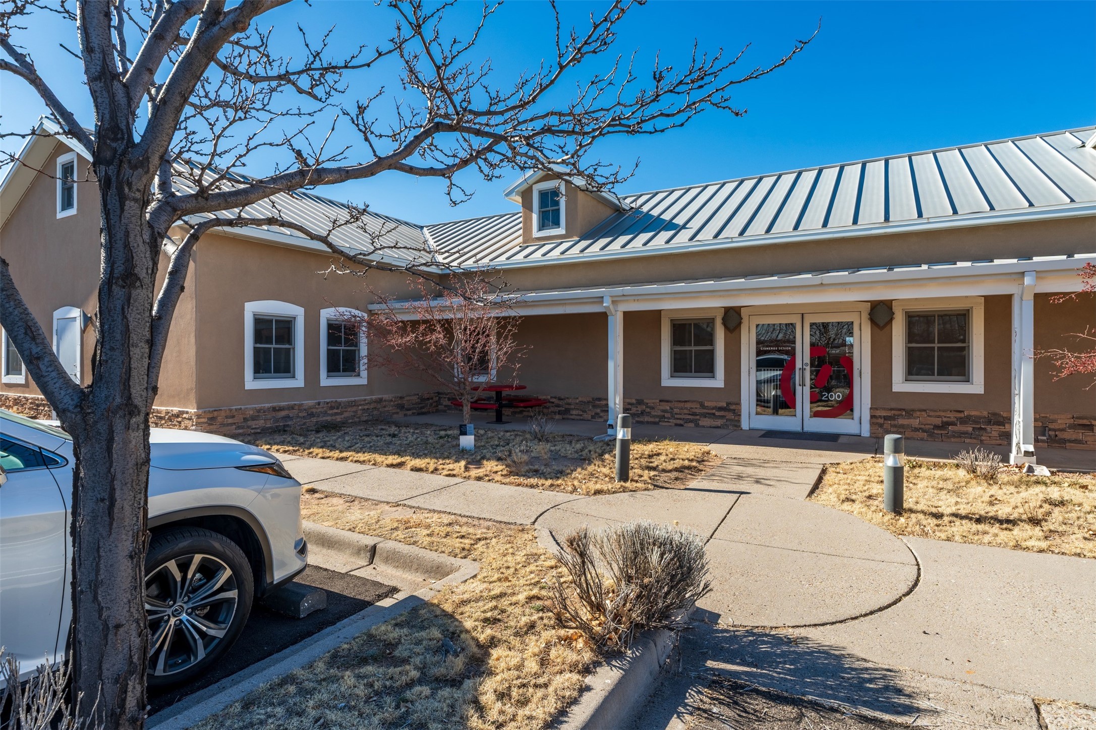 Standalone office building for sale for the first time! This single level office suite features a striking and modern interior designed to make a strong first impression. The space opens into a stylish reception area with polished concrete floors, exposed structural ceilings, and contemporary lighting that creates a bright and creative atmosphere. A curved reception desk anchors the entry, while large openings lead to collaborative meeting spaces, kitchen, conference room and private offices. The layout offers a functional blend of reception, private offices, and open workspace areas, complemented by vibrant design accents and ample natural light. With ADA-accessible entry and convenient ground-floor access, the suite provides excellent usability for clients and staff alike. Ideal for creative, tech, marketing, or professional office users seeking a distinctive and highly accessible workplace. Plenty of parking and an easily accessible in the Rodeo Park Commercial Condominium Business Park! Currently Owner Occupied. Condo dues are $2,048.18/ Quarter and cover exterior maint., master insurance, refuse, parking lot. Owner responsible for their own roof, stucco and HVAC maint. Parking lot was resurfaced in 2025.
