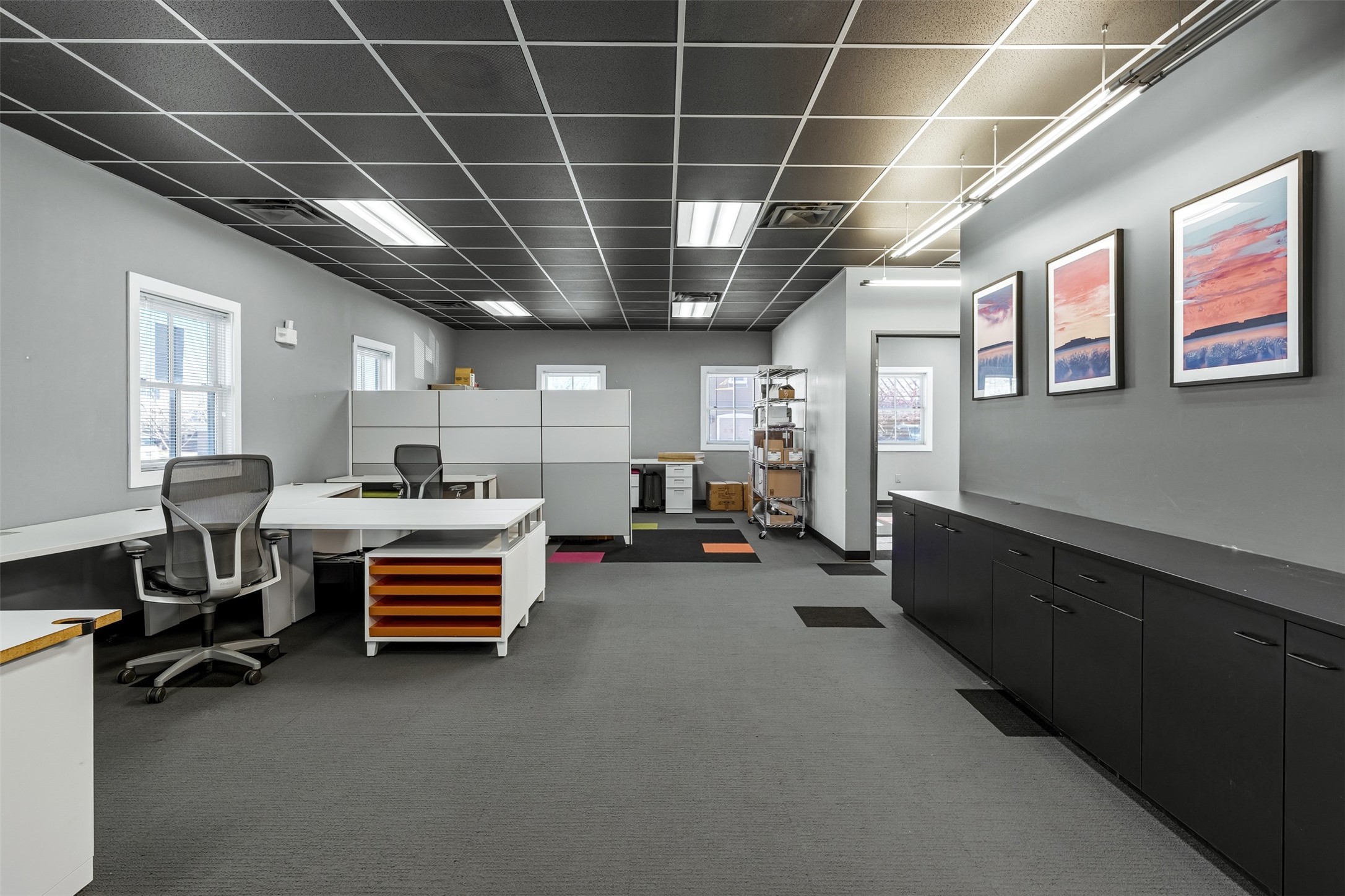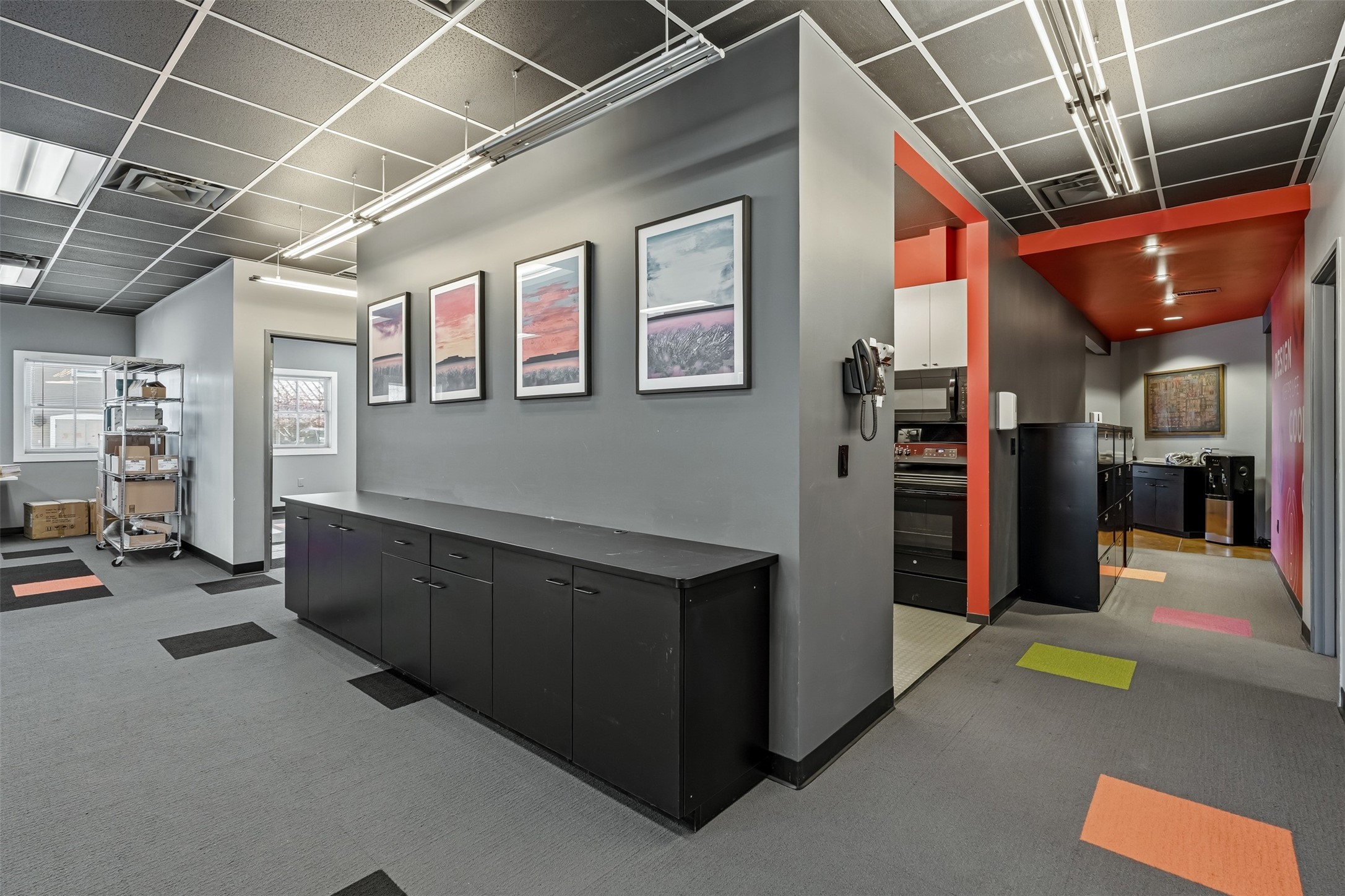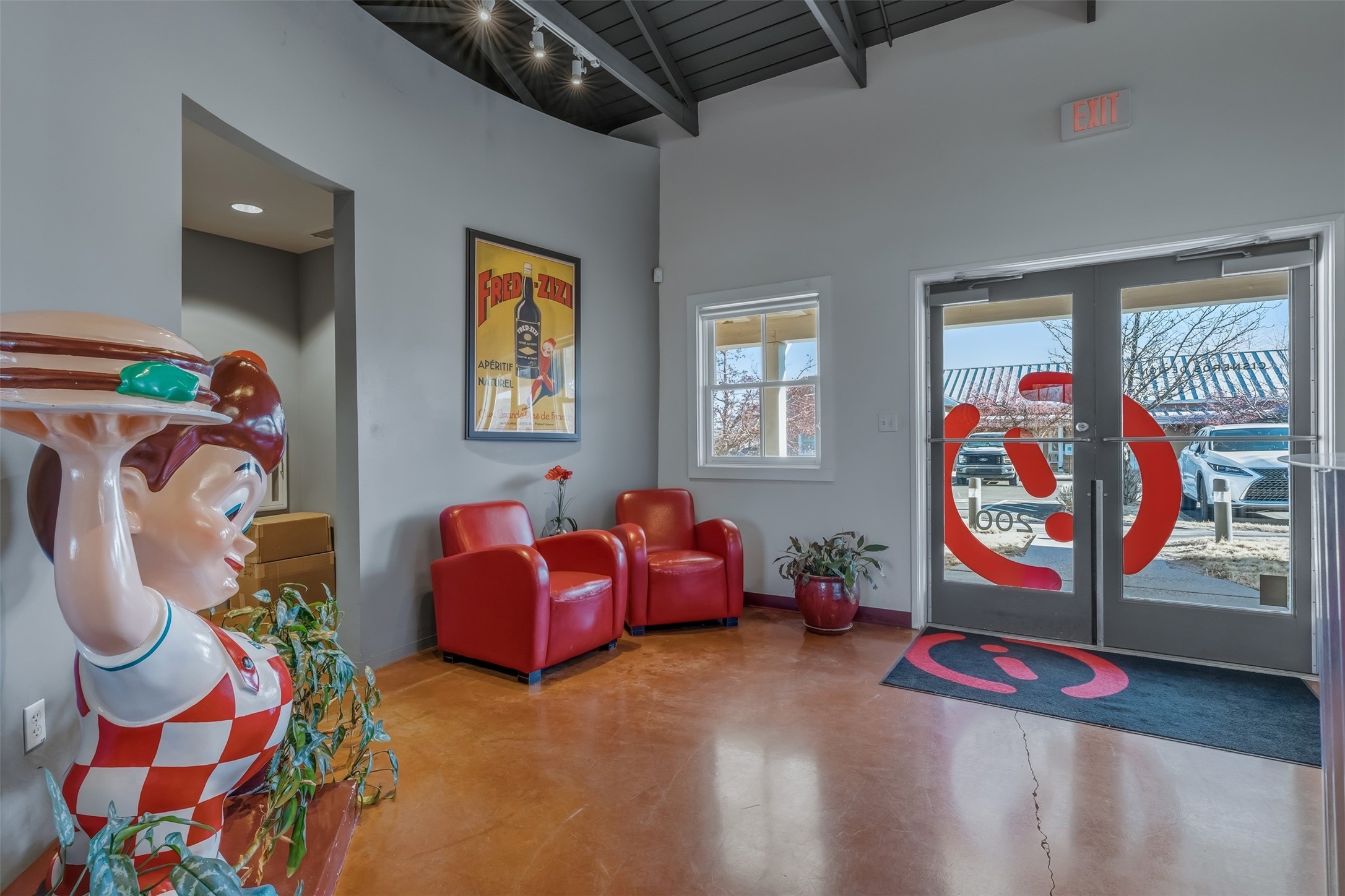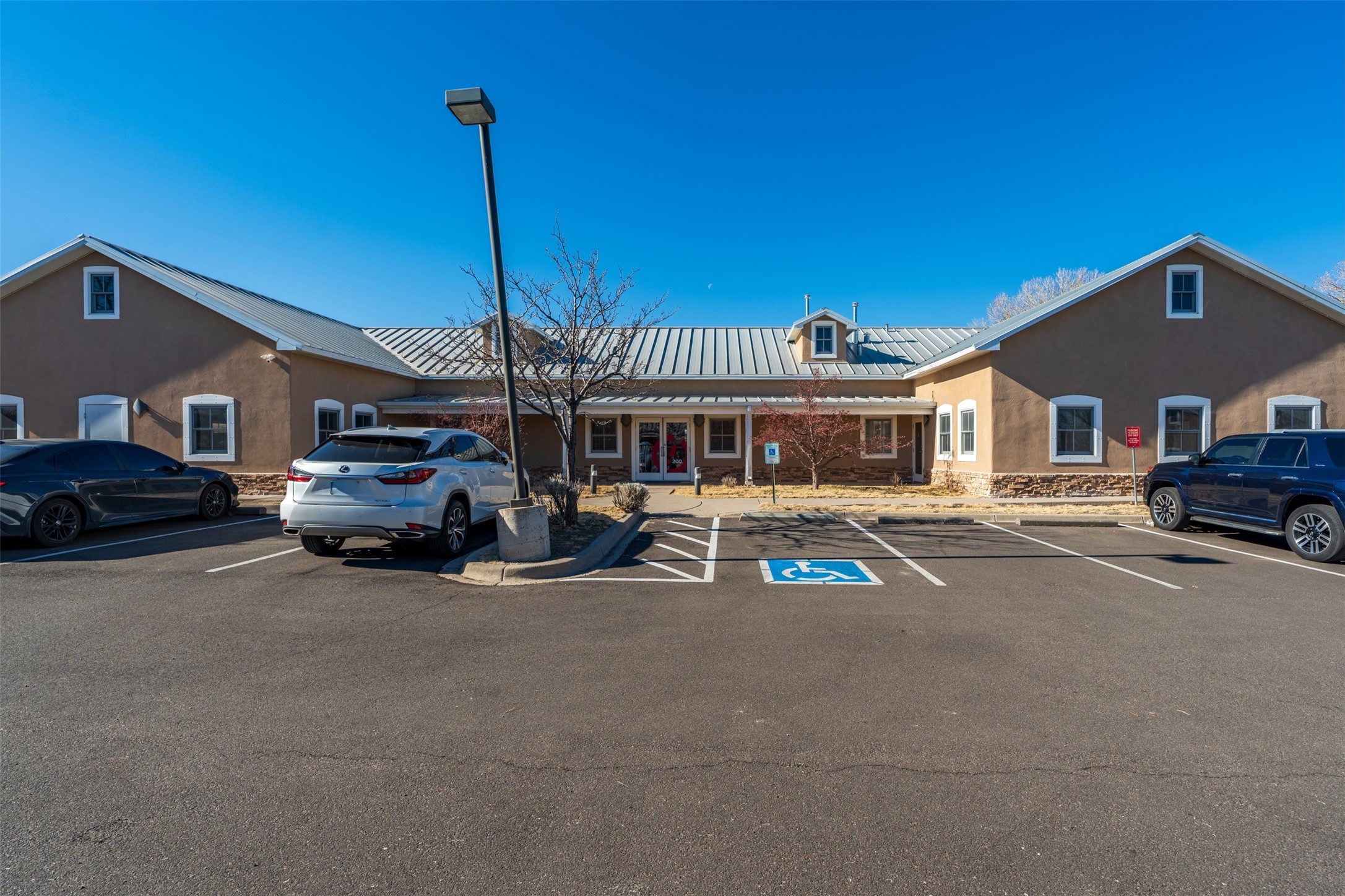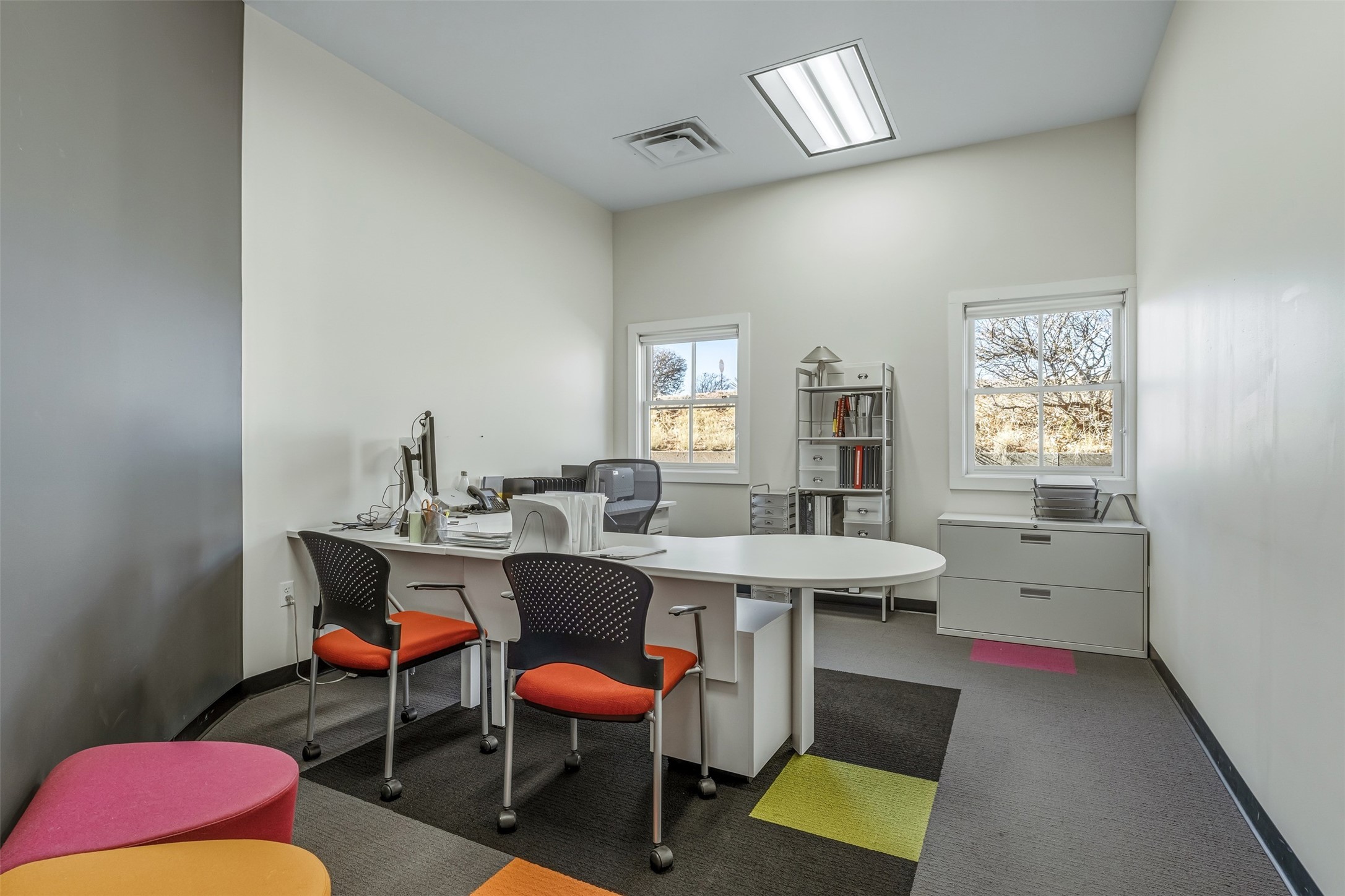 Standalone office building for sale for the first time! This single level office suite features a striking and modern interior designed to make a strong first impression. The space opens into a stylish reception area with polished concrete floors, exposed structural ceilings, and contemporary lighting that creates a bright and creative atmosphere. A curved reception desk anchors the entry, while large openings lead to collaborative meeting spaces, kitchen, conference room and private offices. The layout offers a functional blend of reception, private offices, and open workspace areas, complemented by vibrant design accents and ample natural light. With ADA-accessible entry and convenient ground-floor access, the suite provides excellent usability for clients and staff alike. Ideal for creative, tech, marketing, or professional office users seeking a distinctive and highly accessible workplace. Plenty of parking and an easily accessible in the Rodeo Park Commercial Condominium Business Park! Currently Owner Occupied. Condo dues are $2,048.18/ Quarter and cover exterior maint., master insurance, refuse, parking lot. Owner responsible for their own roof, stucco and HVAC maint. Parking lot was resurfaced in 2025.