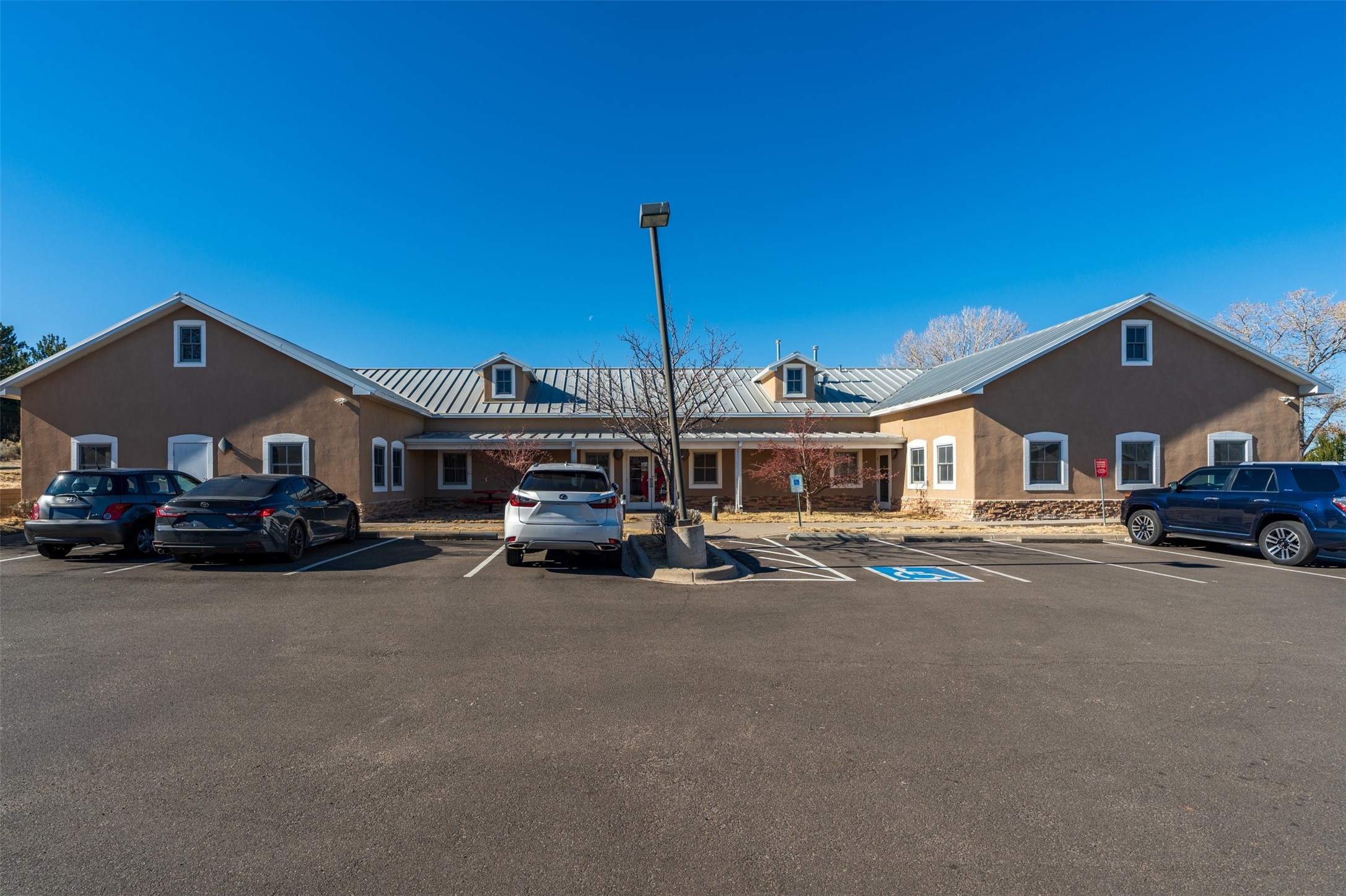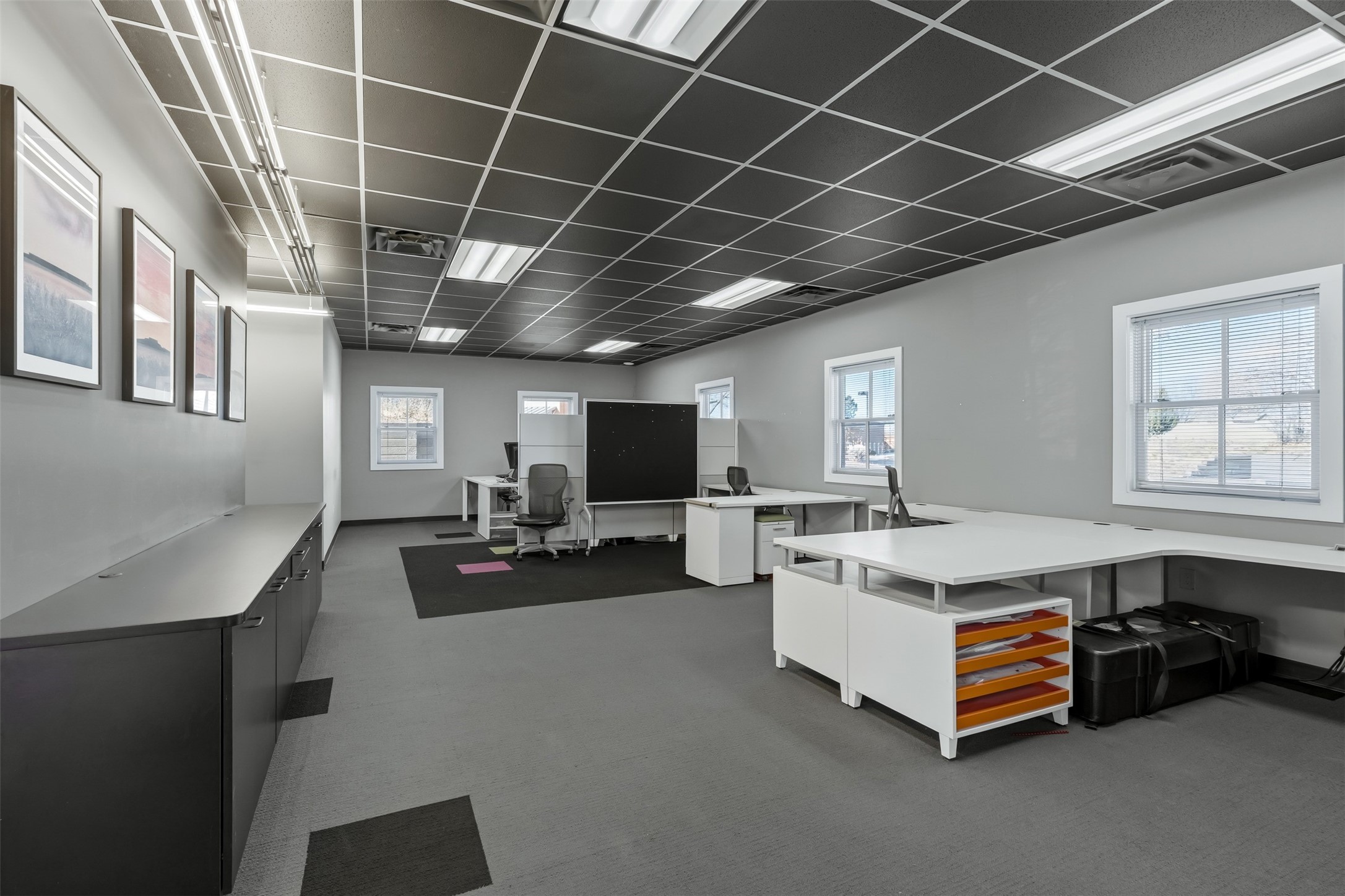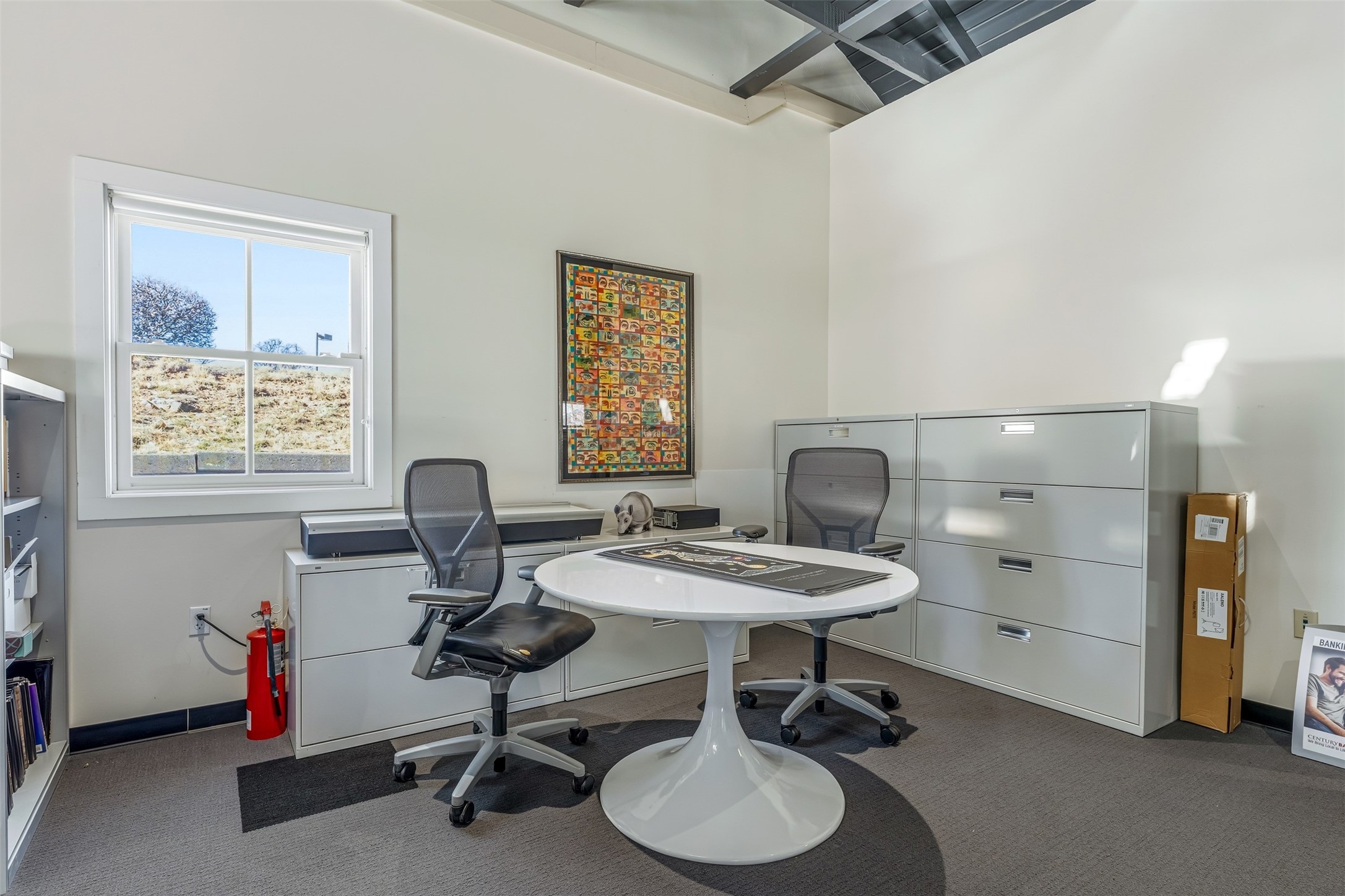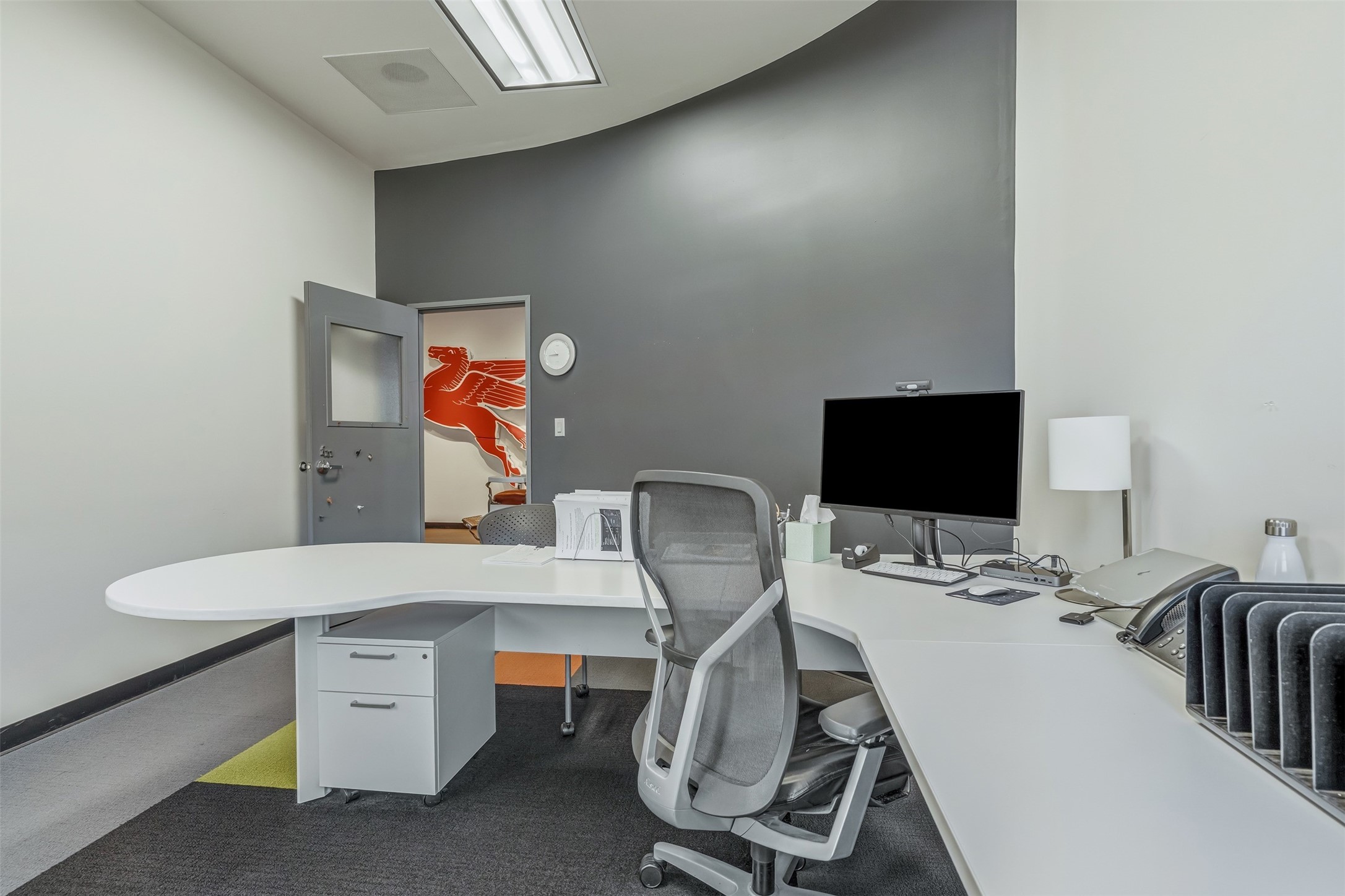 Standalone office building for sale for the first time! This single level office suite features a striking and modern interior designed to make a strong first impression. The space opens into a stylish reception area with polished concrete floors, exposed structural ceilings, and contemporary lighting that creates a bright and creative atmosphere. A curved reception desk anchors the entry, while large openings lead to collaborative meeting spaces, kitchen, conference room and private offices. The layout offers a functional blend of reception, private offices, and open workspace areas, complemented by vibrant design accents and ample natural light. With ADA-accessible entry and convenient ground-floor access, the suite provides excellent usability for clients and staff alike. Ideal for creative, tech, marketing, or professional office users seeking a distinctive and highly accessible workplace. Plenty of parking and an easily accessible in the Rodeo Park Commercial Condominium Business Park! Currently Owner Occupied. Condo dues are $2,048.18/ Quarter and cover exterior maint., master insurance, refuse, parking lot. Owner responsible for their own roof, stucco and HVAC maint. Parking lot was resurfaced in 2025.