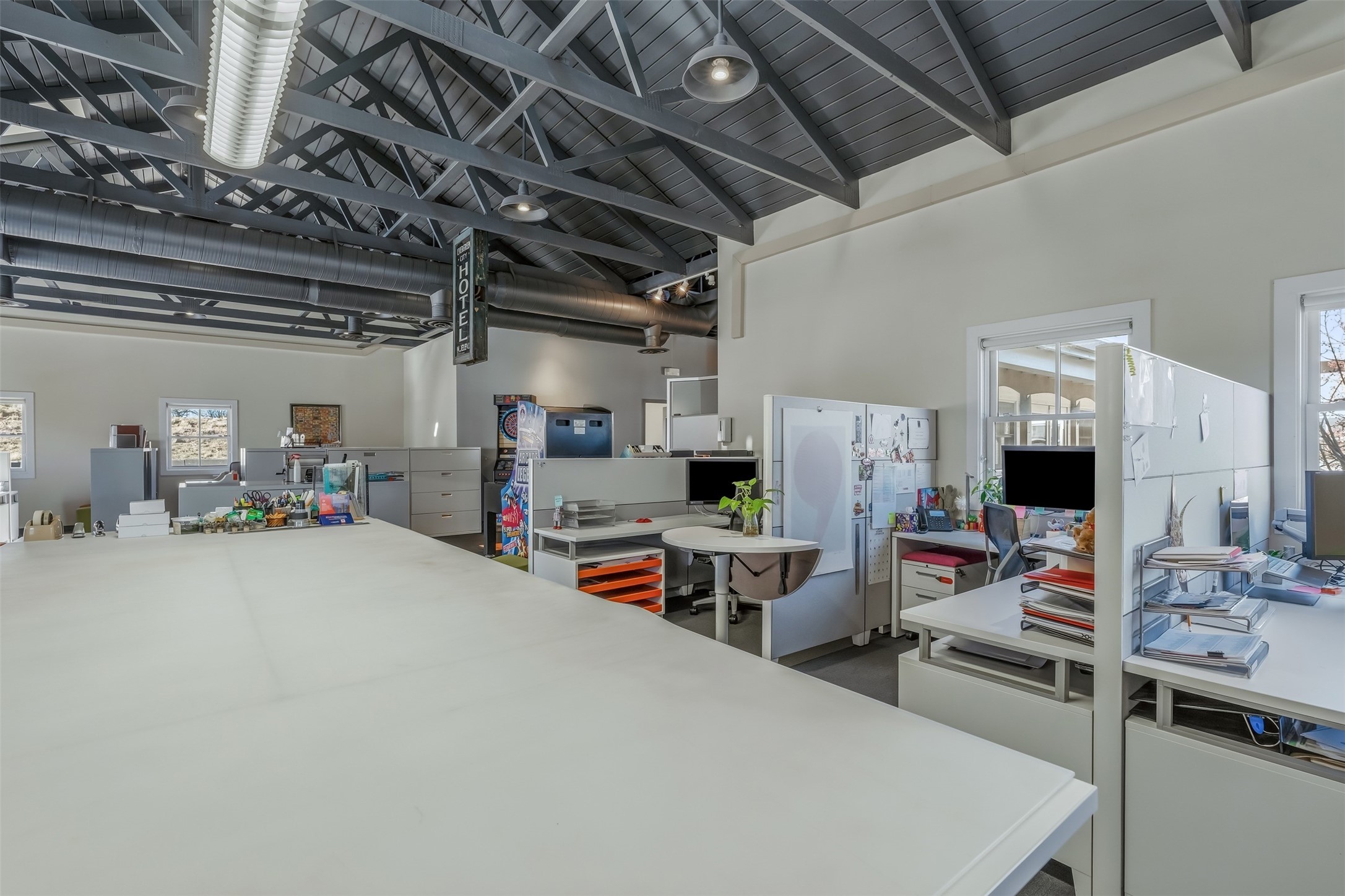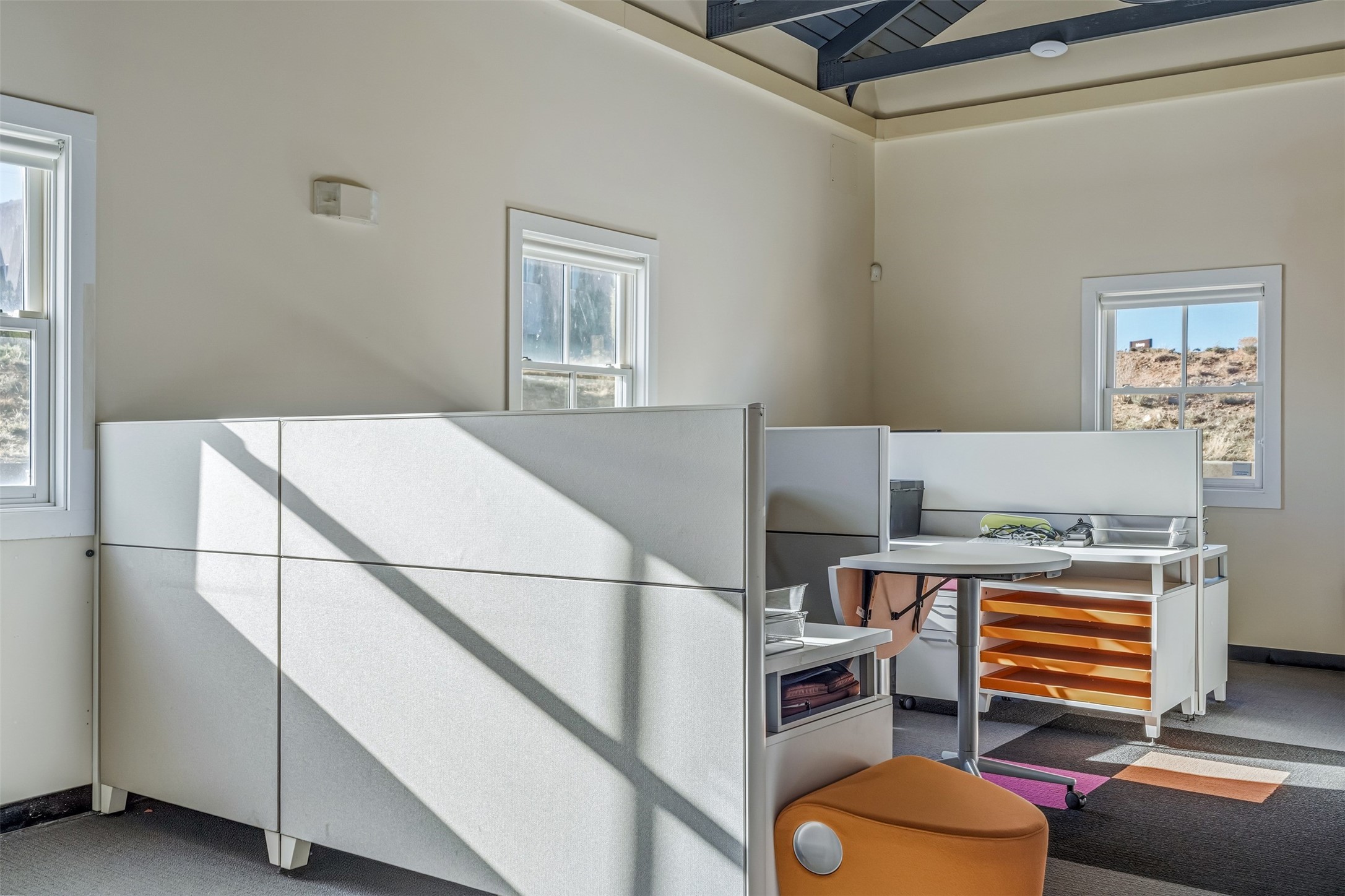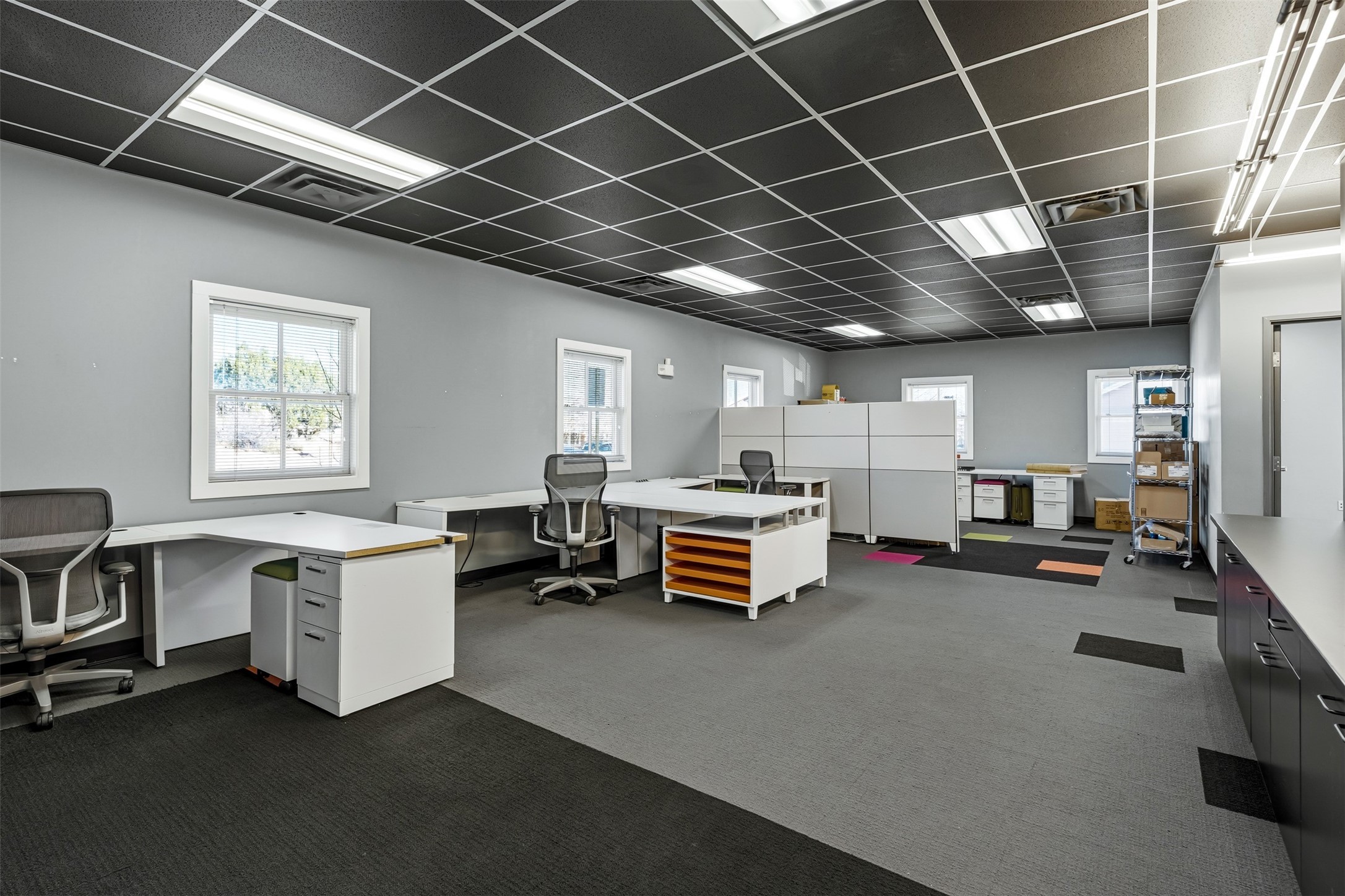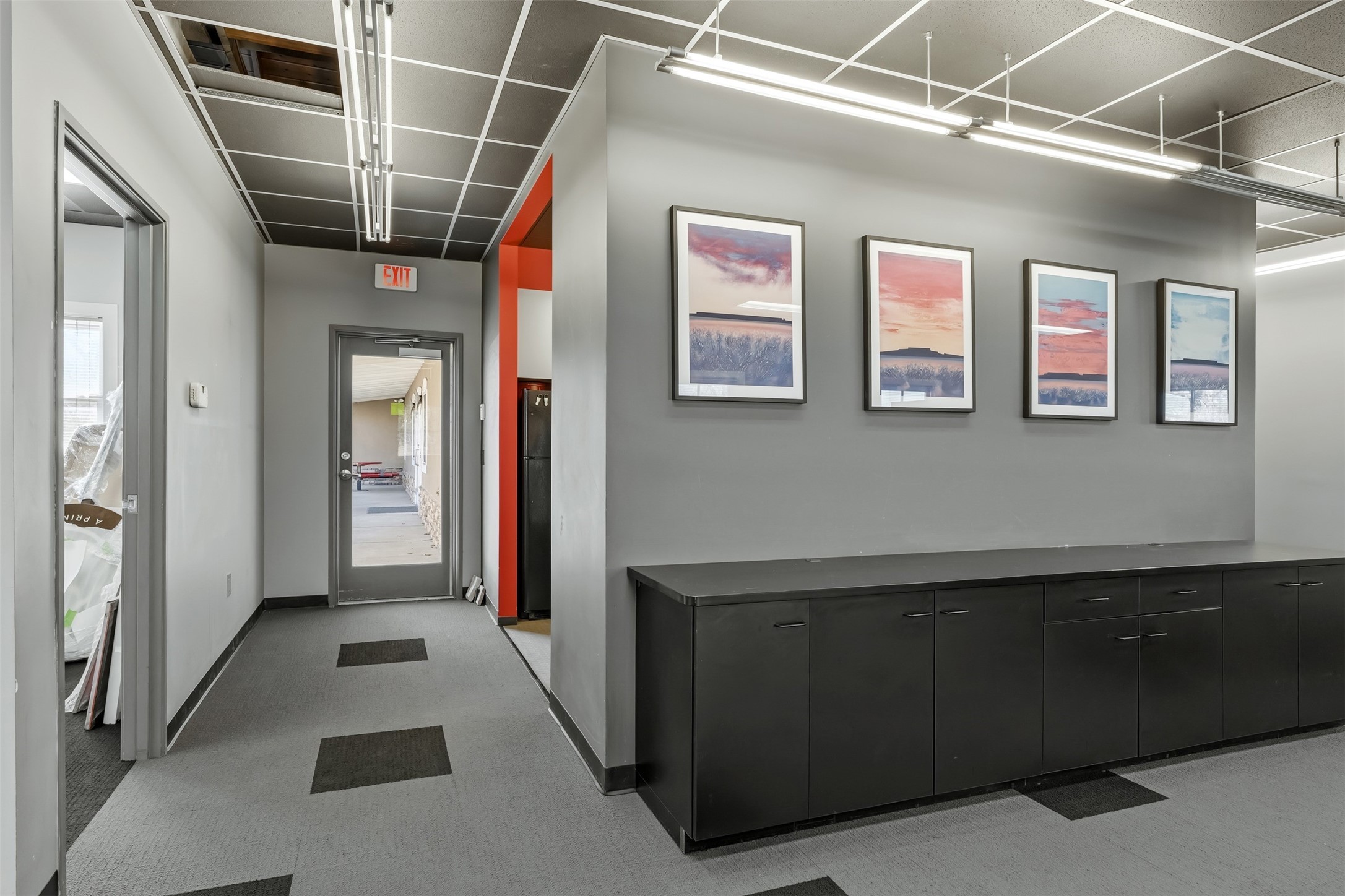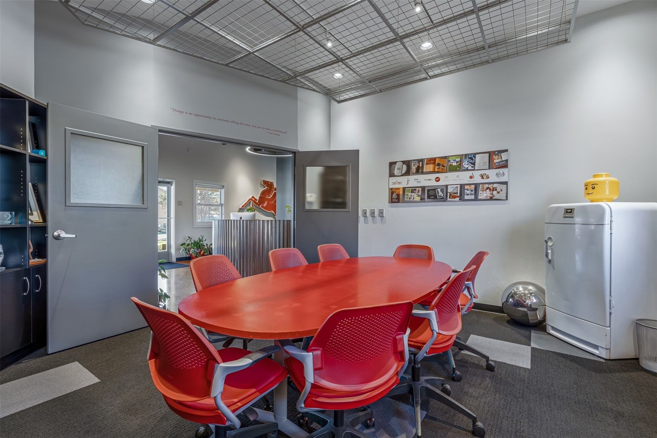 Standalone office building for sale for the first time! This single level office suite features a striking and modern interior designed to make a strong first impression. The space opens into a stylish reception area with polished concrete floors, exposed structural ceilings, and contemporary lighting that creates a bright and creative atmosphere. A curved reception desk anchors the entry, while large openings lead to collaborative meeting spaces, kitchen, conference room and private offices. The layout offers a functional blend of reception, private offices, and open workspace areas, complemented by vibrant design accents and ample natural light. With ADA-accessible entry and convenient ground-floor access, the suite provides excellent usability for clients and staff alike. Ideal for creative, tech, marketing, or professional office users seeking a distinctive and highly accessible workplace. Plenty of parking and an easily accessible in the Rodeo Park Commercial Condominium Business Park! Currently Owner Occupied. Condo dues are $2,048.18/ Quarter and cover exterior maint., master insurance, refuse, parking lot. Owner responsible for their own roof, stucco and HVAC maint. Parking lot was resurfaced in 2025.