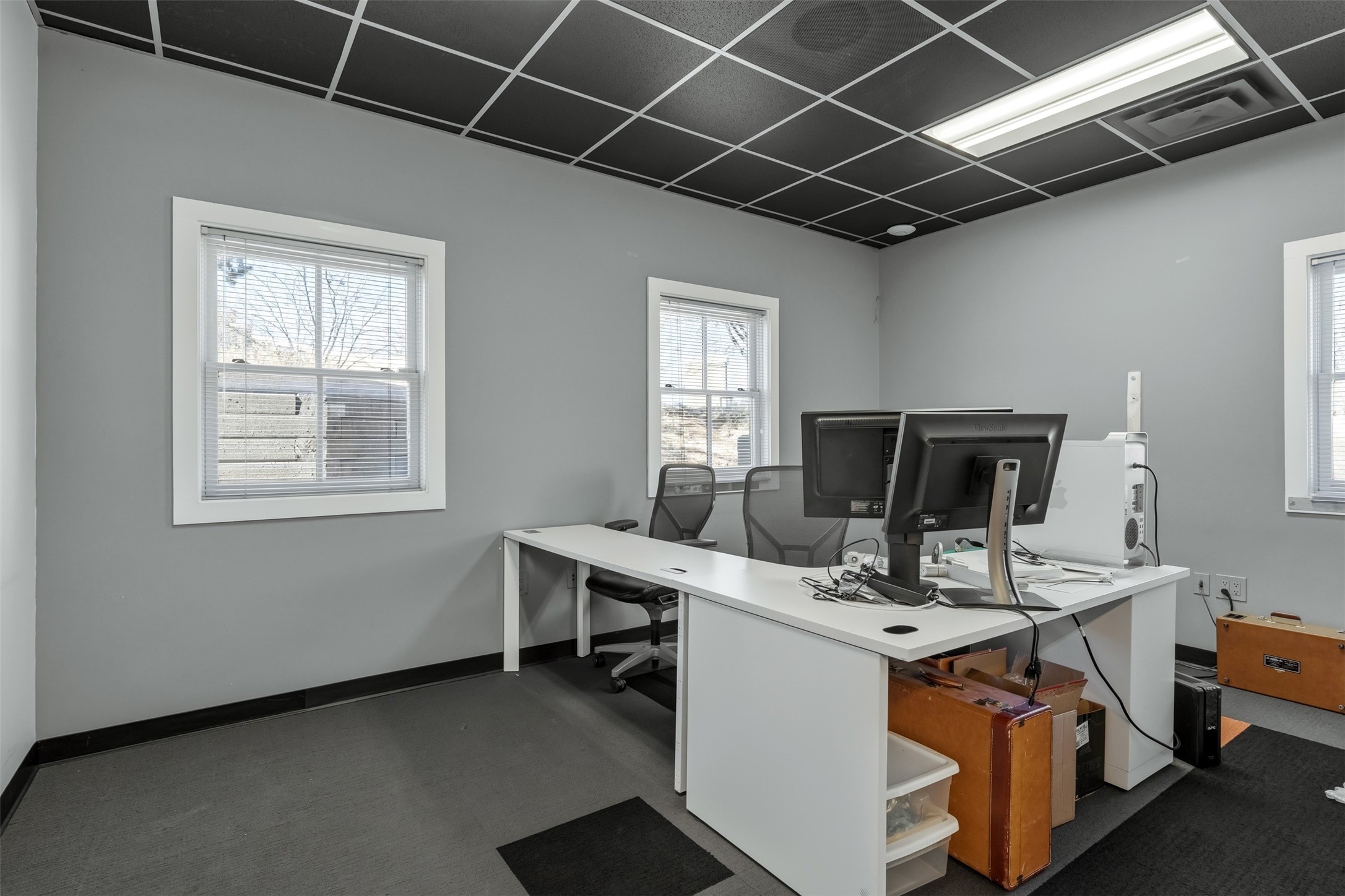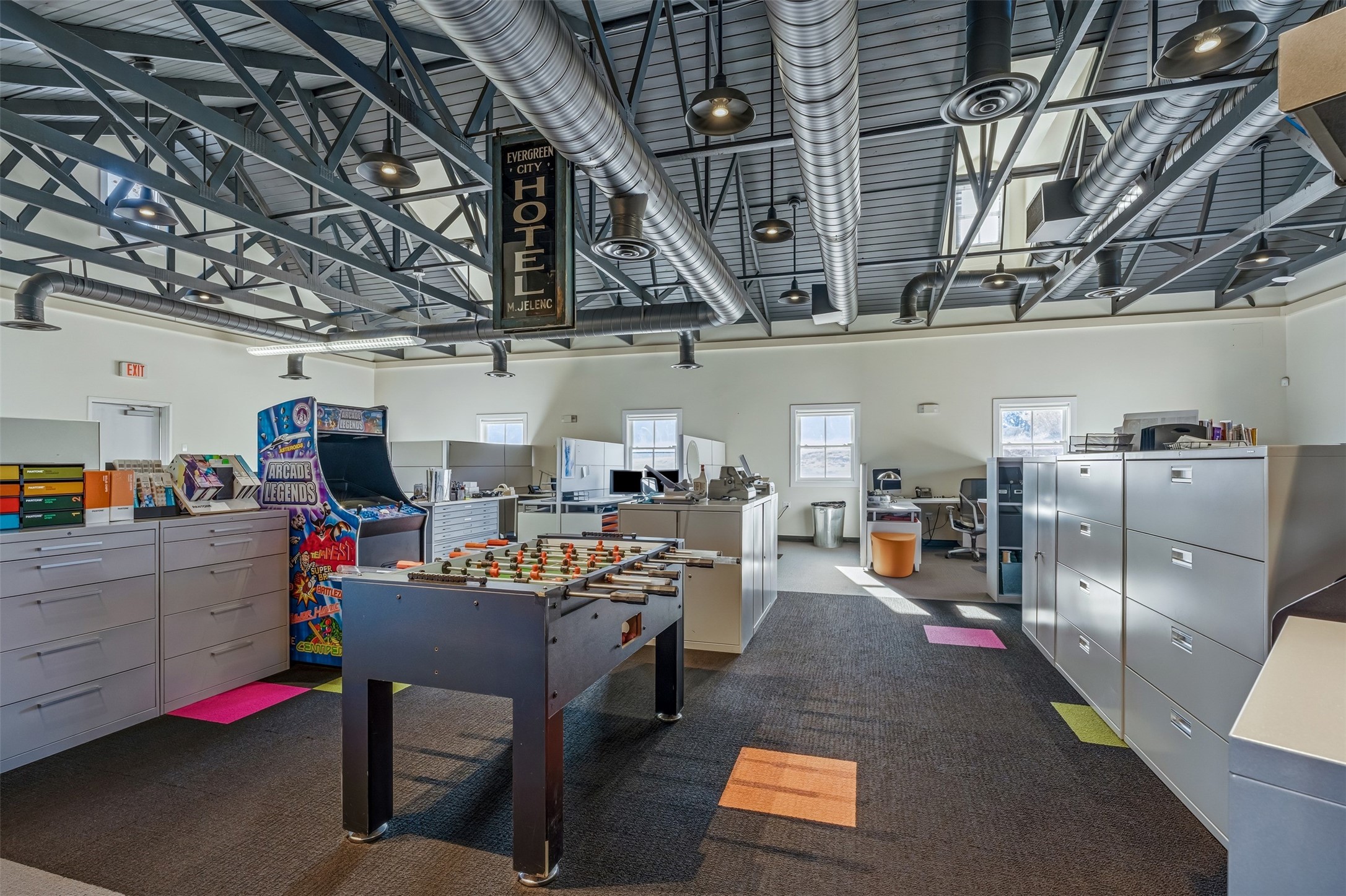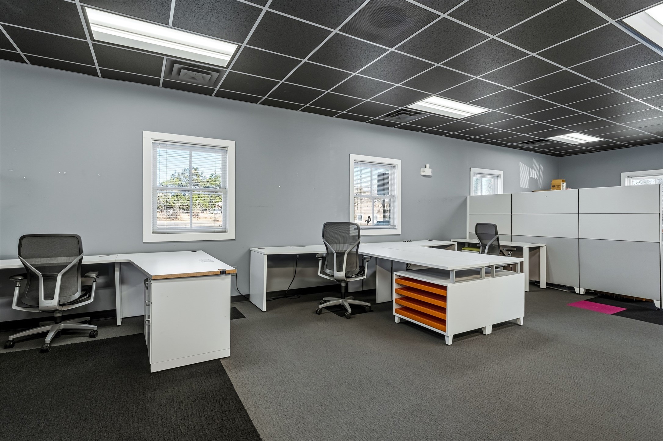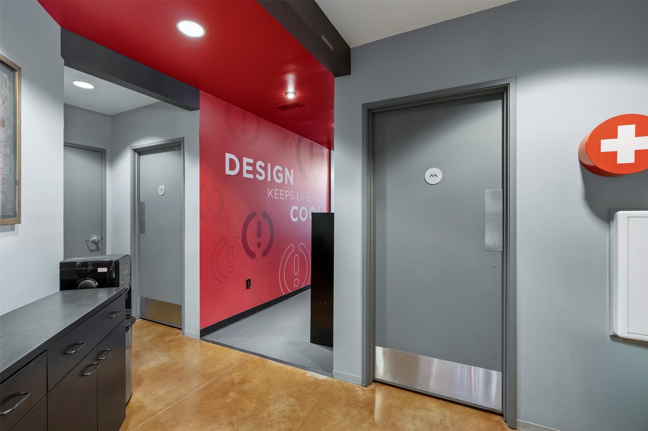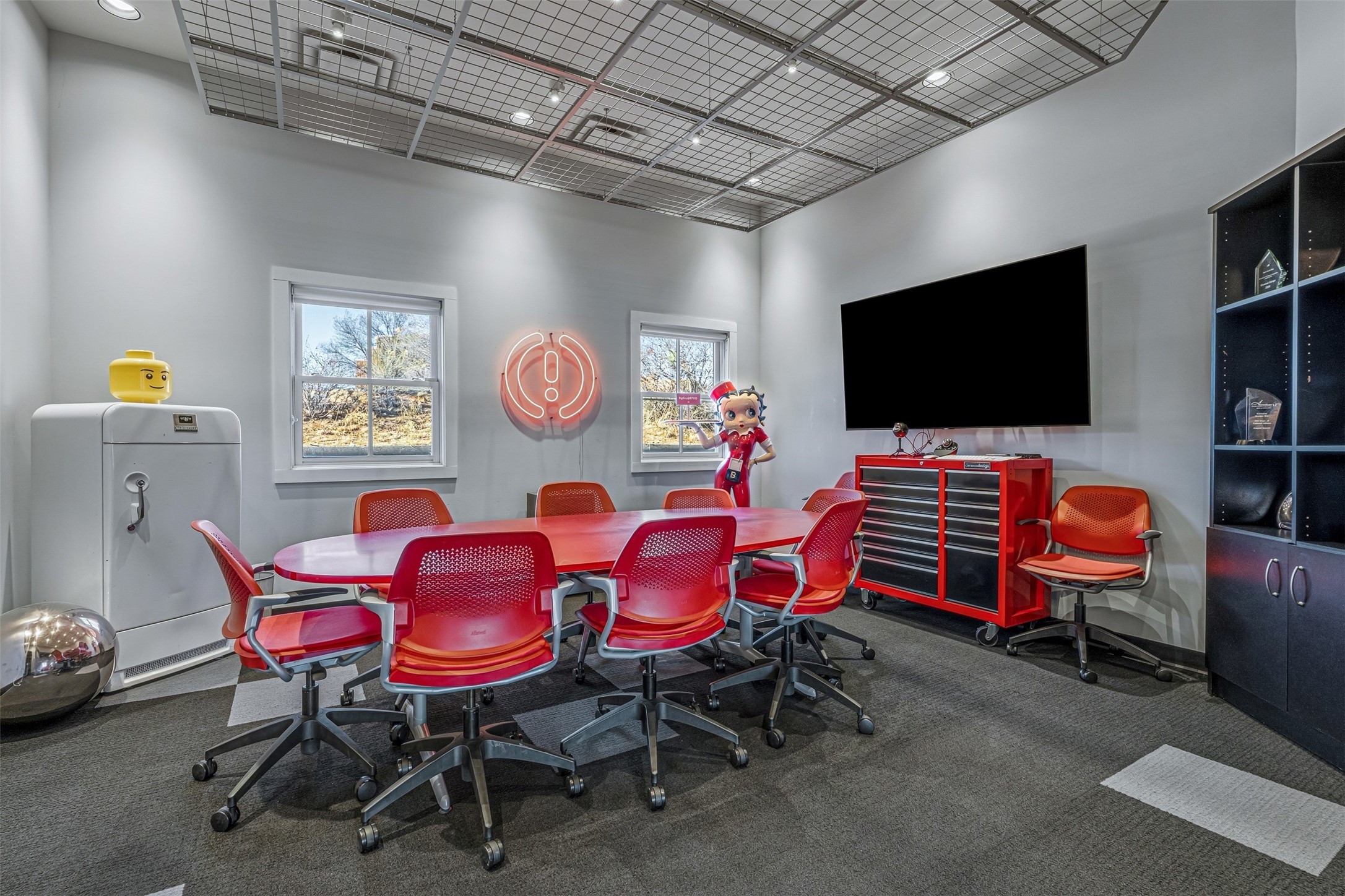 Standalone office building for sale for the first time! This single level office suite features a striking and modern interior designed to make a strong first impression. The space opens into a stylish reception area with polished concrete floors, exposed structural ceilings, and contemporary lighting that creates a bright and creative atmosphere. A curved reception desk anchors the entry, while large openings lead to collaborative meeting spaces, kitchen, conference room and private offices. The layout offers a functional blend of reception, private offices, and open workspace areas, complemented by vibrant design accents and ample natural light. With ADA-accessible entry and convenient ground-floor access, the suite provides excellent usability for clients and staff alike. Ideal for creative, tech, marketing, or professional office users seeking a distinctive and highly accessible workplace. Plenty of parking and an easily accessible in the Rodeo Park Commercial Condominium Business Park! Currently Owner Occupied. Condo dues are $2,048.18/ Quarter and cover exterior maint., master insurance, refuse, parking lot. Owner responsible for their own roof, stucco and HVAC maint. Parking lot was resurfaced in 2025.