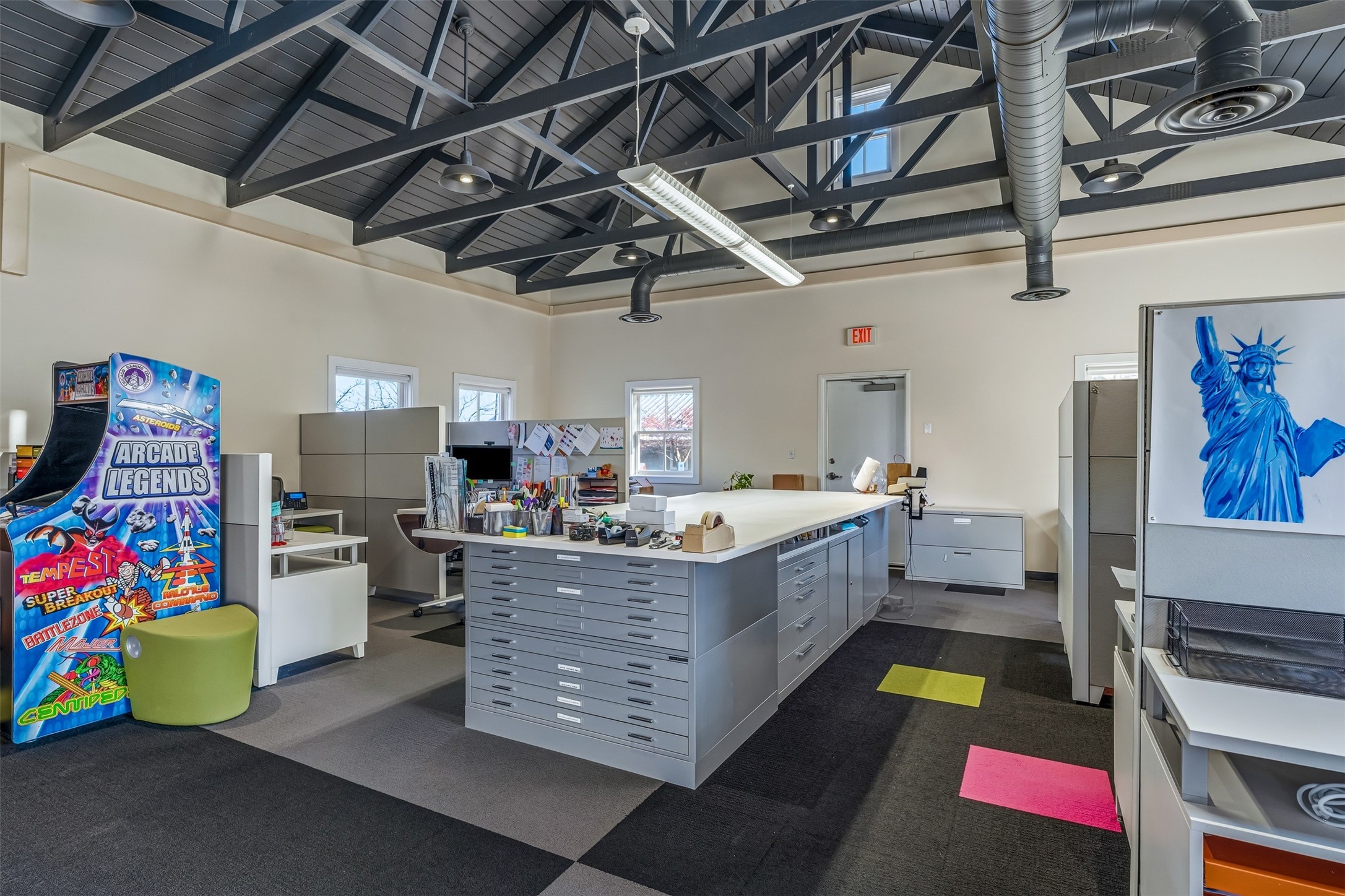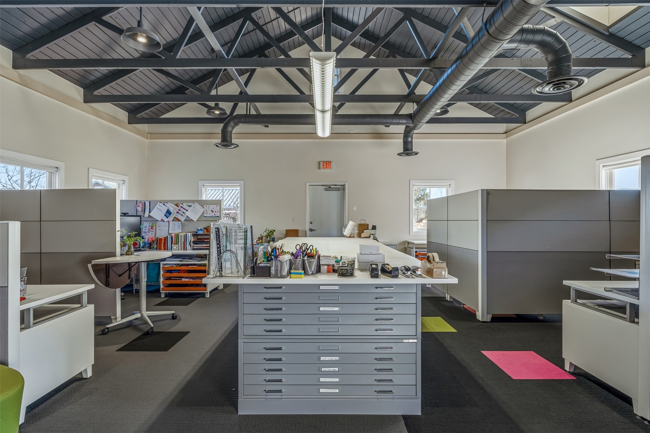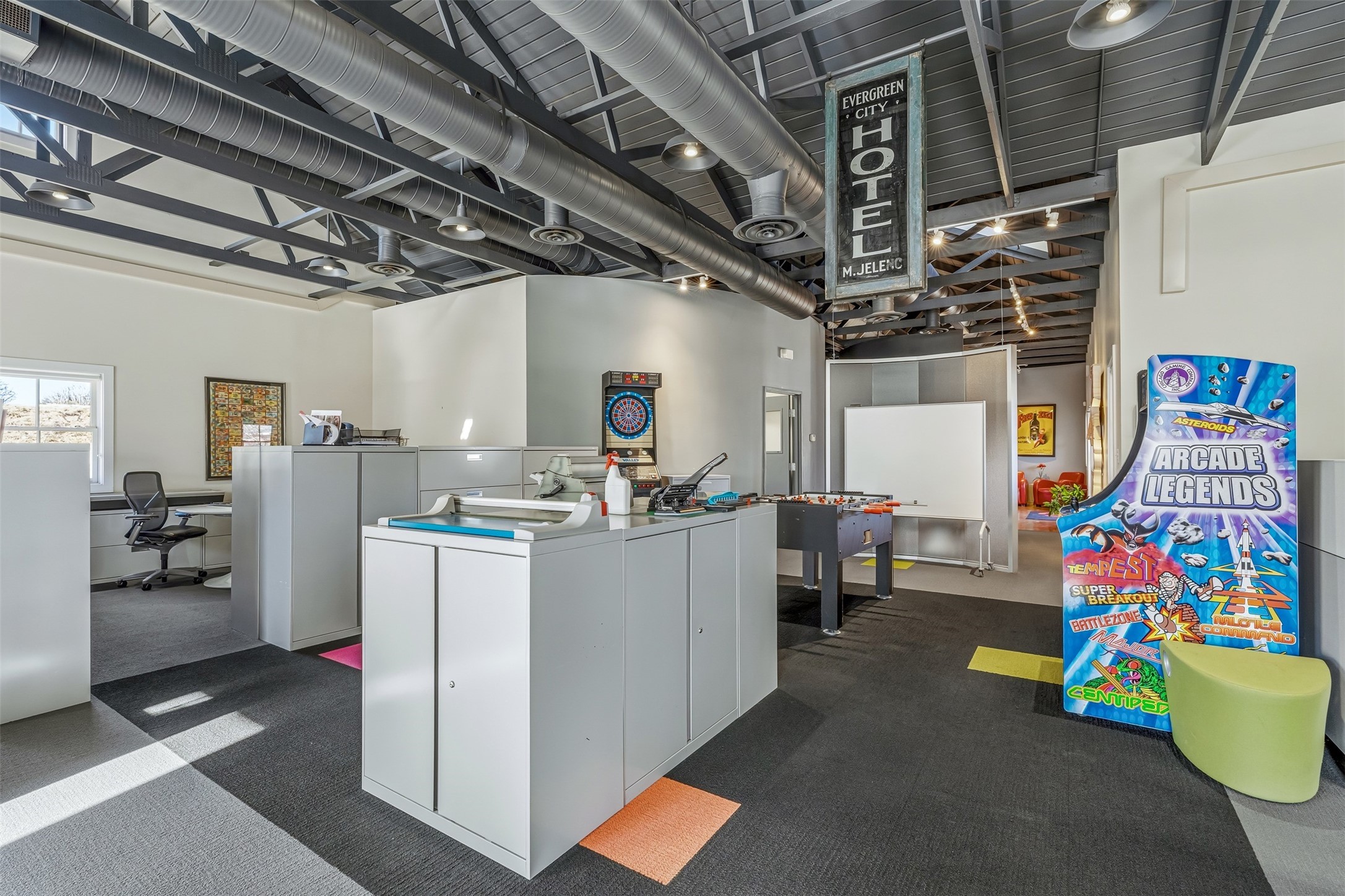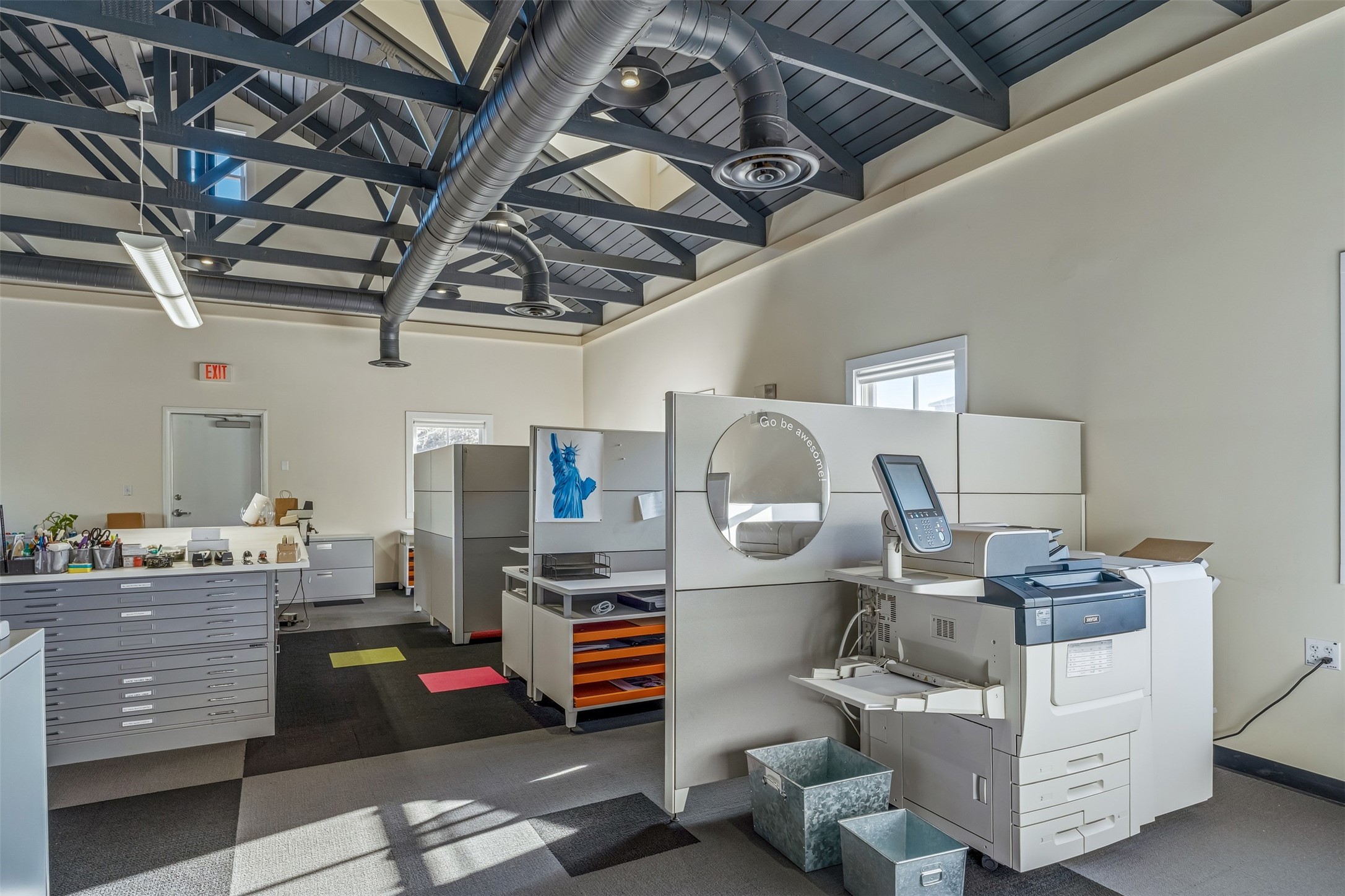 Standalone office building for sale for the first time! This single level office suite features a striking and modern interior designed to make a strong first impression. The space opens into a stylish reception area with polished concrete floors, exposed structural ceilings, and contemporary lighting that creates a bright and creative atmosphere. A curved reception desk anchors the entry, while large openings lead to collaborative meeting spaces, kitchen, conference room and private offices. The layout offers a functional blend of reception, private offices, and open workspace areas, complemented by vibrant design accents and ample natural light. With ADA-accessible entry and convenient ground-floor access, the suite provides excellent usability for clients and staff alike. Ideal for creative, tech, marketing, or professional office users seeking a distinctive and highly accessible workplace. Plenty of parking and an easily accessible in the Rodeo Park Commercial Condominium Business Park! Currently Owner Occupied. Condo dues are $2,048.18/ Quarter and cover exterior maint., master insurance, refuse, parking lot. Owner responsible for their own roof, stucco and HVAC maint. Parking lot was resurfaced in 2025.