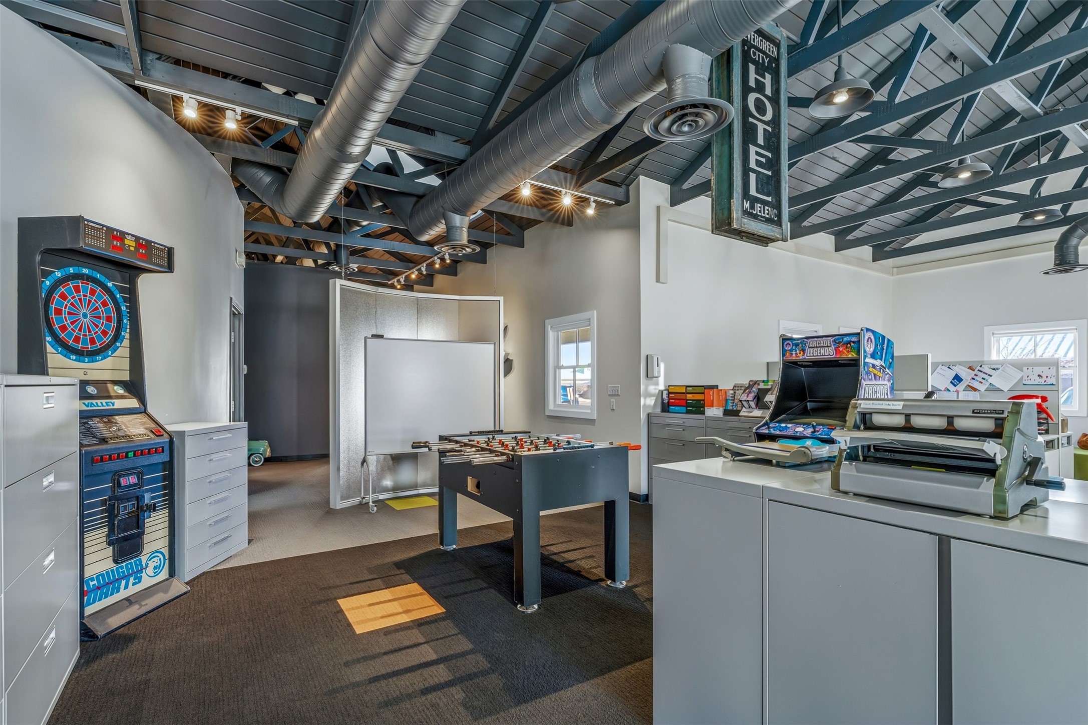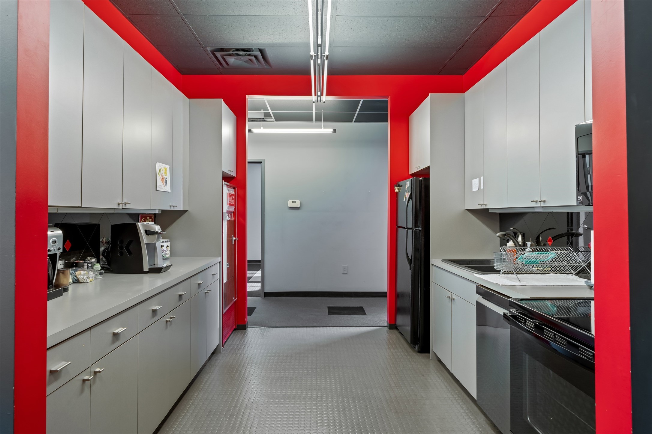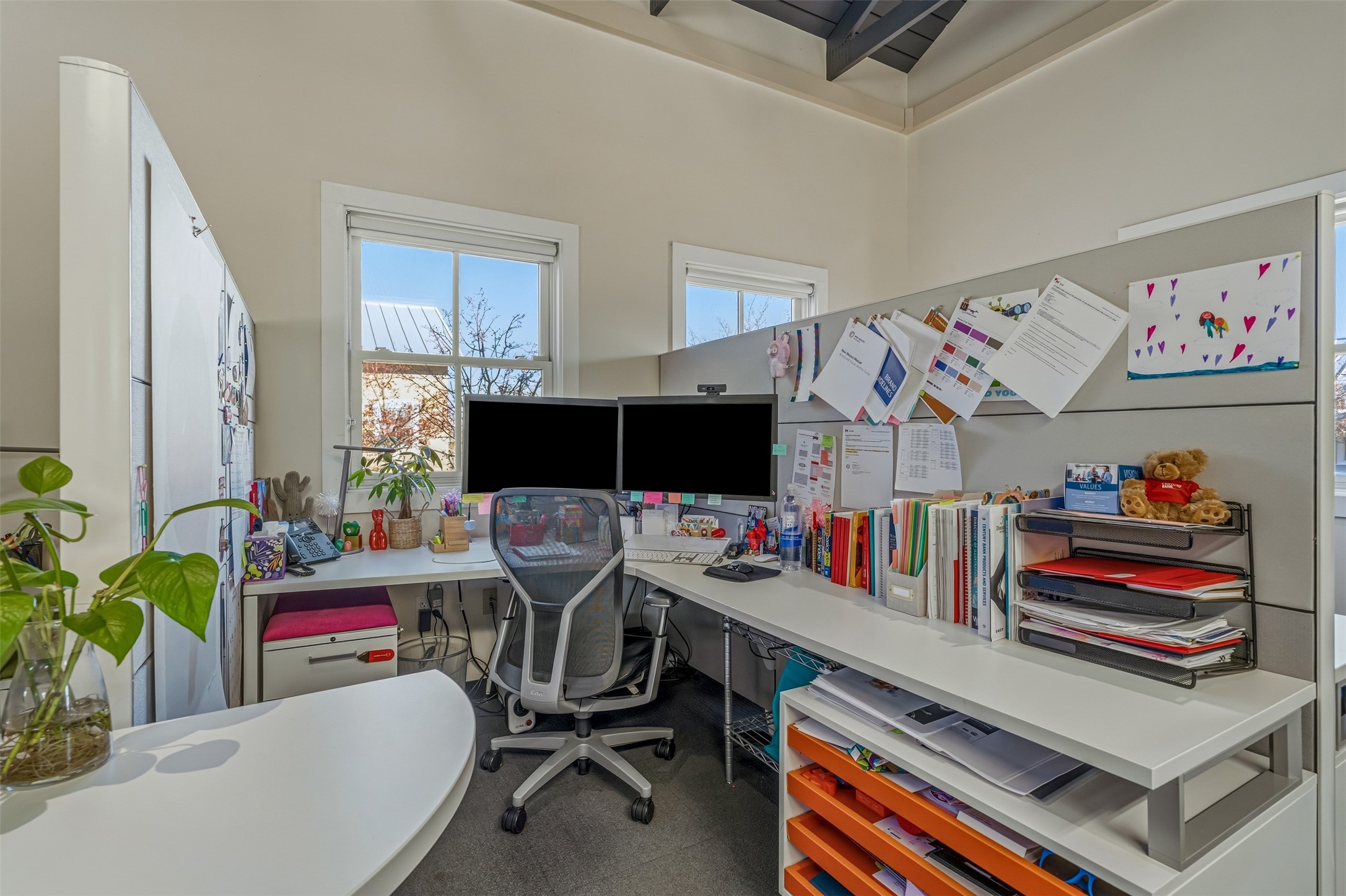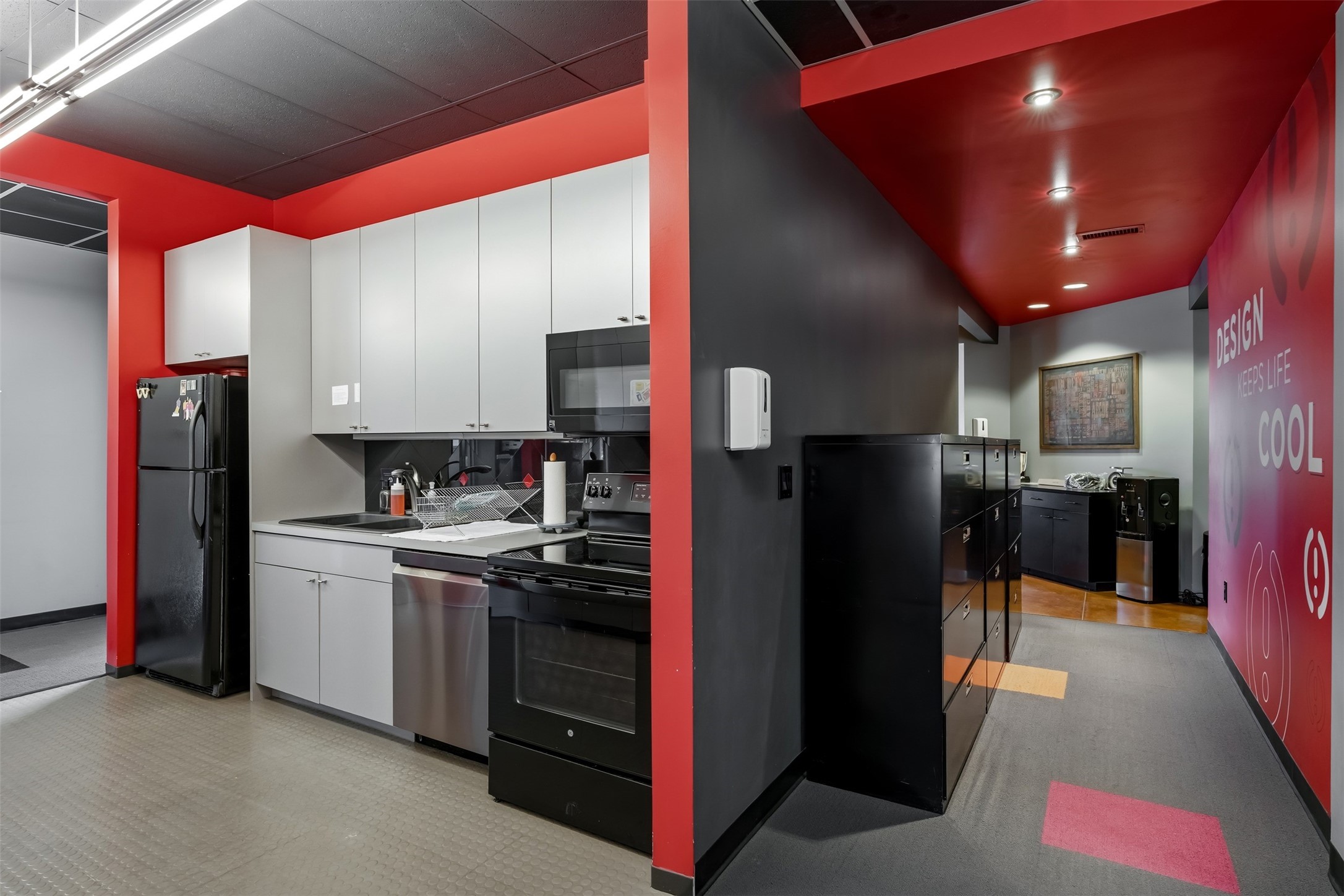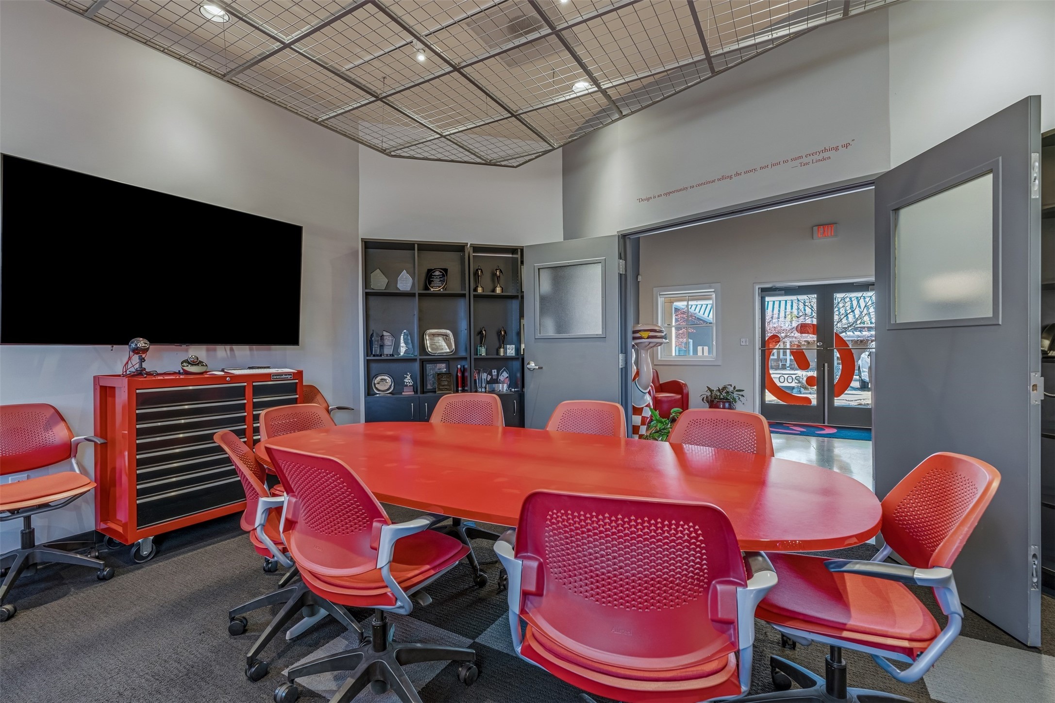 Standalone office building for sale for the first time! This single level office suite features a striking and modern interior designed to make a strong first impression. The space opens into a stylish reception area with polished concrete floors, exposed structural ceilings, and contemporary lighting that creates a bright and creative atmosphere. A curved reception desk anchors the entry, while large openings lead to collaborative meeting spaces, kitchen, conference room and private offices. The layout offers a functional blend of reception, private offices, and open workspace areas, complemented by vibrant design accents and ample natural light. With ADA-accessible entry and convenient ground-floor access, the suite provides excellent usability for clients and staff alike. Ideal for creative, tech, marketing, or professional office users seeking a distinctive and highly accessible workplace. Plenty of parking and an easily accessible in the Rodeo Park Commercial Condominium Business Park! Currently Owner Occupied. Condo dues are $2,048.18/ Quarter and cover exterior maint., master insurance, refuse, parking lot. Owner responsible for their own roof, stucco and HVAC maint. Parking lot was resurfaced in 2025.