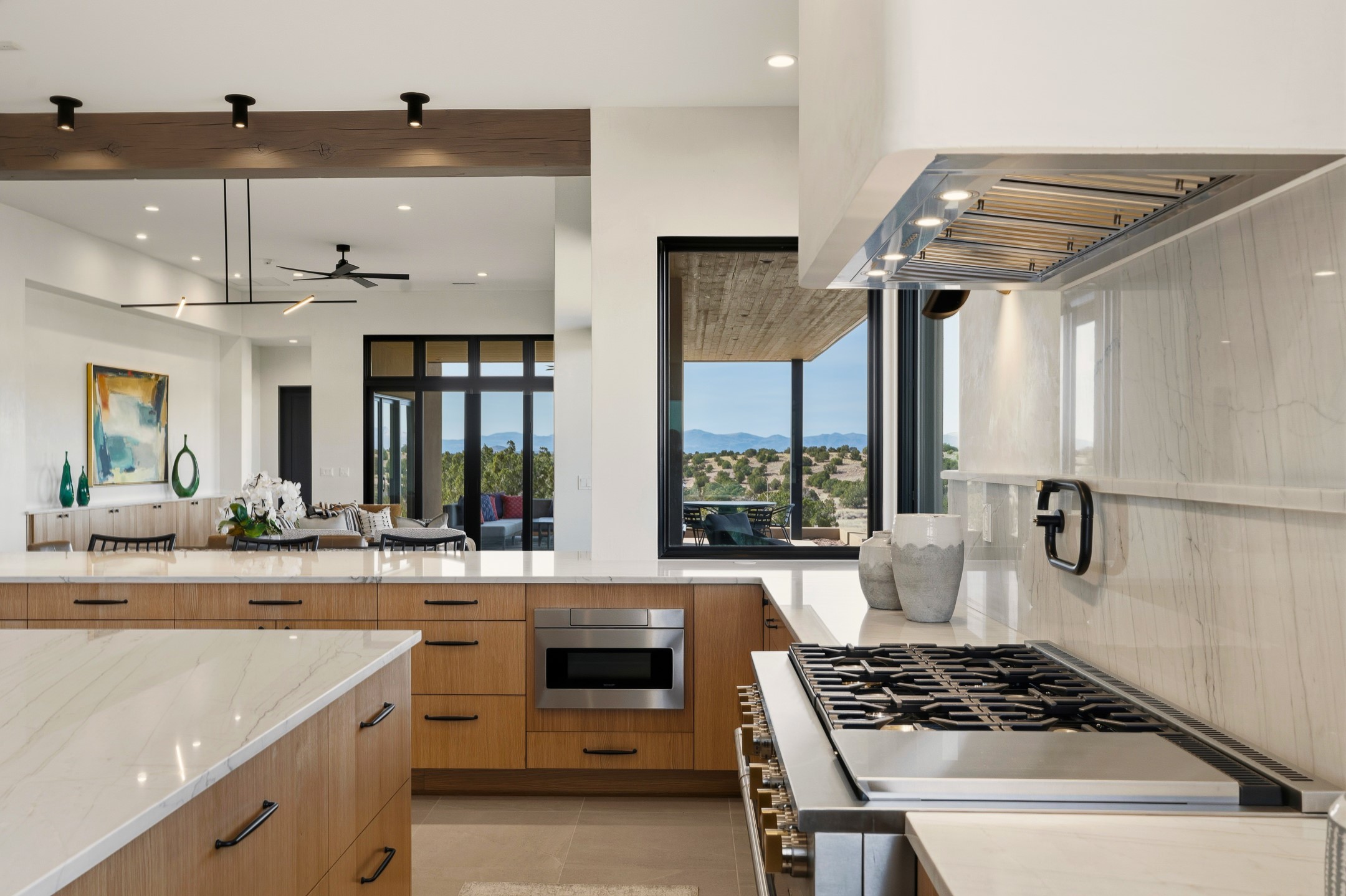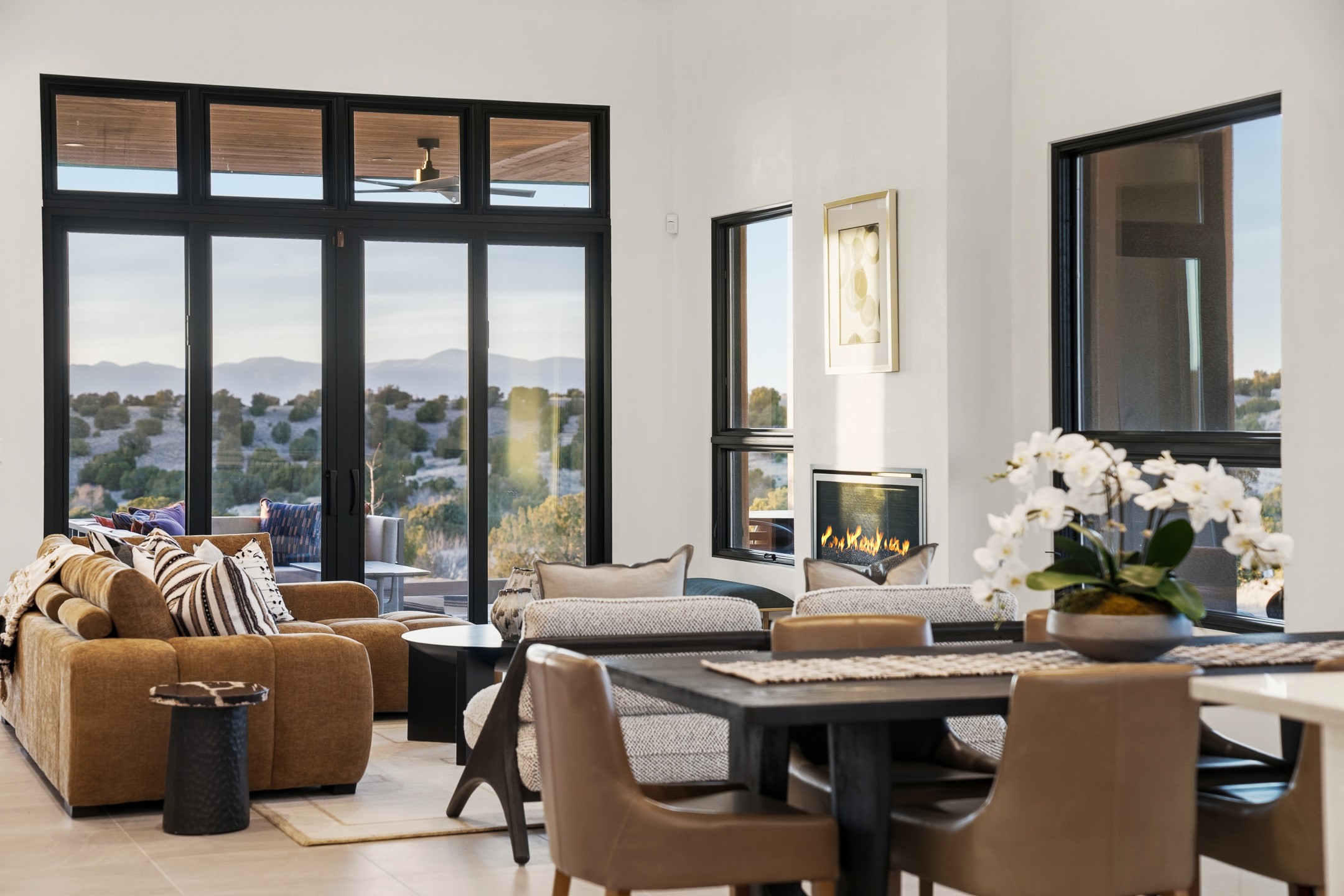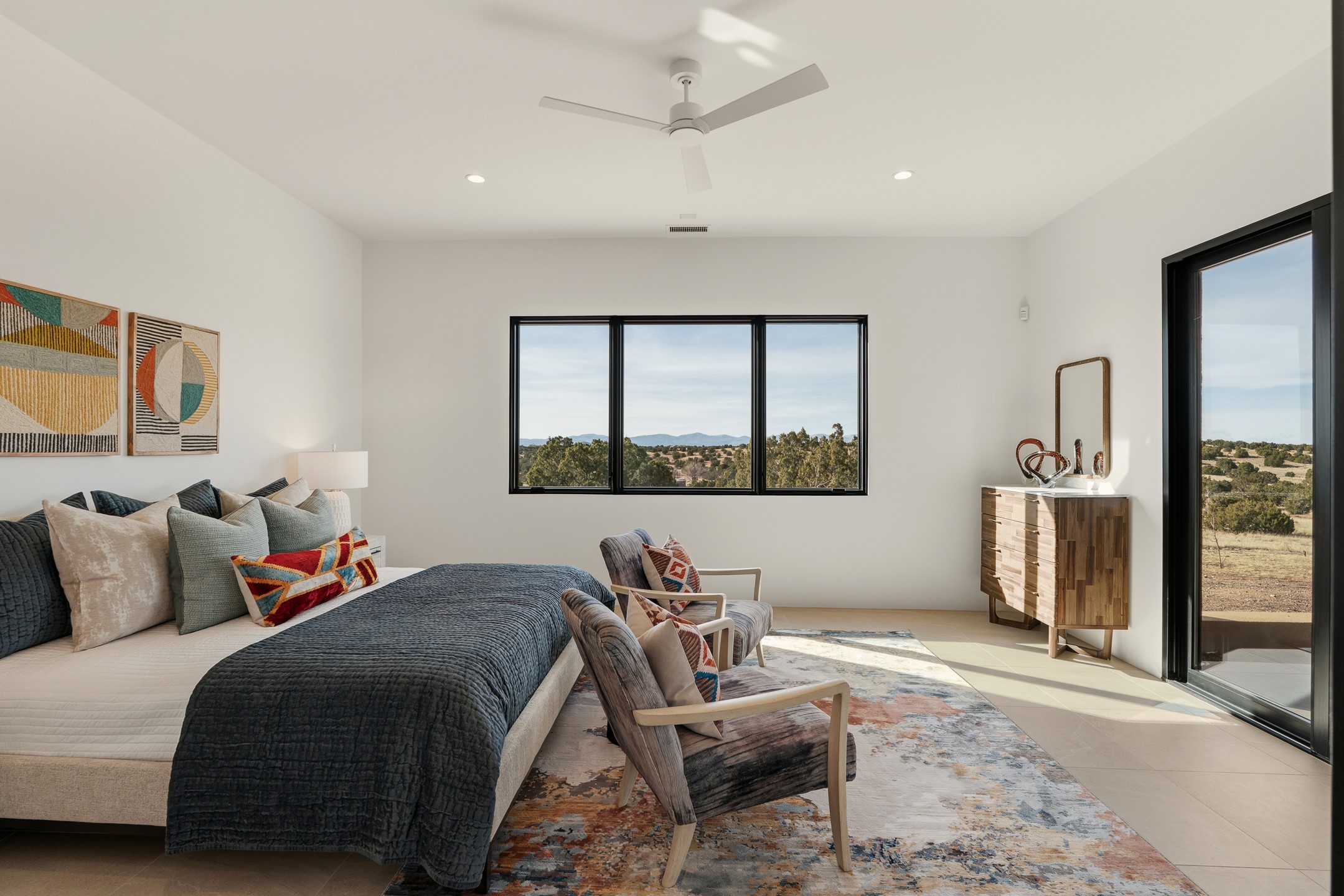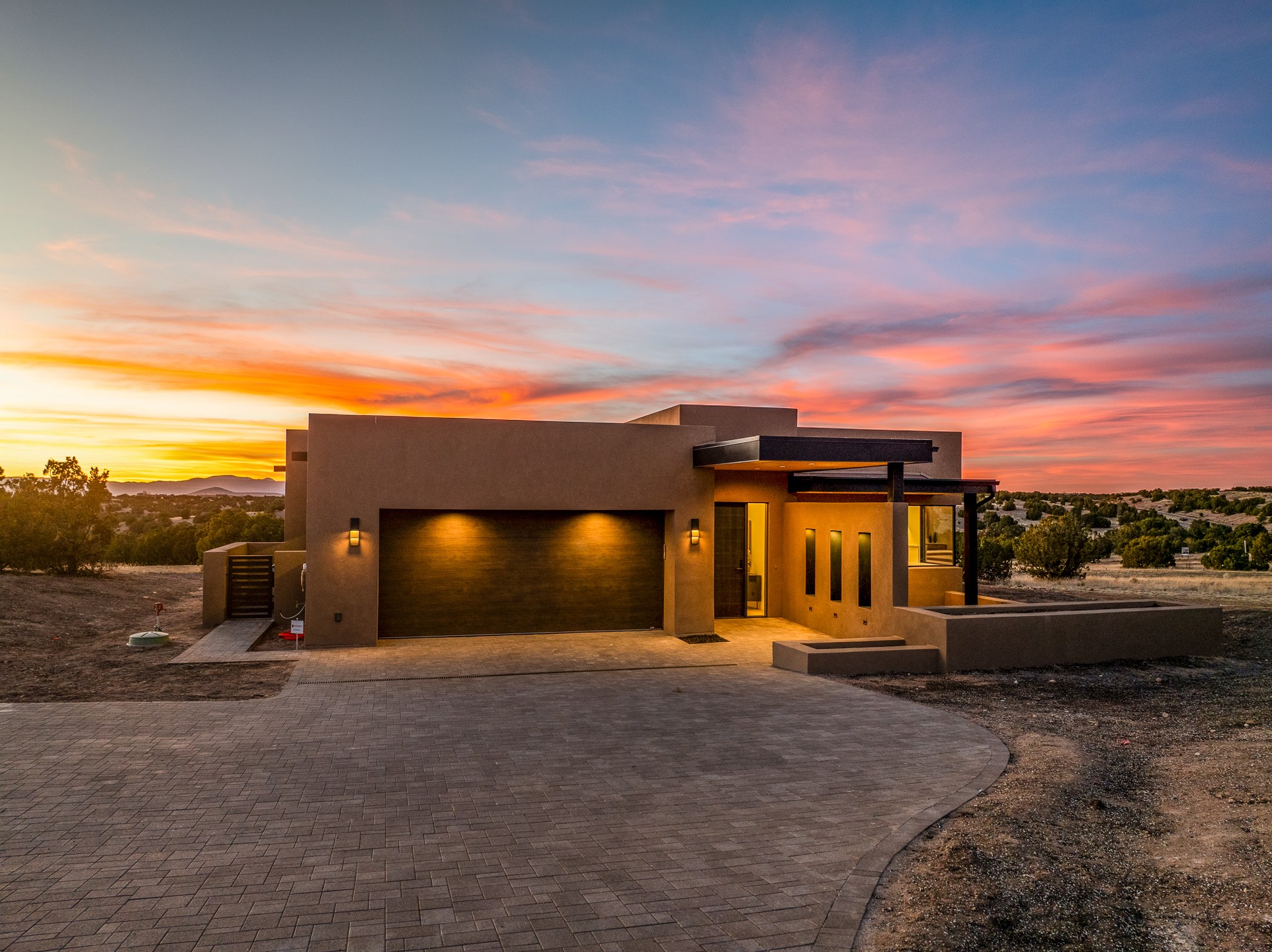 Newly completed and move-in ready, 9 Tierra Antigua (Lot #7) sits within one of Santa Fe's most thoughtfully conceived new communities -- a 44-acre high-desert enclave where more than half the land is preserved as open space, trails wind toward the horizon, and the Sangre de Cristo Mountains frame the morning sky. With homes designed by award-winning firms Five Ten Architecture and studioBOSE, Tierra Antigua honors Northern New Mexico's heritage with a modern eye for light, craft, and quiet luxury. Arete Homes of Santa Fe proudly presents the Stargazer Plan -- a 2,495-square-foot custom residence with 3 bedrooms and 3 baths (including two baths and a powder room). Contemporary Pueblo-style architecture blends seamlessly, capturing sweeping views of both the Jemez and Sangre de Cristo Mountains. A formal entry with expansive art walls and wall-wash skylights creates a gallery-like ambiance. Soaring vaulted ceilings in the great room flow into over 1,100 square feet of covered portal space -- perfect for year-round indoor-outdoor entertaining. The chef's kitchen features natural quartzite countertops, custom white oak cabinetry, a center island with wine refrigerator, and premium GE Monogram appliances including a 48" 6-burner range with griddle and built-in refrigerator. An outdoor kitchen with built-in grill completes the entertaining experience. Luxury finishes throughout include quartzite backsplash, designer sconces, large-format porcelain tile, custom bath tile accents, customized closet systems, and two fireplaces. Located just 15 minutes from downtown Santa Fe and minutes from the Club at Las Campanas, Tierra Antigua offers privacy, natural beauty, and cultural access. Only 23 homesites total. HOA dues are just $167/month. This is more than a home -- it's an entry point into a community designed for those who want to live within Santa Fe's spirit every day. Additional homesites available for custom builds or from five curated plans.