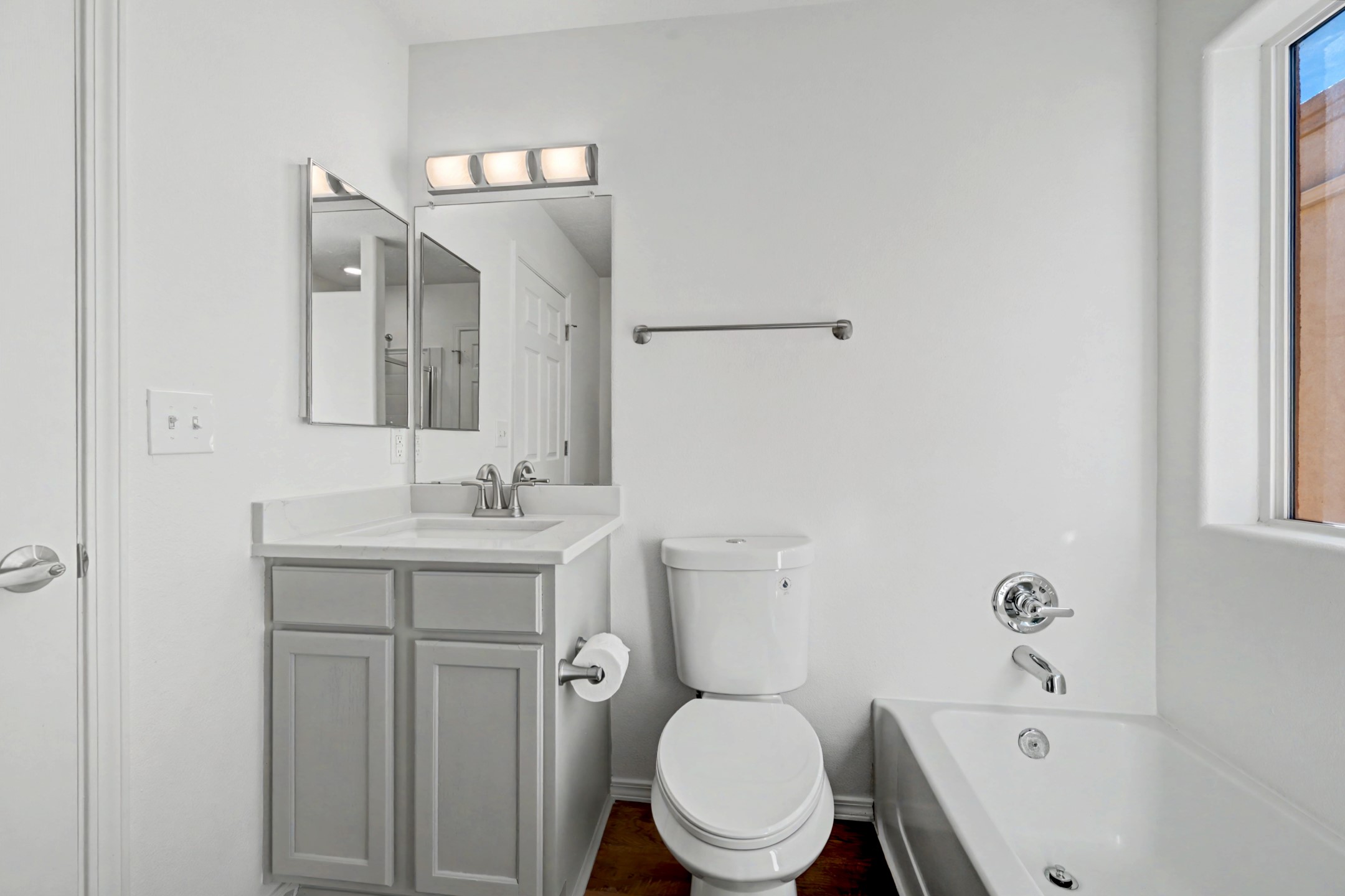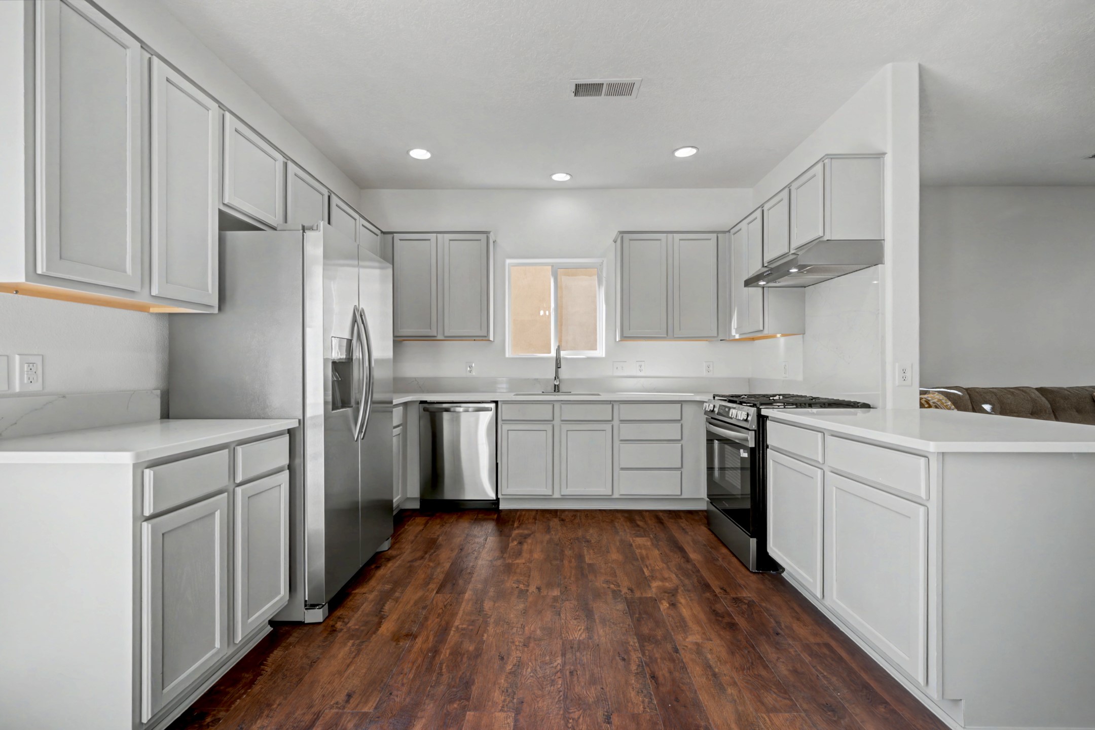 Recently remodeled 3-bedroom, 2.5-bath home offering a bright, open-concept layout and modern finishes throughout. The spacious living area flows seamlessly into a beautifully updated kitchen featuring beautiful cabinetry, solid surface countertops, stainless steel appliances, and ample storage.Fresh interior finishes, updated flooring, and contemporary fixtures create a clean, move-in-ready feel. The primary suite offers a comfortable retreat, while two additional bedrooms provide flexibility for guests, office space, or family living.Enjoy abundant natural light and easy access to the backyard through sliding glass doors--ideal for indoor/outdoor living. Located near parks and trails, this move-in-ready home is the perfect blend of style and convenience in Santa Fe.