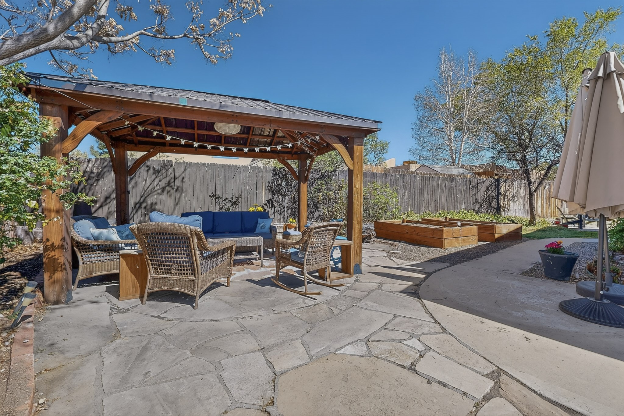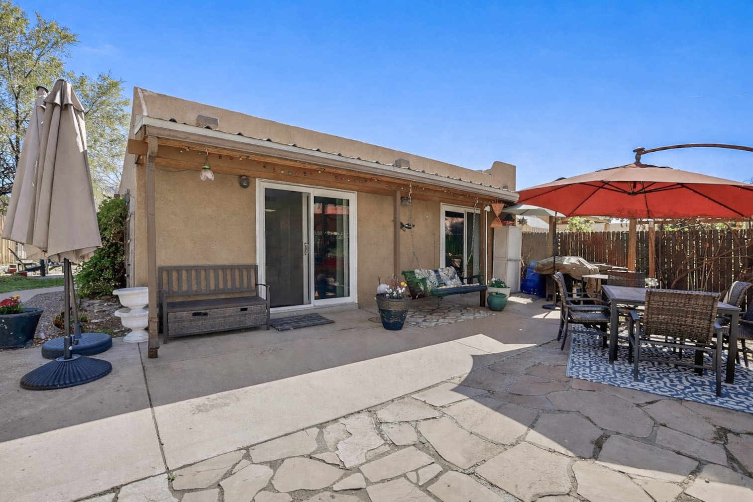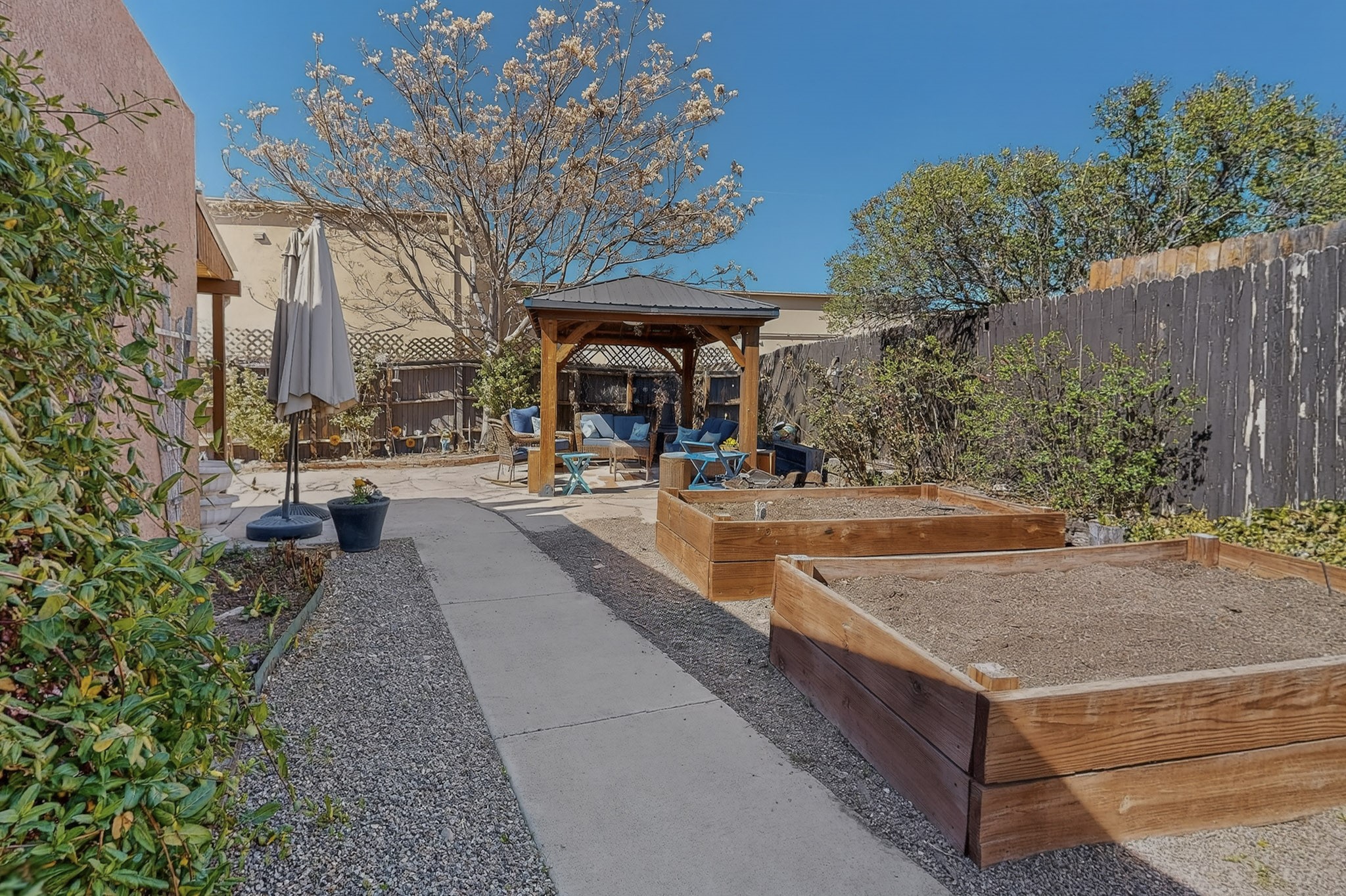 Charming 3-Bedroom, 2-Bath Home, centrally located with beautiful updates including a fully remodeled kitchen and modernized bathrooms. The spacious living area includes high ceilings, fresh paint, and and a cozy fireplace perfect for cozy evenings in. Enjoy outdoor living in the beautiful private backyard that is ideal for relaxing or entertaining. Additional highlights include a two-car garage and easy access to everything important in Santa Fe...like restaurants, grocery stores, entertainment and medical centers. This home is a true gem just waiting for its new owner!