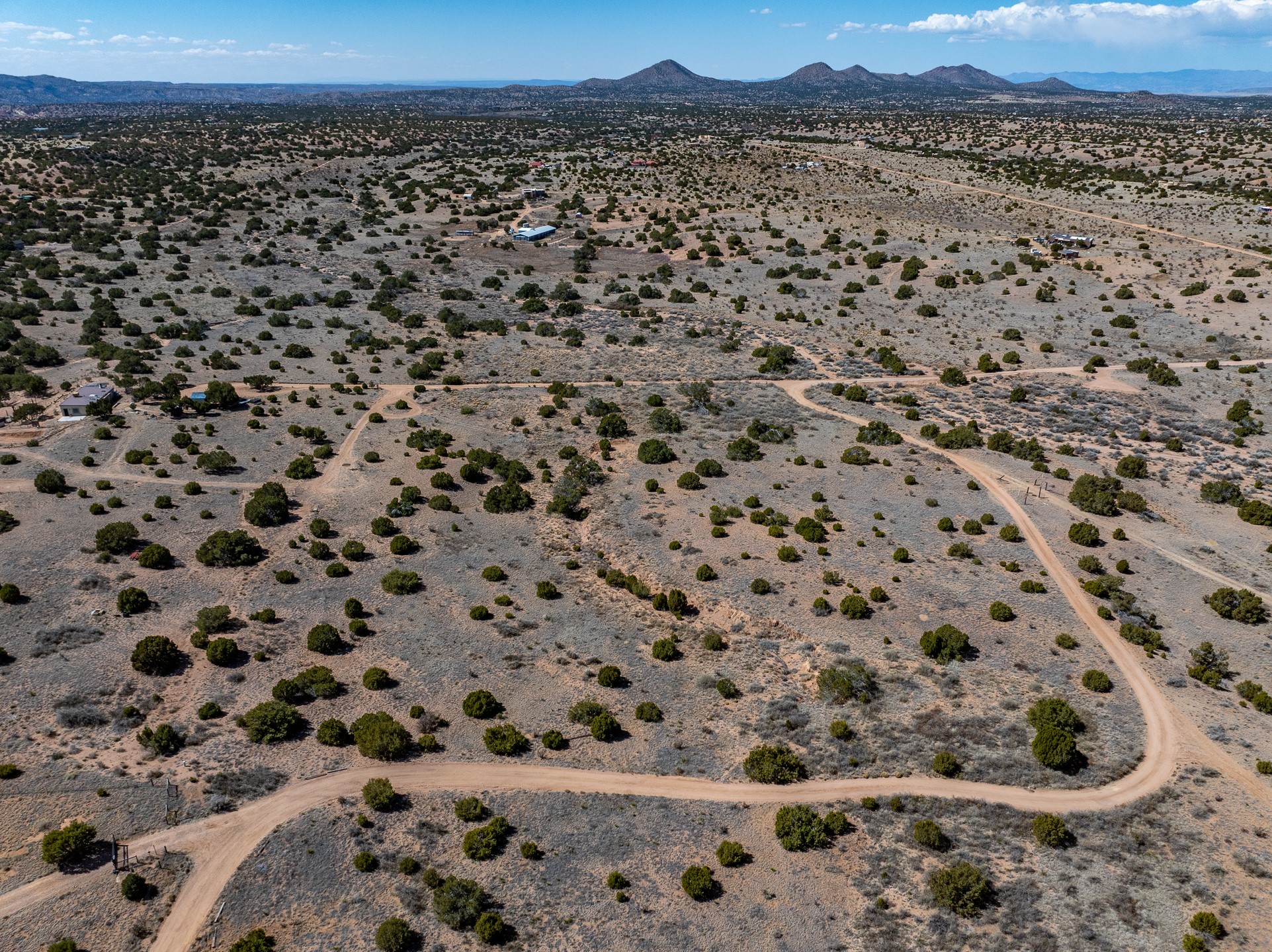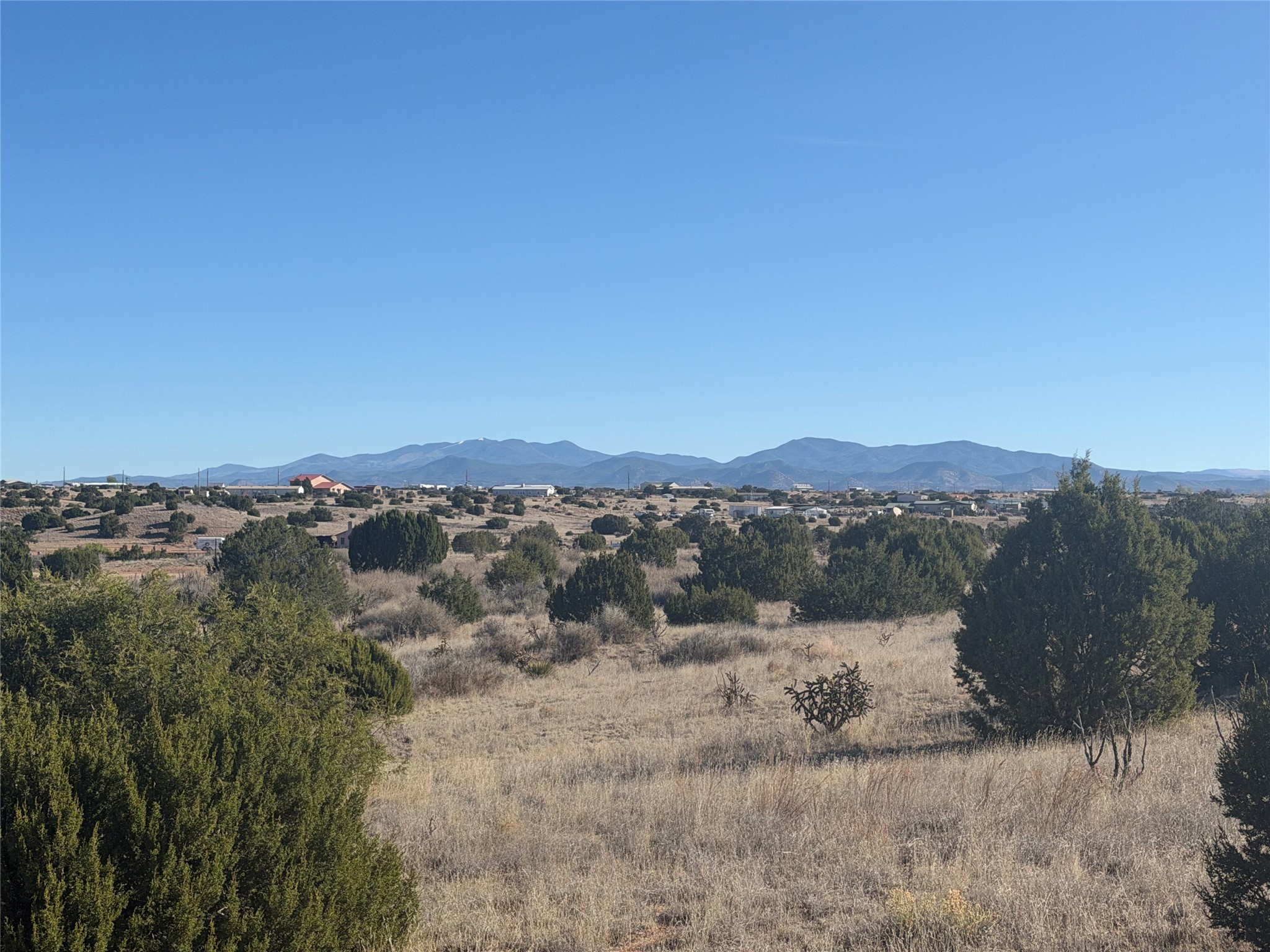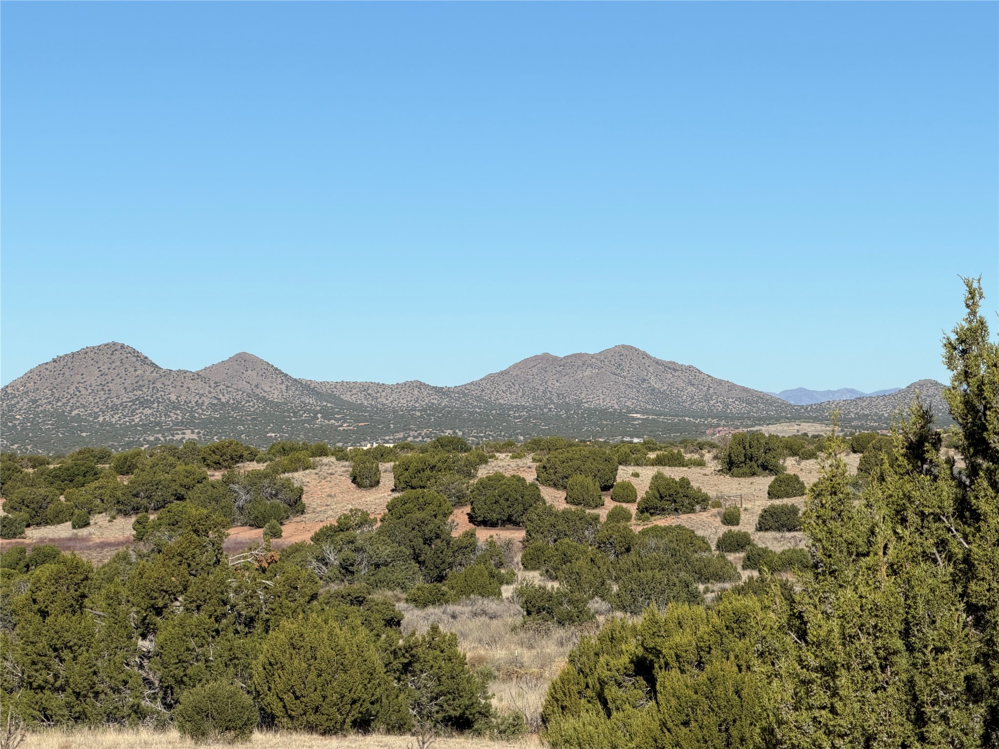 3.75 gently sloping acres with elevated building sites and excellent views of the Sangre de Cristos. Electrical transformer at the edge of lot and shared well available. 15 miles from Santa Fe, off of Camino Los Abuelos, this reasonably priced lot is close enough for a short highway commute, but far enough out to feel out of the city. Reasonable covenants, with two horses and small homes over 700 square feet allowed, mobile and manufactured prohibited. Well is shared with six lots. Adjacent property is also available (MLS 202601106).