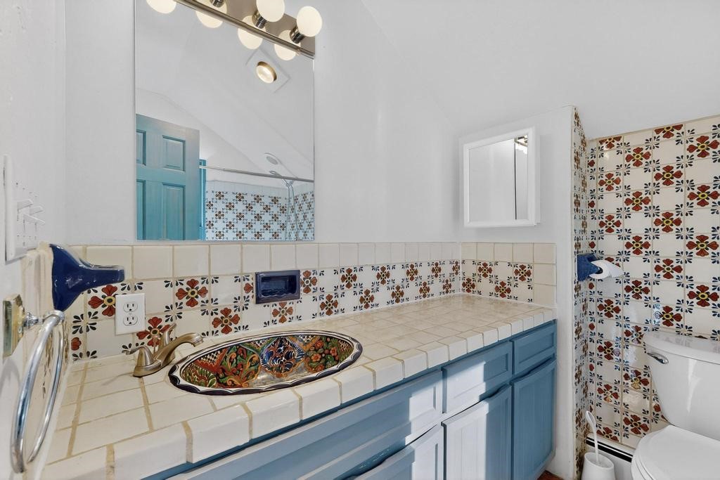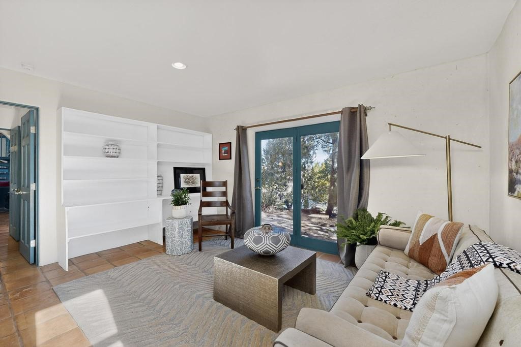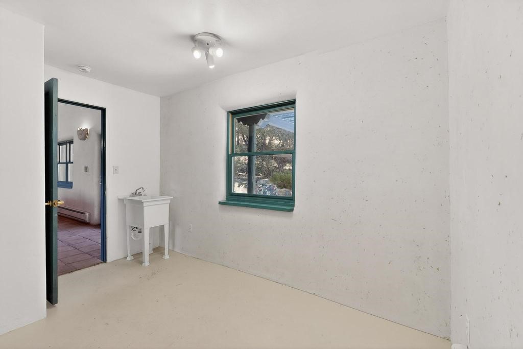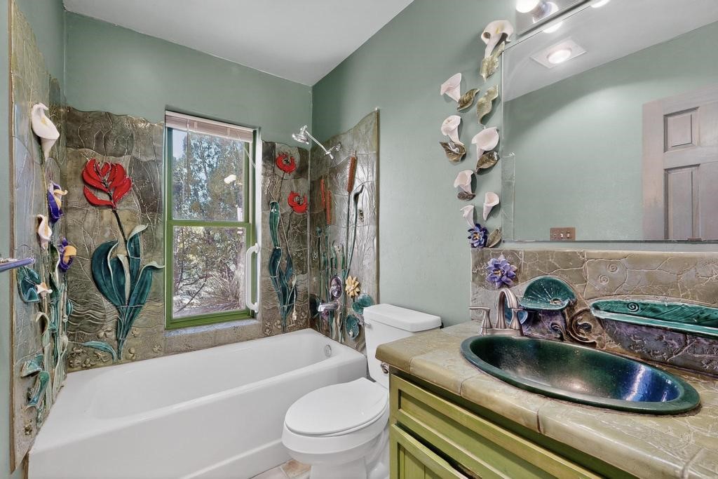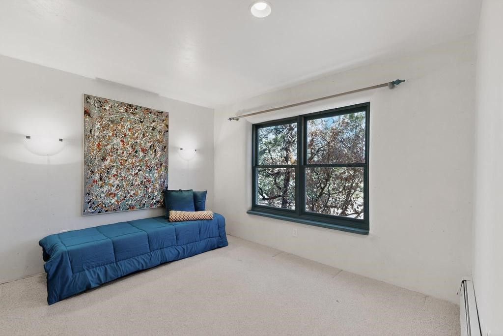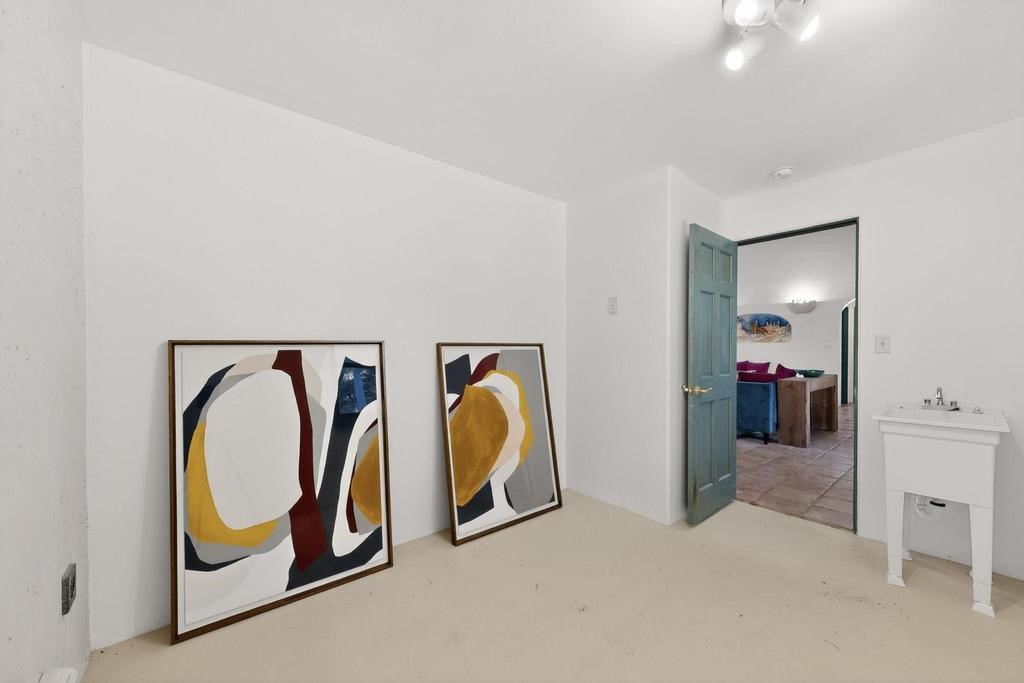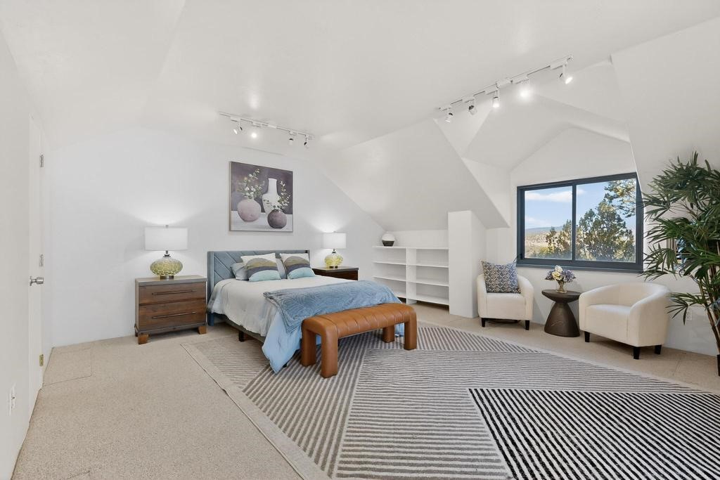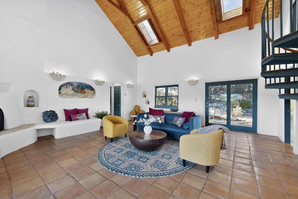 Surrounded by the open skies and hills of Canoncito, this custom-built 3-bedroom, 2-bath home showcases breathtaking views of the Sangre de Cristo Mountains, with artistic details flowing throughout the home and property. Thoughtfully constructed with Rastra construction for improved insulation performance and energy efficiency, the builder and artist designed the home to capture the changing light throughout the day through the large window fronts and skylights. The living room welcomes you with a soaring ceiling, skylights, and windows that fill the space with natural light, while a kiva-style wood-burning fireplace creates a warm and inviting gathering space. Above, a versatile loft provides the perfect spot for an office, library, or additional living area. The primary bedroom is located on the upper level, separated from the guest bedrooms and main living areas, and includes a private bath. With existing utility connections, the space also offers potential for semi-independent living with minimal modifications. One of the guest rooms features a utility sink and 240V outlet, ideal for hobbies, projects, or a dedicated workspace. Outdoors, the property sits on 5.99 acres and includes a koi pond and two storage sheds, one of which has an electrical backup generator, along with ample parking and overflow parking for guests. This rare home offers privacy, craftsmanship, and stunning natural surroundings, with plenty of space to relax, entertain, explore, or simply enjoy the scenery. Conveniently located approximately 20 minutes from Santa Fe and just 10 minutes from El Dorado, with supermarkets, restaurants, a gas station, and a post office nearby.