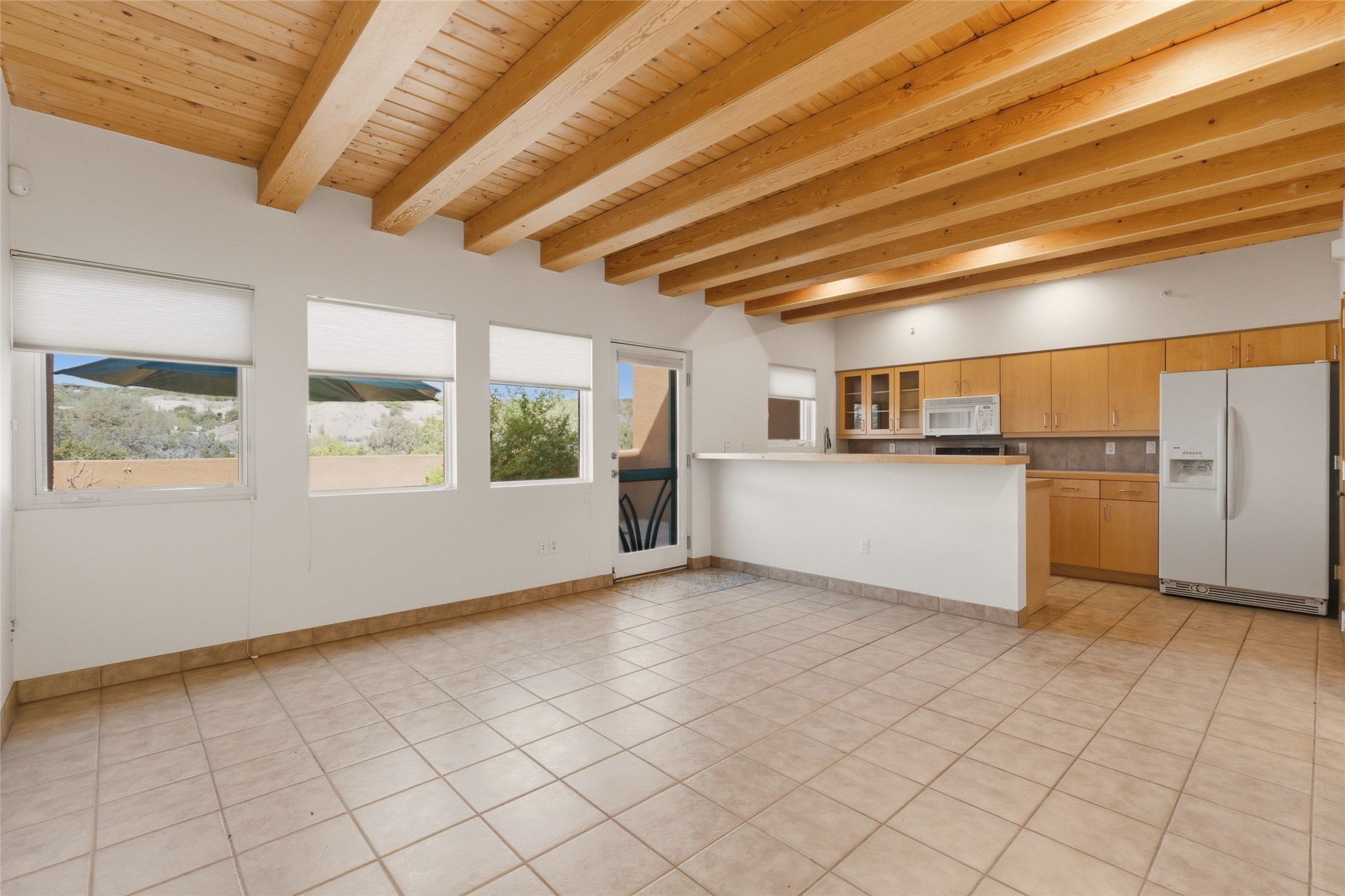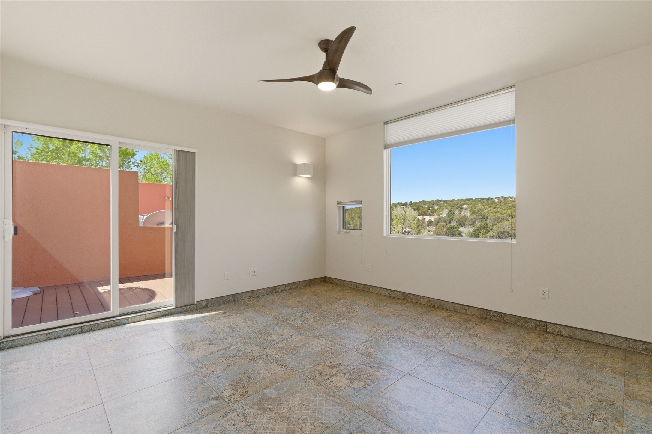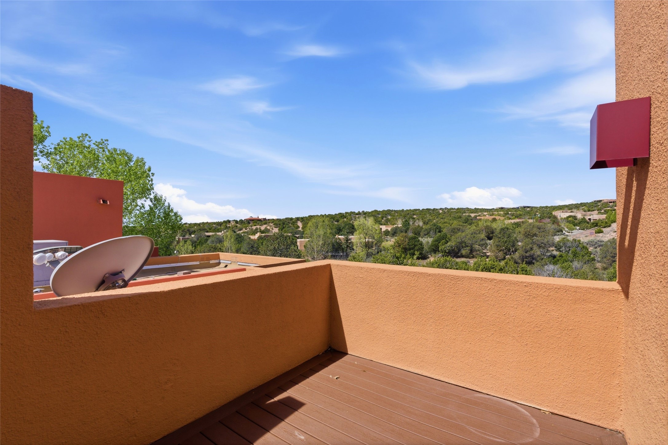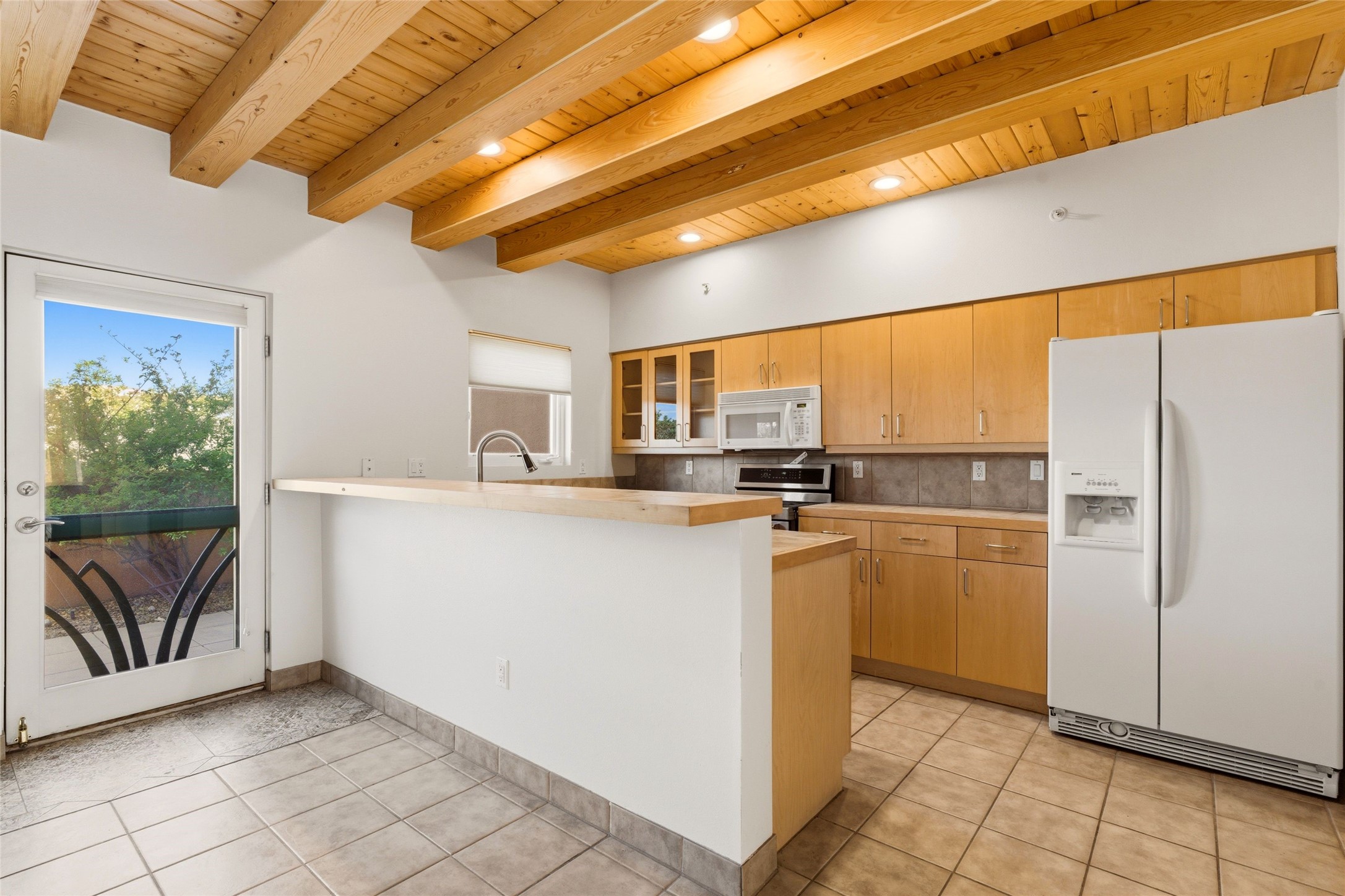 Ricardo Legoretta designed modern comfort in the desirable Northside community of Zocalo. This is atwo bedroom, two and half bath, two story condominium less than ten minutes to downtown Santa Fe, shopping, museums and galleries. Built in 2005, the unit offers two generous master suites; one upstairs with a private balcony, the other downstairs, offering direct access out to the landscaped patio. Downstairs offers open living / entertaining spaces with a two sided fireplace separating the kitchen, living area and dining area. High ceilings over the dining room offer ample skylights tile floors and wood ceilings over the living room are just some of the architectural finishes expected in a Santa Fe home. The open space allows for flexible usage and placement of furniture - depending on your lifestyle! Recent upgrades include a new oven / stove, a raised granite bathroom countertop in the upstairs suite, a utility sink in the garage, and two 14' Golden Rain trees in the back patio. Regarded as one of the most popular floor plans, this "Barranca" unit offers west facing views over the arroyo and into the tree-studded hillside. The finished twocar garage offers direct entry into the home. Zocalo community amenities include two fitness facilities, a clubhouse, pool, spa as well as resources for on-site property management and maintenance.
