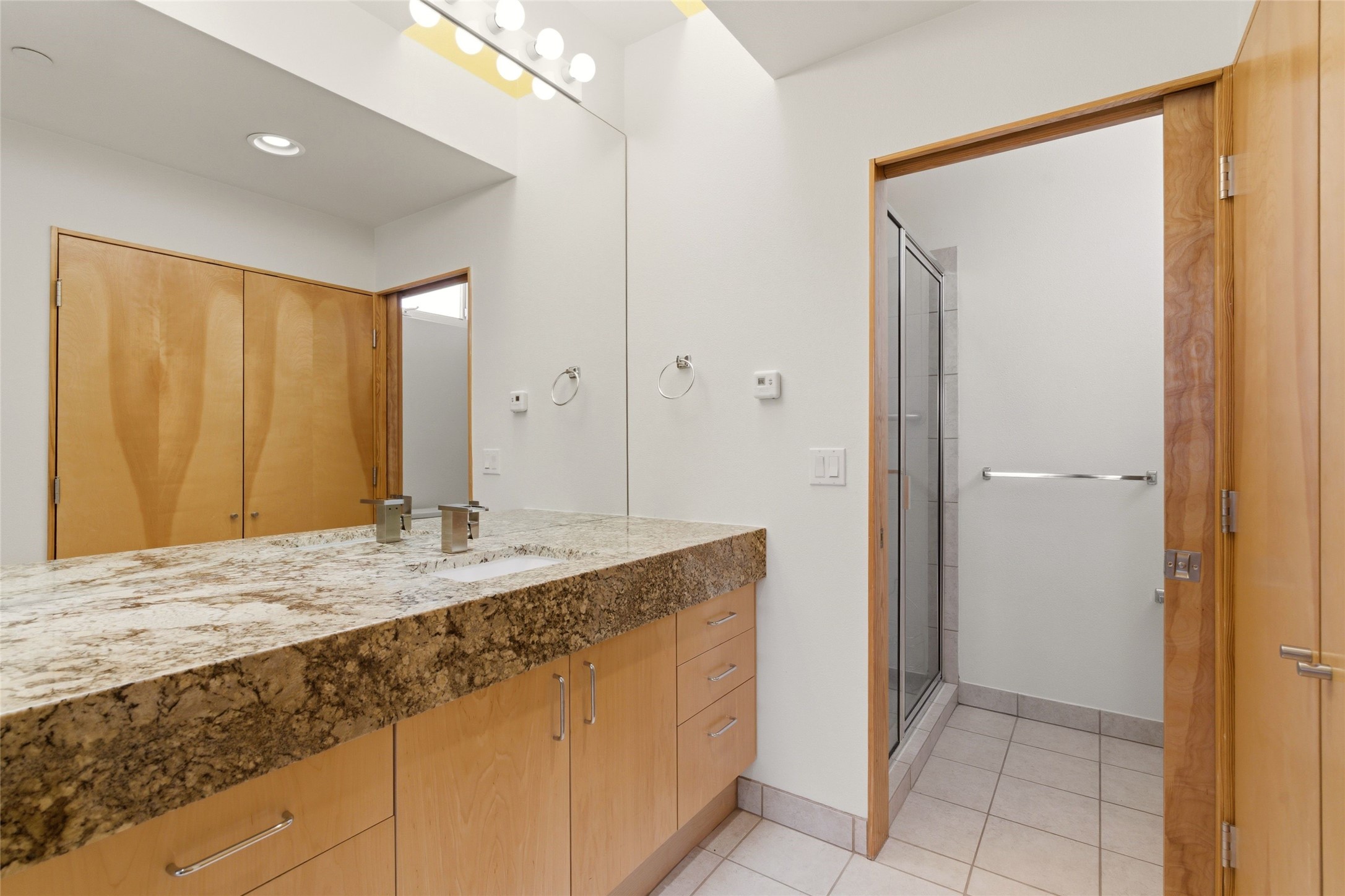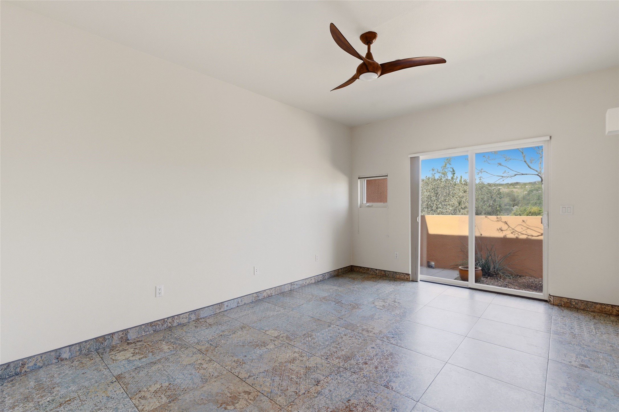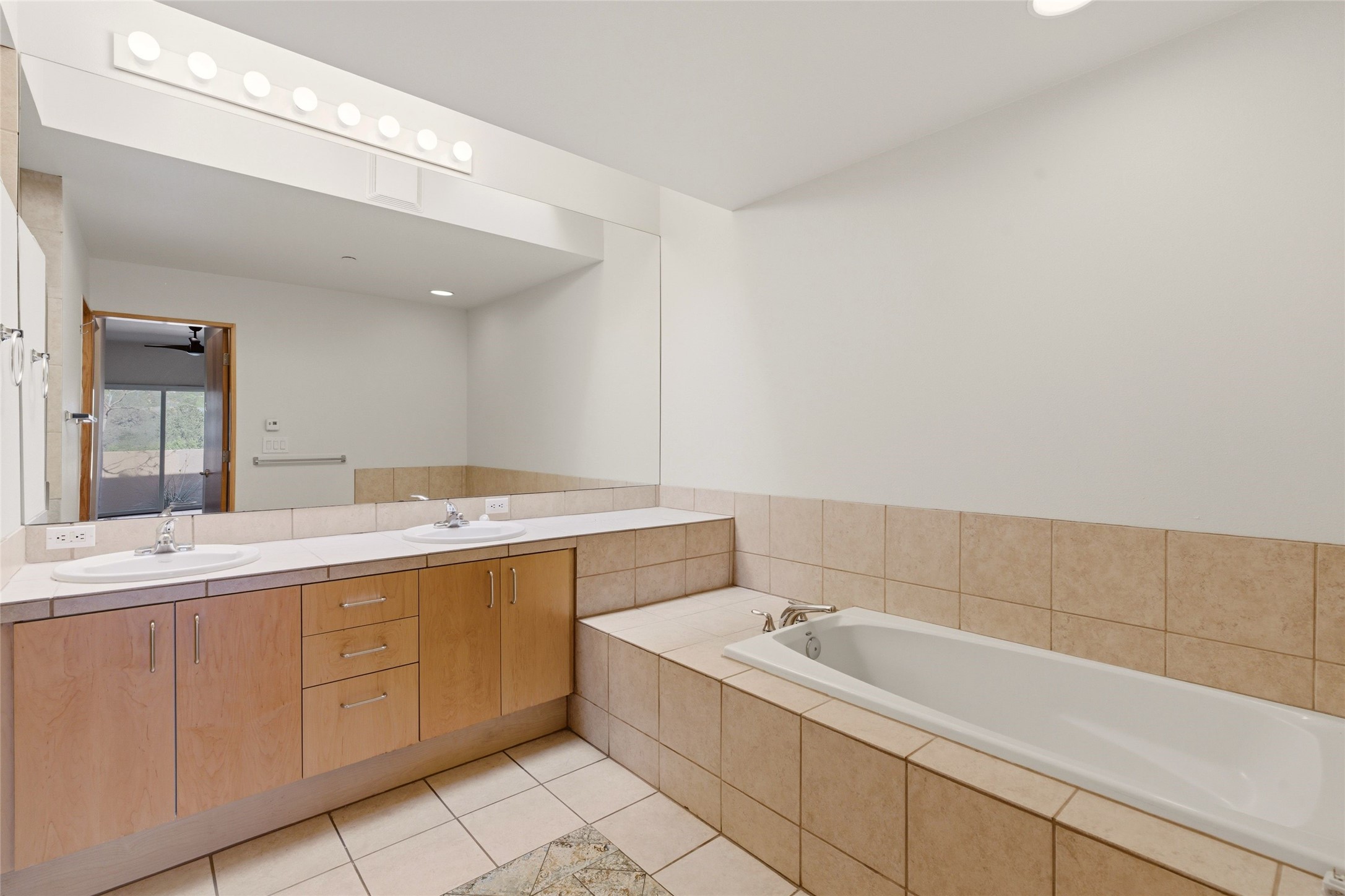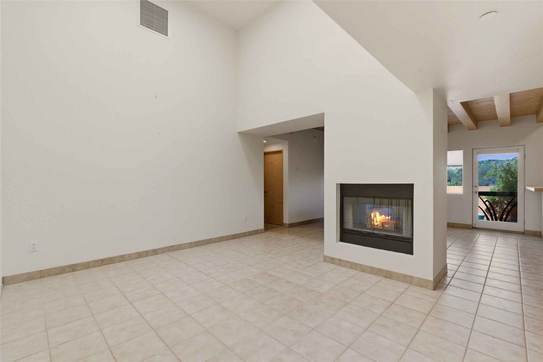 Ricardo Legoretta designed modern comfort in the desirable Northside community of Zocalo. This is atwo bedroom, two and half bath, two story condominium less than ten minutes to downtown Santa Fe, shopping, museums and galleries. Built in 2005, the unit offers two generous master suites; one upstairs with a private balcony, the other downstairs, offering direct access out to the landscaped patio. Downstairs offers open living / entertaining spaces with a two sided fireplace separating the kitchen, living area and dining area. High ceilings over the dining room offer ample skylights tile floors and wood ceilings over the living room are just some of the architectural finishes expected in a Santa Fe home. The open space allows for flexible usage and placement of furniture - depending on your lifestyle! Recent upgrades include a new oven / stove, a raised granite bathroom countertop in the upstairs suite, a utility sink in the garage, and two 14' Golden Rain trees in the back patio. Regarded as one of the most popular floor plans, this "Barranca" unit offers west facing views over the arroyo and into the tree-studded hillside. The finished twocar garage offers direct entry into the home. Zocalo community amenities include two fitness facilities, a clubhouse, pool, spa as well as resources for on-site property management and maintenance.