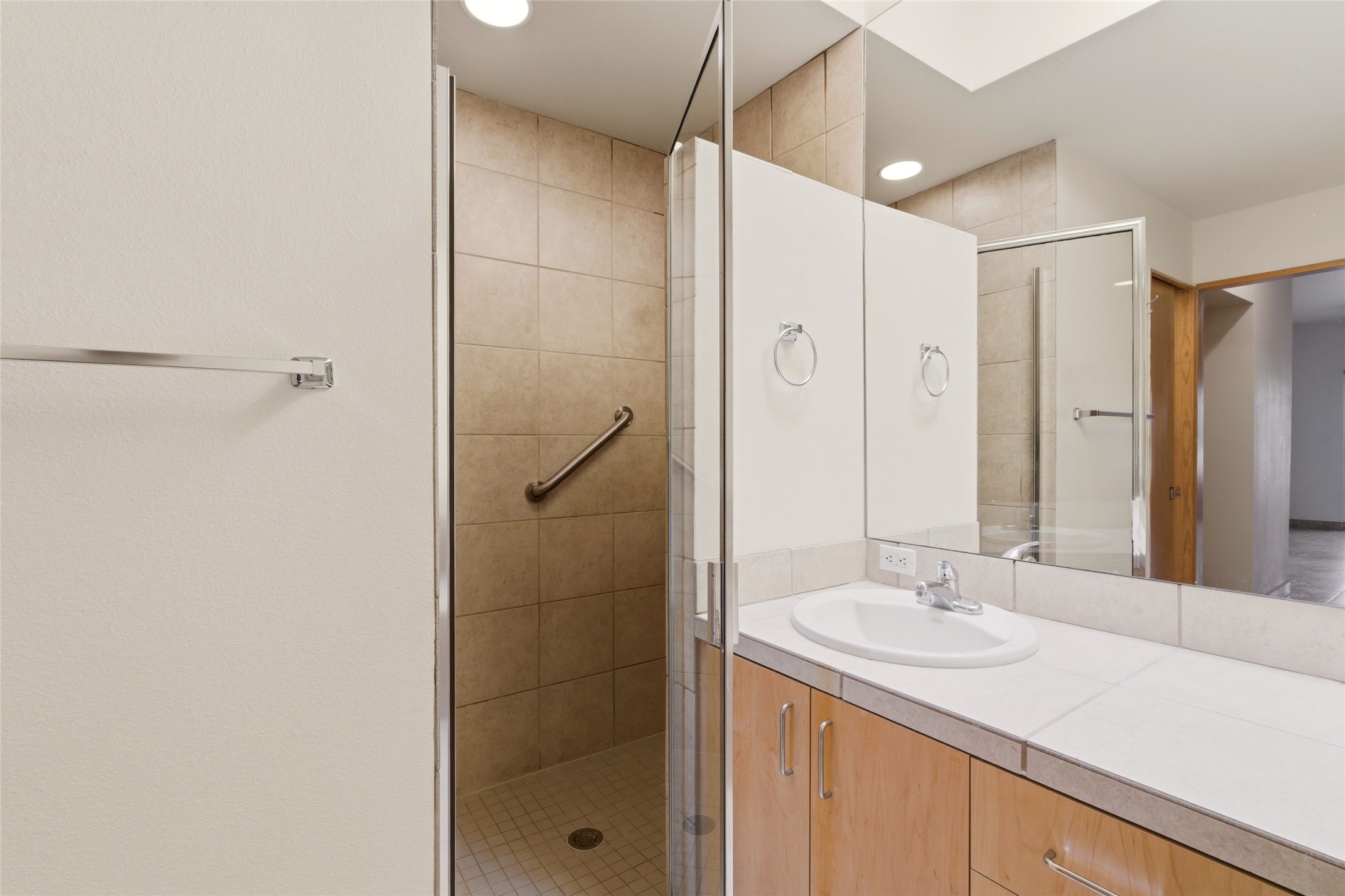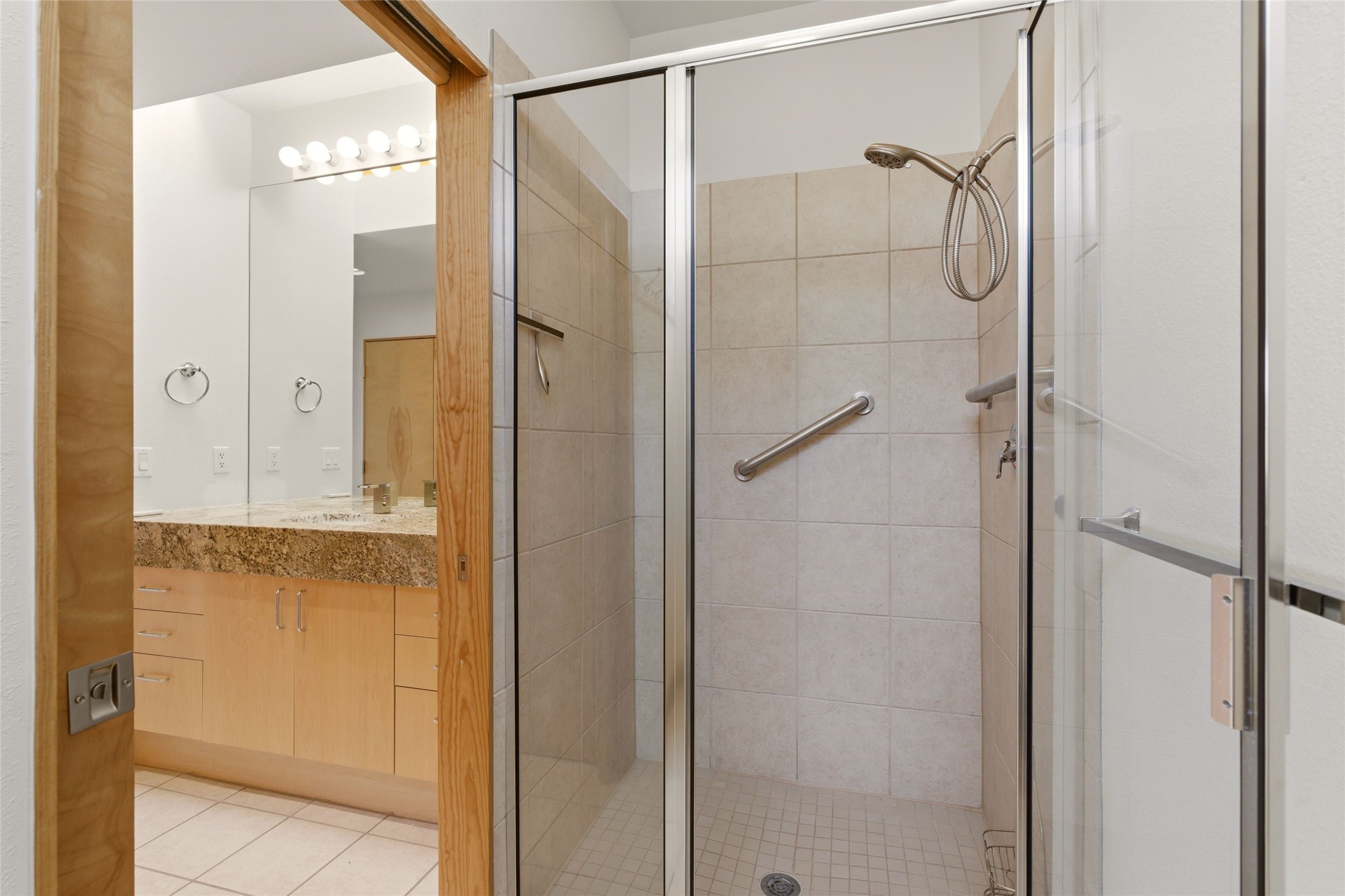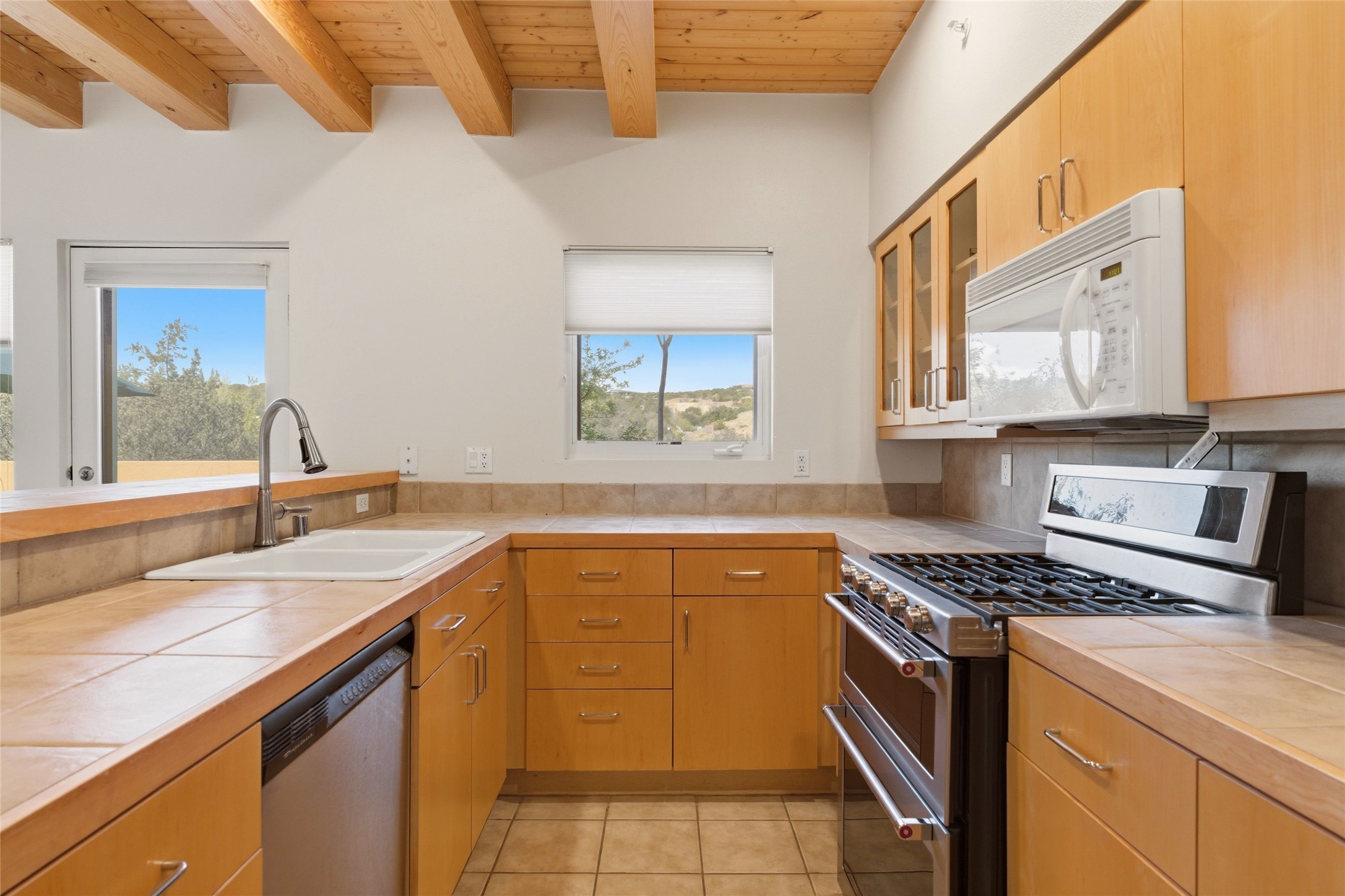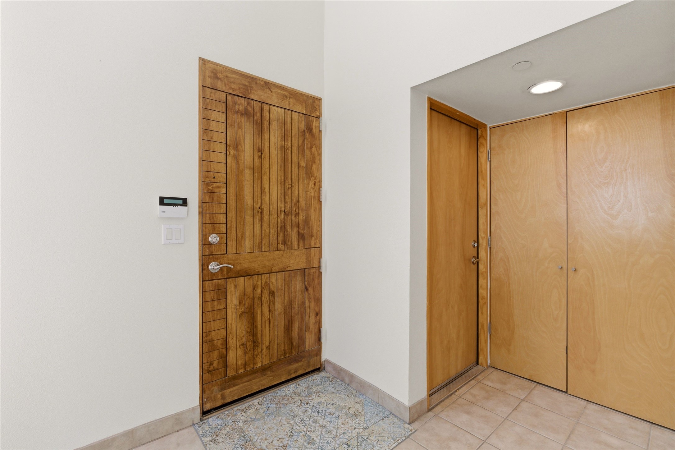 Ricardo Legoretta designed modern comfort in the desirable Northside community of Zocalo. This is atwo bedroom, two and half bath, two story condominium less than ten minutes to downtown Santa Fe, shopping, museums and galleries. Built in 2005, the unit offers two generous master suites; one upstairs with a private balcony, the other downstairs, offering direct access out to the landscaped patio. Downstairs offers open living / entertaining spaces with a two sided fireplace separating the kitchen, living area and dining area. High ceilings over the dining room offer ample skylights tile floors and wood ceilings over the living room are just some of the architectural finishes expected in a Santa Fe home. The open space allows for flexible usage and placement of furniture - depending on your lifestyle! Recent upgrades include a new oven / stove, a raised granite bathroom countertop in the upstairs suite, a utility sink in the garage, and two 14' Golden Rain trees in the back patio. Regarded as one of the most popular floor plans, this "Barranca" unit offers west facing views over the arroyo and into the tree-studded hillside. The finished twocar garage offers direct entry into the home. Zocalo community amenities include two fitness facilities, a clubhouse, pool, spa as well as resources for on-site property management and maintenance.