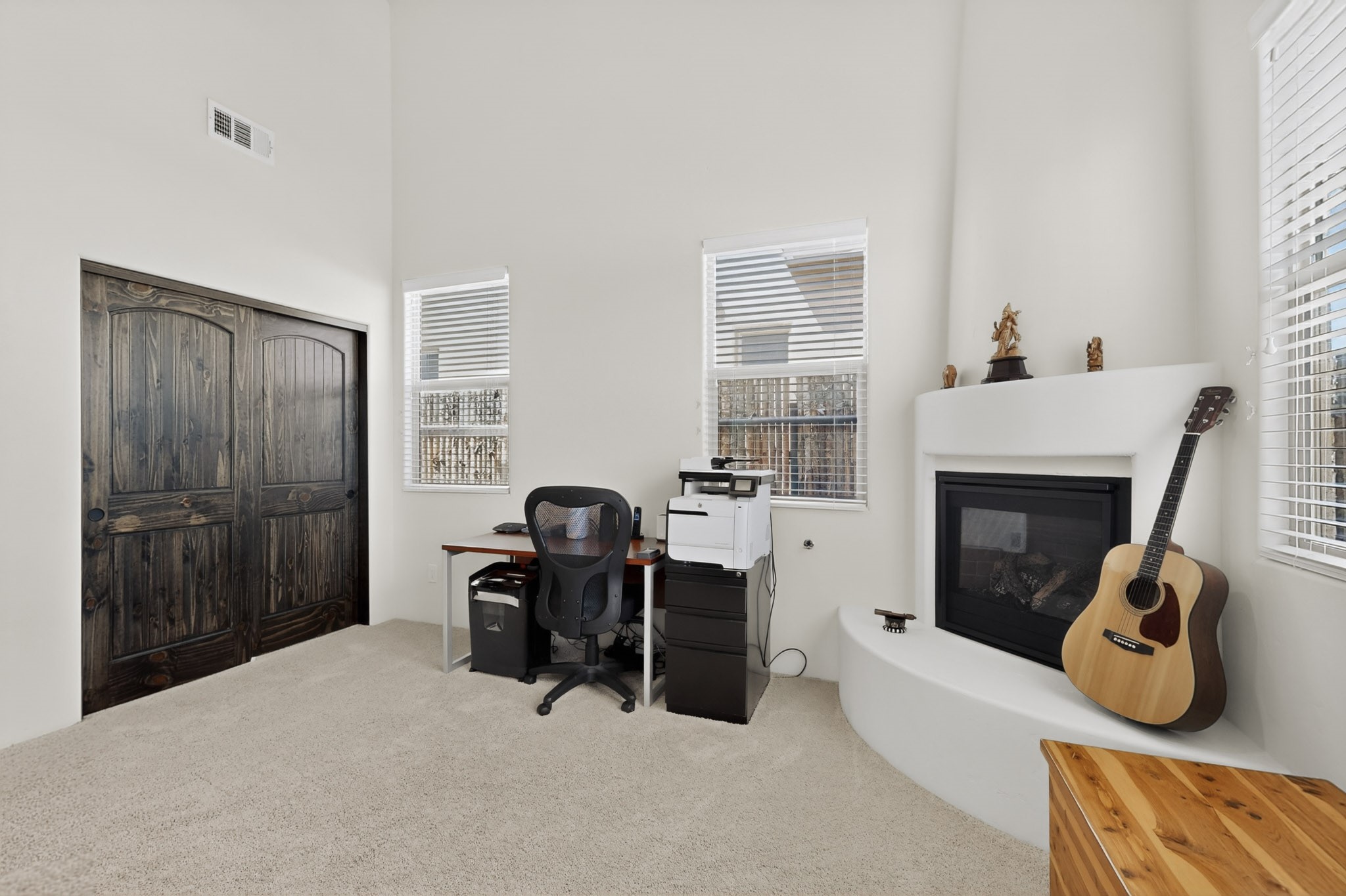Discover an exquisite blend of architectural warmth and modern luxury in this stunning La Pradera home. Perfect for commuters with easy I-25 access, the residence welcomes you with a grand great room featuring gorgeous wood beams and a cozy fireplace.The chef's kitchen is an entertainer's dream, boasting upgraded appliances, a range oven plus a wall oven/microwave combo, and a massive walk-in pantry. Efficiency meets style in the laundry room, equipped with extensive storage and high-end designer units.The primary suite features a large walk-in closet and a spa-like en-suite with a soaking tub and separate shower. A secondary bedroom includes its own private en-suite. A versatile 3rd Bedroom is complete with a private fireplace and is ideal for an office or flex space.Enjoy a private, low-maintenance backyard perfect for morning coffee or evening BBQs, plus an oversized 3-car garage. This is high-end living with lock-and-leave ease!