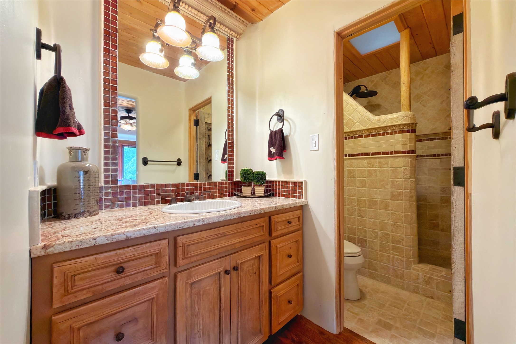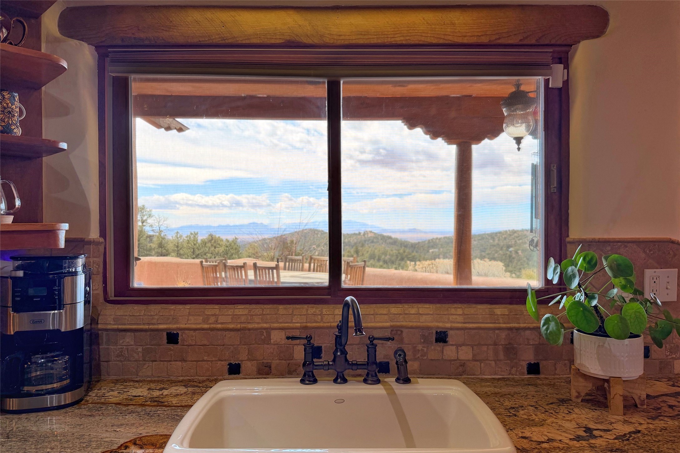 Sited atop a serene, tree-covered hillside, this one-of-kind mountain retreat offers an extraordinary blend of artistry, architecture, and natural beauty. Set on four expansive lots totaling approximately 78.38 acres, the property provides unmatched privacy, tranquility, and breathtaking views from every room.Crafted with timeless adobe construction, the home showcases stunning architectural details throughout, including exquisite hand-carved doors that reflect true craftsmanship and character. Each of the four spacious bedrooms features its own en-suite bathroom, creating a private retreat for residents and guests alike.Surrounded by unspoiled nature, this remarkable property is a haven for outdoor enthusiasts and creatives. Explore endless opportunities for hiking, wildlife watching, and peaceful reflection right outside your door. Evenings bring unforgettable sunsets and some of the brightest star-filled skies imaginable, offering a daily connection to the beauty of the natural world.Enjoy sweeping views of the Sangre de Cristo Mountains while still being conveniently located minutes from shopping/restaurants and just 16 minutes from the Santa Fe Plaza. Whether you're seeking seclusion, inspiration, or a luxurious escape, this exceptional property delivers a rare opportunity to own a true sanctuary in the high desert.