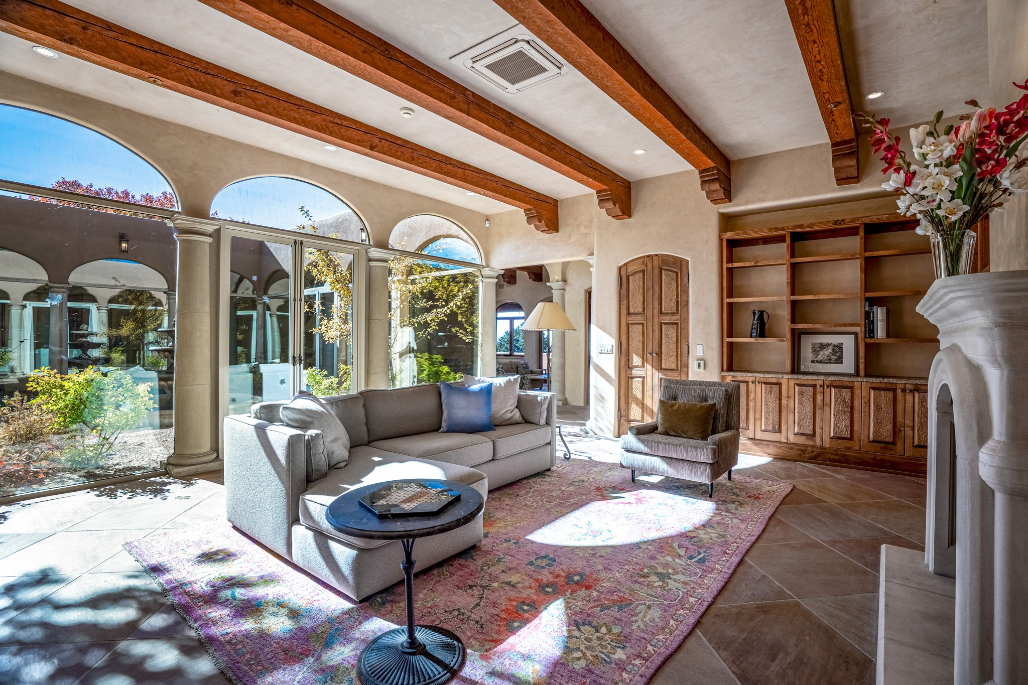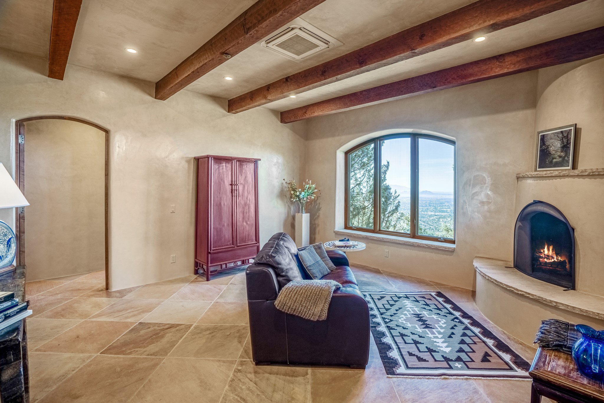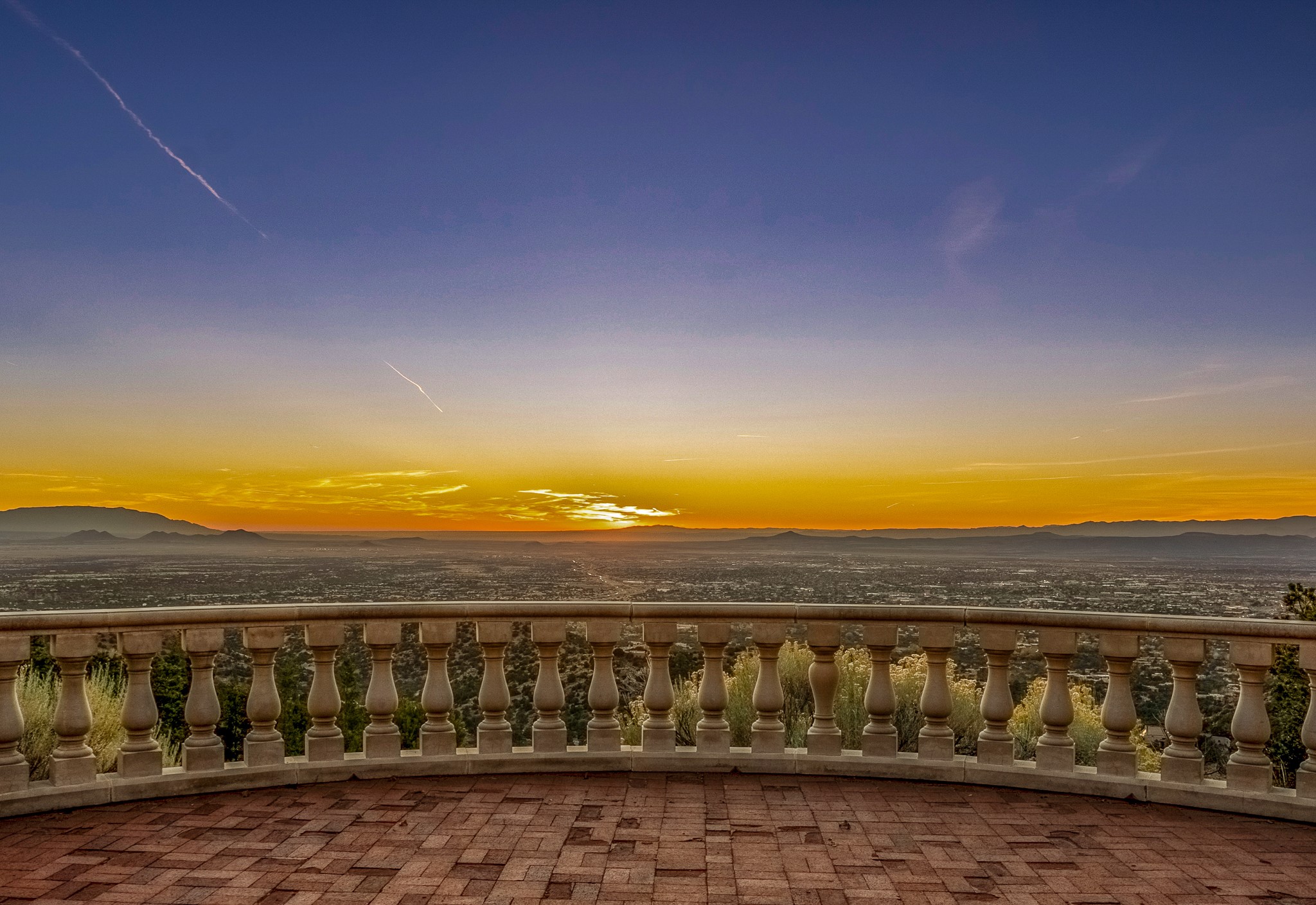 Perched on a ridgetop with rare magnificent views of mountains, sunsets and city lights is an artistic masterpiece. From the amazing vistas at every angle to the solid grounding of earth, this villa is embraced by nature and steeped in peace and privacy while also providing all you need for grand entertaining. Opening to the 3300 sf veranda and sharing in the incredible views are the gourmet kitchen, living/dining room, office/media room and the primary bedroom suite. Rounding out this truly unique and special home is a library and two additional bedrooms with ensuite baths.