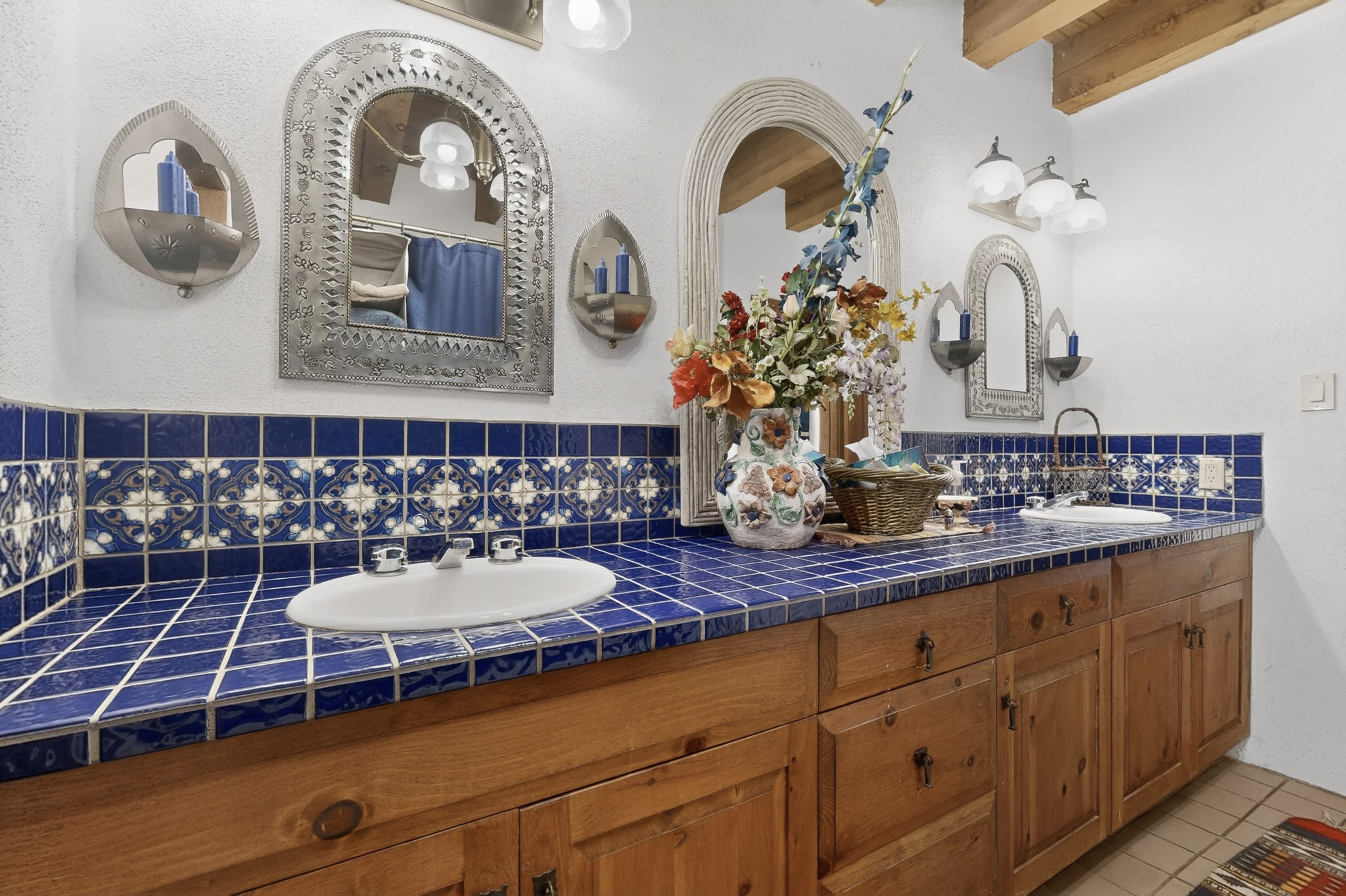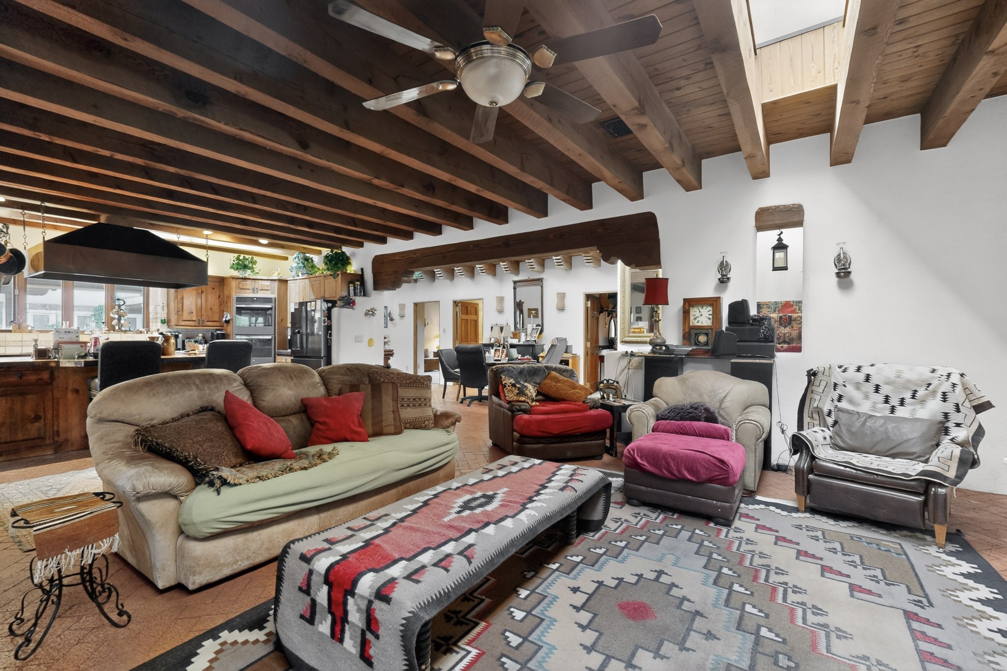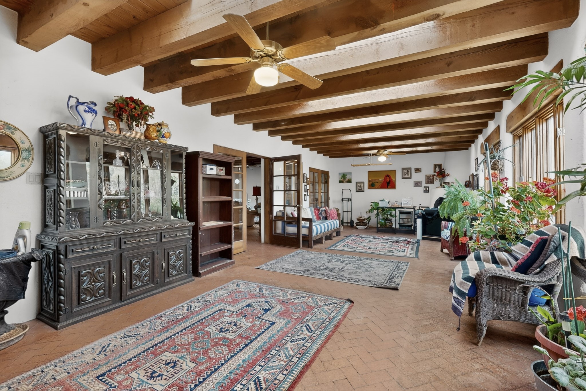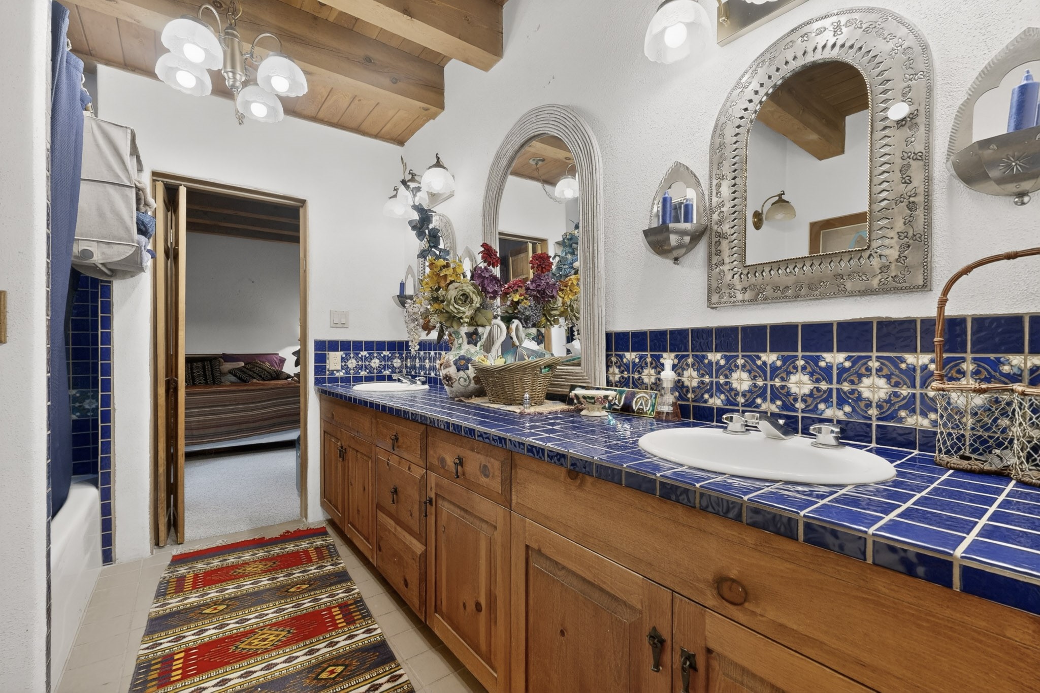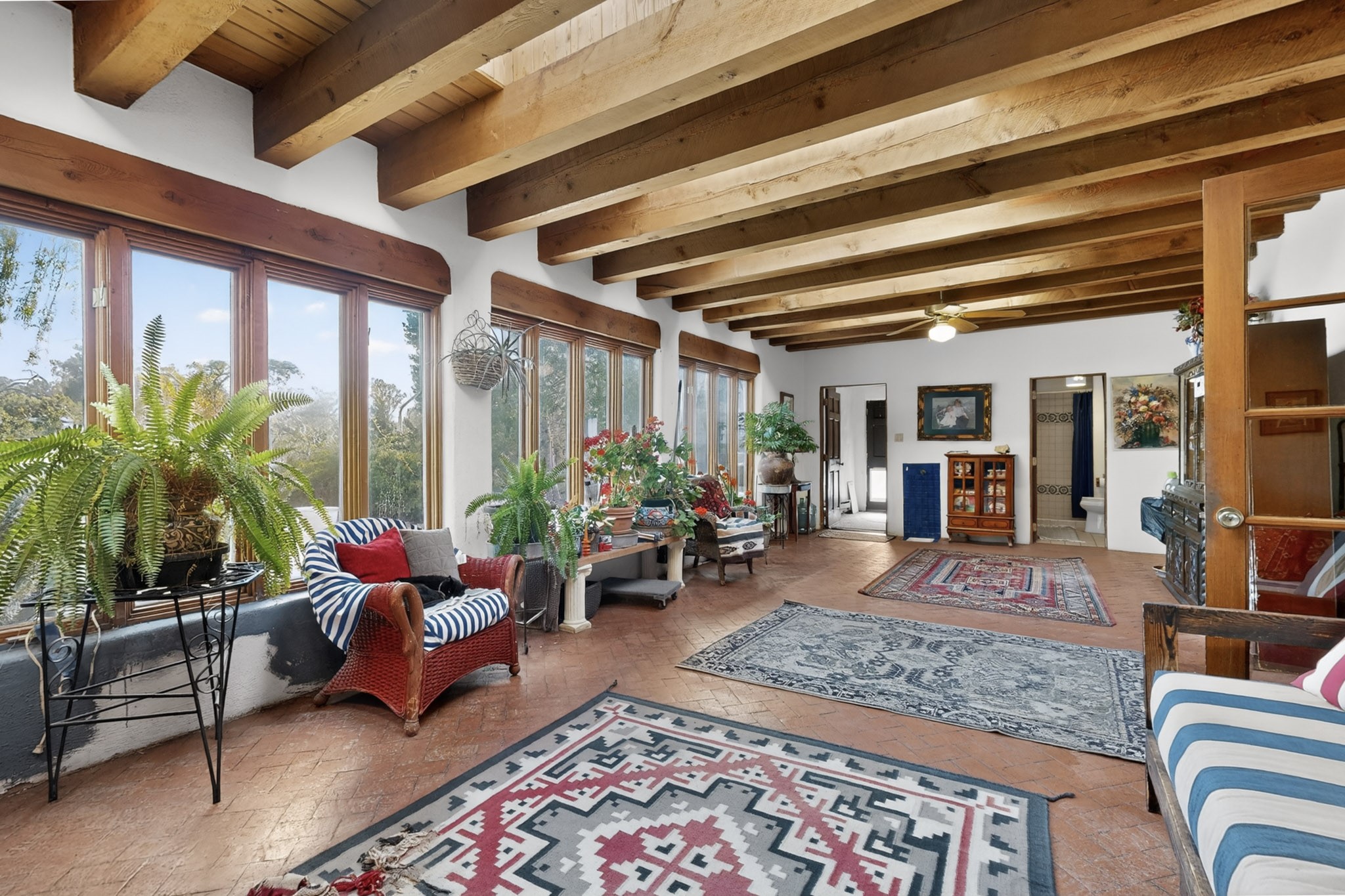 Bring your horses to this pinon and juniper covered Santa Fe County property close to town! The 10 acre parcel in Los Cerros Negros includes a main house, guest quarters, horse facility and is only 8 miles to the Santa Fe Plaza. The Southwest inspired house and guest quarters feature beautifully handcrafted wood throughout. The air conditioned main house has 3 bedrooms, 3 bathrooms and a sun room. The guest quarters has 2 bedrooms, 1 bathroom and an office. Your green thumb will be delighted with the large sun room in the main house where something can be blooming year round. The guest house could be a mother in law quarters or even an income producing property since it has its own entrance. There is abundant storage with many closets, a pantry, storage area off the covered portal and additional storage in the oversized well house.The horse barn situated away from the house includes a tack room, hay storage and 4 large stalls. Despite the country setting you are minutes away from Harry's Road House, Jambo Bobcat Bite, Cafe Fina and the Eldorado Supermarket. Just down the road is historical Santa Fe with its many dining options, art galleries and museums.